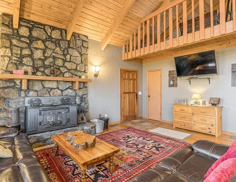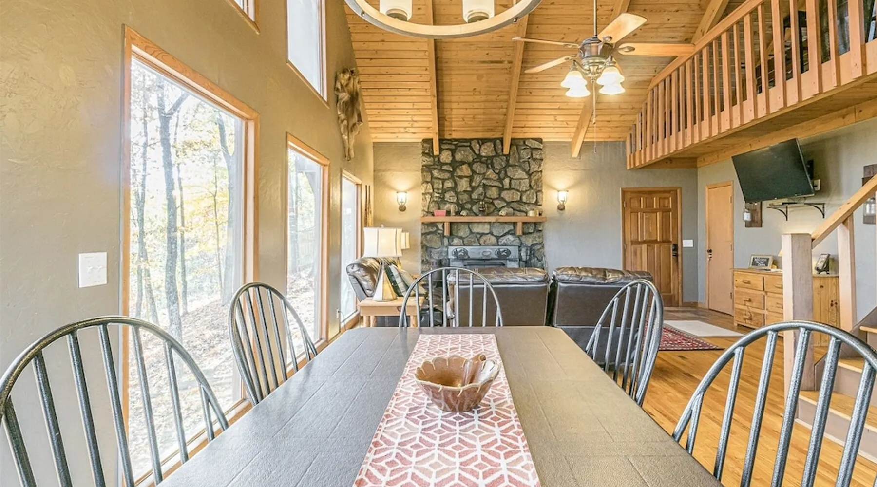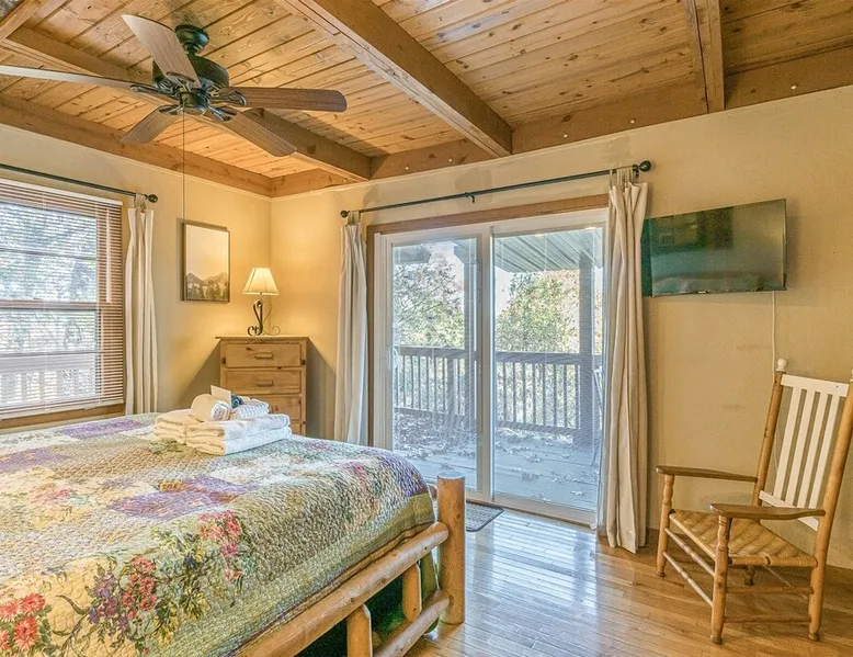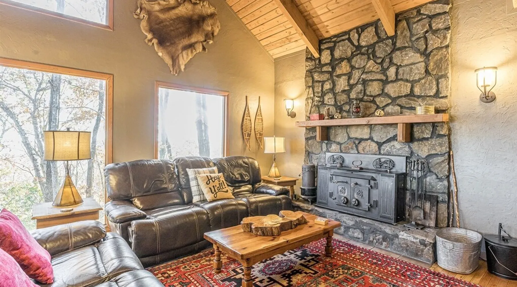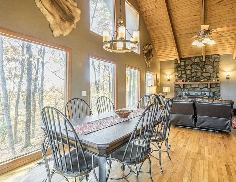 House Rules: 21+ age requirement for lead guest. No exceptions. This property is not pet-friendly. No exceptions. Digital rental agreement will be required to sign and complete after property is booked. Come experience the beautiful Belle of the Mountain! This cozy mountainside cabin is nestled on the side of Mount Yonah in the North Georgia Blue Ridge Mountains. Climb up to the rooftop Crow's Nest to see the breathtaking panoramic views during sky filled days and starlit nights. With accommodations for six, it’s an ideal location for travelers looking to experience the charming Bavarian town of Helen and its Alpine dining, cobblestone walkways, artisan shops, and annual Oktoberfest festivals. The cabin’s interior features an open floor plan with a vaulted ceiling and floor-to-ceiling windows that give you a lovely woodland view. Cozy up with your loved ones by the classic wood-burning, cast-iron fireplace surrounded by beautiful rockwork. Take advantage of the beautiful mountain view from one of the three decks this property has to offer. If you're wanting some quiet alone time, there's a reading nook in the loft awaiting you with spectacular views. If you decide to venture out of the comfort of this house, Unicoi State Park is located only 8 miles away and features hiking paths to waterfalls, fishing, swimming, archery, paddle boarding, and much more. In addition, there are half a dozen mountainside wineries featuring tastings, as well as Tantrum Brewing Co in Cleveland, Georgia, where the hops used for their beer are grown onsite. Belle of the Mountain is the perfect place to just relax or to ring in good times!