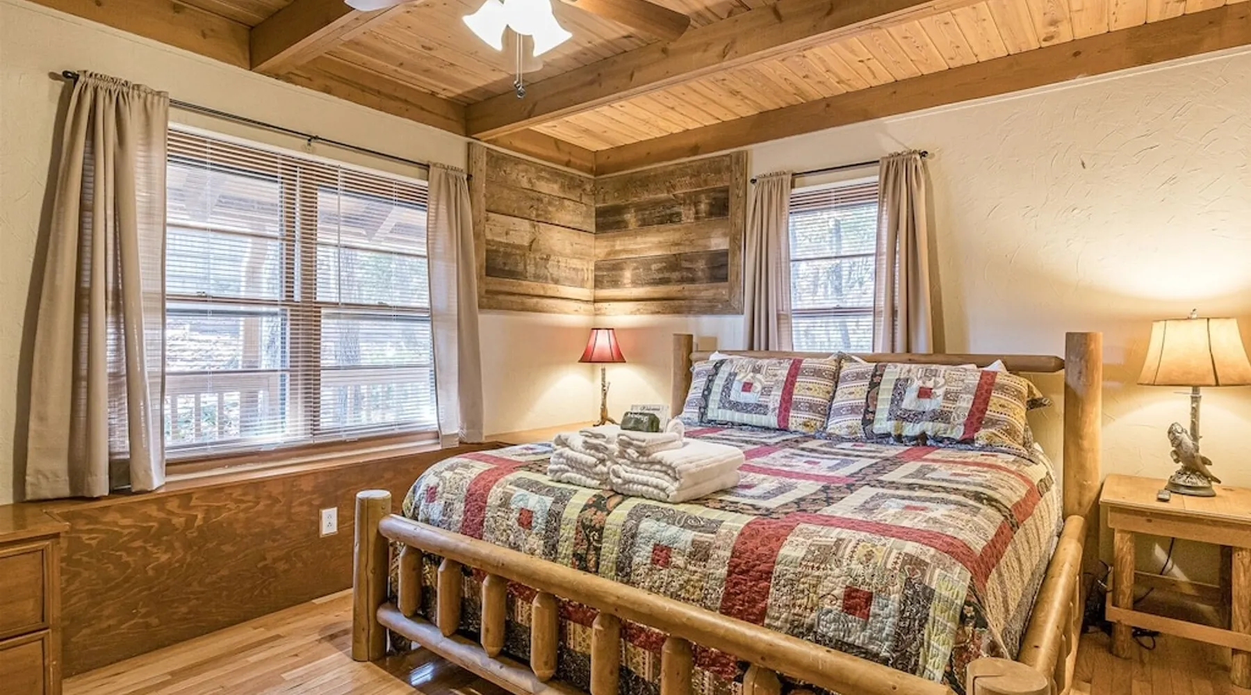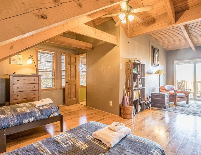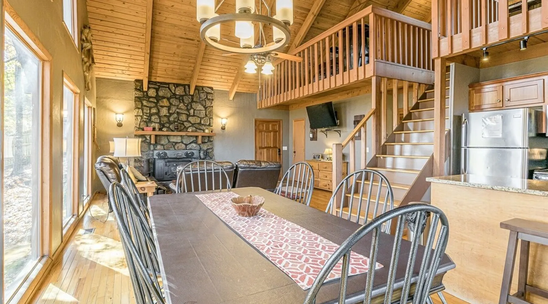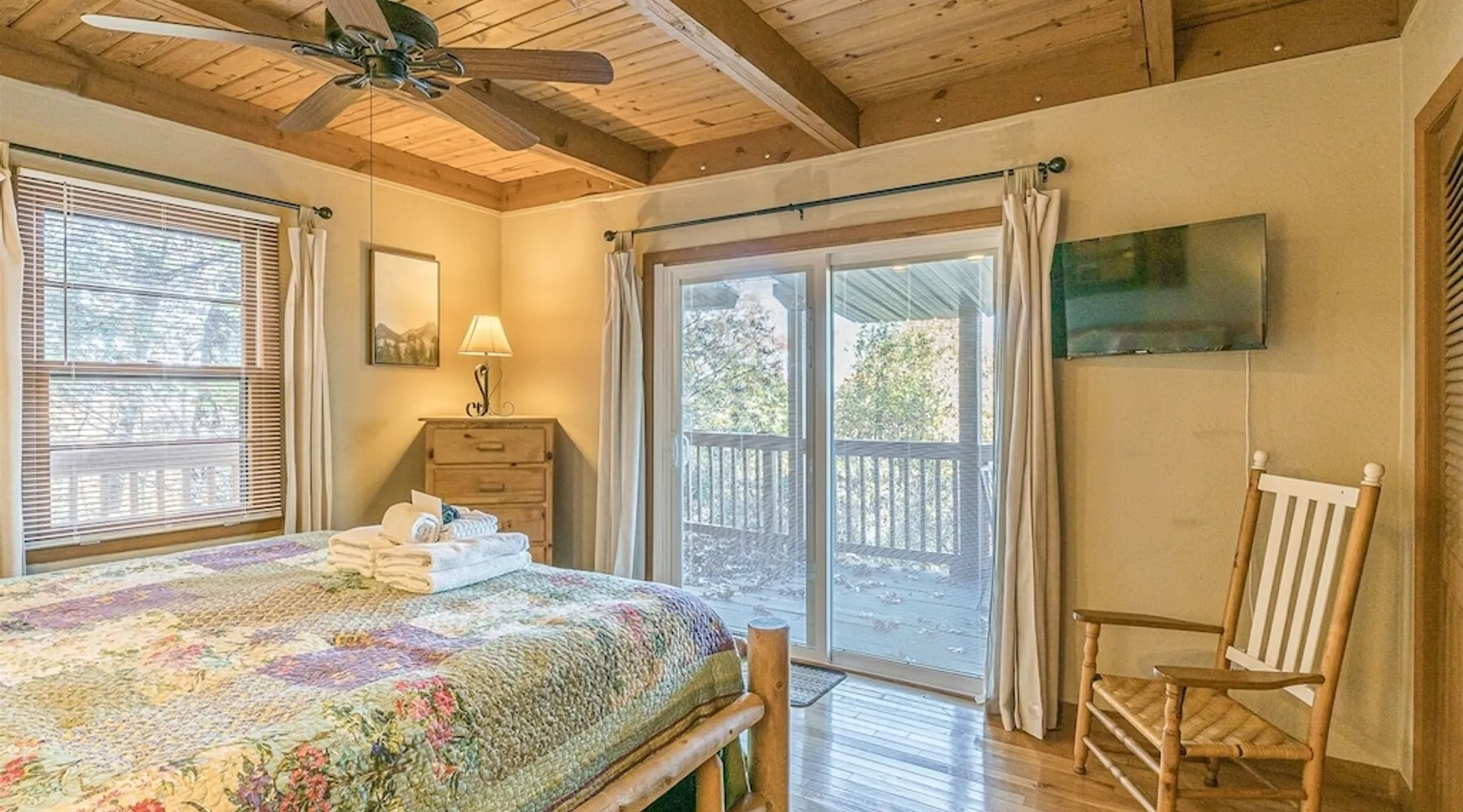 House Rules: 21+ age requirement for lead guest. No exceptions. This property is not pet-friendly. No exceptions. Digital rental agreement will be required to sign and complete after property is booked. Come experience the beautiful Belle of the Mountain! This cozy mountainside cabin is nestled on the side of Mount Yonah in the North Georgia Blue Ridge Mountains. Climb up to the rooftop Crow's Nest to see the breathtaking panoramic views during sky filled days and starlit nights. With accommodations for six, it’s an ideal location for travelers looking to experience the charming Bavarian town of Helen and its Alpine dining, cobblestone walkways, artisan shops, and annual Oktoberfest festivals. The cabin’s interior features an open floor plan with a vaulted ceiling and floor-to-ceiling windows that give you a lovely woodland view. Cozy up with your loved ones by the classic wood-burning, cast-iron fireplace surrounded by beautiful rockwork. Take advantage of the beautiful mountain view from one of the three decks this property has to offer. If you're wanting some quiet alone time, there's a reading nook in the loft awaiting you with spectacular views. If you decide to venture out of the comfort of this house, Unicoi State Park is located only 8 miles away and features hiking paths to waterfalls, fishing, swimming, archery, paddle boarding, and much more. In addition, there are half a dozen mountainside wineries featuring tastings, as well as Tantrum Brewing Co in Cleveland, Georgia, where the hops used for their beer are grown onsite. Belle of the Mountain is the perfect place to just relax or to ring in good times!