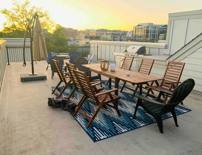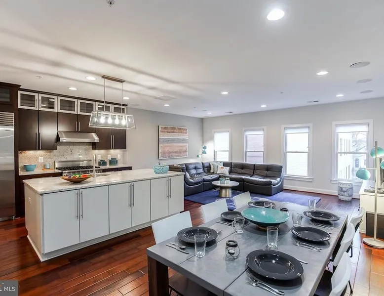 This quality-built Penthouse home features 2350 sq. ft. of living space, two large living rooms, spacious bedrooms and 700 + sq. ft. private roof top outdoor deck space. 1 minute walk to metro, restaurants, shopping, & popular DC attractions! 10-minute walk to DC Convention Center! Secure off-street parking in the back-yard. The space Live @ the top in the coolest Dc neighborhood!! This lovely Penthouse is located nearby DC's famous U street corridor (Logan circle area) with plenty of bars and restaurants. few minutes walk to Grocery store, CVS, Capital bike share, and 711. One of the best locations to walk everywhere you would need to, while experiencing a luxurious gateway in a modern Penthouse. Wide plank dark walnut wood flooring run throughout the home. The living room and dining spaces are 20 sq. ft. x 20 sq. ft. space. Large open-space kitchen, family room and informal dining space on the other side of the lower level. There is a convenient half bath on this floor. Bedrooms are at the upper level and there is an additional level with the private rooftop. House is fully sanitized before and after each stay in line with federal guidelines anti-Covid. Guest access Guests have full access to all house areas, Common areas including bathrooms, kitchen, living room and rooftop are shared with other guests. During your stay I am not in the house, hence I will be available remotely to offer help and assistance whenever needed. Guests can get in touch with me by phone and/or via the Airbnb platform. Registration Details Hosted License: 5005500516800173