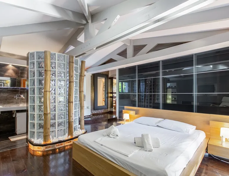 Beyond the ordinary, this luxurious 160 m² ground-floor family suite apartment is sure to impress! Nestled within a stunning 2,450 m² garden, it boasts a Private Glass pool, a fully equipped gym & relaxing lounge Crafted with exceptional materials such as Dionysus marble, wood&stone, just 750 meters from the beautiful Agia Marina beach & island of Althea. Here, you can seamlessly combine the tranquility of the mountains with the serenity of the beach, making it a truly unique & rare retreat. The space This home is exceptional in that it combines the peace and harmony of both a mountain and coastal retreat. It offers a serene and beautiful resort-style lounge, ideal for relaxation. Please note, this listing is for the ground floor only, as my family and I reside on the second and third floors. Guests will have access to a fully equipped, private gym during their stay. Our cleaning services are tailored to ensure the highest hygiene standards, especially in light of Covid-19. We meticulously clean all surfaces, including kitchen equipment, remote controls, light switches, and door handles, prior to each booking to ensure a safe and clean environment for all guests. As we live in the home, protecting our family and visitors from any health risks is our top priority. : Fully equipped, well-lit kitchen (double-door fridge, microwave, 2-burner Domino stove, toaster grill, dishwasher). Basic amenities such as shampoo, shower gel, etc. Fresh towels and neatly made beds, along with spacious wardrobes and additional storage. Large LED smart TVs for your entertainment. Private BBQ area. Brand-new hybrid pool with a private frame and sunbeds. Private garden gym for your use. Baby cot available on request. 24/7 easy access to the property. Nespresso machine and additional extras. Full assistance available whenever needed. Truly enjoy the silence and tranquility of this special retreat!! Guest access 17 minutes from Athens International Airport. Less than one minute from the beach. Just 1 minute (by car) from tavernas, restaurants, shops, and supermarkets. Car rental is recommended and can be arranged for your convenience. 25 minutes from the Ancient Temple of Poseidon at Sounion, where you can experience breathtaking full moons in August and September. 8 minutes (by car) from the famous Vouliagmeni Lake. Just 1 minute (by car) from beautiful sandy beaches and top-tier resorts. Other things to note The garden surrounding the house is rarely shared, and is primarily used by my retired parents who live on the second floor, as a path leading to our small farm. We produce our own honey and love to share it with our guests! The ground-floor pool, garden area (as shown in the photos), large Monk-style dining table, BBQ area, and tropical lounge with large handmade sofas are all PRIVATE for your enjoyment. The house features a uniquely beautiful design, with the private pool and gym reserved exclusively for guests staying in this listing. We provide a wifi speed of approximately 35 Mbps. Registration Details 00001090013