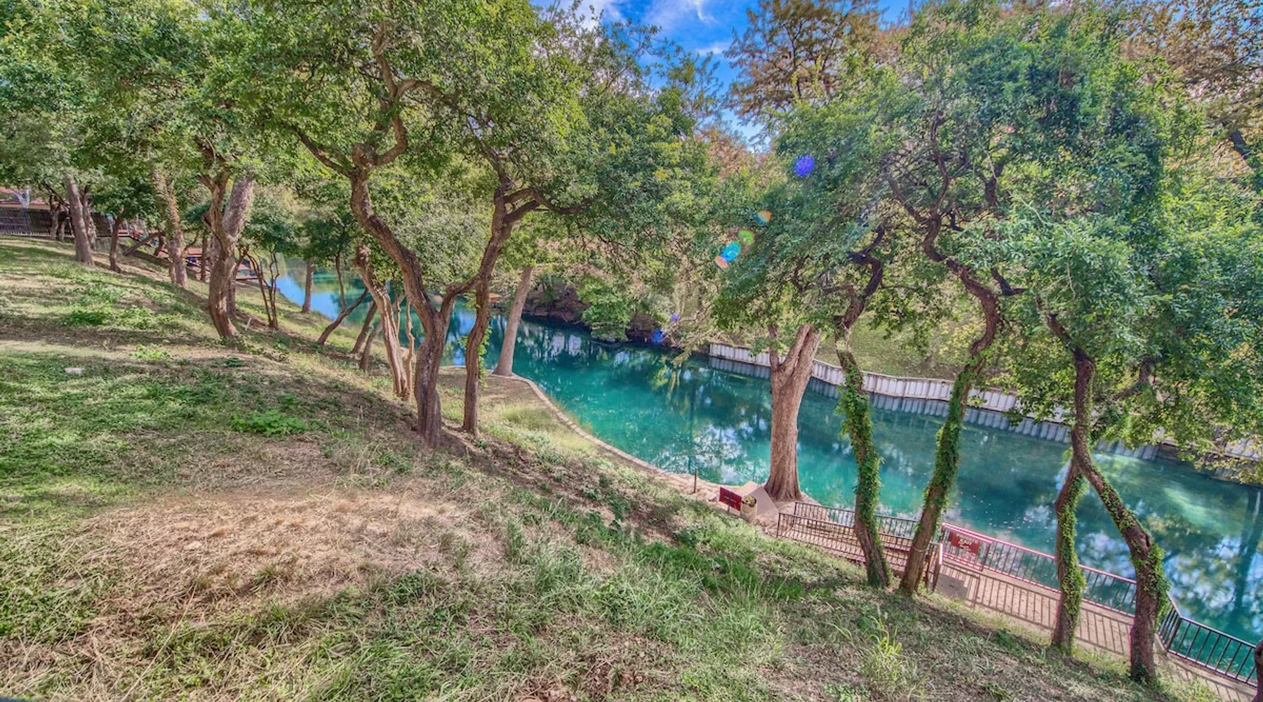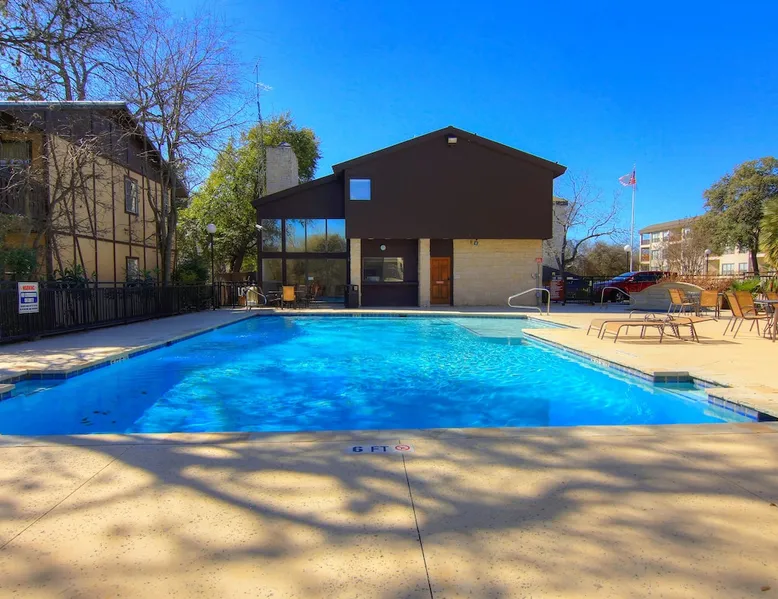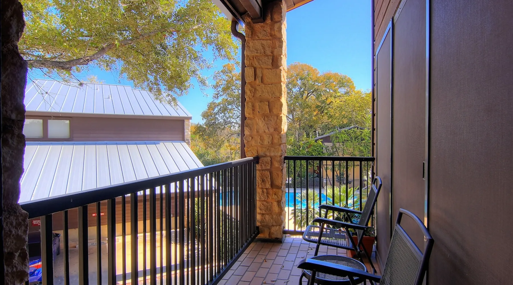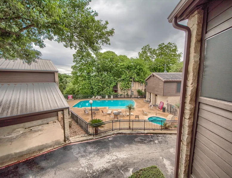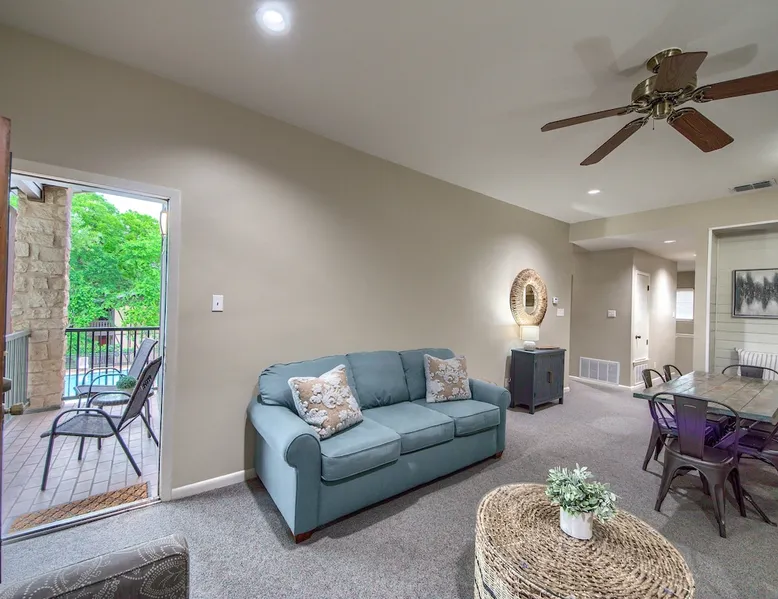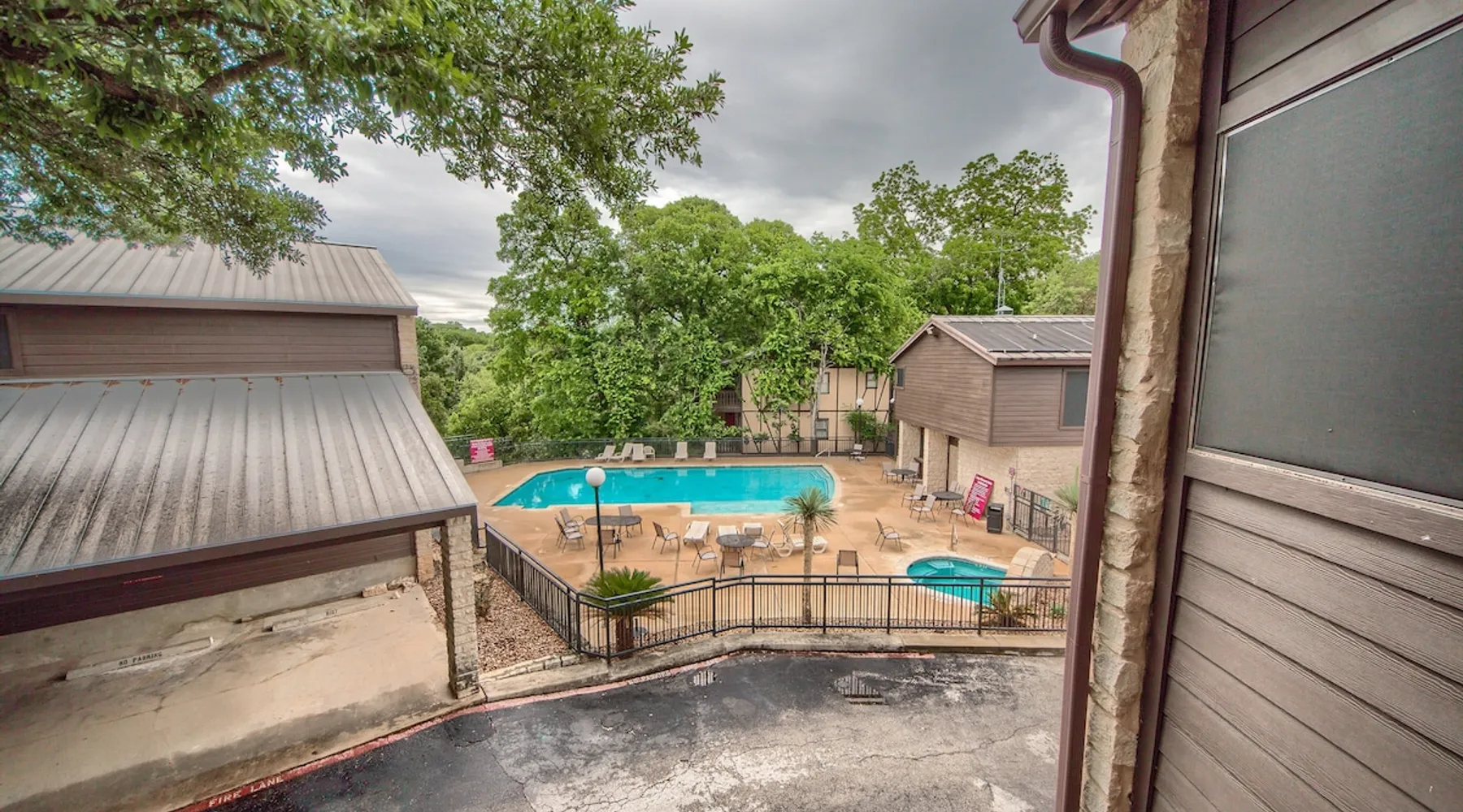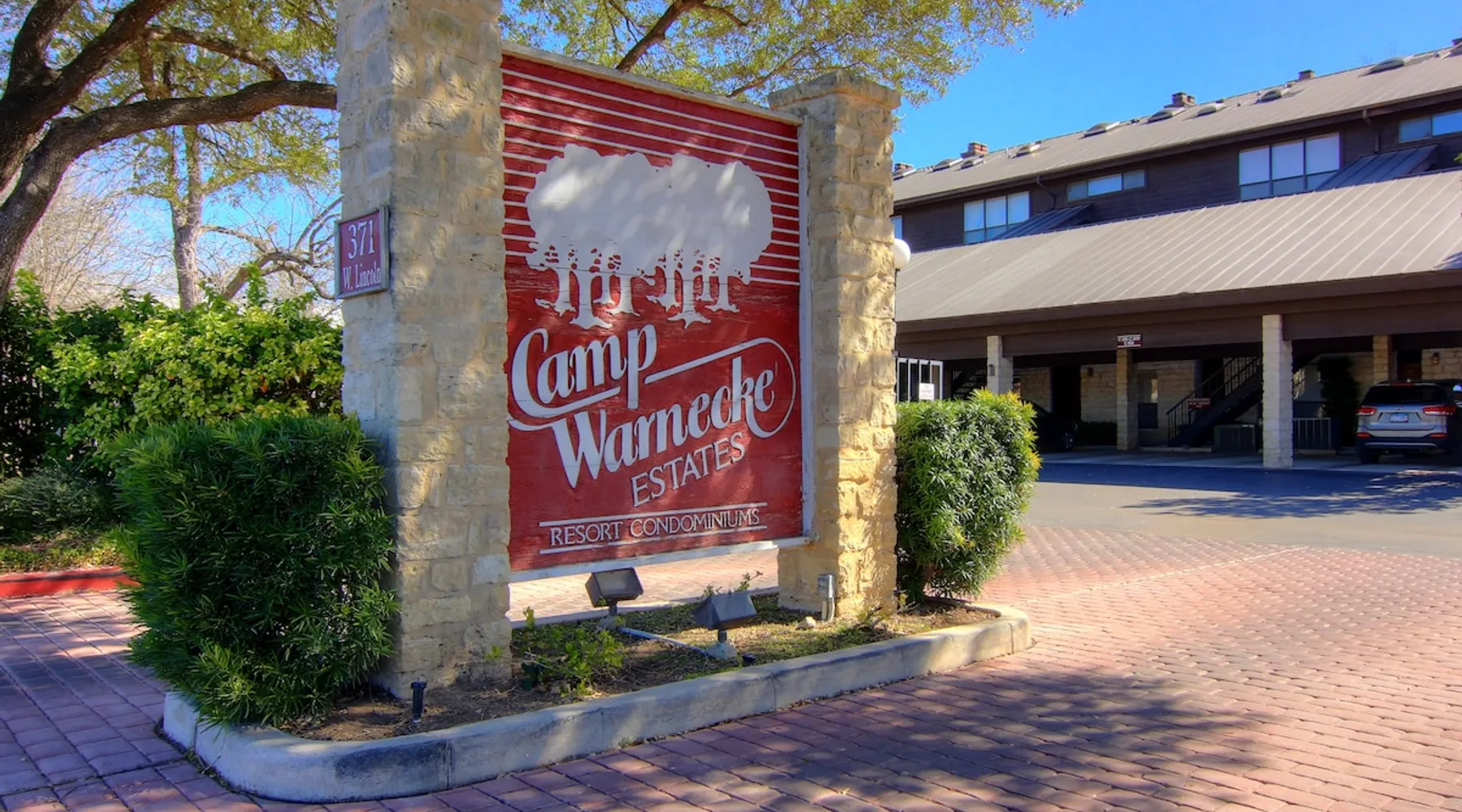 2/2 condo. Sleeps 8. Master: King. 2nd bedroom: 2 Queens. Living Room: Sofa Sleeper. No Pets Allowed. MUST BE 25 TO RENT. Renter's ID and Credit Card must be presented at check in or via email. The space Beautiful 2 bedroom, 2 bath condo at Camp Warnecke Estates is just steps from the Comal River and right across the street from Schlitterbahn! The open living room/dining room is a great place to relax after a day on the River with it’s beautiful fireplace and flat screen TV. Enjoy a cup of coffee in the morning sitting in the cozy bar stools or out on the patio, enjoying a great view of the beautiful pool and hot tub area! The dining table has seating for 6 and the bar has seating for 2. The cozy kitchen is equipped with all the basics you will need to cook breakfast, lunch and dinner. The master bedroom has a king size bed, a TV and has patio access as well! The spacious master bathroom has everything you need to get ready! Enjoy the beautiful shower or take a long relaxing bath in the separate bathtub. The second bedroom also has two cozy Queen beds and is just down the hall from the second spacious bathroom with a shower/tub combo. There is a sofa sleeper in the living room and a washer and dryer in the unit. Accommodates 8 people very comfortably. All bedrooms and bathrooms come stocked with high quality linens. Enjoy walking down to the Comal River with private river access for guests or swim in the pool and hot tub! Visit Gruene or downtown New Braunfels for shopping, restaurants and live music. River’s Edge is an amazing place to enjoy your trip to New Braunfels! Rockin' R is a local tube outfitter which can pick up in the parking lot next to Camp Warnecke between Memorial Day and Labor Day. For any reservation outside of that time period, the Rockin' R shop is located only .5 miles away. Only two parking passes provided with one guaranteed numbered spot. The second parking pass is for general parking and is 'first come first served.' This condo is on the ground floor, however as soon as you enter the condo you must walk up a flight of stairs. Host must be 25 years of age or older to make a reservation and must be staying at the property. No pets allowed. Guests will be allowed 2 vehicles on premise with parking passes and 8 wristbands (max amount allowed). This condo has a maximum occupancy of 8 guests. This maximum occupancy is not to be exceeded at any time. No daytime guests allowed. No RV’s or trailers. **WRISTBANDS & PARKING PASSES REQUIRED*** These condos are individually owned and the owners graciously allow their "second homes" to be rented out and enjoyed! The HOA of the complex had laid out some policies to ensure everyone staying at the complex can have a wonderful time. Because of the fabulous location, we can have trouble with trespassers. The security guards on premise are there to ensure only renters are using the grounds and that guests are parking in the correct parking spaces. Please do not be offended by the wristband and parking pass policies, they are really there to ensure that you have a fabulous time! To comply with city and county short-term rental permit restrictions, the outdoor areas of this home are monitored by video camera. This property includes accidental damage protection up to $1500. WINTER MONTHLY RENTALS - if you are interested in renting monthly in the winter months, please contact New Braunfels Escapes for pricing details. This property is $1900 per month. ***Although every effort has been made by New Braunfels Escapes to ensure the accuracy of the information in this site, it is not guaranteed. It is subject to errors, omissions, change of price, change of house contents and/or features or withdrawal without notice. Starter pack of amenities is provided until you are able to get to the store. No perishables (including salt and pepper) are provided.***