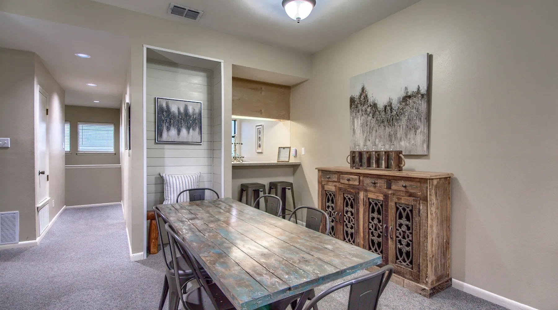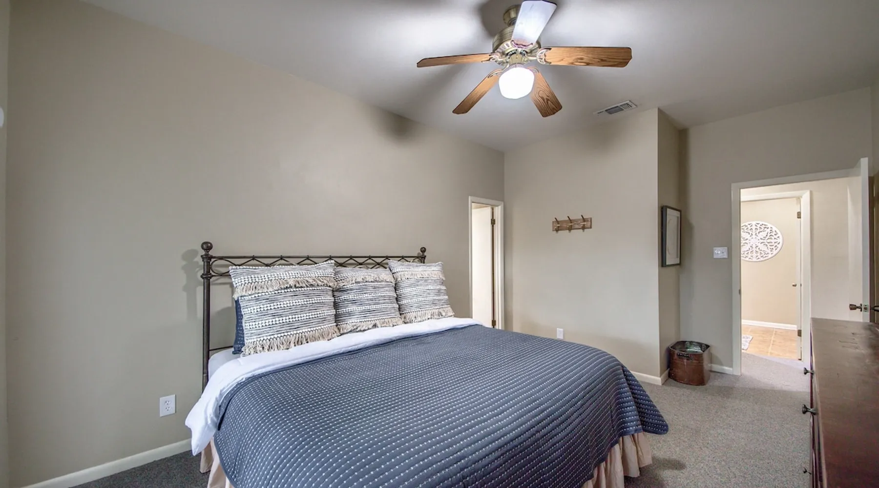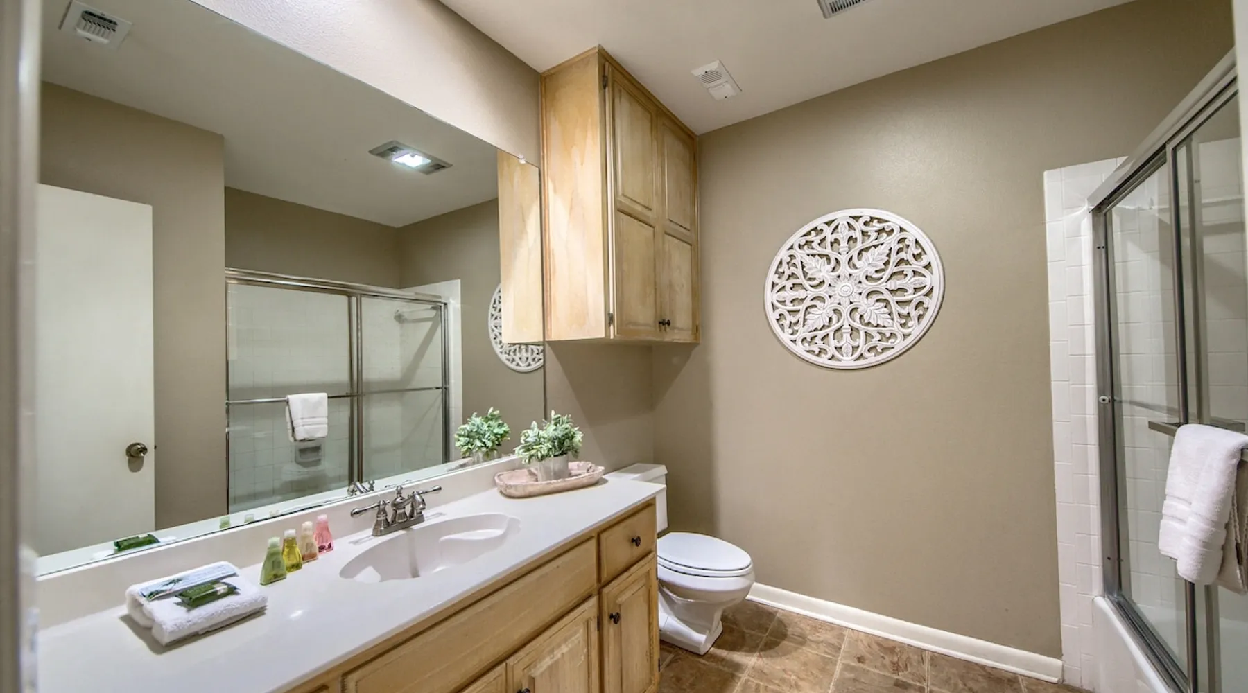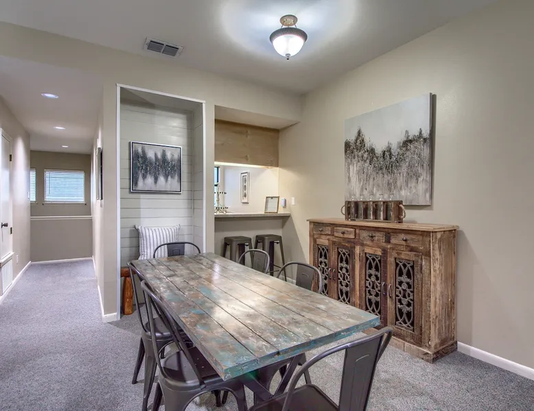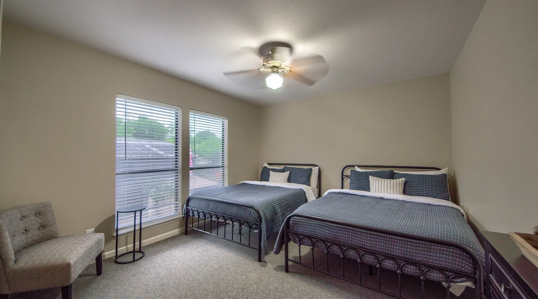 2/2 condo. Sleeps 8. Master: King. 2nd bedroom: 2 Queens. Living Room: Sofa Sleeper. No Pets Allowed. MUST BE 25 TO RENT. Renter's ID and Credit Card must be presented at check in or via email. The space Beautiful 2 bedroom, 2 bath condo at Camp Warnecke Estates is just steps from the Comal River and right across the street from Schlitterbahn! The open living room/dining room is a great place to relax after a day on the River with it’s beautiful fireplace and flat screen TV. Enjoy a cup of coffee in the morning sitting in the cozy bar stools or out on the patio, enjoying a great view of the beautiful pool and hot tub area! The dining table has seating for 6 and the bar has seating for 2. The cozy kitchen is equipped with all the basics you will need to cook breakfast, lunch and dinner. The master bedroom has a king size bed, a TV and has patio access as well! The spacious master bathroom has everything you need to get ready! Enjoy the beautiful shower or take a long relaxing bath in the separate bathtub. The second bedroom also has two cozy Queen beds and is just down the hall from the second spacious bathroom with a shower/tub combo. There is a sofa sleeper in the living room and a washer and dryer in the unit. Accommodates 8 people very comfortably. All bedrooms and bathrooms come stocked with high quality linens. Enjoy walking down to the Comal River with private river access for guests or swim in the pool and hot tub! Visit Gruene or downtown New Braunfels for shopping, restaurants and live music. River’s Edge is an amazing place to enjoy your trip to New Braunfels! Rockin' R is a local tube outfitter which can pick up in the parking lot next to Camp Warnecke between Memorial Day and Labor Day. For any reservation outside of that time period, the Rockin' R shop is located only .5 miles away. Only two parking passes provided with one guaranteed numbered spot. The second parking pass is for general parking and is 'first come first served.' This condo is on the ground floor, however as soon as you enter the condo you must walk up a flight of stairs. Host must be 25 years of age or older to make a reservation and must be staying at the property. No pets allowed. Guests will be allowed 2 vehicles on premise with parking passes and 8 wristbands (max amount allowed). This condo has a maximum occupancy of 8 guests. This maximum occupancy is not to be exceeded at any time. No daytime guests allowed. No RV’s or trailers. **WRISTBANDS & PARKING PASSES REQUIRED*** These condos are individually owned and the owners graciously allow their "second homes" to be rented out and enjoyed! The HOA of the complex had laid out some policies to ensure everyone staying at the complex can have a wonderful time. Because of the fabulous location, we can have trouble with trespassers. The security guards on premise are there to ensure only renters are using the grounds and that guests are parking in the correct parking spaces. Please do not be offended by the wristband and parking pass policies, they are really there to ensure that you have a fabulous time! To comply with city and county short-term rental permit restrictions, the outdoor areas of this home are monitored by video camera. This property includes accidental damage protection up to $1500. WINTER MONTHLY RENTALS - if you are interested in renting monthly in the winter months, please contact New Braunfels Escapes for pricing details. This property is $1900 per month. ***Although every effort has been made by New Braunfels Escapes to ensure the accuracy of the information in this site, it is not guaranteed. It is subject to errors, omissions, change of price, change of house contents and/or features or withdrawal without notice. Starter pack of amenities is provided until you are able to get to the store. No perishables (including salt and pepper) are provided.***