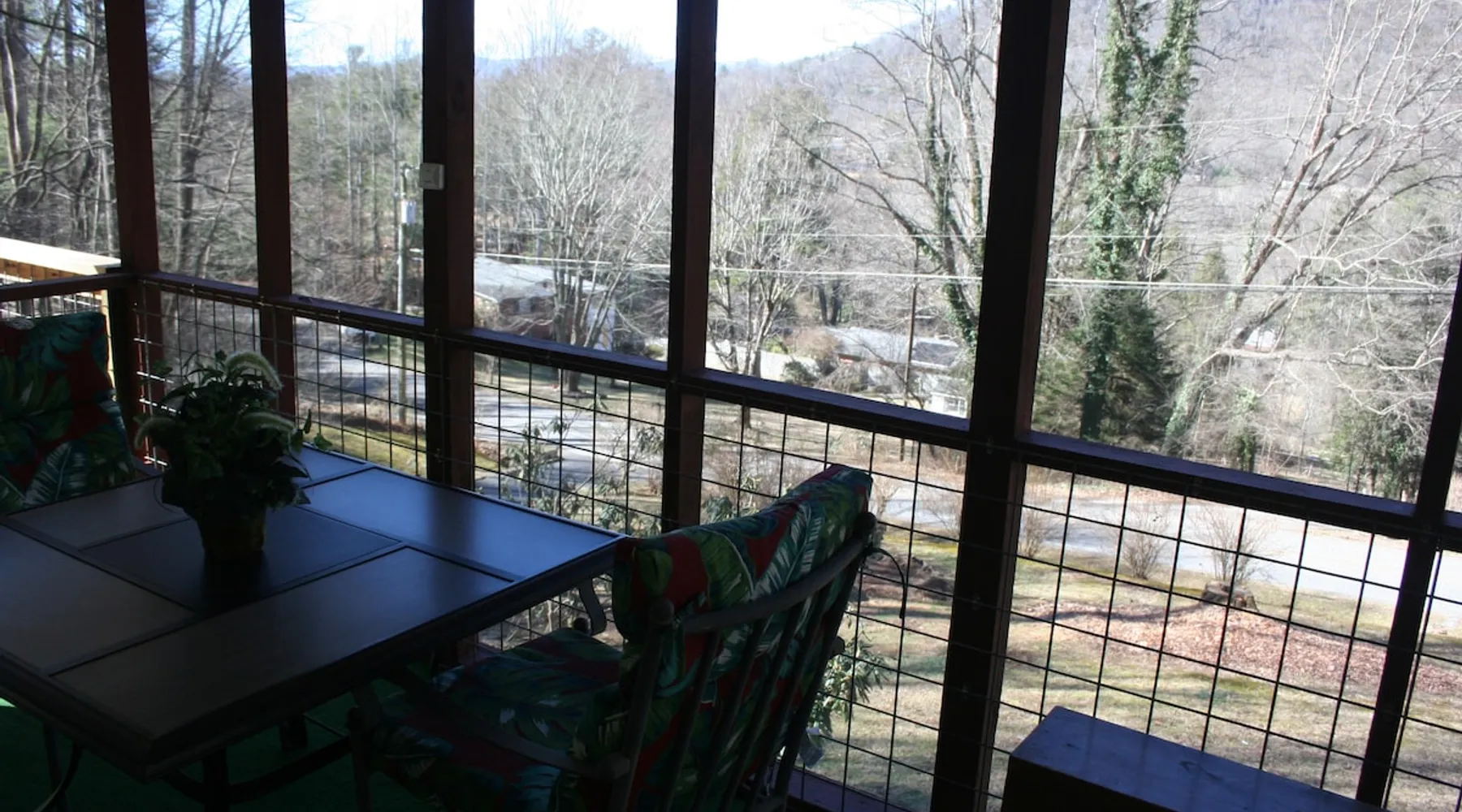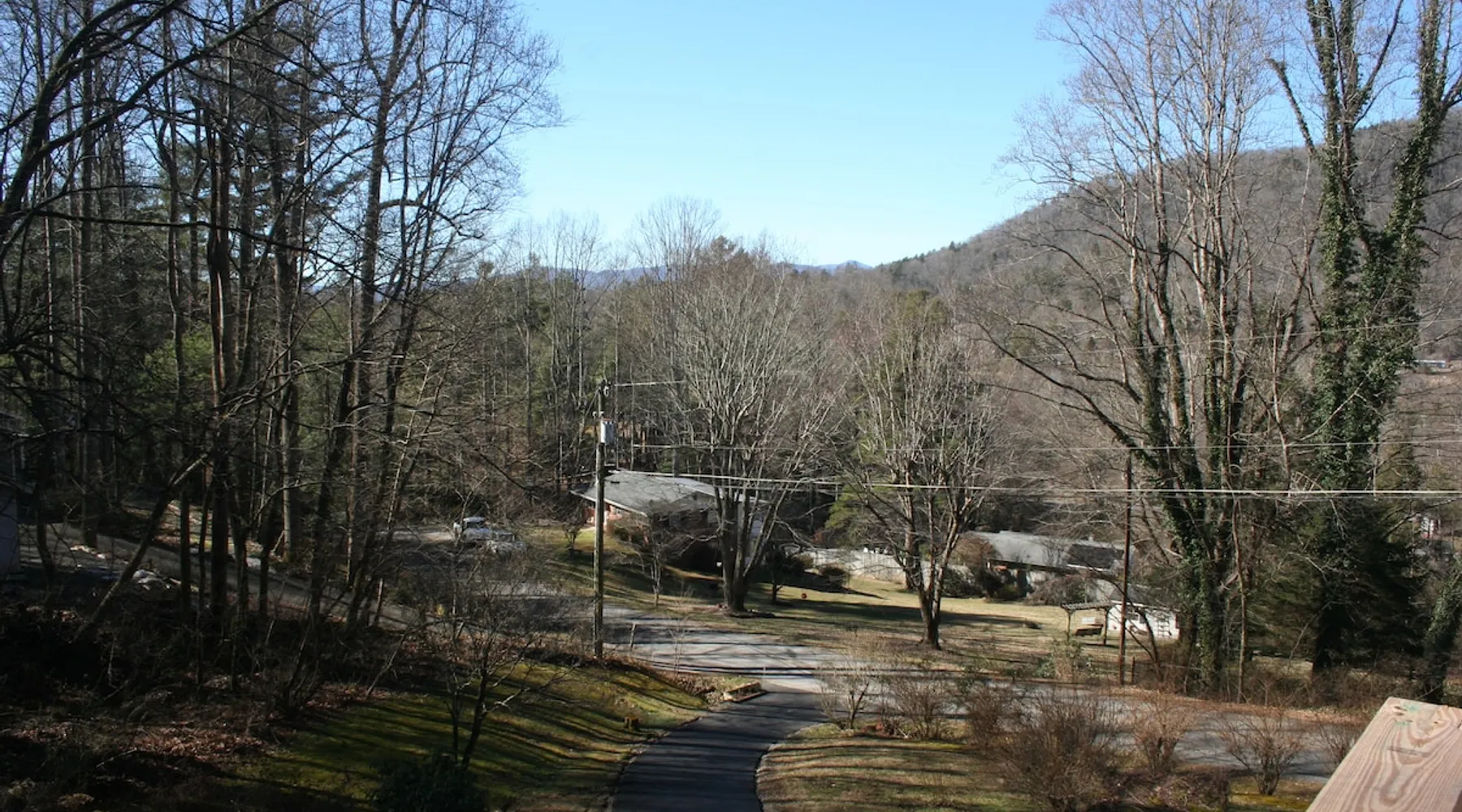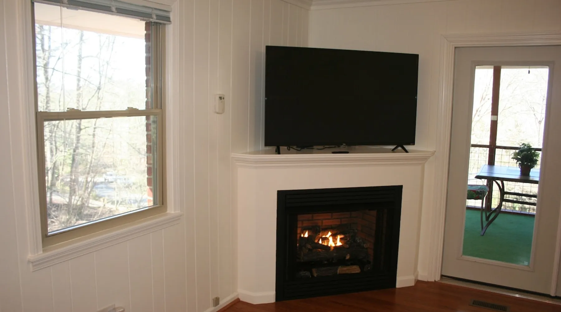 Hilltop is a comfortable cottage built on a hill with mountain views. Imagine driving down a country lane to a cabin nestled in the woodland. The cottage is on a peaceful street conveniently located between Brevard and Hendersonville. There are 2 large porches where you can eat meals outside, have your morning coffee, or just enjoy relaxing in the mountain air. The Hot Tub is on the covered porch. There is a nice view of the woods and longer range views during winter and a fenced area for pets. The space Inside the living room you'll find a custom fireplace to keep you warm and toasty in cold weather and a flat screen smart TV with cable. Downstairs is a 2nd living room with another fireplace and flat screen TV; it also has a gaming table with cards & chips and other board games. The bathroom includes pedestal sink and tub/shower combo. The kitchen features all the essentials from dishes, cups, utensils, pots/pans, and basic spices. In spring millions of wildflowers bloom in the area and in the summer the rhododendron and mountain laurel bloom. Fall has cool nights and wonderful fall color. We also have a park style grill for outdoor grilling over wood or charcoal.