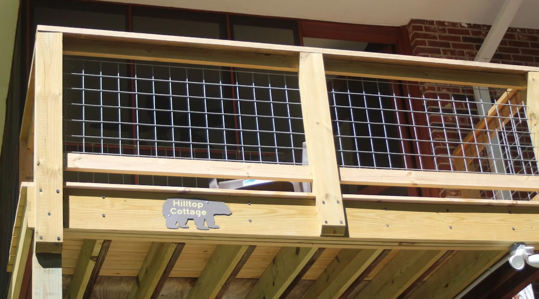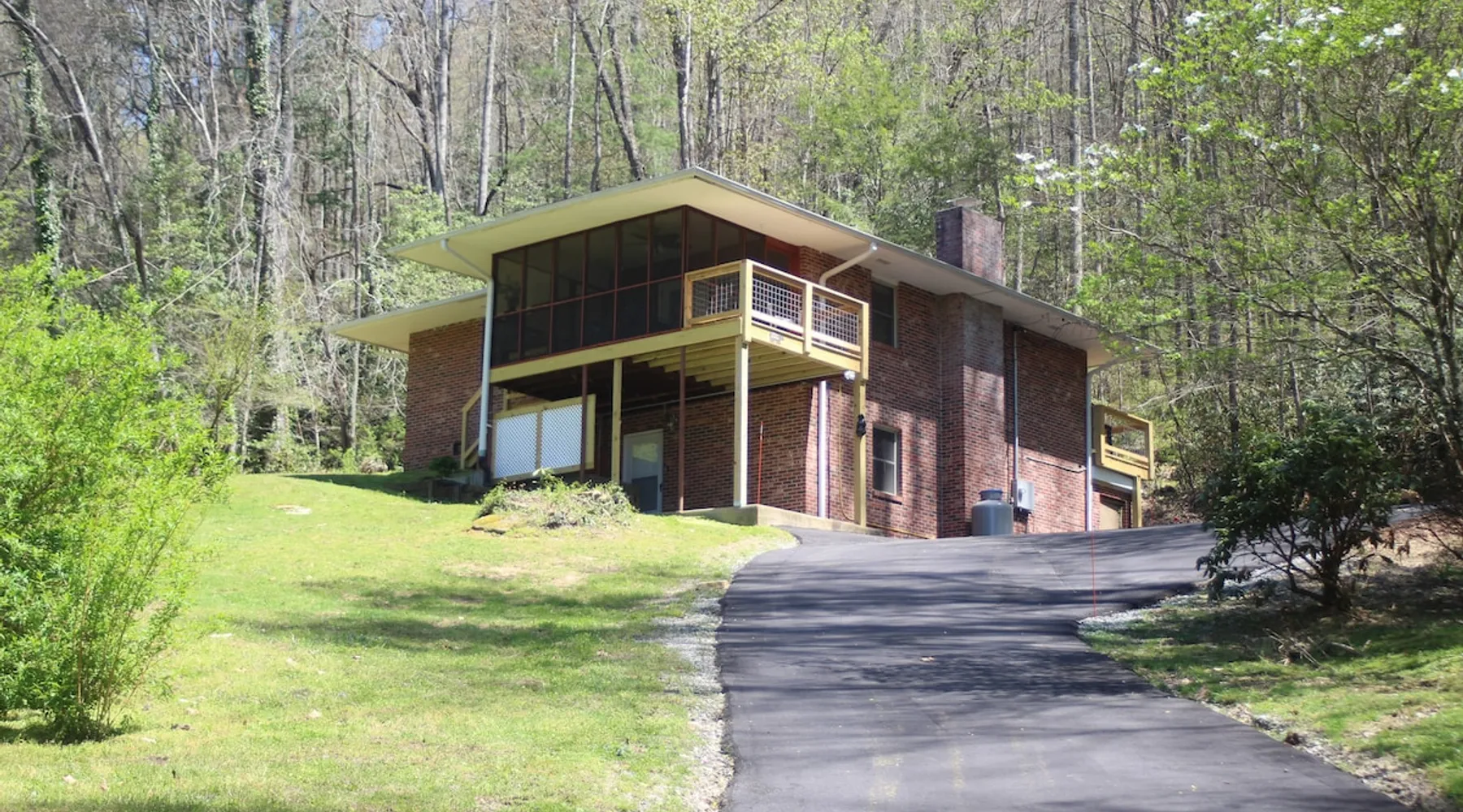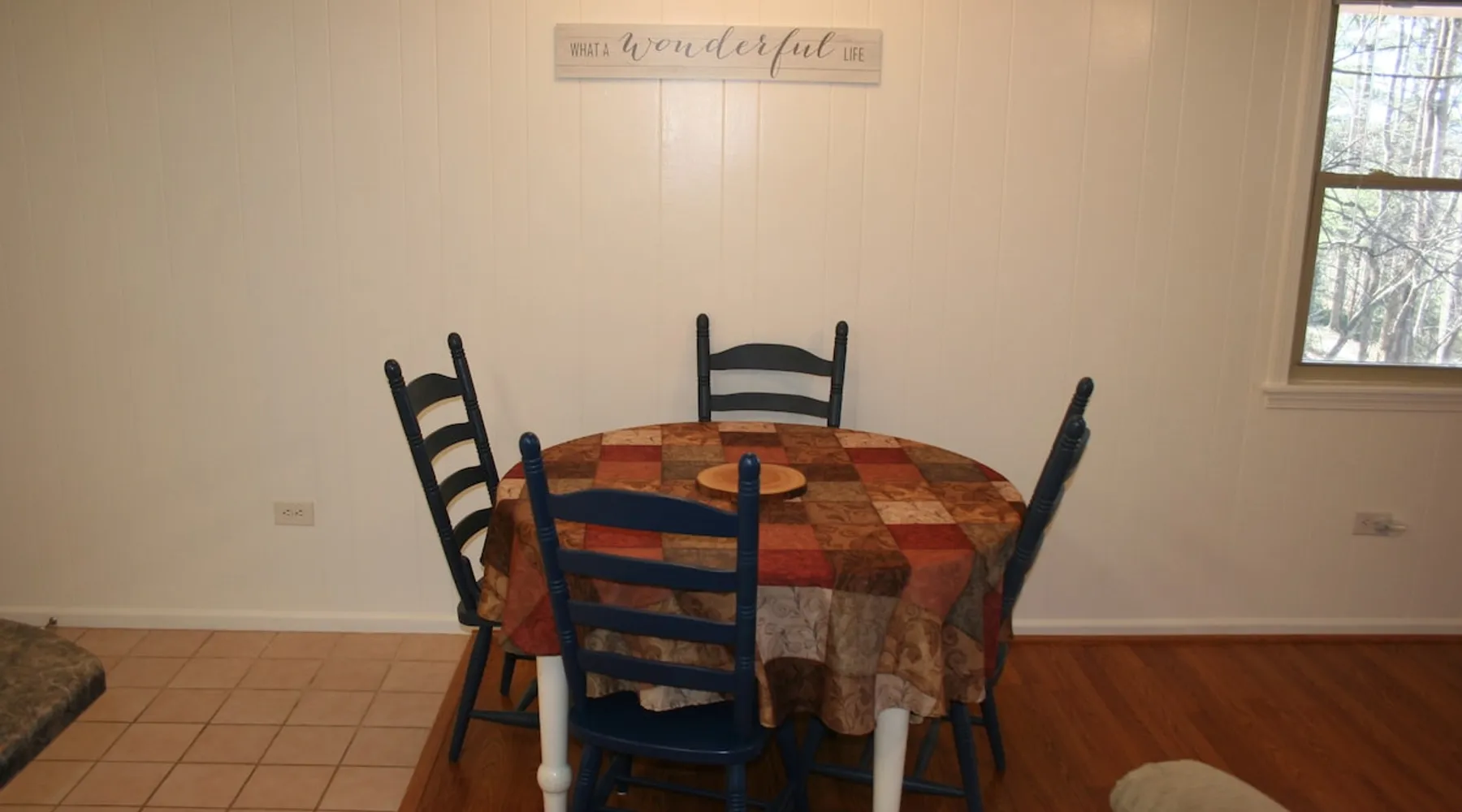 Hilltop is a comfortable cottage built on a hill with mountain views. Imagine driving down a country lane to a cabin nestled in the woodland. The cottage is on a peaceful street conveniently located between Brevard and Hendersonville. There are 2 large porches where you can eat meals outside, have your morning coffee, or just enjoy relaxing in the mountain air. The Hot Tub is on the covered porch. There is a nice view of the woods and longer range views during winter and a fenced area for pets. The space Inside the living room you'll find a custom fireplace to keep you warm and toasty in cold weather and a flat screen smart TV with cable. Downstairs is a 2nd living room with another fireplace and flat screen TV; it also has a gaming table with cards & chips and other board games. The bathroom includes pedestal sink and tub/shower combo. The kitchen features all the essentials from dishes, cups, utensils, pots/pans, and basic spices. In spring millions of wildflowers bloom in the area and in the summer the rhododendron and mountain laurel bloom. Fall has cool nights and wonderful fall color. We also have a park style grill for outdoor grilling over wood or charcoal.