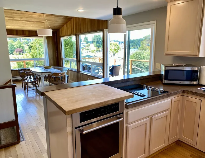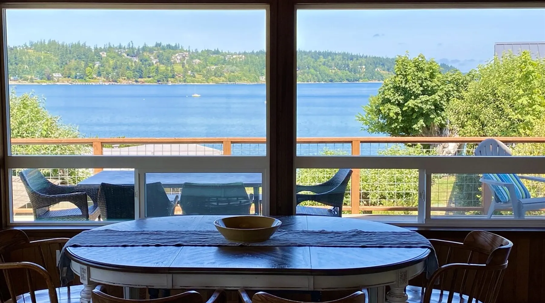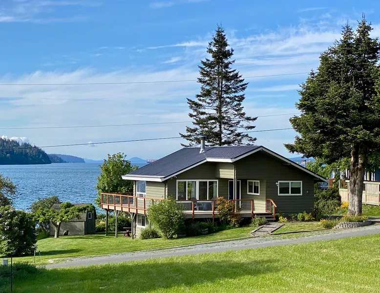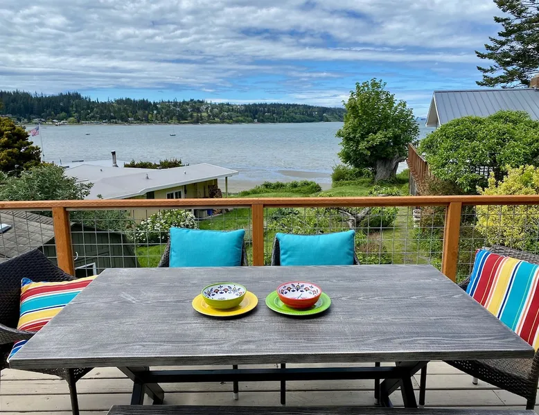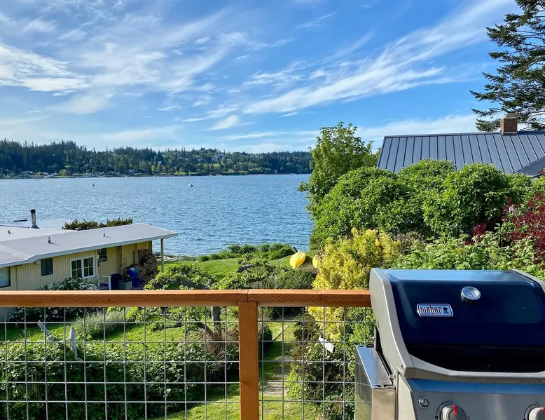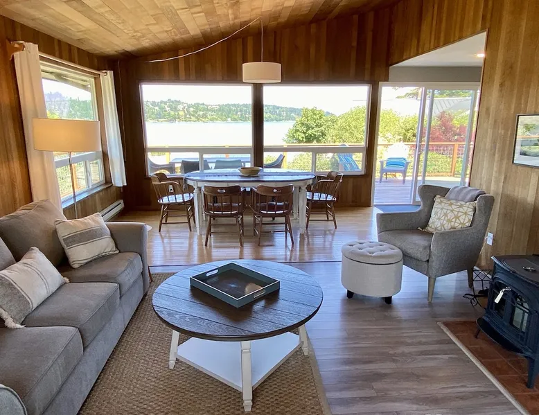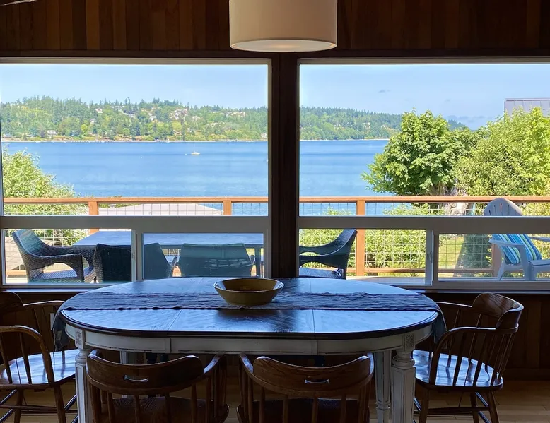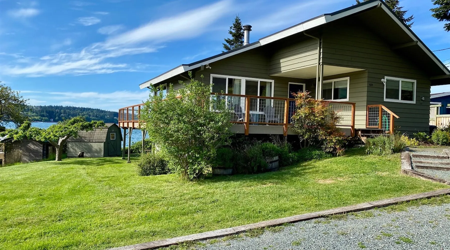 Nestled on a private lane, on Whidbey Island (near Seattle, WA), this water view home has a private beach on beautiful Holmes Harbor. Experience the best of the Pacific Northwest as you launch your kayak or build a sandcastle right on the tidal beach. This is a fantastic beach house for families, sabbaticals, or couples. All are welcome at A Home On The Harbor. The space A Home On The Harbor is thoughtfully designed with comfort and simplicity in mind. Featuring comfortable beds, soft luxury linens, black out blinds in the bedrooms, and a complete cook's kitchen. The kitchen is well-stocked with quality stainless cookware, electric griddle, drip coffee maker and grinder, Keurig, electric tea kettle, toaster oven, blender, crockpot, sharp knives and much more. Grill out on the deck with the Weber gas grill as you watch for seals, enjoy s'mores around the campfire outside, or snuggle up with a good book around the wood-burning stove inside. Our bathrooms have just been beautifully refreshed. The upstairs bath now features new double sinks and quartz countertops with beautiful new flooring for both baths. In keeping with the intentional simplicity of the home we do not have any televisions, but we do have WiFi and cell phone reception. There are also lots of games, books and puzzles for your use. Upstairs: queen bedroom, bath, kitchen, living and dining. Downstairs: queen bedroom, double bunk bed room, bath, family room, laundry. Guest access A Home On The Harbor has easy access to the privately owned tidal beach. The simple path and only 9 steps down is just hard to beat and it is so easy for all ages to use. Our beach is a great place to launch your kayak or paddle board from or to just stroll along during sunset. Searching for sea treasures, sandcastles and digging for clams are great summer fun! You can watch the resident bald eagles and listen to the waves all from the comfort of the large deck. There is also a very nice lawn for games and picnics under the apple tree. Apples, blackberries, herbs and rhubarb are available for your seasonal use. Our home is in a very quiet and peaceful setting. We love our perfect location to dining and shopping, too. You can leave the car parked and walk to cafes and shopping! You can also grab energetic young ones and take an easy walk to the fantastic playground at Freeland Park. We really have the best of both worlds with nature at the beach and enjoyment at the shops all within walking distance. We also enjoy our central location to island attractions like Langley, Coupeville, Greenbank Farm, Wineries, and other great beaches and parks like Double Bluff Park and South Whidbey State Park. Other things to note Well-behaved pets are welcome on approval, $100 fee per pet. Limit 2. We host up to 4 adults and 4 children at a time. We ask that all guests fill out our contact form and rental agreement at booking. You have found the perfect beach house for you and your loved ones so you can relax and restore. Leave your worries on the mainland; you're on island time now.
