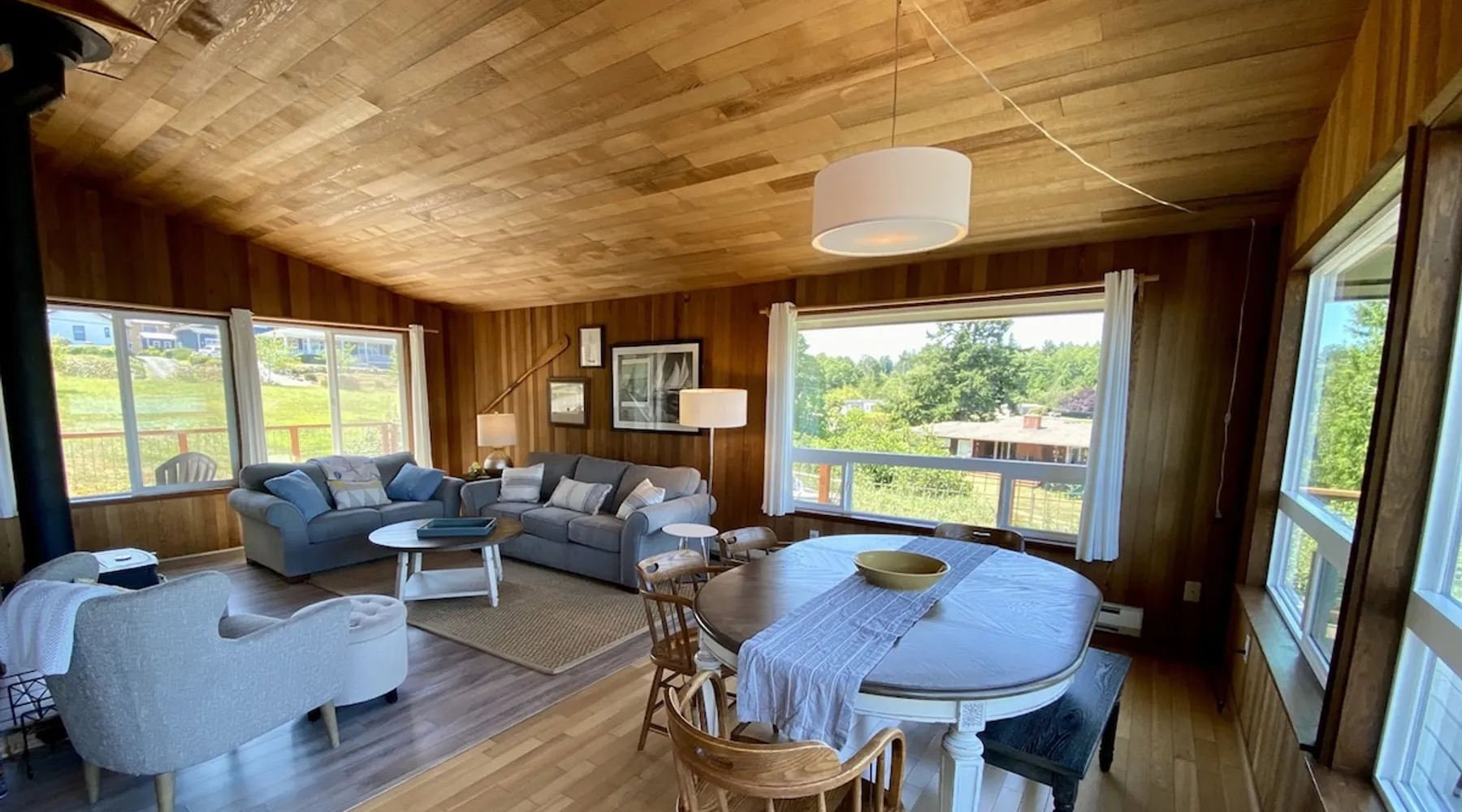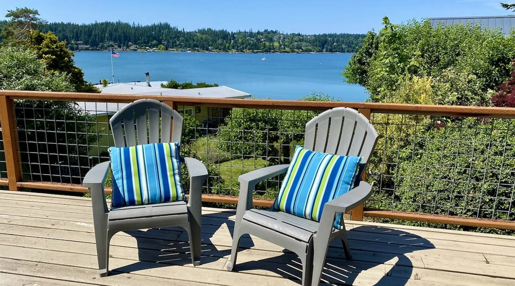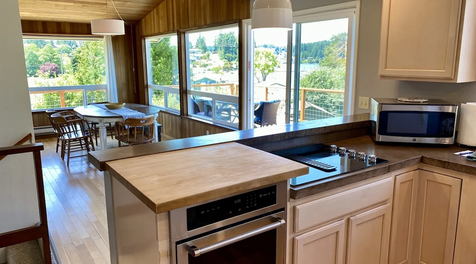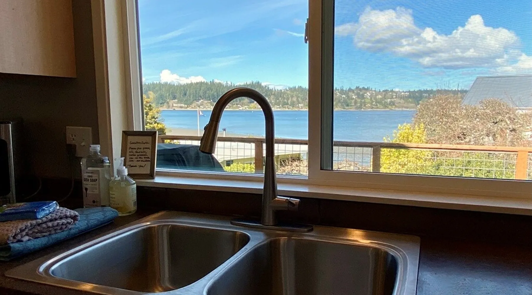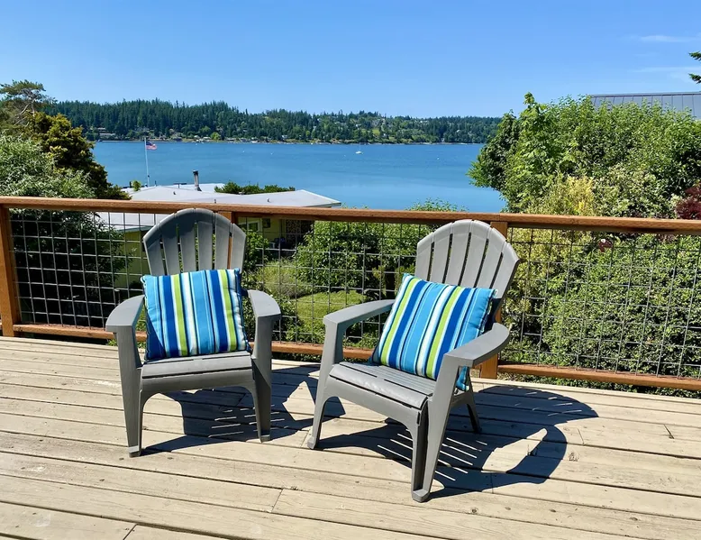 Nestled on a private lane, on Whidbey Island (near Seattle, WA), this water view home has a private beach on beautiful Holmes Harbor. Experience the best of the Pacific Northwest as you launch your kayak or build a sandcastle right on the tidal beach. This is a fantastic beach house for families, sabbaticals, or couples. All are welcome at A Home On The Harbor. The space A Home On The Harbor is thoughtfully designed with comfort and simplicity in mind. Featuring comfortable beds, soft luxury linens, black out blinds in the bedrooms, and a complete cook's kitchen. The kitchen is well-stocked with quality stainless cookware, electric griddle, drip coffee maker and grinder, Keurig, electric tea kettle, toaster oven, blender, crockpot, sharp knives and much more. Grill out on the deck with the Weber gas grill as you watch for seals, enjoy s'mores around the campfire outside, or snuggle up with a good book around the wood-burning stove inside. Our bathrooms have just been beautifully refreshed. The upstairs bath now features new double sinks and quartz countertops with beautiful new flooring for both baths. In keeping with the intentional simplicity of the home we do not have any televisions, but we do have WiFi and cell phone reception. There are also lots of games, books and puzzles for your use. Upstairs: queen bedroom, bath, kitchen, living and dining. Downstairs: queen bedroom, double bunk bed room, bath, family room, laundry. Guest access A Home On The Harbor has easy access to the privately owned tidal beach. The simple path and only 9 steps down is just hard to beat and it is so easy for all ages to use. Our beach is a great place to launch your kayak or paddle board from or to just stroll along during sunset. Searching for sea treasures, sandcastles and digging for clams are great summer fun! You can watch the resident bald eagles and listen to the waves all from the comfort of the large deck. There is also a very nice lawn for games and picnics under the apple tree. Apples, blackberries, herbs and rhubarb are available for your seasonal use. Our home is in a very quiet and peaceful setting. We love our perfect location to dining and shopping, too. You can leave the car parked and walk to cafes and shopping! You can also grab energetic young ones and take an easy walk to the fantastic playground at Freeland Park. We really have the best of both worlds with nature at the beach and enjoyment at the shops all within walking distance. We also enjoy our central location to island attractions like Langley, Coupeville, Greenbank Farm, Wineries, and other great beaches and parks like Double Bluff Park and South Whidbey State Park. Other things to note Well-behaved pets are welcome on approval, $100 fee per pet. Limit 2. We host up to 4 adults and 4 children at a time. We ask that all guests fill out our contact form and rental agreement at booking. You have found the perfect beach house for you and your loved ones so you can relax and restore. Leave your worries on the mainland; you're on island time now.