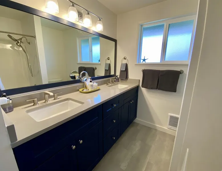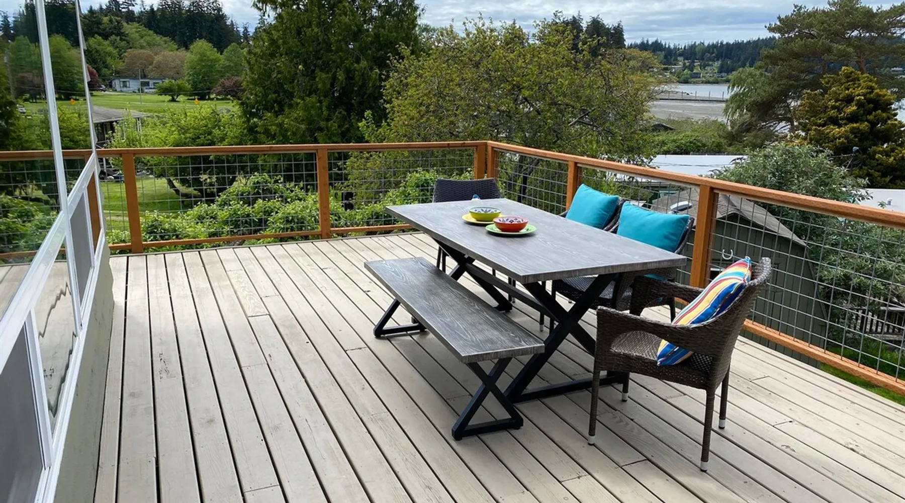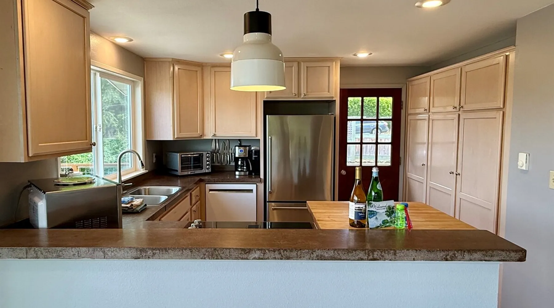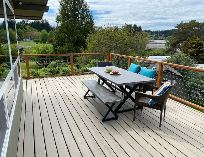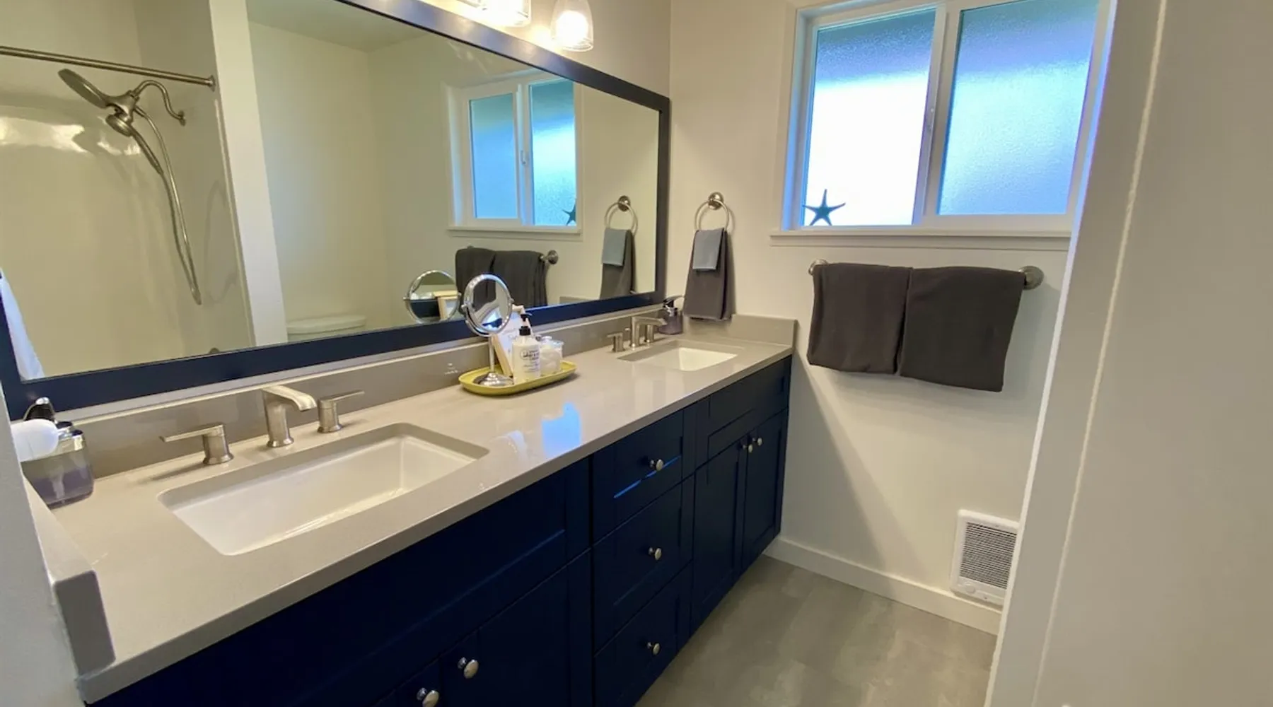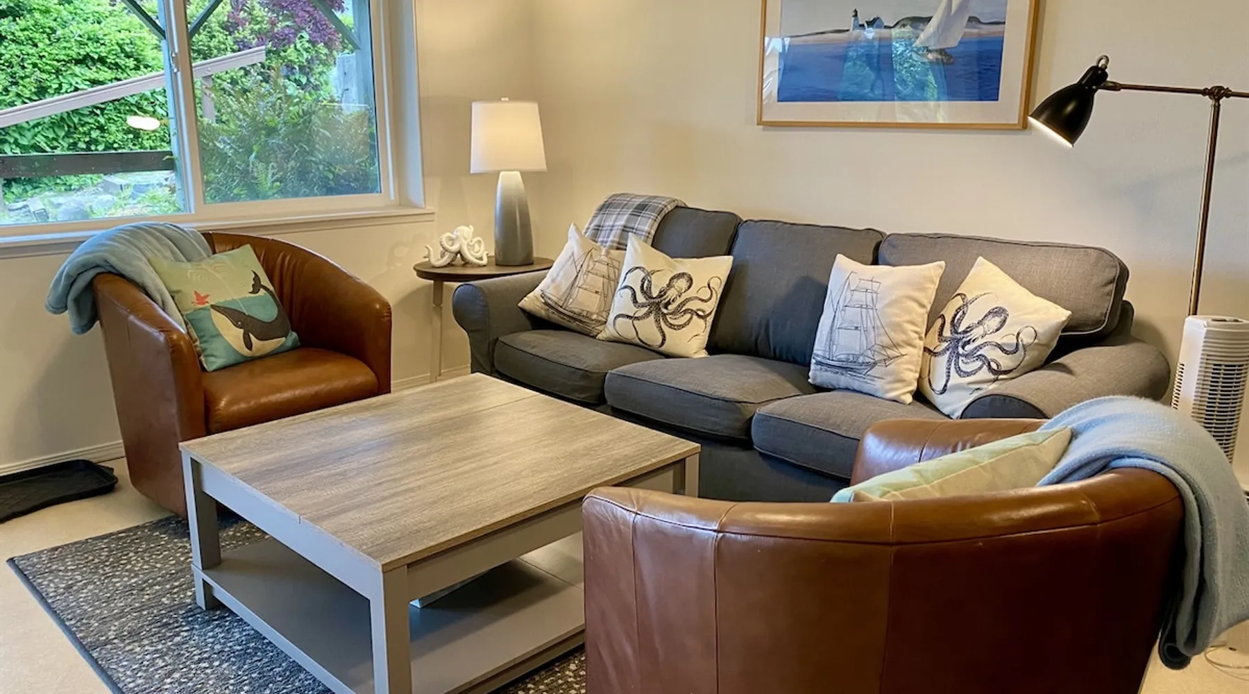 Nestled on a private lane, on Whidbey Island (near Seattle, WA), this water view home has a private beach on beautiful Holmes Harbor. Experience the best of the Pacific Northwest as you launch your kayak or build a sandcastle right on the tidal beach. This is a fantastic beach house for families, sabbaticals, or couples. All are welcome at A Home On The Harbor. The space A Home On The Harbor is thoughtfully designed with comfort and simplicity in mind. Featuring comfortable beds, soft luxury linens, black out blinds in the bedrooms, and a complete cook's kitchen. The kitchen is well-stocked with quality stainless cookware, electric griddle, drip coffee maker and grinder, Keurig, electric tea kettle, toaster oven, blender, crockpot, sharp knives and much more. Grill out on the deck with the Weber gas grill as you watch for seals, enjoy s'mores around the campfire outside, or snuggle up with a good book around the wood-burning stove inside. Our bathrooms have just been beautifully refreshed. The upstairs bath now features new double sinks and quartz countertops with beautiful new flooring for both baths. In keeping with the intentional simplicity of the home we do not have any televisions, but we do have WiFi and cell phone reception. There are also lots of games, books and puzzles for your use. Upstairs: queen bedroom, bath, kitchen, living and dining. Downstairs: queen bedroom, double bunk bed room, bath, family room, laundry. Guest access A Home On The Harbor has easy access to the privately owned tidal beach. The simple path and only 9 steps down is just hard to beat and it is so easy for all ages to use. Our beach is a great place to launch your kayak or paddle board from or to just stroll along during sunset. Searching for sea treasures, sandcastles and digging for clams are great summer fun! You can watch the resident bald eagles and listen to the waves all from the comfort of the large deck. There is also a very nice lawn for games and picnics under the apple tree. Apples, blackberries, herbs and rhubarb are available for your seasonal use. Our home is in a very quiet and peaceful setting. We love our perfect location to dining and shopping, too. You can leave the car parked and walk to cafes and shopping! You can also grab energetic young ones and take an easy walk to the fantastic playground at Freeland Park. We really have the best of both worlds with nature at the beach and enjoyment at the shops all within walking distance. We also enjoy our central location to island attractions like Langley, Coupeville, Greenbank Farm, Wineries, and other great beaches and parks like Double Bluff Park and South Whidbey State Park. Other things to note Well-behaved pets are welcome on approval, $100 fee per pet. Limit 2. We host up to 4 adults and 4 children at a time. We ask that all guests fill out our contact form and rental agreement at booking. You have found the perfect beach house for you and your loved ones so you can relax and restore. Leave your worries on the mainland; you're on island time now.