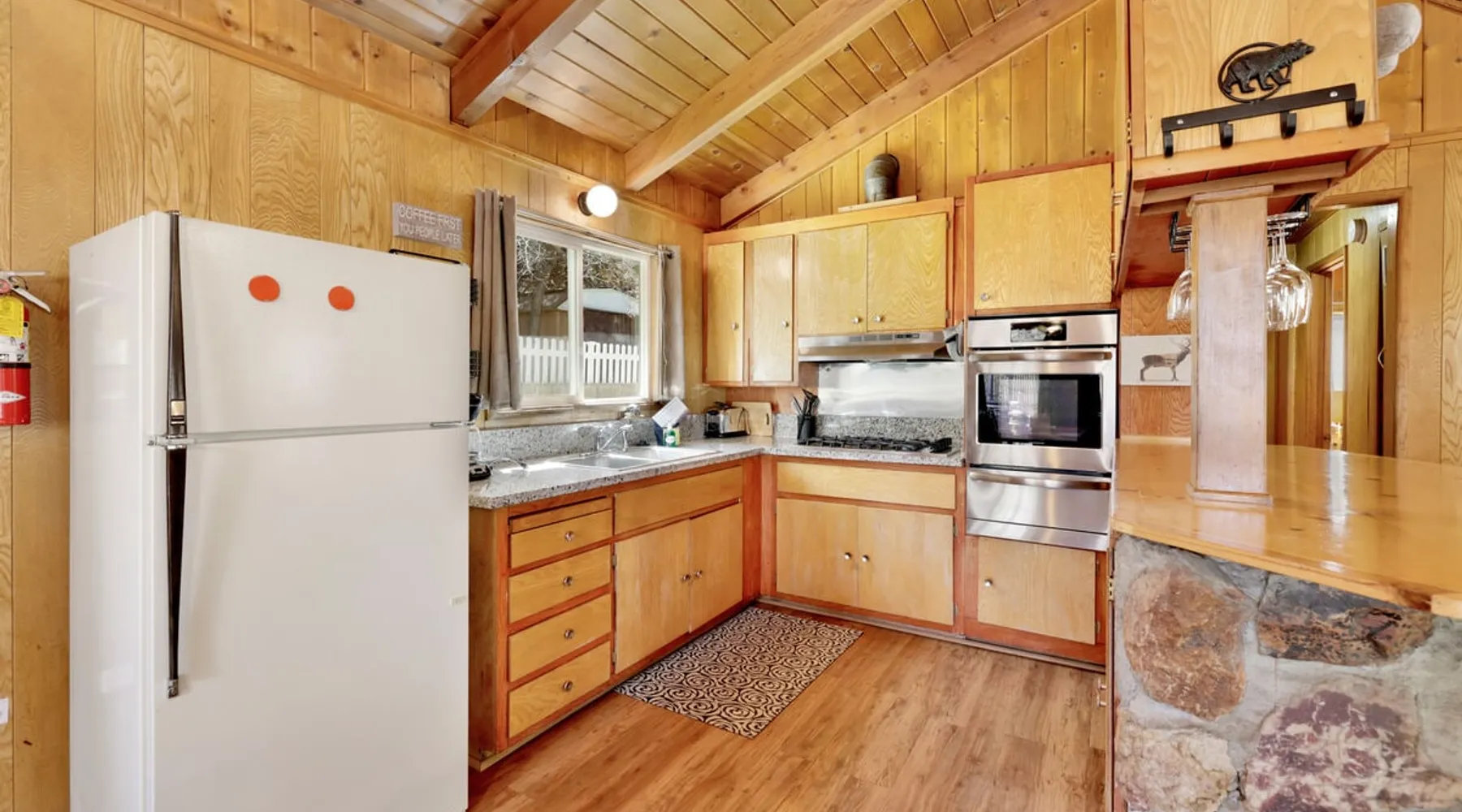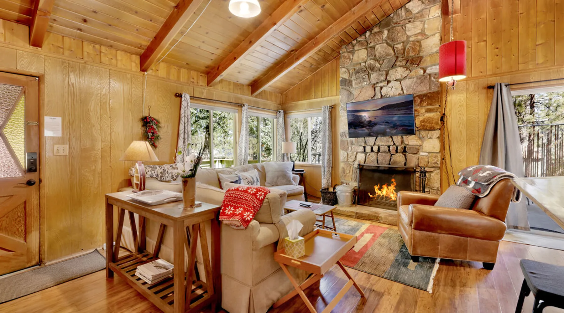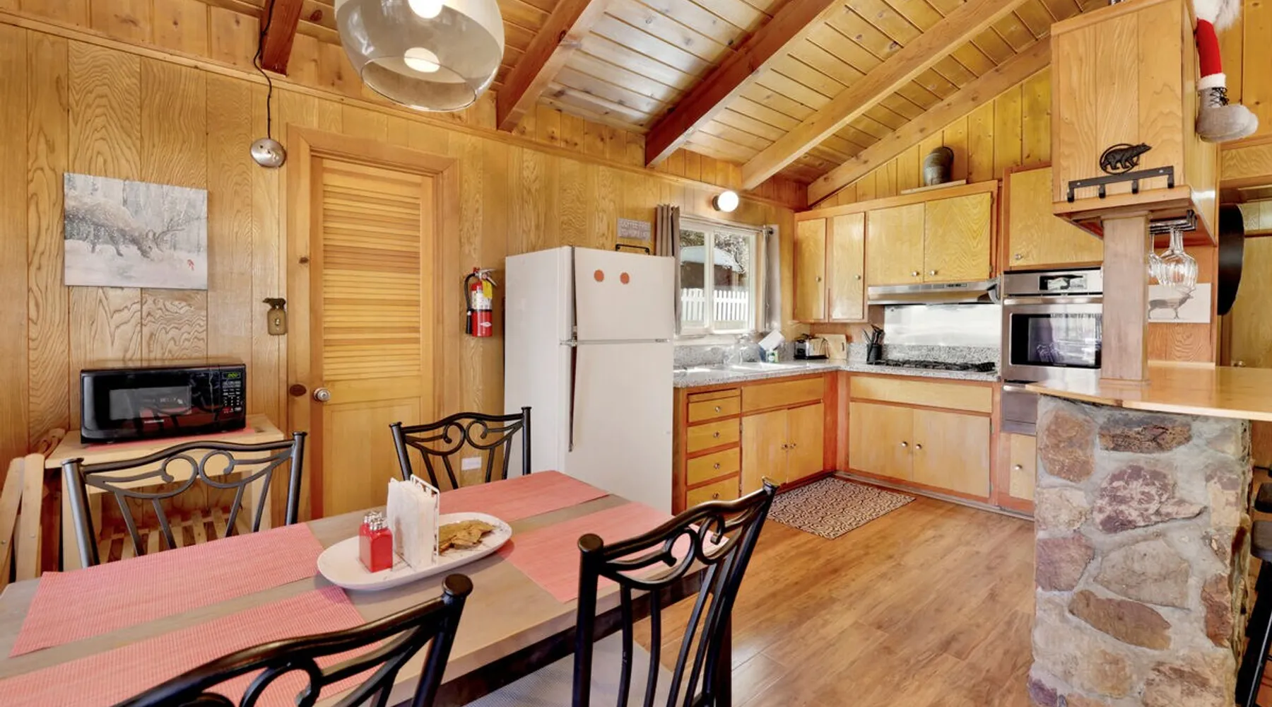 Perfect for a small family or group of friends to enjoy the best of Big Bear under soaring pine trees and shooting stars our Marin Getaway is a furnished downtown Village retreat that is oozing with comfort and style for you to enjoy making memories together in the mountains any time of the year. Necessities and essentials are included while you enjoy your fenced pet friendly yard and quiet neighborhood. Walk to the Village or lake or hop in the car and you're under ten minutes to activities. The space Marin Getaway | Cozy Walk to Lake Village Retreat Perfect for a small family or a couple of friends looking to experience a wonderful mountain vacation at Big Bear, Marin Getaway is the ultimate vacation home, perfectly nestled hillside under the pines within a quiet off-street neighborhood near the downtown Village and the lake, you will have the best of local activities right at your fingertips. Enjoy a quick stroll over to Big Bear Village for shopping, dining, and entertainment options or grab a bike or kayak from local Get-Boards and hit the lake for the day! Entering your charming cabin you are immediately greeted with mountain ski lodge vibes, hardwood floors, and knotty pine accents within your cozy living room that is ready for you to relax around the toasty wood burning fireplace and pop on a movie on the flat screen TV with hi speed WIFI internet provided for your enjoyment. (Guests must have their own accounts to enjoy Streaming Services.) The chef of your group will love the freshly remodeled kitchen available and stocked for your home cooked meal preparations, ordained with new stainless appliances, cookware, and a custom stone breakfast bar with stools to ensure you can dine in comfort. Being a single level chalet you will have convenient access to both sleeping quarters and your hallway full bathroom, both are made up for your group's arrival with warm linens, blankets, pillows, and fresh towels for your visit. Venturing outside you will find a relaxing patio and backyard area, completely fenced and very quiet. Enjoy relaxing in the evenings and grilling up your freshly caught dinner from the lake on the propane BBQ under the pines. This is also the perfect spot to sip your first cup of coffee in the morning among the birds before you head out for fun for the day. Marin Getaway is fully furnished from head to toe with your vacation stay in mind, pairing the ultimate downtown location with the necessities needed for an amazing vacation to the mountains. Sleeping Arrangements: Bedroom 1: King Bed Bedroom 2: Two Twin Beds Bathroom Arrangements: Hallway Full Bath -Sleeps 4 -2 Cars Driveway Parking -2 Pets Welcome w/ Additional Fee -864 Total Square Feet City Permit #: VRR-2024-0204 Registration Details 2024-0204