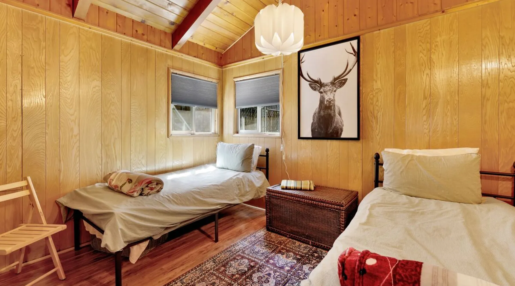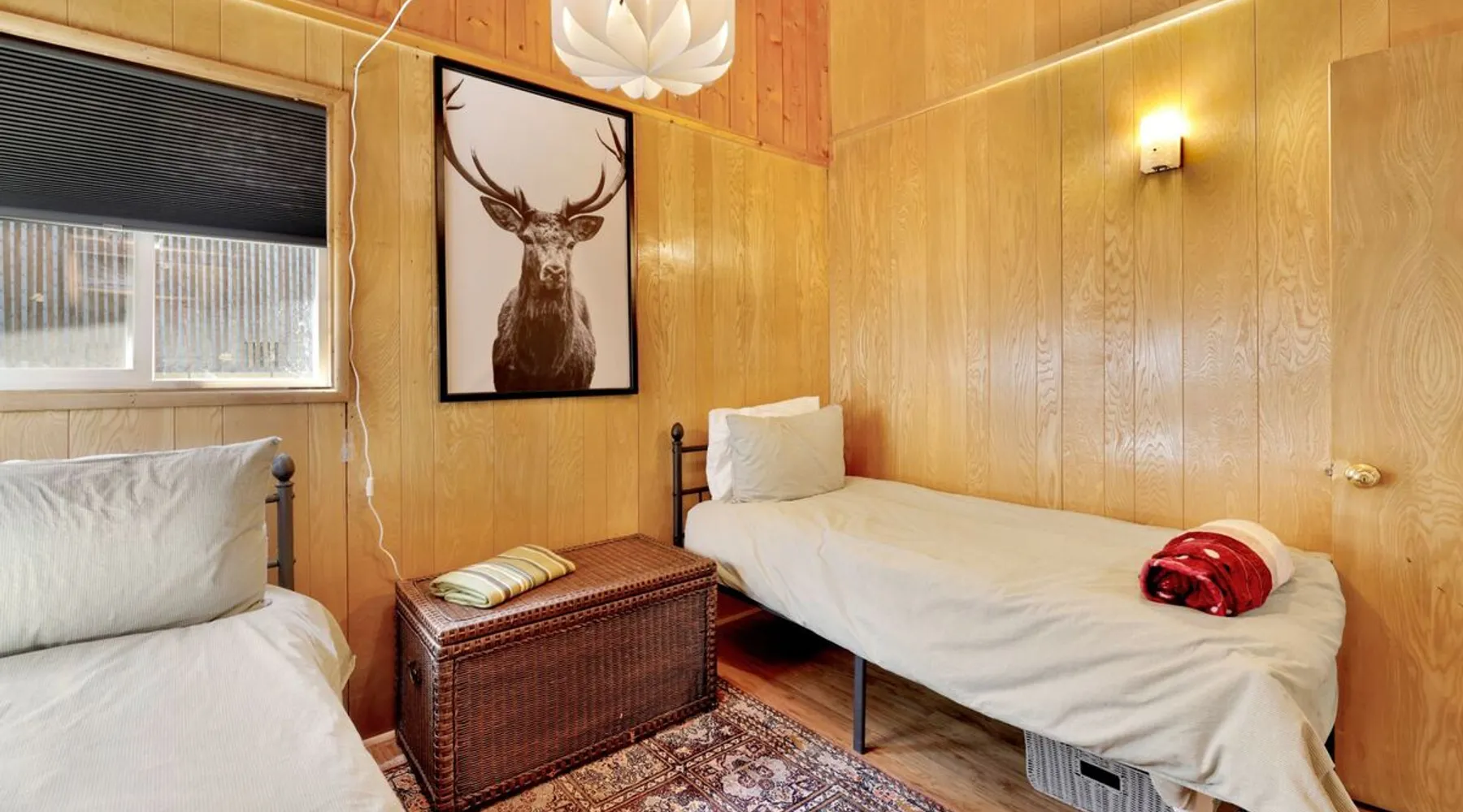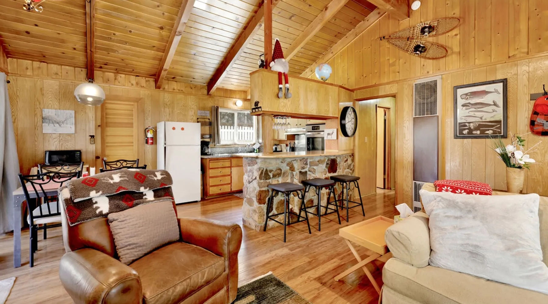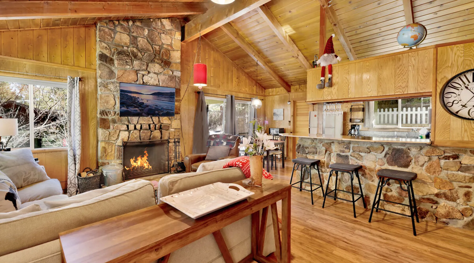 Perfect for a small family or group of friends to enjoy the best of Big Bear under soaring pine trees and shooting stars our Marin Getaway is a furnished downtown Village retreat that is oozing with comfort and style for you to enjoy making memories together in the mountains any time of the year. Necessities and essentials are included while you enjoy your fenced pet friendly yard and quiet neighborhood. Walk to the Village or lake or hop in the car and you're under ten minutes to activities. The space Marin Getaway | Cozy Walk to Lake Village Retreat Perfect for a small family or a couple of friends looking to experience a wonderful mountain vacation at Big Bear, Marin Getaway is the ultimate vacation home, perfectly nestled hillside under the pines within a quiet off-street neighborhood near the downtown Village and the lake, you will have the best of local activities right at your fingertips. Enjoy a quick stroll over to Big Bear Village for shopping, dining, and entertainment options or grab a bike or kayak from local Get-Boards and hit the lake for the day! Entering your charming cabin you are immediately greeted with mountain ski lodge vibes, hardwood floors, and knotty pine accents within your cozy living room that is ready for you to relax around the toasty wood burning fireplace and pop on a movie on the flat screen TV with hi speed WIFI internet provided for your enjoyment. (Guests must have their own accounts to enjoy Streaming Services.) The chef of your group will love the freshly remodeled kitchen available and stocked for your home cooked meal preparations, ordained with new stainless appliances, cookware, and a custom stone breakfast bar with stools to ensure you can dine in comfort. Being a single level chalet you will have convenient access to both sleeping quarters and your hallway full bathroom, both are made up for your group's arrival with warm linens, blankets, pillows, and fresh towels for your visit. Venturing outside you will find a relaxing patio and backyard area, completely fenced and very quiet. Enjoy relaxing in the evenings and grilling up your freshly caught dinner from the lake on the propane BBQ under the pines. This is also the perfect spot to sip your first cup of coffee in the morning among the birds before you head out for fun for the day. Marin Getaway is fully furnished from head to toe with your vacation stay in mind, pairing the ultimate downtown location with the necessities needed for an amazing vacation to the mountains. Sleeping Arrangements: Bedroom 1: King Bed Bedroom 2: Two Twin Beds Bathroom Arrangements: Hallway Full Bath -Sleeps 4 -2 Cars Driveway Parking -2 Pets Welcome w/ Additional Fee -864 Total Square Feet City Permit #: VRR-2024-0204 Registration Details 2024-0204