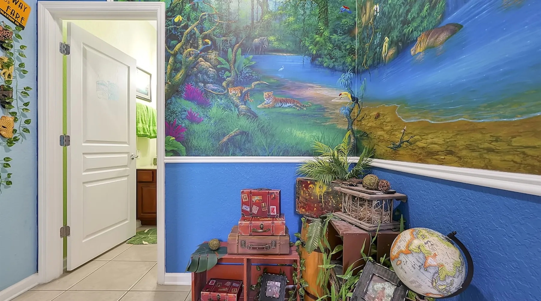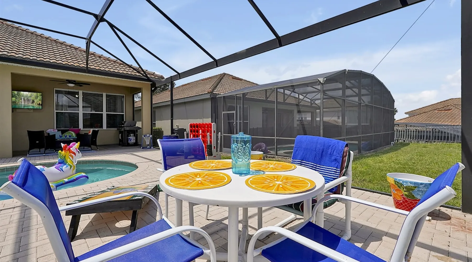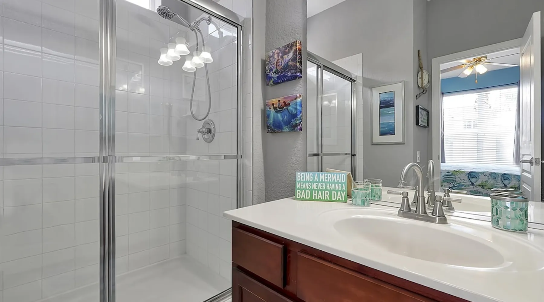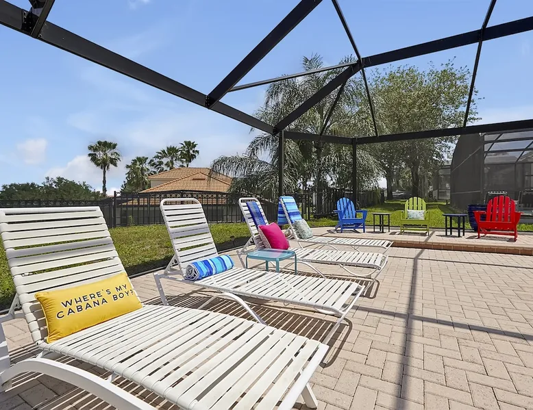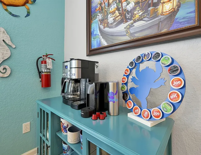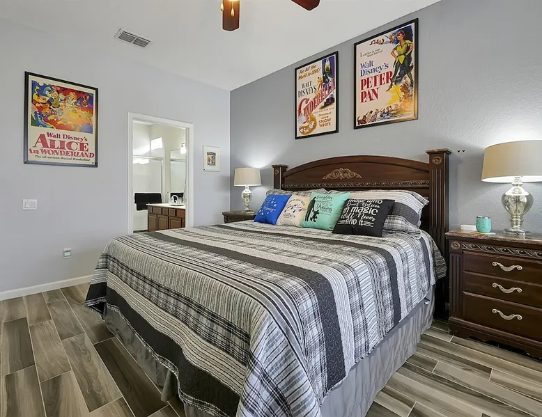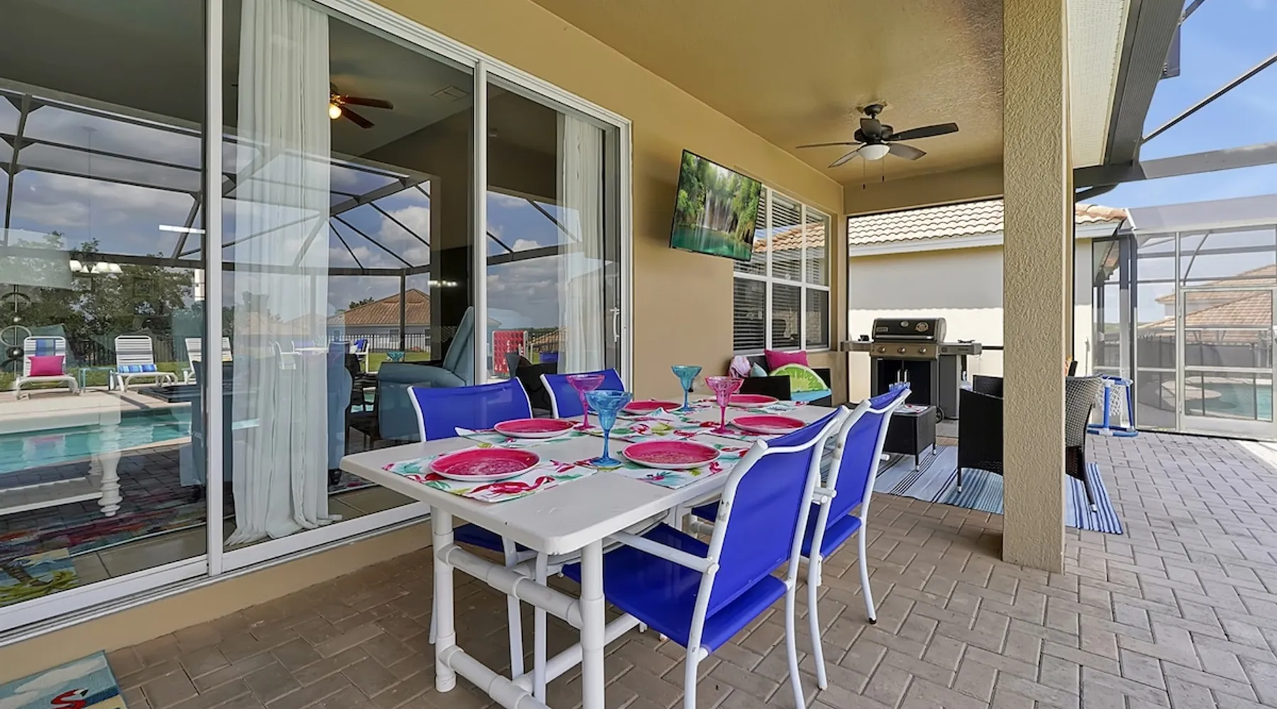 Lilo’s Paradise is a great place for large families who want to enjoy the ultimate convenience and relaxation. With a private pool, comfy themed bedrooms, a fun game room, a full kitchen, and many amenities that come with the gated community, there’s something for the whole family! Plus, you’ll be just a short drive from famous attractions. Disney World - 9 min drive Old Town - 14 min drive Fun Spot America - 15 min drive Create Lasting Memories In Kissimmee With Us & Learn More Below! The space ☆☆ HIGHLIGHTS ☆☆ ✹ 5 themed bedrooms; 3 kings, 1 bunk bed, 2 twins ✹ 5 full bathrooms ✹ Open floor plan ✹ Fully equipped kitchen w/ stainless appliances ✹ Coffee station ✹ Bright living room ✹ Family-friendly amenities ✹ Free wifi + flat-screen Smart TVs ✹ Pirates of the Caribbean themes Game room w/ mural, pool table, arcade game, PS4, Xbox One, and foosball. ✹ Washer + dryer ✹ Expansive outdoor patio (one of the largest pool decks in Windsor Hills) ✹ Private heated swimming pool + hot tub (complimentary heating) ✹ Sun loungers + outdoor TV ✹ Outdoor dining tables + BBQ (complimentary propane) ✹ Free parking for 3 vehicles at the home. ✹ Free access to Windsor Hills amenities including a waterpark, gym, pools + more! Eager to Read More? Here Are A Few Kind Words From Our Previous Guests: “Chuck and Deanna were very responsive and helpful. They met all of our needs. The home was super comfy with lots and lots of cooking stuff. The sun deck was amazing, the pool was incredible, outdoor entertainment was excellent! I love the keepsake the most!! We'll be back soon!” - Latoyor (Other listing) “Chuck and Deanna are great hosts! They are very friendly and try to help with everything you need. The house is very clean and very good equipped. The best part of the house is the big deck with the pool. The pool was heated and my kids spent all day playing in the pool. Thank you Deanna to make our vacation wonderful! :)” - Mihaela “Hands down some of the best hosts I have ever rented from. The communication from Chuck and Deanna has been second to none. The house was well stocked and was the perfect place for our dance team to stay while in town for the Dance Worlds.” - Sheila (Other listing) ★★ BEDROOMS ★★ This private oasis features five thoughtfully designed and welcoming bedrooms, each with a fun theme and comfy beds topped with plush mattresses and high-end linens. No matter which room you’re in, you’ll have a ceiling fan, a TV with cable and a Roku, and easy access to a full bathroom. ✹ Primary bedroom (Vintage Disney theme): King-sized bed, ensuite bathroom ✹ Second bedroom (Jungle Cruise theme): Custom-built bunk beds sleep 3 guests in twin beds (two “top” bunks, one “low” bunk, fun mural ✹ Third bedroom (Under The Sea theme): King-sized bed, ensuite bathroom, walk-in shower, water closet ✹ Fourth bedroom (Tiki Theme): King-sized bed ✹ Fifth bedroom (Moana Theme): 2 twin beds ★★ BATHROOMS ★★ Lilo’s Paradise boasts five full bathrooms, providing ample space for the whole family to get ready for an exciting day at a theme park. Each bathroom is stocked with fresh towels and has plenty of storage space to unpack all your toiletries. ✹ Bathroom 1: Ensuite to the primary bedroom, dual vanity, walk-in shower, water closet ✹ Bathroom 2: Jungle-themed, single vanity, shower/tub combination ✹ Bathroom 3: Ensuite to the Under The Sea room, single vanity, walk-in shower, water closet ✹ Bathroom 4: Tiki theme, single vanity, shower/tub combination ✹ Bathroom 5: Moana theme single vanity, shower/tub combination ✔ Fresh towels ✔ Hair dryer ✔ Washer and dryer ✔ Iron ★★ KITCHEN & DINING ★★ Make delicious meals in the kitchen when you’re not trying some of the nearby restaurants. You’ll love the stainless steel appliances, granite countertops, and open-concept layout, making it easy to keep the conversation flowing between the lounge space and kitchen. A variety of basic kitchen supplies are provided to start you off, including spices, coffee, tea, coffee filters, salt and pepper, napkins, and cleaning supplies. When you’re ready to eat, you’ll find various areas to eat, including at the kitchen counter, at the small bistro table, around the formal dining table, or at the outdoor dining table. ✔ Stainless steel appliances and granite counters ✔ Full-size fridge and freezer ✔ Dishwasher, oven, stove, microwave ✔ Coffee station with coffee, tea, and coffee filters ✔ Basic spices, salt, and pepper ✔ Kitchen counter with seating for 2 ✔ Small dinette for 4 ✔ Dining table for 6 ★★ LIVING ROOM ★★ The charming living room is the perfect place to enjoy a small break from the Florida sun. Sit back on the sofa and watch your favorite movie on the Smart TV, enjoy some games or chit-chat with your companions, or catch up with friends back home using the free wifi. ✔ Plush sofa, loveseat, and chair ✔ 65” smart TV ✔ Free wifi ✔ High ceilings and huge windows ✔ Patio access ★★ GAME ROOM ★★ Enjoy some friendly competition in the Super Hero themed game room. This converted garage features a pool table, game consoles, a 3-TV gaming station, and an arcade game to keep your group entertained for hours on end. This is a perfect spot to keep the kids busy while the adults enjoy some grown-up time. ✔ Pool table ✔ 3-TV game station with Xbox One and PS4 ✔ Multi-game arcade game ✔ Wooden train table ★★ OUTDOOR SPACE ★★ Step out onto the expansive patio and enjoy outdoor living at its finest. The patio has been extended 17 feet behind the pool so you can enjoy even more of this private oasis without being bothered by bugs. A bonus of this outdoor area is the impressive view of the Magic Kingdom fireworks at night (when they’re running). Spend days in the pool and basking in the sunshine on the southern-facing deck, and evenings in the hot tub after enj