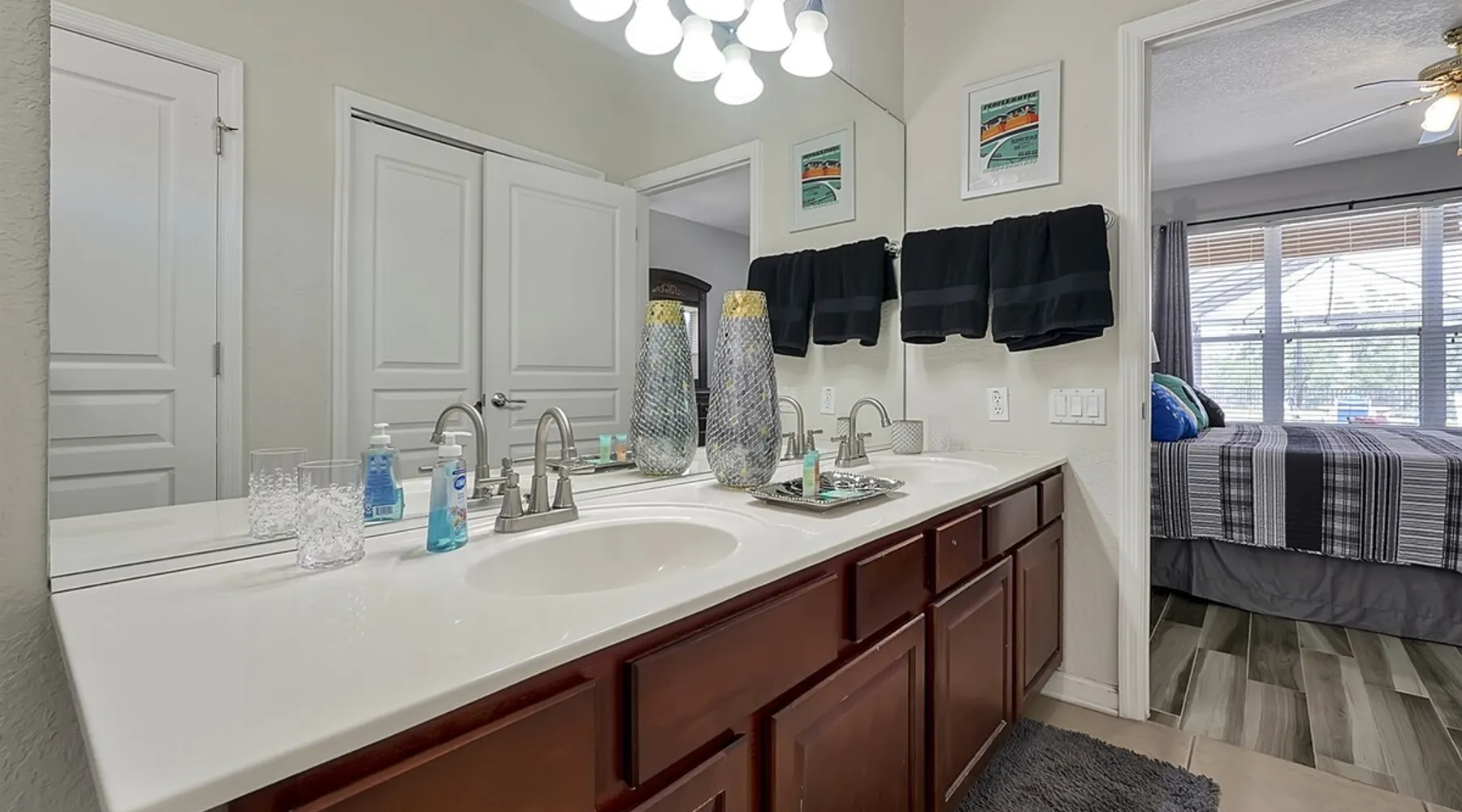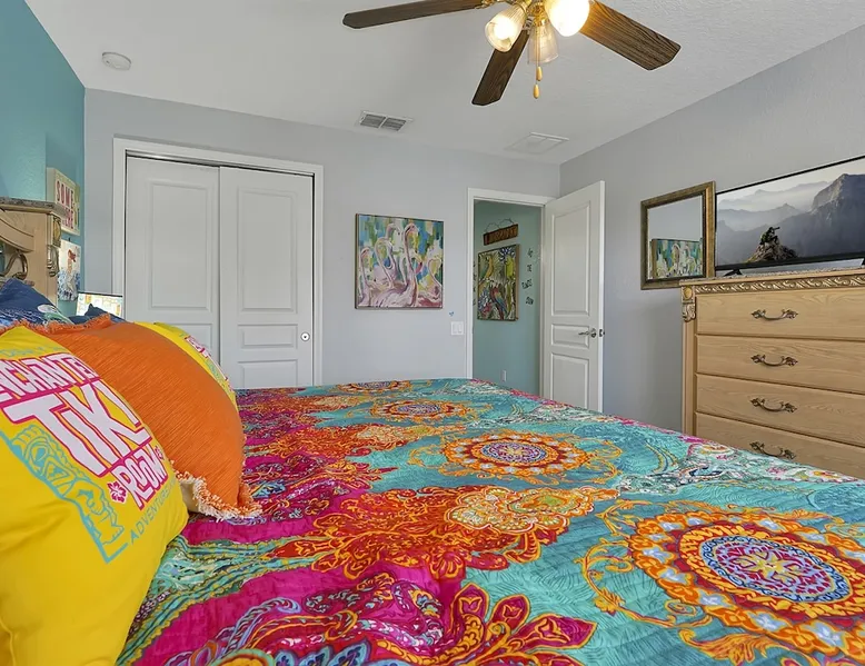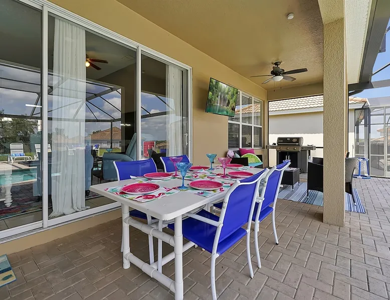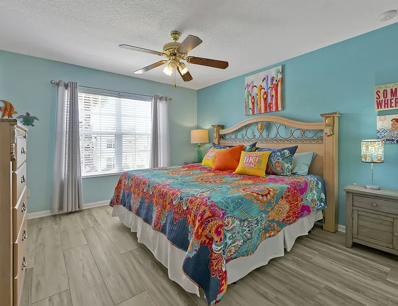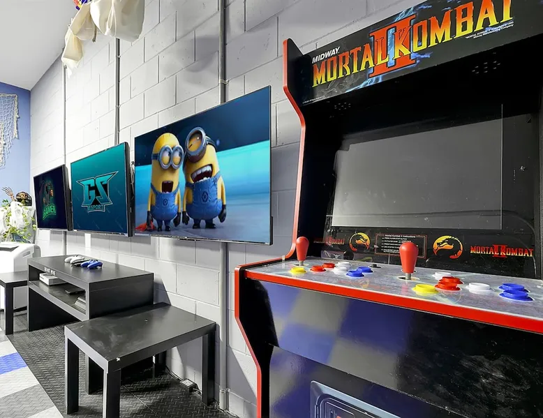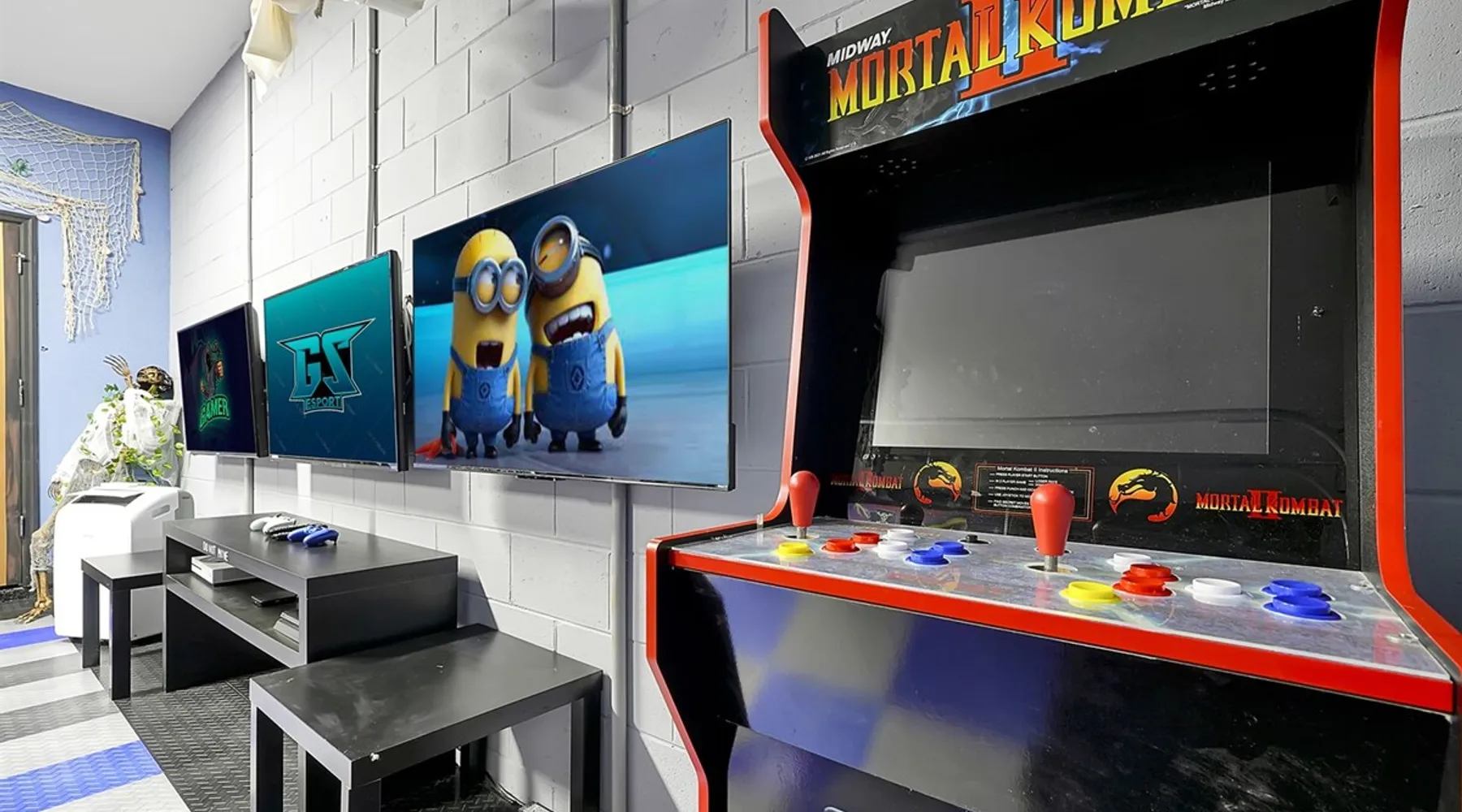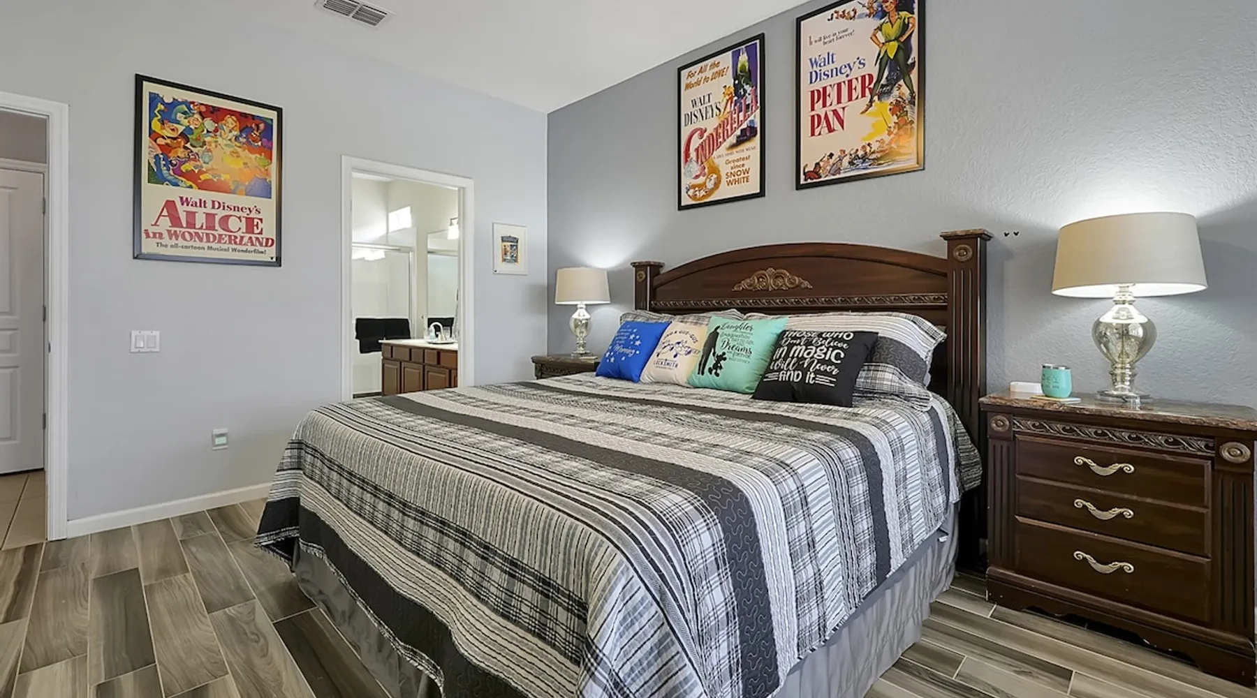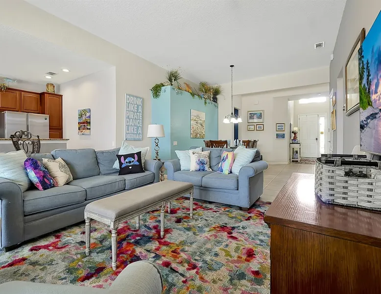 Lilo’s Paradise is a great place for large families who want to enjoy the ultimate convenience and relaxation. With a private pool, comfy themed bedrooms, a fun game room, a full kitchen, and many amenities that come with the gated community, there’s something for the whole family! Plus, you’ll be just a short drive from famous attractions. Disney World - 9 min drive Old Town - 14 min drive Fun Spot America - 15 min drive Create Lasting Memories In Kissimmee With Us & Learn More Below! The space ☆☆ HIGHLIGHTS ☆☆ ✹ 5 themed bedrooms; 3 kings, 1 bunk bed, 2 twins ✹ 5 full bathrooms ✹ Open floor plan ✹ Fully equipped kitchen w/ stainless appliances ✹ Coffee station ✹ Bright living room ✹ Family-friendly amenities ✹ Free wifi + flat-screen Smart TVs ✹ Pirates of the Caribbean themes Game room w/ mural, pool table, arcade game, PS4, Xbox One, and foosball. ✹ Washer + dryer ✹ Expansive outdoor patio (one of the largest pool decks in Windsor Hills) ✹ Private heated swimming pool + hot tub (complimentary heating) ✹ Sun loungers + outdoor TV ✹ Outdoor dining tables + BBQ (complimentary propane) ✹ Free parking for 3 vehicles at the home. ✹ Free access to Windsor Hills amenities including a waterpark, gym, pools + more! Eager to Read More? Here Are A Few Kind Words From Our Previous Guests: “Chuck and Deanna were very responsive and helpful. They met all of our needs. The home was super comfy with lots and lots of cooking stuff. The sun deck was amazing, the pool was incredible, outdoor entertainment was excellent! I love the keepsake the most!! We'll be back soon!” - Latoyor (Other listing) “Chuck and Deanna are great hosts! They are very friendly and try to help with everything you need. The house is very clean and very good equipped. The best part of the house is the big deck with the pool. The pool was heated and my kids spent all day playing in the pool. Thank you Deanna to make our vacation wonderful! :)” - Mihaela “Hands down some of the best hosts I have ever rented from. The communication from Chuck and Deanna has been second to none. The house was well stocked and was the perfect place for our dance team to stay while in town for the Dance Worlds.” - Sheila (Other listing) ★★ BEDROOMS ★★ This private oasis features five thoughtfully designed and welcoming bedrooms, each with a fun theme and comfy beds topped with plush mattresses and high-end linens. No matter which room you’re in, you’ll have a ceiling fan, a TV with cable and a Roku, and easy access to a full bathroom. ✹ Primary bedroom (Vintage Disney theme): King-sized bed, ensuite bathroom ✹ Second bedroom (Jungle Cruise theme): Custom-built bunk beds sleep 3 guests in twin beds (two “top” bunks, one “low” bunk, fun mural ✹ Third bedroom (Under The Sea theme): King-sized bed, ensuite bathroom, walk-in shower, water closet ✹ Fourth bedroom (Tiki Theme): King-sized bed ✹ Fifth bedroom (Moana Theme): 2 twin beds ★★ BATHROOMS ★★ Lilo’s Paradise boasts five full bathrooms, providing ample space for the whole family to get ready for an exciting day at a theme park. Each bathroom is stocked with fresh towels and has plenty of storage space to unpack all your toiletries. ✹ Bathroom 1: Ensuite to the primary bedroom, dual vanity, walk-in shower, water closet ✹ Bathroom 2: Jungle-themed, single vanity, shower/tub combination ✹ Bathroom 3: Ensuite to the Under The Sea room, single vanity, walk-in shower, water closet ✹ Bathroom 4: Tiki theme, single vanity, shower/tub combination ✹ Bathroom 5: Moana theme single vanity, shower/tub combination ✔ Fresh towels ✔ Hair dryer ✔ Washer and dryer ✔ Iron ★★ KITCHEN & DINING ★★ Make delicious meals in the kitchen when you’re not trying some of the nearby restaurants. You’ll love the stainless steel appliances, granite countertops, and open-concept layout, making it easy to keep the conversation flowing between the lounge space and kitchen. A variety of basic kitchen supplies are provided to start you off, including spices, coffee, tea, coffee filters, salt and pepper, napkins, and cleaning supplies. When you’re ready to eat, you’ll find various areas to eat, including at the kitchen counter, at the small bistro table, around the formal dining table, or at the outdoor dining table. ✔ Stainless steel appliances and granite counters ✔ Full-size fridge and freezer ✔ Dishwasher, oven, stove, microwave ✔ Coffee station with coffee, tea, and coffee filters ✔ Basic spices, salt, and pepper ✔ Kitchen counter with seating for 2 ✔ Small dinette for 4 ✔ Dining table for 6 ★★ LIVING ROOM ★★ The charming living room is the perfect place to enjoy a small break from the Florida sun. Sit back on the sofa and watch your favorite movie on the Smart TV, enjoy some games or chit-chat with your companions, or catch up with friends back home using the free wifi. ✔ Plush sofa, loveseat, and chair ✔ 65” smart TV ✔ Free wifi ✔ High ceilings and huge windows ✔ Patio access ★★ GAME ROOM ★★ Enjoy some friendly competition in the Super Hero themed game room. This converted garage features a pool table, game consoles, a 3-TV gaming station, and an arcade game to keep your group entertained for hours on end. This is a perfect spot to keep the kids busy while the adults enjoy some grown-up time. ✔ Pool table ✔ 3-TV game station with Xbox One and PS4 ✔ Multi-game arcade game ✔ Wooden train table ★★ OUTDOOR SPACE ★★ Step out onto the expansive patio and enjoy outdoor living at its finest. The patio has been extended 17 feet behind the pool so you can enjoy even more of this private oasis without being bothered by bugs. A bonus of this outdoor area is the impressive view of the Magic Kingdom fireworks at night (when they’re running). Spend days in the pool and basking in the sunshine on the southern-facing deck, and evenings in the hot tub after enj