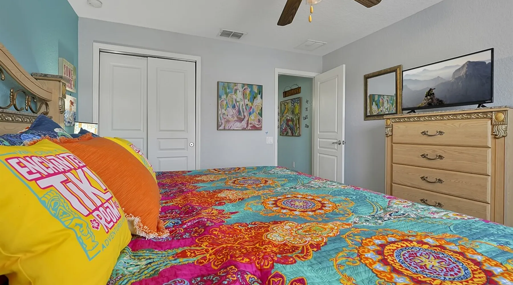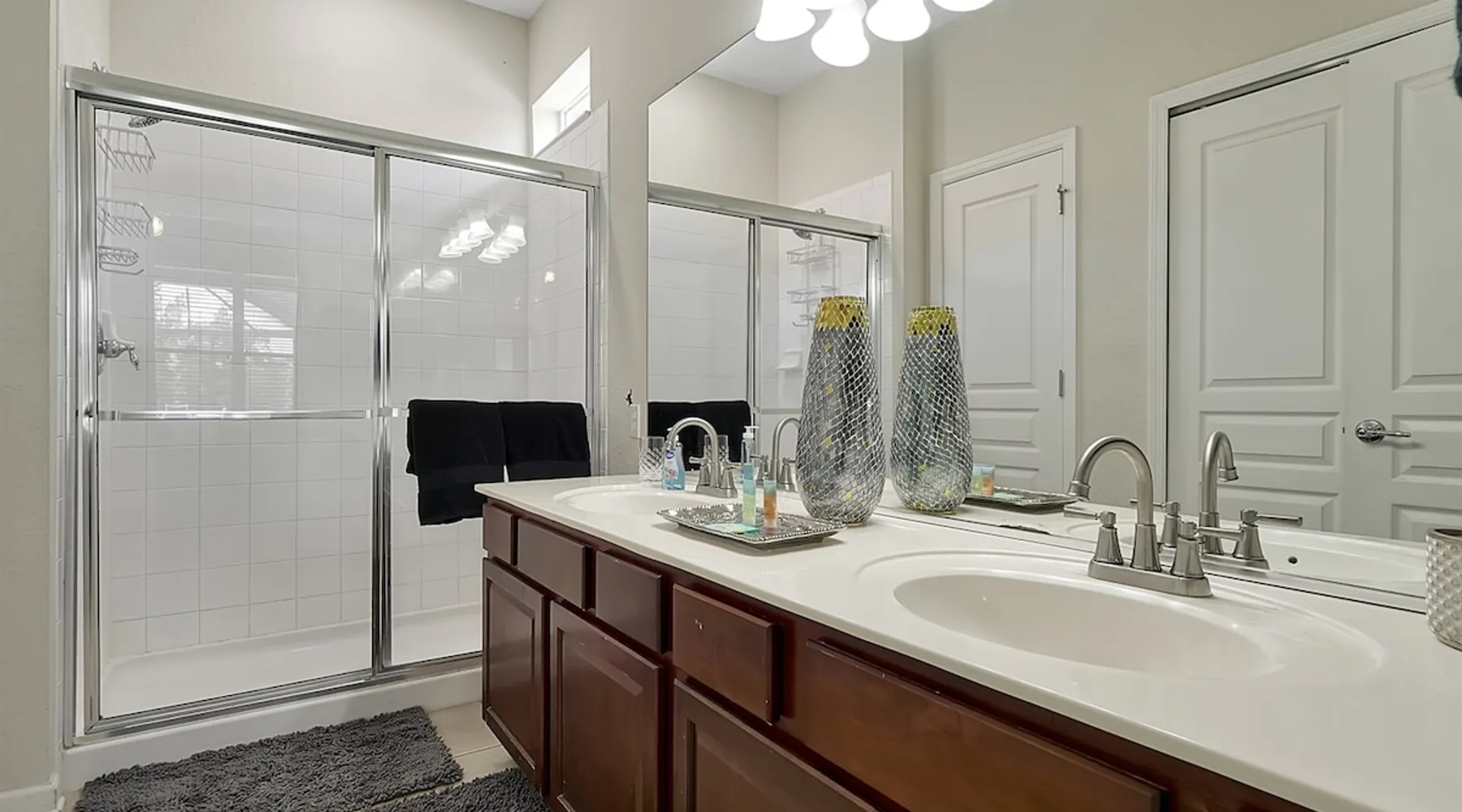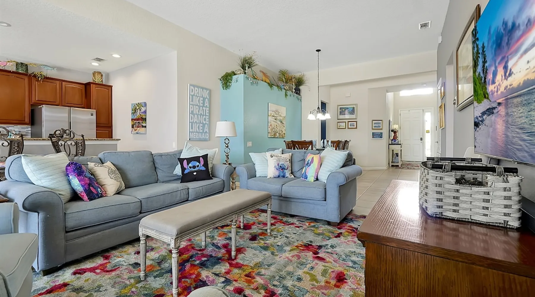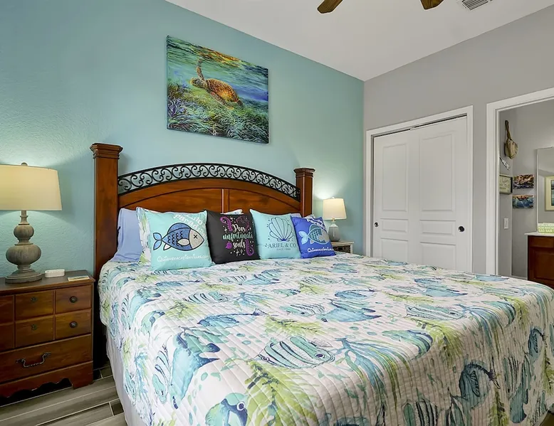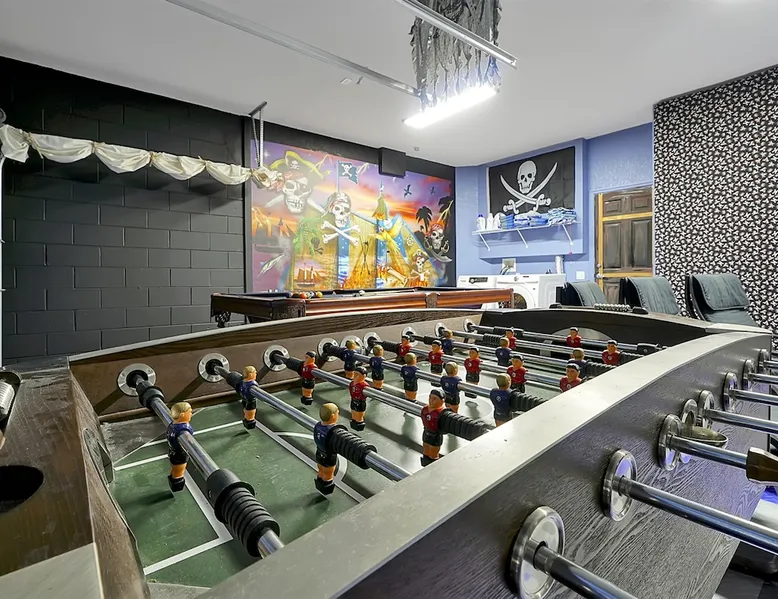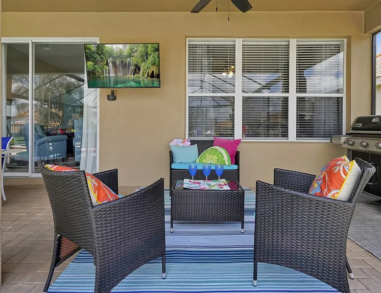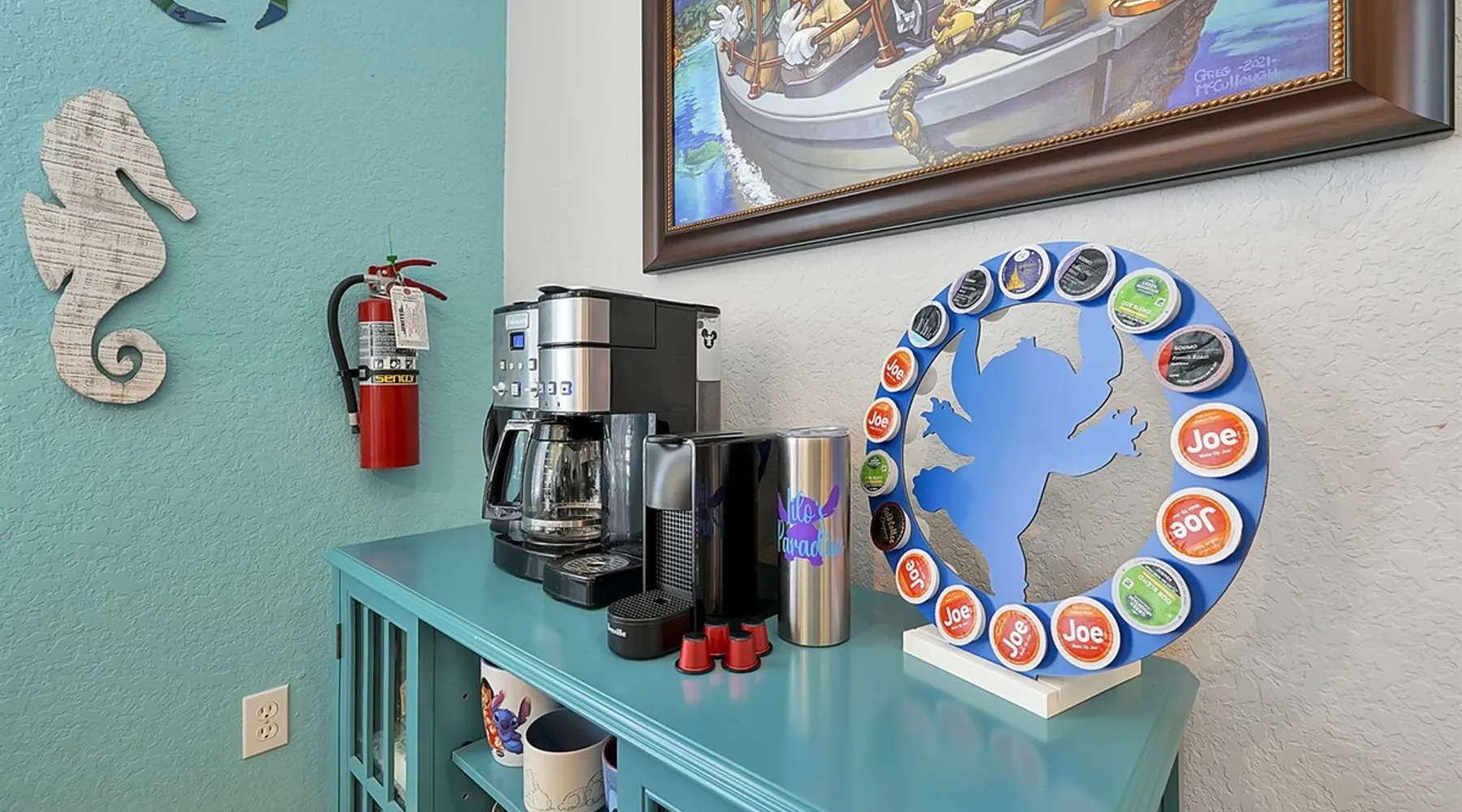 Lilo’s Paradise is a great place for large families who want to enjoy the ultimate convenience and relaxation. With a private pool, comfy themed bedrooms, a fun game room, a full kitchen, and many amenities that come with the gated community, there’s something for the whole family! Plus, you’ll be just a short drive from famous attractions. Disney World - 9 min drive Old Town - 14 min drive Fun Spot America - 15 min drive Create Lasting Memories In Kissimmee With Us & Learn More Below! The space ☆☆ HIGHLIGHTS ☆☆ ✹ 5 themed bedrooms; 3 kings, 1 bunk bed, 2 twins ✹ 5 full bathrooms ✹ Open floor plan ✹ Fully equipped kitchen w/ stainless appliances ✹ Coffee station ✹ Bright living room ✹ Family-friendly amenities ✹ Free wifi + flat-screen Smart TVs ✹ Pirates of the Caribbean themes Game room w/ mural, pool table, arcade game, PS4, Xbox One, and foosball. ✹ Washer + dryer ✹ Expansive outdoor patio (one of the largest pool decks in Windsor Hills) ✹ Private heated swimming pool + hot tub (complimentary heating) ✹ Sun loungers + outdoor TV ✹ Outdoor dining tables + BBQ (complimentary propane) ✹ Free parking for 3 vehicles at the home. ✹ Free access to Windsor Hills amenities including a waterpark, gym, pools + more! Eager to Read More? Here Are A Few Kind Words From Our Previous Guests: “Chuck and Deanna were very responsive and helpful. They met all of our needs. The home was super comfy with lots and lots of cooking stuff. The sun deck was amazing, the pool was incredible, outdoor entertainment was excellent! I love the keepsake the most!! We'll be back soon!” - Latoyor (Other listing) “Chuck and Deanna are great hosts! They are very friendly and try to help with everything you need. The house is very clean and very good equipped. The best part of the house is the big deck with the pool. The pool was heated and my kids spent all day playing in the pool. Thank you Deanna to make our vacation wonderful! :)” - Mihaela “Hands down some of the best hosts I have ever rented from. The communication from Chuck and Deanna has been second to none. The house was well stocked and was the perfect place for our dance team to stay while in town for the Dance Worlds.” - Sheila (Other listing) ★★ BEDROOMS ★★ This private oasis features five thoughtfully designed and welcoming bedrooms, each with a fun theme and comfy beds topped with plush mattresses and high-end linens. No matter which room you’re in, you’ll have a ceiling fan, a TV with cable and a Roku, and easy access to a full bathroom. ✹ Primary bedroom (Vintage Disney theme): King-sized bed, ensuite bathroom ✹ Second bedroom (Jungle Cruise theme): Custom-built bunk beds sleep 3 guests in twin beds (two “top” bunks, one “low” bunk, fun mural ✹ Third bedroom (Under The Sea theme): King-sized bed, ensuite bathroom, walk-in shower, water closet ✹ Fourth bedroom (Tiki Theme): King-sized bed ✹ Fifth bedroom (Moana Theme): 2 twin beds ★★ BATHROOMS ★★ Lilo’s Paradise boasts five full bathrooms, providing ample space for the whole family to get ready for an exciting day at a theme park. Each bathroom is stocked with fresh towels and has plenty of storage space to unpack all your toiletries. ✹ Bathroom 1: Ensuite to the primary bedroom, dual vanity, walk-in shower, water closet ✹ Bathroom 2: Jungle-themed, single vanity, shower/tub combination ✹ Bathroom 3: Ensuite to the Under The Sea room, single vanity, walk-in shower, water closet ✹ Bathroom 4: Tiki theme, single vanity, shower/tub combination ✹ Bathroom 5: Moana theme single vanity, shower/tub combination ✔ Fresh towels ✔ Hair dryer ✔ Washer and dryer ✔ Iron ★★ KITCHEN & DINING ★★ Make delicious meals in the kitchen when you’re not trying some of the nearby restaurants. You’ll love the stainless steel appliances, granite countertops, and open-concept layout, making it easy to keep the conversation flowing between the lounge space and kitchen. A variety of basic kitchen supplies are provided to start you off, including spices, coffee, tea, coffee filters, salt and pepper, napkins, and cleaning supplies. When you’re ready to eat, you’ll find various areas to eat, including at the kitchen counter, at the small bistro table, around the formal dining table, or at the outdoor dining table. ✔ Stainless steel appliances and granite counters ✔ Full-size fridge and freezer ✔ Dishwasher, oven, stove, microwave ✔ Coffee station with coffee, tea, and coffee filters ✔ Basic spices, salt, and pepper ✔ Kitchen counter with seating for 2 ✔ Small dinette for 4 ✔ Dining table for 6 ★★ LIVING ROOM ★★ The charming living room is the perfect place to enjoy a small break from the Florida sun. Sit back on the sofa and watch your favorite movie on the Smart TV, enjoy some games or chit-chat with your companions, or catch up with friends back home using the free wifi. ✔ Plush sofa, loveseat, and chair ✔ 65” smart TV ✔ Free wifi ✔ High ceilings and huge windows ✔ Patio access ★★ GAME ROOM ★★ Enjoy some friendly competition in the Super Hero themed game room. This converted garage features a pool table, game consoles, a 3-TV gaming station, and an arcade game to keep your group entertained for hours on end. This is a perfect spot to keep the kids busy while the adults enjoy some grown-up time. ✔ Pool table ✔ 3-TV game station with Xbox One and PS4 ✔ Multi-game arcade game ✔ Wooden train table ★★ OUTDOOR SPACE ★★ Step out onto the expansive patio and enjoy outdoor living at its finest. The patio has been extended 17 feet behind the pool so you can enjoy even more of this private oasis without being bothered by bugs. A bonus of this outdoor area is the impressive view of the Magic Kingdom fireworks at night (when they’re running). Spend days in the pool and basking in the sunshine on the southern-facing deck, and evenings in the hot tub after enj