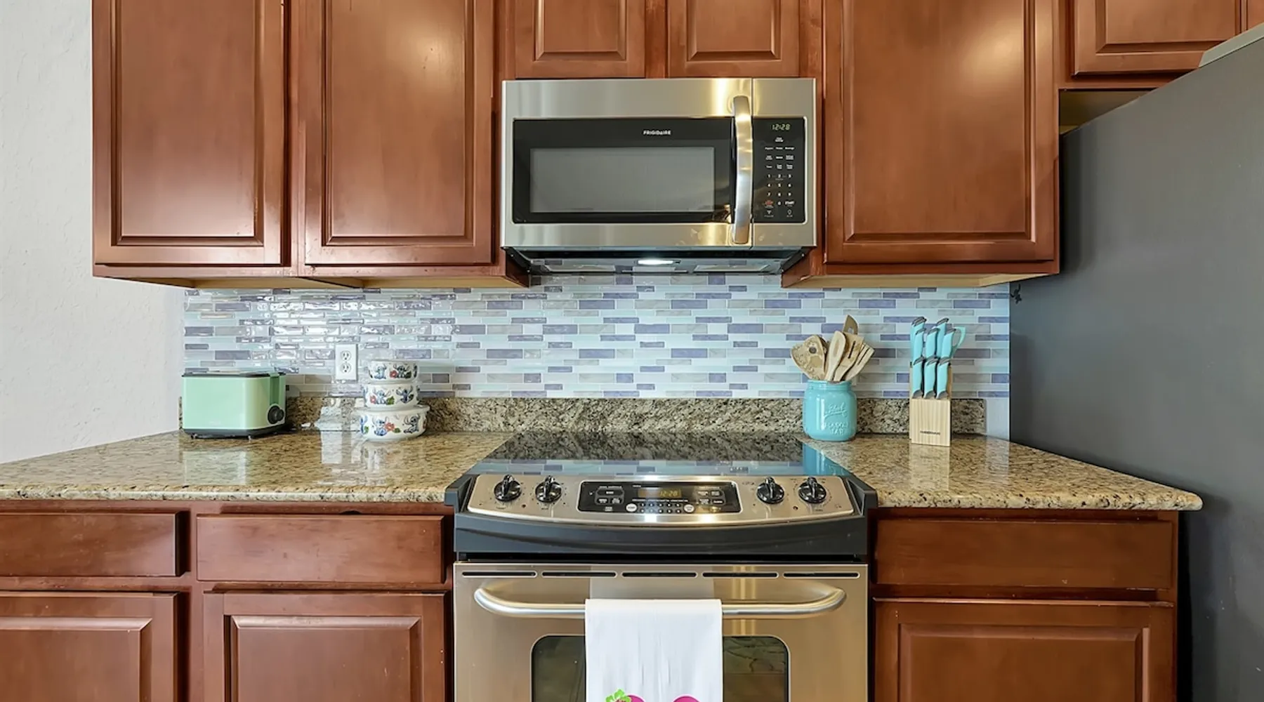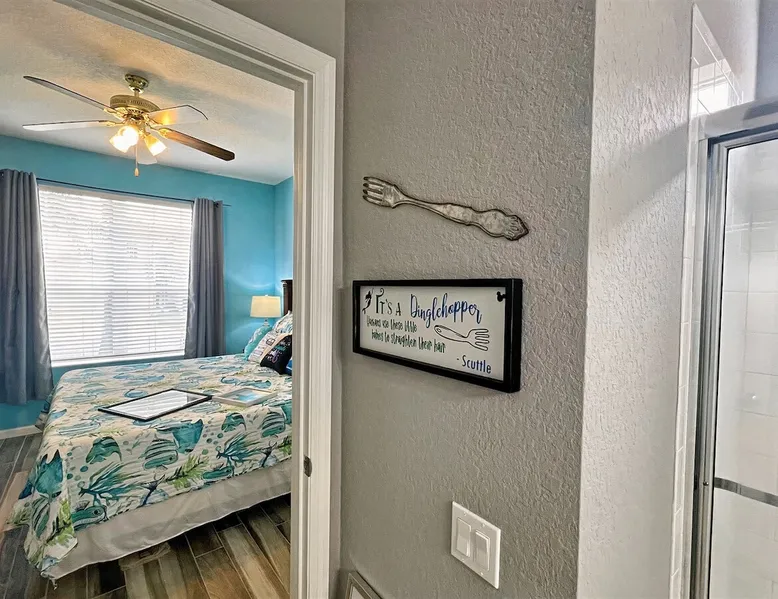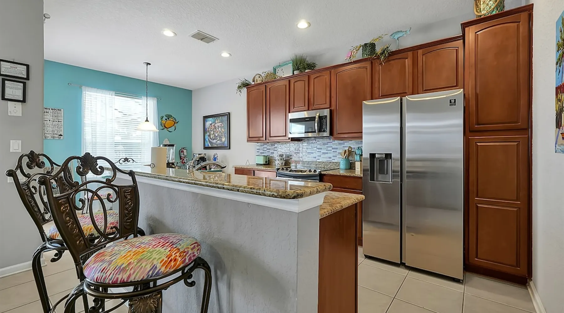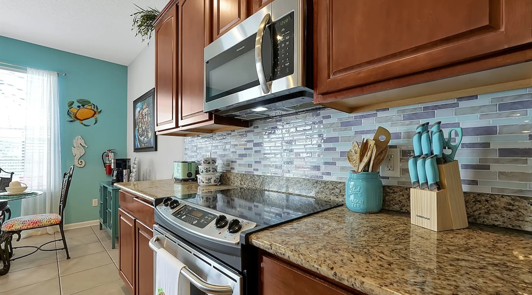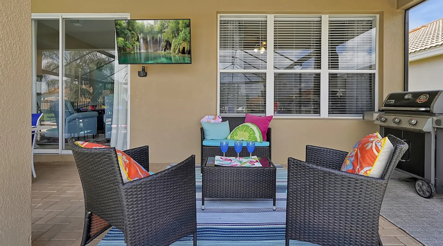Lilo’s Paradise is a great place for large families who want to enjoy the ultimate convenience and relaxation. With a private pool, comfy themed bedrooms, a fun game room, a full kitchen, and many amenities that come with the gated community, there’s something for the whole family! Plus, you’ll be just a short drive from famous attractions. Disney World - 9 min drive Old Town - 14 min drive Fun Spot America - 15 min drive Create Lasting Memories In Kissimmee With Us & Learn More Below! The space ☆☆ HIGHLIGHTS ☆☆ ✹ 5 themed bedrooms; 3 kings, 1 bunk bed, 2 twins ✹ 5 full bathrooms ✹ Open floor plan ✹ Fully equipped kitchen w/ stainless appliances ✹ Coffee station ✹ Bright living room ✹ Family-friendly amenities ✹ Free wifi + flat-screen Smart TVs ✹ Pirates of the Caribbean themes Game room w/ mural, pool table, arcade game, PS4, Xbox One, and foosball. ✹ Washer + dryer ✹ Expansive outdoor patio (one of the largest pool decks in Windsor Hills) ✹ Private heated swimming pool + hot tub (complimentary heating) ✹ Sun loungers + outdoor TV ✹ Outdoor dining tables + BBQ (complimentary propane) ✹ Free parking for 3 vehicles at the home. ✹ Free access to Windsor Hills amenities including a waterpark, gym, pools + more! Eager to Read More? Here Are A Few Kind Words From Our Previous Guests: “Chuck and Deanna were very responsive and helpful. They met all of our needs. The home was super comfy with lots and lots of cooking stuff. The sun deck was amazing, the pool was incredible, outdoor entertainment was excellent! I love the keepsake the most!! We'll be back soon!” - Latoyor (Other listing) “Chuck and Deanna are great hosts! They are very friendly and try to help with everything you need. The house is very clean and very good equipped. The best part of the house is the big deck with the pool. The pool was heated and my kids spent all day playing in the pool. Thank you Deanna to make our vacation wonderful! :)” - Mihaela “Hands down some of the best hosts I have ever rented from. The communication from Chuck and Deanna has been second to none. The house was well stocked and was the perfect place for our dance team to stay while in town for the Dance Worlds.” - Sheila (Other listing) ★★ BEDROOMS ★★ This private oasis features five thoughtfully designed and welcoming bedrooms, each with a fun theme and comfy beds topped with plush mattresses and high-end linens. No matter which room you’re in, you’ll have a ceiling fan, a TV with cable and a Roku, and easy access to a full bathroom. ✹ Primary bedroom (Vintage Disney theme): King-sized bed, ensuite bathroom ✹ Second bedroom (Jungle Cruise theme): Custom-built bunk beds sleep 3 guests in twin beds (two “top” bunks, one “low” bunk, fun mural ✹ Third bedroom (Under The Sea theme): King-sized bed, ensuite bathroom, walk-in shower, water closet ✹ Fourth bedroom (Tiki Theme): King-sized bed ✹ Fifth bedroom (Moana Theme): 2 twin beds ★★ BATHROOMS ★★ Lilo’s Paradise boasts five full bathrooms, providing ample space for the whole family to get ready for an exciting day at a theme park. Each bathroom is stocked with fresh towels and has plenty of storage space to unpack all your toiletries. ✹ Bathroom 1: Ensuite to the primary bedroom, dual vanity, walk-in shower, water closet ✹ Bathroom 2: Jungle-themed, single vanity, shower/tub combination ✹ Bathroom 3: Ensuite to the Under The Sea room, single vanity, walk-in shower, water closet ✹ Bathroom 4: Tiki theme, single vanity, shower/tub combination ✹ Bathroom 5: Moana theme single vanity, shower/tub combination ✔ Fresh towels ✔ Hair dryer ✔ Washer and dryer ✔ Iron ★★ KITCHEN & DINING ★★ Make delicious meals in the kitchen when you’re not trying some of the nearby restaurants. You’ll love the stainless steel appliances, granite countertops, and open-concept layout, making it easy to keep the conversation flowing between the lounge space and kitchen. A variety of basic kitchen supplies are provided to start you off, including spices, coffee, tea, coffee filters, salt and pepper, napkins, and cleaning supplies. When you’re ready to eat, you’ll find various areas to eat, including at the kitchen counter, at the small bistro table, around the formal dining table, or at the outdoor dining table. ✔ Stainless steel appliances and granite counters ✔ Full-size fridge and freezer ✔ Dishwasher, oven, stove, microwave ✔ Coffee station with coffee, tea, and coffee filters ✔ Basic spices, salt, and pepper ✔ Kitchen counter with seating for 2 ✔ Small dinette for 4 ✔ Dining table for 6 ★★ LIVING ROOM ★★ The charming living room is the perfect place to enjoy a small break from the Florida sun. Sit back on the sofa and watch your favorite movie on the Smart TV, enjoy some games or chit-chat with your companions, or catch up with friends back home using the free wifi. ✔ Plush sofa, loveseat, and chair ✔ 65” smart TV ✔ Free wifi ✔ High ceilings and huge windows ✔ Patio access ★★ GAME ROOM ★★ Enjoy some friendly competition in the Super Hero themed game room. This converted garage features a pool table, game consoles, a 3-TV gaming station, and an arcade game to keep your group entertained for hours on end. This is a perfect spot to keep the kids busy while the adults enjoy some grown-up time. ✔ Pool table ✔ 3-TV game station with Xbox One and PS4 ✔ Multi-game arcade game ✔ Wooden train table ★★ OUTDOOR SPACE ★★ Step out onto the expansive patio and enjoy outdoor living at its finest. The patio has been extended 17 feet behind the pool so you can enjoy even more of this private oasis without being bothered by bugs. A bonus of this outdoor area is the impressive view of the Magic Kingdom fireworks at night (when they’re running). Spend days in the pool and basking in the sunshine on the southern-facing deck, and evenings in the hot tub after enj