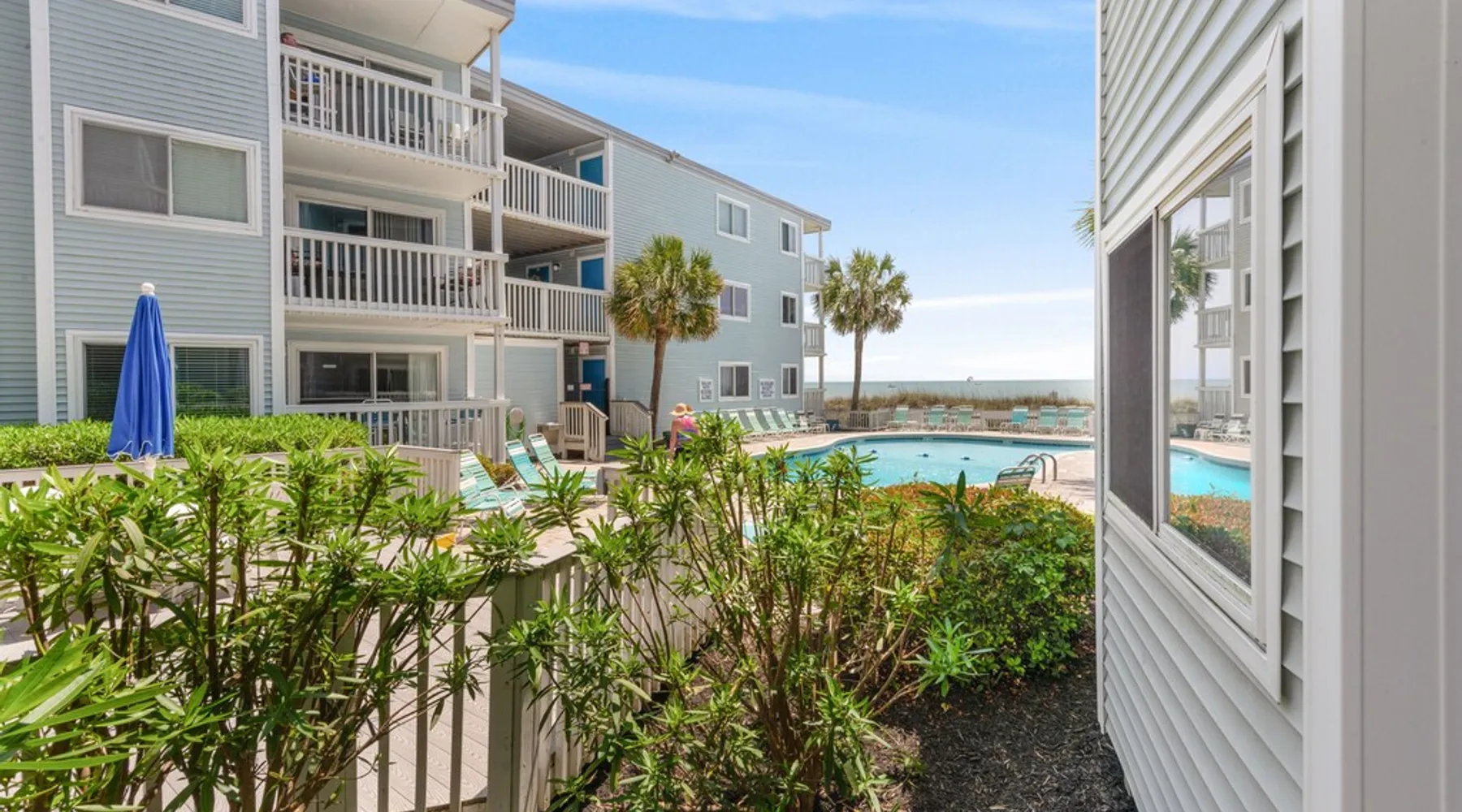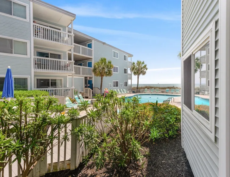 This 2 bedroom, 2 bathroom, condo sleeps 6 with 2 queens & 1 bunk bed (twin on top, twin on bottom). Located at 1809 South Ocean Blvd., Ocean Garden Villas is a very comfortable and clean 3-story condo complex, located along the Crescent Beach section of North Myrtle Beach. There are miles of beautiful, sandy beaches in both directions. This fully furnished condo has everything you will need for a perfect vacation including Wi-Fi, a fully equipped kitchen for preparing meals, laundry facility on site, your own private balcony overlooking the pool area with an ocean view as well, and wireless internet. This complex has an outdoor pool, sundeck, and BBQ area. You must go up 5-6 steps to get to the 1st floor. Another great benefit of Ocean Garden Villas is its close proximity to all the family amusements and attractions that make Myrtle Beach and North Myrtle Beach so popular. Seafood restaurants, regular and mini golf courses, shopping, parasailing, banana boat rides, Sea Doo rentals, sailing, live theaters, and dinner shows. Free Fun Included Every Day! To enhance your vacation experience, North Beach Realty includes Xplorie, which means you get free admissions to some of the most popular attractions everyday of your stay!! NO MOTORCYCLES, BOATS, RV'S, GOLF CARTS OR TRAILERS ALLOWED ONSITE! WE DO OFFER FREE PARKING AT OUR LOCAL RENTAL OFFICE IF YOU PLAN TO BRING A MOTORCYCLES, BOAT, RV, GOLF CART, TRAILER AND/OR EXCEED THE NUMBER OF VEHICLES PERMITTED PER UNIT. PARK AT YOUR OWN RISK. NO SMOKING IN UNIT OR ON BALCONY! NO PETS! 25 YEAR AGE REQUIRMENT! FOR ALL NON-FAMILY GROUPS, EVERYONE MUST MEET THIS AGE REQUIRMENT AT THE TIME OF CHECK-IN!