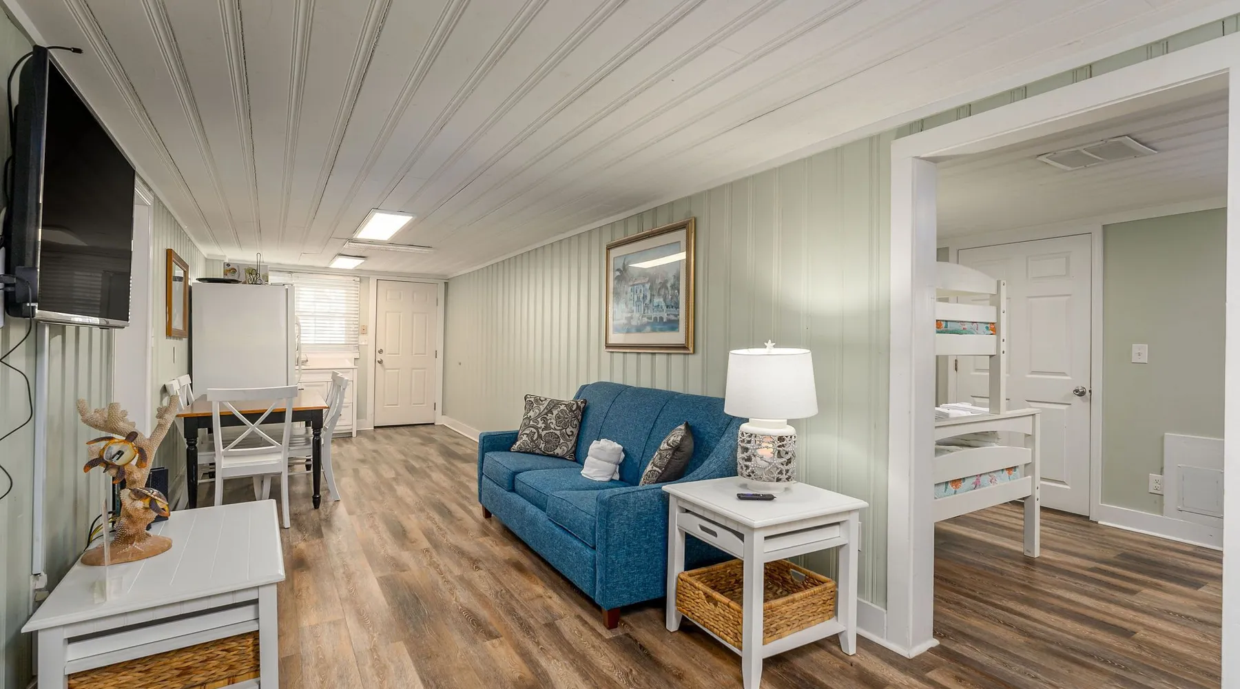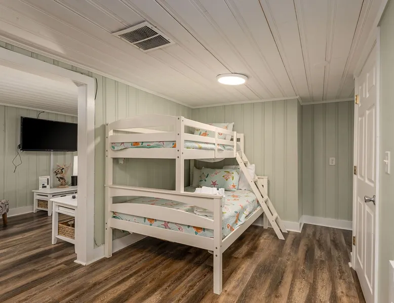 This 7 bedroom, 5 bath private beach house is located directly across the street from the ocean. This house has its own private salt water pool & hot tub and shuffle board. Remodeled in 2018 and refurnished in 2022, this property now sleeps 25 people with a total of 4 kings, 3 queens, 2 fulls, 1 pyramid bunk beds (full on the bottom and twin on the top) and 2 sleeper sofas. 1st floor (sleeps 13) Wet bar w/ full size fridge Dining area Living room (with 1 sleeper sofa) Sunroom w/bunk bed (twin on top, full on bottom) and bathroom Bedroom #1 w/2 fulls Hall bathroom Bedroom #2 w/1 king Bedroom #3 w/1 king Hall bathroom 2nd floor (sleeps 12) Kitchen Living room (with 1 sleeper sofa) Dining room Bedroom #4 w/1 king & private bathroom Bedroom #5 w/ 1 king Bedroom #6 w/ 1 queen Bedroom #7 w/ 2 queens Hall bathroom *PETS, MOTORCYCLES, BOATS WELCOME!! This is a non-smoking property! Pet Friendly (dogs only) with a $200.00 Non-Refundable Pet Fee. We do not have any breed or weight restrictions nor do we have any restrictions on how many dogs you can bring. This house is located at 1906 South Ocean Blvd. in the Crescent beach section of North Myrtle Beach and is just across the street from the ocean. It has something for every member of your vacation group. Take a swim in the private salt water outdoor pool & hot tub or play a game of shuffle board. This house was remodeled in 2018 and refurnished in 2022 and has a total of 10 Flat Screen TV’s, Wi-Fi access, & washer & dryer in the unit. A fully equipped kitchen, including 2 refrigerators and a BBQ grill, will satisfy everyone's hunger after a long day at the beach or pool. If you don’t feel like cooking, that’s not a problem. This house is within walking distance of Plantation Pancake House, Molly Darcy’s Irish Bar & Grill, and Mr. G’s Grill & Ice Cream Shop. Want to get in a round of mini-golf? Take a short walk to Professor Hacker’s Lost Treasure Golf, take a train ride to the top of the mountain and golf your way down through the gold mines & tar pits. Free Fun Included Every Day! To enhance your vacation experience, North Beach Vacations has partnered with Xplorie, which means your stay includes over $250.00 in complimentary activities, per day. Just for booking with us, you’ll receive free tickets, every day of your stay to top activities like golfing, water parks, dinner shows, and more!!! ***ONLY VALID FOR SHORT TERM STAYS 27 NIGHTS OR LESS*** MOTORCYCLES, TRAILERS BOATS, RV'S, AND GOLF CARTS ARE ALLOWED TO BE PARKED ONSITE! HOWEVER, PARKING IS LIMITED. WE DO OFFER FREE PARKING AT OUR LOCAL RENTAL OFFICE. PARK AT YOUR OWN RISK. NO SMOKING! PETS ARE WELCOME (DOGS ONLY) WITH $200 NON-REFUNDABLE PET FEE! 25 YEAR AGE REQUIREMENT! FOR ALL NON-FAMILY GROUPS, EVERYONE MUST MEET THIS AGE REQUIREMENT AT THE TIME OF CHECK-IN!