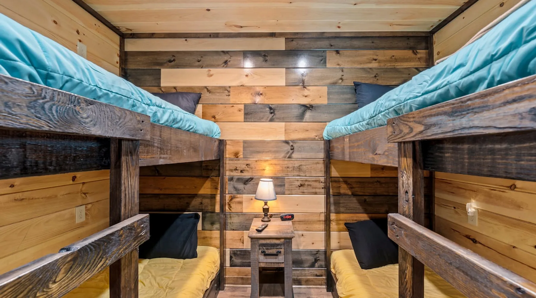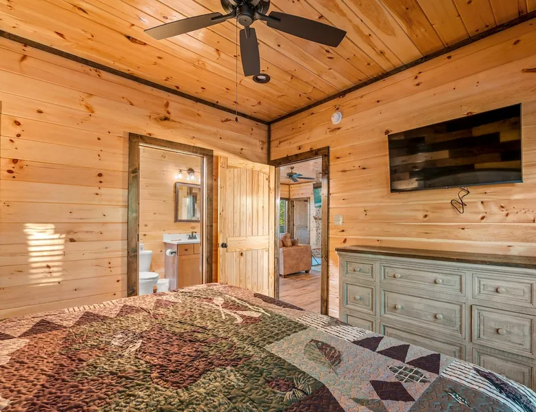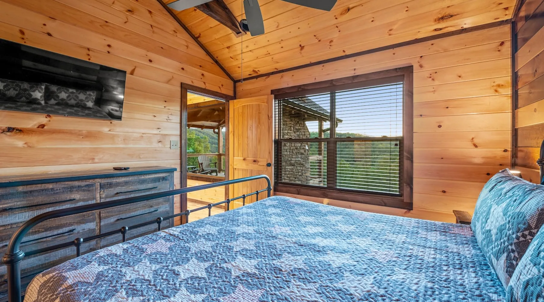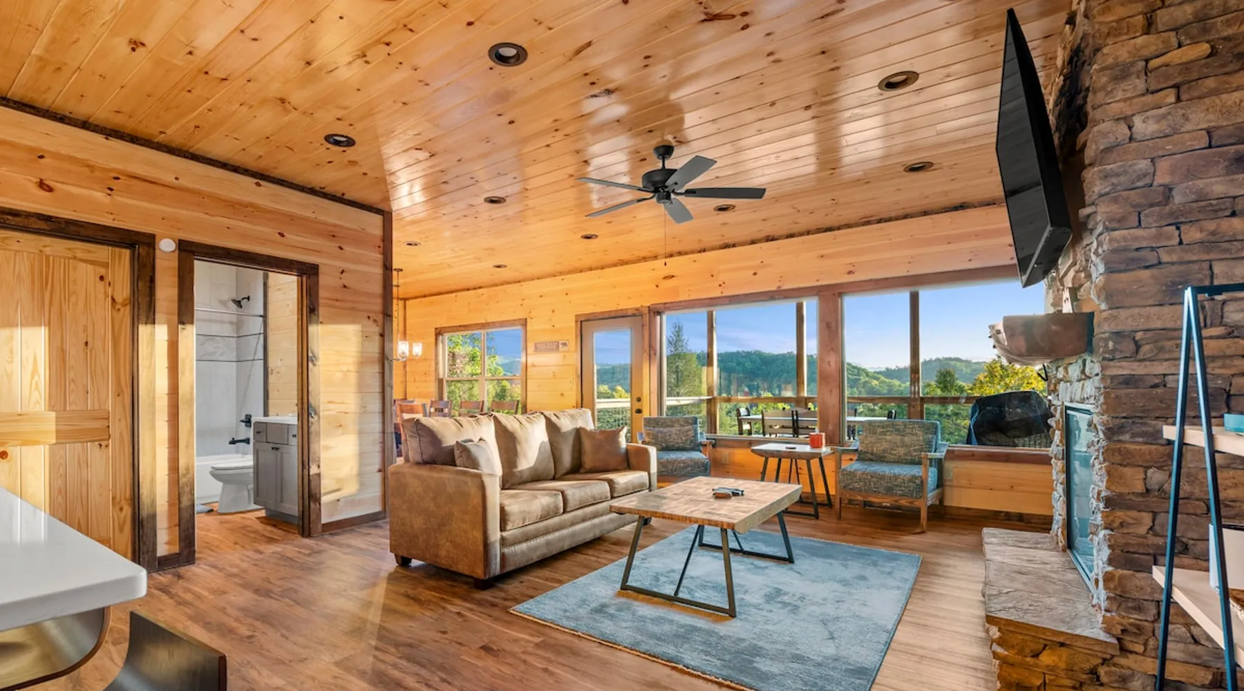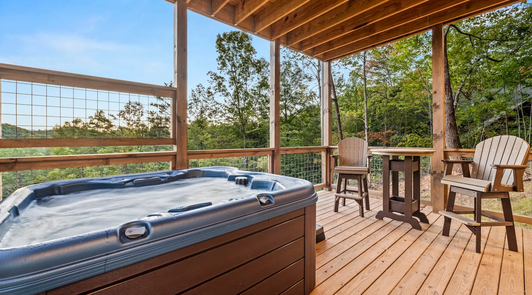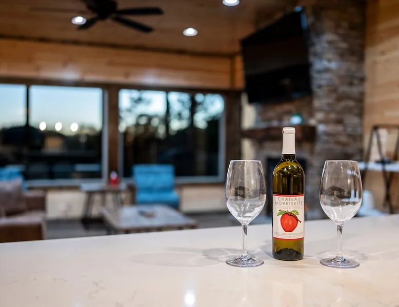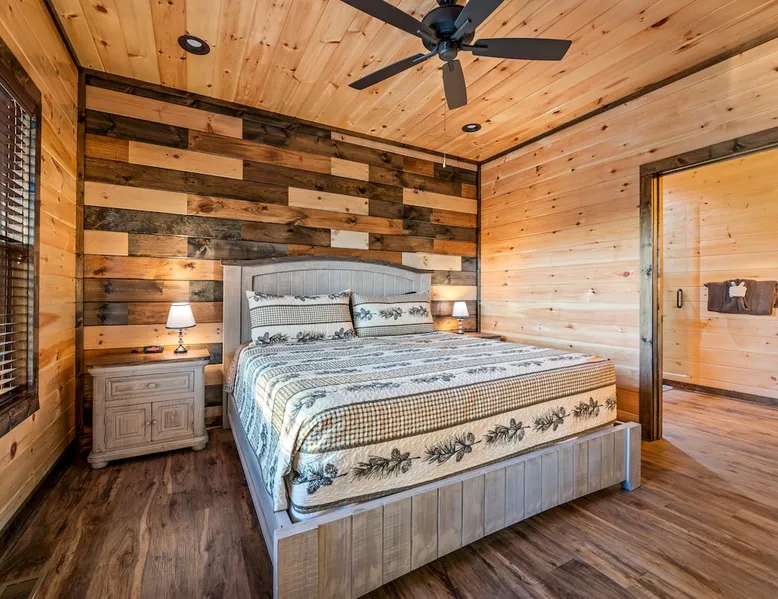 This spacious, five-bedroom pool cabin is your perfect Smoky Mountain vacation! Featuring 4 king bedrooms plus a bunk room, an amazing loft, a theatre room to watch the big game, views for miles on our three decks, and an indoor heated pool with a view of the Smokies. Minutes to Pigeon Forge and Dollywood, this cabin boosts Wi-Fi, Satellite TV, a game room, outdoor hot tub, and an outdoor fireplace to enjoy those beautiful TN sunsets. Easy access roads means anyone can reach this cabin! The space Features • 5 Bed/5.5 Bathroom Cabin - Sleeps 16 • Indoor Heated Pool • Foosball/2x Arcades/Game Room • Outdoor Hot Tub - Seats 4 • Satellite TV and High Speed Cellular Wi-Fi • Parking for up to 5 vehicles • 10 Minutes from Pigeon Forge/15 from Dollywood This spacious, five-bedroom pool cabin is your perfect Smoky Mountain vacation! Featuring 4 king bedrooms plus a bunk room, an amazing loft, a theatre room to watch the big game, views for miles on our three decks, and an indoor heated pool with a view of the Smokies. Minutes to Pigeon Forge and Dollywood, this cabin boosts Wi-Fi, Satellite TV, arcade cabinet, hot tub, and an outdoor fireplace to enjoy those beautiful TN sunsets. Easy access roads means anyone can reach this cabin! Host your next vacation or holiday gathering at Overlook Swim Lodge, a gorgeous three-story Tennessee cabin, complete with an indoor heated pool, game room, theatre, and a private outdoor hot tub. Take a short drive over to Pigeon Forge, the home of Dollywood and so many other fun-filled attractions, shops, and excellent restaurants! Overlook Swim Lodge is a custom designed cabin that is positively aglow with rich, knotty pine walls, 3 different level decks, and two beautiful fireplaces with all the desirable modern conveniences of home. Overlook Swim Lodge has amble parking to fit 5 vehicles. The open living area has a plush leather sofa (with pull-out queen), twin matching chairs, and a stone-face electric fireplace. The open concept kitchen has cabinets and drawers stocked with essential cookware and dinnerware, and a full array of appliances including a dishwasher and Keurig. Augment those home-cooked meals with the gas grill located outside on the well-appointed deck. Close by, there's a dining table with seating for twelve and a breakfast bar with seating for four. The main floor also includes two bedrooms which both offer a cozy king-size bed and a large en suite bathroom. Upstairs there are three additional bedrooms, two kings and a bunk room all with their own en suite bathrooms. The bunk room is great for children or young adults with four twin mattress and its own attached bathroom with double vanities and shower. With five bedrooms, a furnished loft with a pull-out sofa (queen), and an additional sleeper sofa on the main level, this home sleeps up to 16 guests very comfortably. While upstairs you can enjoy the full use of our game room featuring a large TV and sitting area, foosball, 2x 2-player premium arcade system with over 18,000 titles, and rustic pub table. Step outside onto the deck for gorgeous views of the smokies while sitting next to an electric outdoor fireplace. Custom built for our cabin you can enjoy that glass of wine/whiskey while the fireplace keeps you warm on those cool fall and spring nights. Thanks to the complimentary cellular Wi-Fi, you can easily stream your favorite shows and share photos and videos of your vacation with friends and family back home. Check on the local news and weather or keep up with all your favorite shows on multiple TVs with satellite service. Heading downstairs you will find the huge theatre room with seating for eight. Featuring satellite TV, Blue Ray/DVD player and an 85-inch HD TV, this room is perfect for the latest blockbuster or watching the game with family and friends. Just off the theatre you will find our indoor heated pool. Relax and have a good time while you view those smoky mountains right from the pool! As you head towards the deck you will see our full washer/dryer that is available for your use as well as a half bathroom. Outside on the deck you will find a five-seater hot tub just waiting for you to relax with those jets after a long day of adventure. No visit to the area would be complete without a trip to nearby Dollywood or Pigeon Forge. The cabin is just 10 minutes from Pigeon Forge and 20 minutes from Gatlinburg. Conveniently close to a main road with no windy or steep mountains to climb. No matter the season, make your reservation today and get ready to make a splash and enjoy the beauty of the Great Smoky Mountain National Park at this brand-new pool cabin! Guest access You will have the entire cabin to yourself! Other things to note Indoor Heated Pool: Our pool is kept at a moderate 82 degrees year round. We have a separate locked door between the pool room and the cabin to make sure those without access are not in the pool room unsupervised. Weather Related: The weather in Tennessee can be unpredictable. We appreciate if all guest be aware of any weather impacts to their stay. We are not responsible for maintaining the conditions of roads, decks, and driveways in the event of snow, ice, rain, etc.