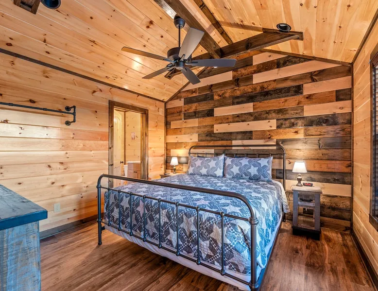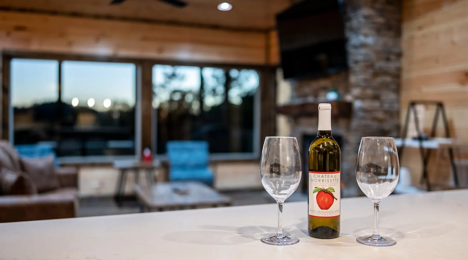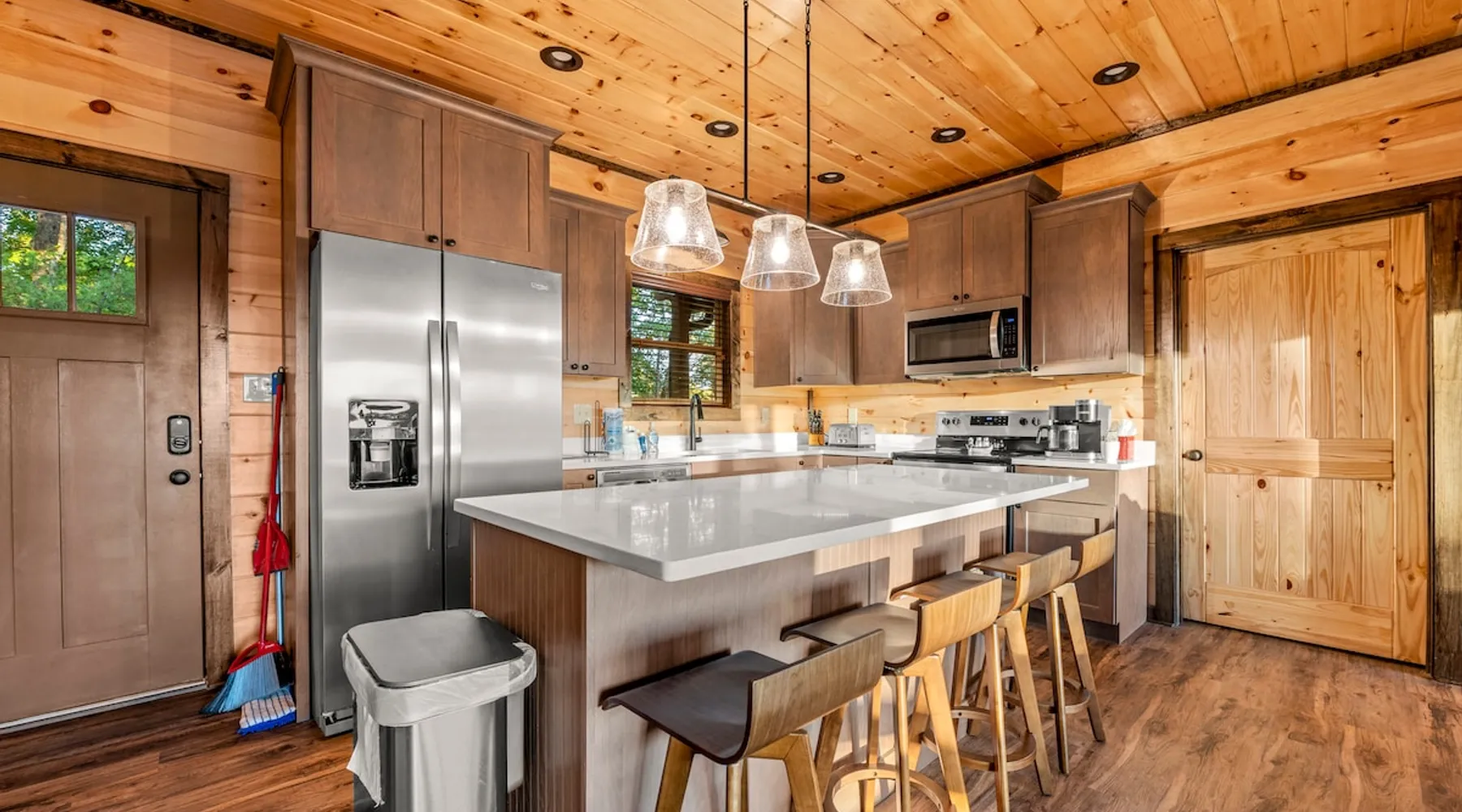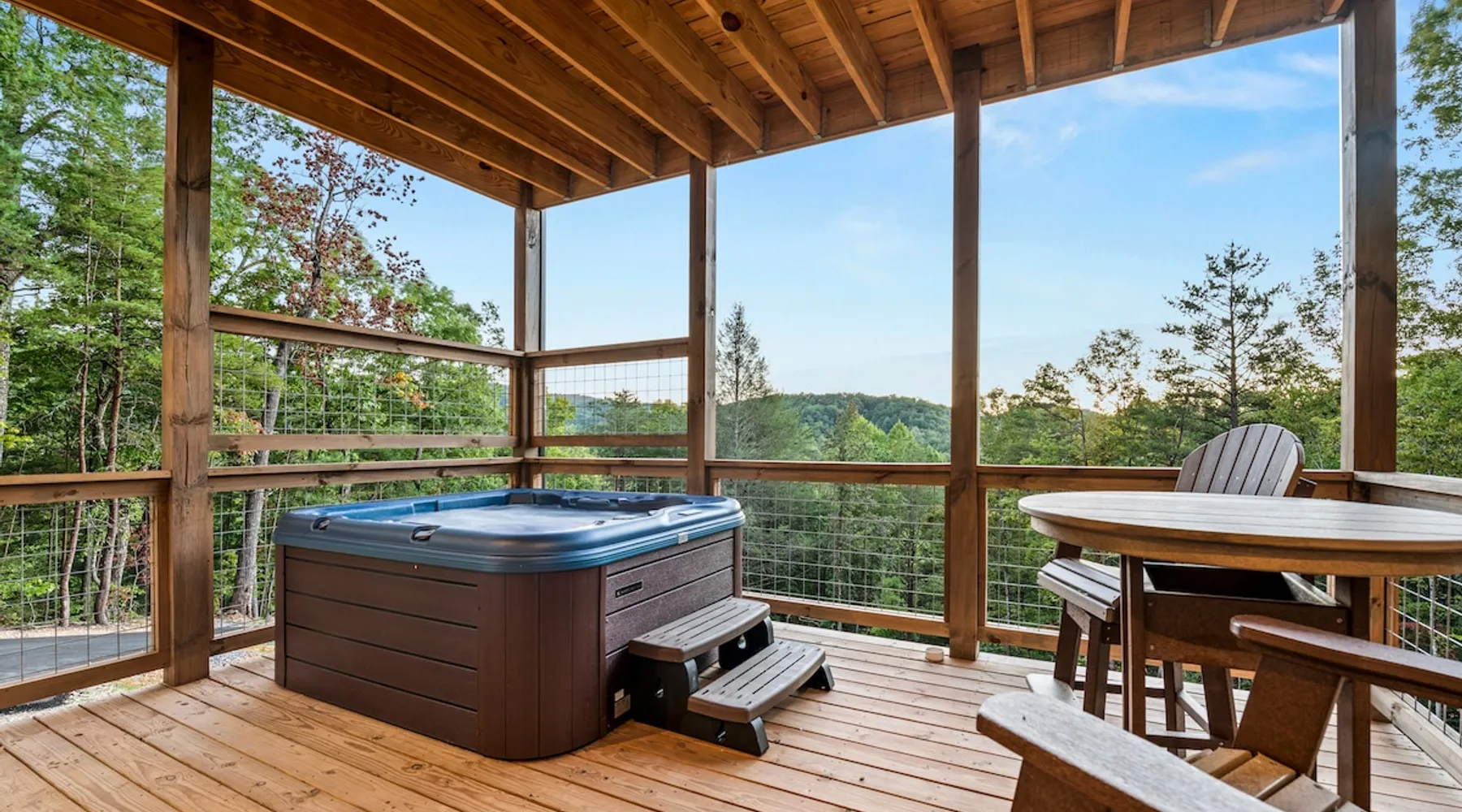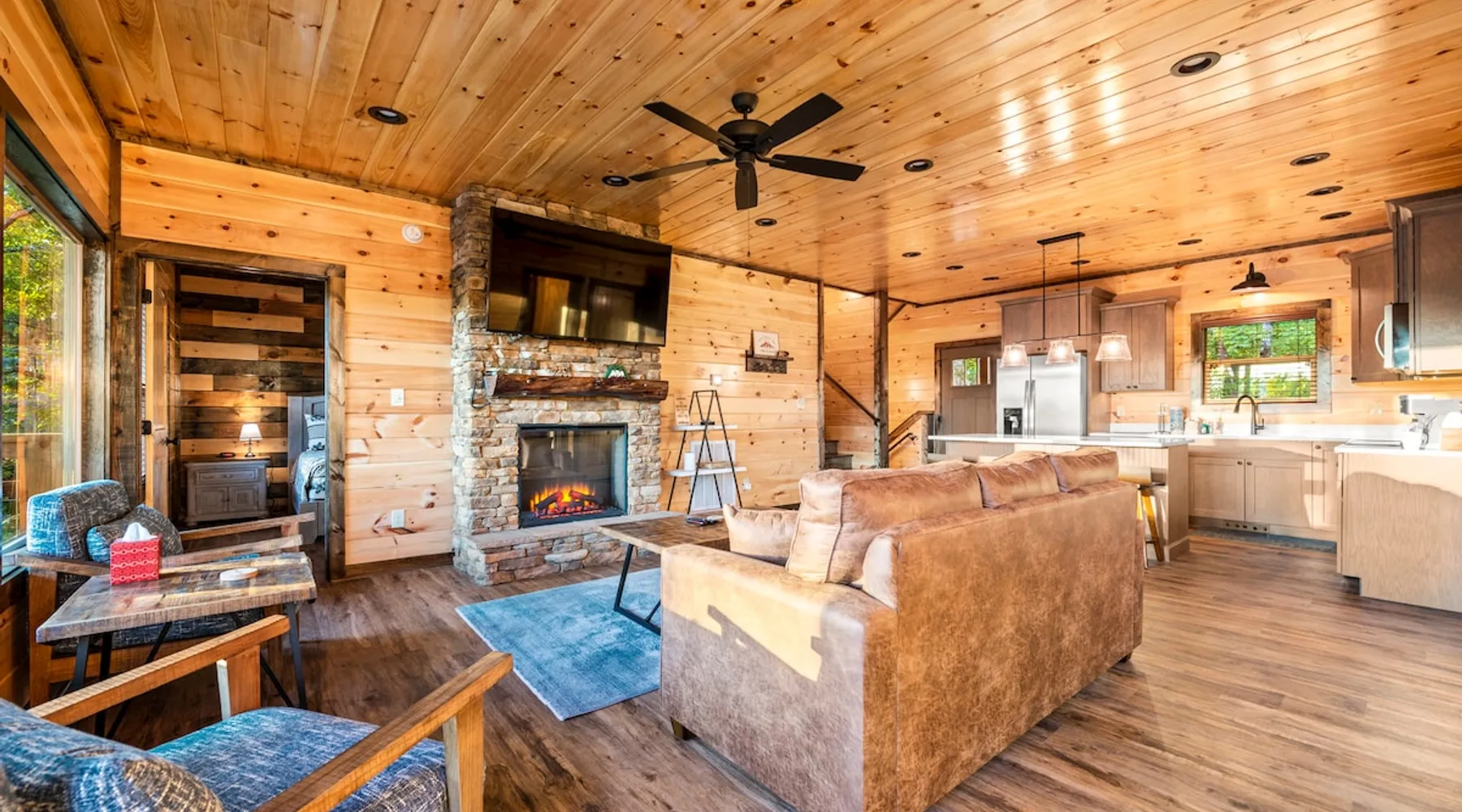 This spacious, five-bedroom pool cabin is your perfect Smoky Mountain vacation! Featuring 4 king bedrooms plus a bunk room, an amazing loft, a theatre room to watch the big game, views for miles on our three decks, and an indoor heated pool with a view of the Smokies. Minutes to Pigeon Forge and Dollywood, this cabin boosts Wi-Fi, Satellite TV, a game room, outdoor hot tub, and an outdoor fireplace to enjoy those beautiful TN sunsets. Easy access roads means anyone can reach this cabin! The space Features • 5 Bed/5.5 Bathroom Cabin - Sleeps 16 • Indoor Heated Pool • Foosball/2x Arcades/Game Room • Outdoor Hot Tub - Seats 4 • Satellite TV and High Speed Cellular Wi-Fi • Parking for up to 5 vehicles • 10 Minutes from Pigeon Forge/15 from Dollywood This spacious, five-bedroom pool cabin is your perfect Smoky Mountain vacation! Featuring 4 king bedrooms plus a bunk room, an amazing loft, a theatre room to watch the big game, views for miles on our three decks, and an indoor heated pool with a view of the Smokies. Minutes to Pigeon Forge and Dollywood, this cabin boosts Wi-Fi, Satellite TV, arcade cabinet, hot tub, and an outdoor fireplace to enjoy those beautiful TN sunsets. Easy access roads means anyone can reach this cabin! Host your next vacation or holiday gathering at Overlook Swim Lodge, a gorgeous three-story Tennessee cabin, complete with an indoor heated pool, game room, theatre, and a private outdoor hot tub. Take a short drive over to Pigeon Forge, the home of Dollywood and so many other fun-filled attractions, shops, and excellent restaurants! Overlook Swim Lodge is a custom designed cabin that is positively aglow with rich, knotty pine walls, 3 different level decks, and two beautiful fireplaces with all the desirable modern conveniences of home. Overlook Swim Lodge has amble parking to fit 5 vehicles. The open living area has a plush leather sofa (with pull-out queen), twin matching chairs, and a stone-face electric fireplace. The open concept kitchen has cabinets and drawers stocked with essential cookware and dinnerware, and a full array of appliances including a dishwasher and Keurig. Augment those home-cooked meals with the gas grill located outside on the well-appointed deck. Close by, there's a dining table with seating for twelve and a breakfast bar with seating for four. The main floor also includes two bedrooms which both offer a cozy king-size bed and a large en suite bathroom. Upstairs there are three additional bedrooms, two kings and a bunk room all with their own en suite bathrooms. The bunk room is great for children or young adults with four twin mattress and its own attached bathroom with double vanities and shower. With five bedrooms, a furnished loft with a pull-out sofa (queen), and an additional sleeper sofa on the main level, this home sleeps up to 16 guests very comfortably. While upstairs you can enjoy the full use of our game room featuring a large TV and sitting area, foosball, 2x 2-player premium arcade system with over 18,000 titles, and rustic pub table. Step outside onto the deck for gorgeous views of the smokies while sitting next to an electric outdoor fireplace. Custom built for our cabin you can enjoy that glass of wine/whiskey while the fireplace keeps you warm on those cool fall and spring nights. Thanks to the complimentary cellular Wi-Fi, you can easily stream your favorite shows and share photos and videos of your vacation with friends and family back home. Check on the local news and weather or keep up with all your favorite shows on multiple TVs with satellite service. Heading downstairs you will find the huge theatre room with seating for eight. Featuring satellite TV, Blue Ray/DVD player and an 85-inch HD TV, this room is perfect for the latest blockbuster or watching the game with family and friends. Just off the theatre you will find our indoor heated pool. Relax and have a good time while you view those smoky mountains right from the pool! As you head towards the deck you will see our full washer/dryer that is available for your use as well as a half bathroom. Outside on the deck you will find a five-seater hot tub just waiting for you to relax with those jets after a long day of adventure. No visit to the area would be complete without a trip to nearby Dollywood or Pigeon Forge. The cabin is just 10 minutes from Pigeon Forge and 20 minutes from Gatlinburg. Conveniently close to a main road with no windy or steep mountains to climb. No matter the season, make your reservation today and get ready to make a splash and enjoy the beauty of the Great Smoky Mountain National Park at this brand-new pool cabin! Guest access You will have the entire cabin to yourself! Other things to note Indoor Heated Pool: Our pool is kept at a moderate 82 degrees year round. We have a separate locked door between the pool room and the cabin to make sure those without access are not in the pool room unsupervised. Weather Related: The weather in Tennessee can be unpredictable. We appreciate if all guest be aware of any weather impacts to their stay. We are not responsible for maintaining the conditions of roads, decks, and driveways in the event of snow, ice, rain, etc.