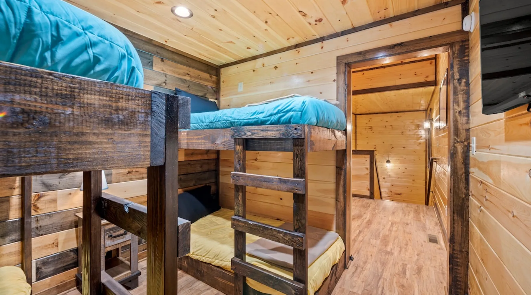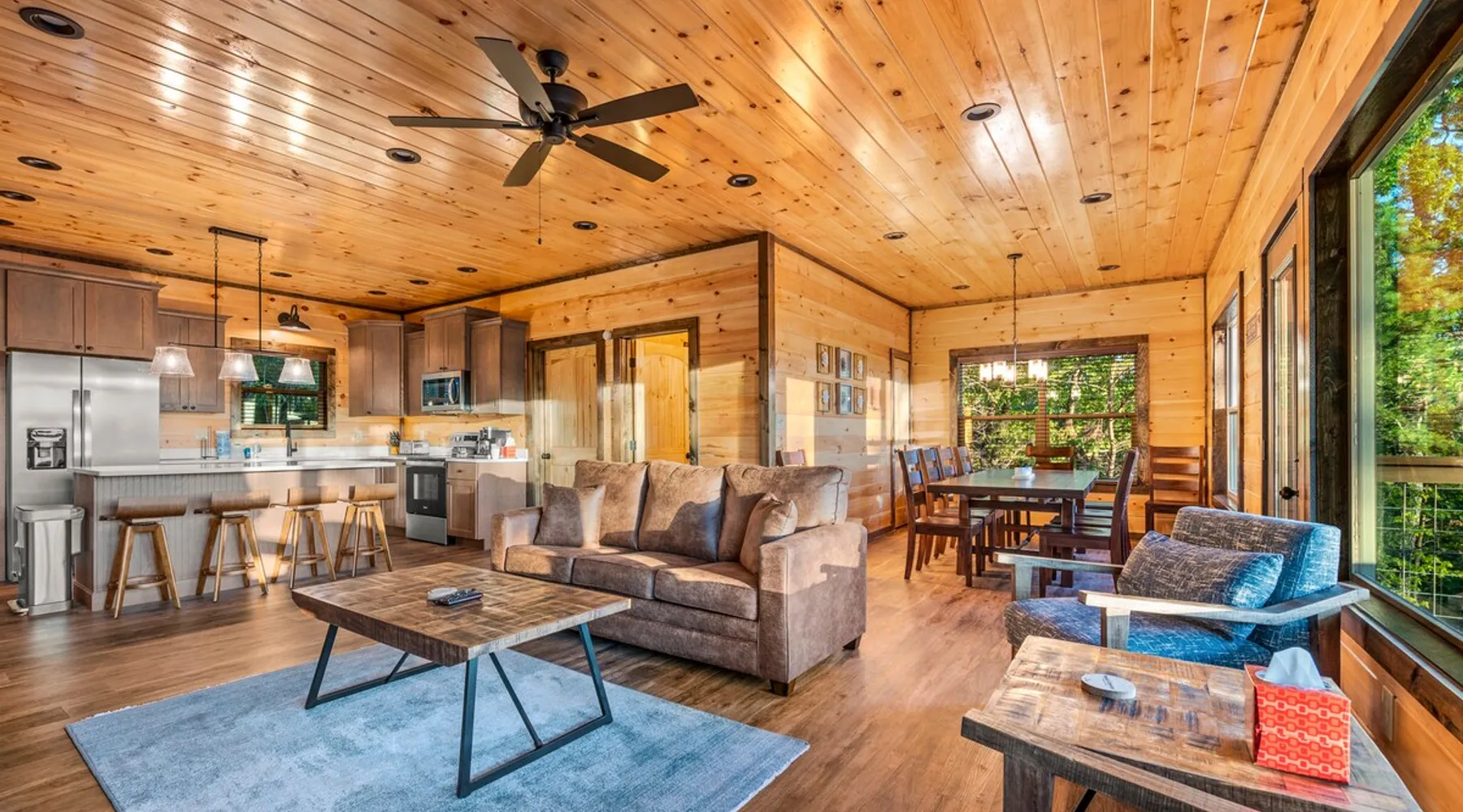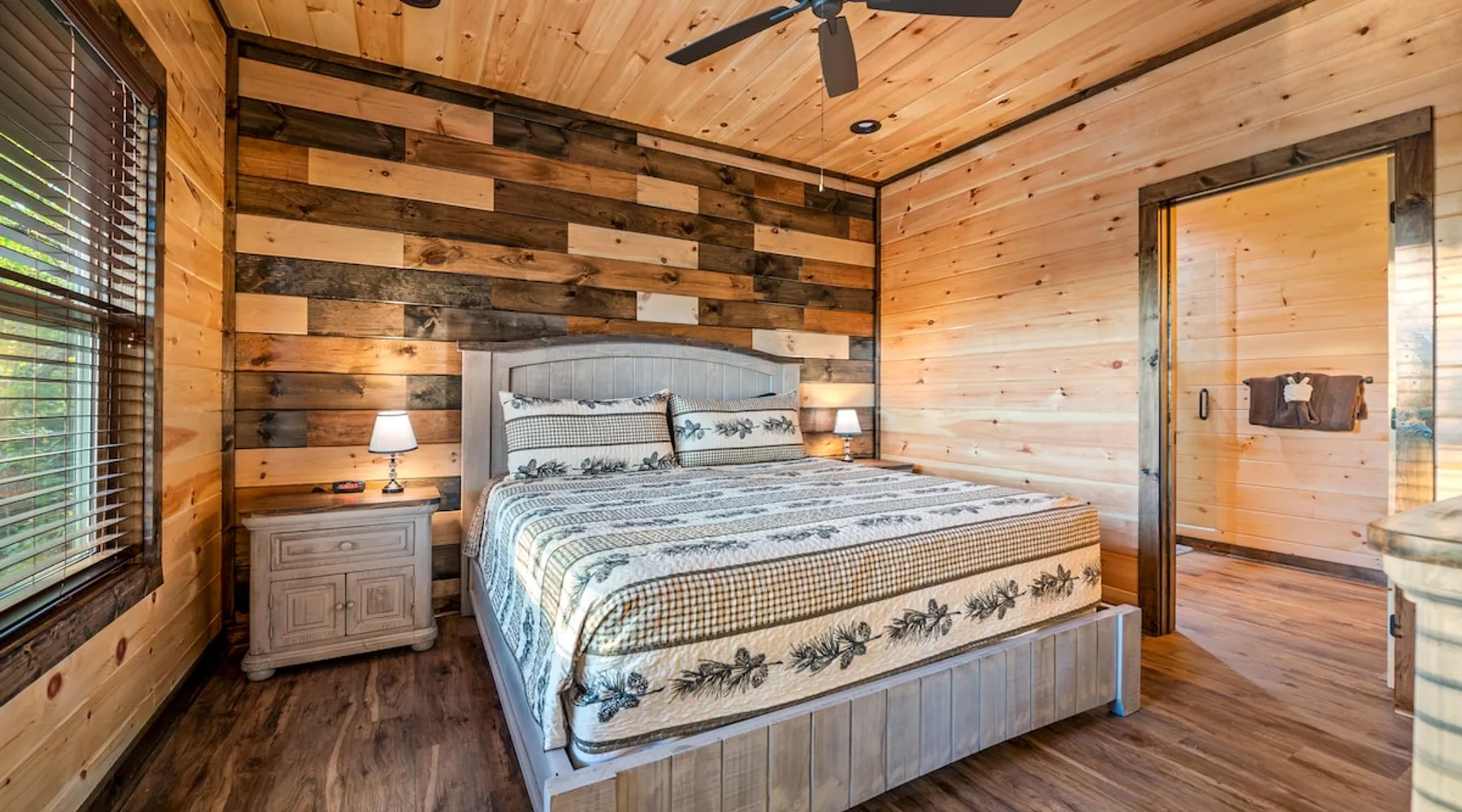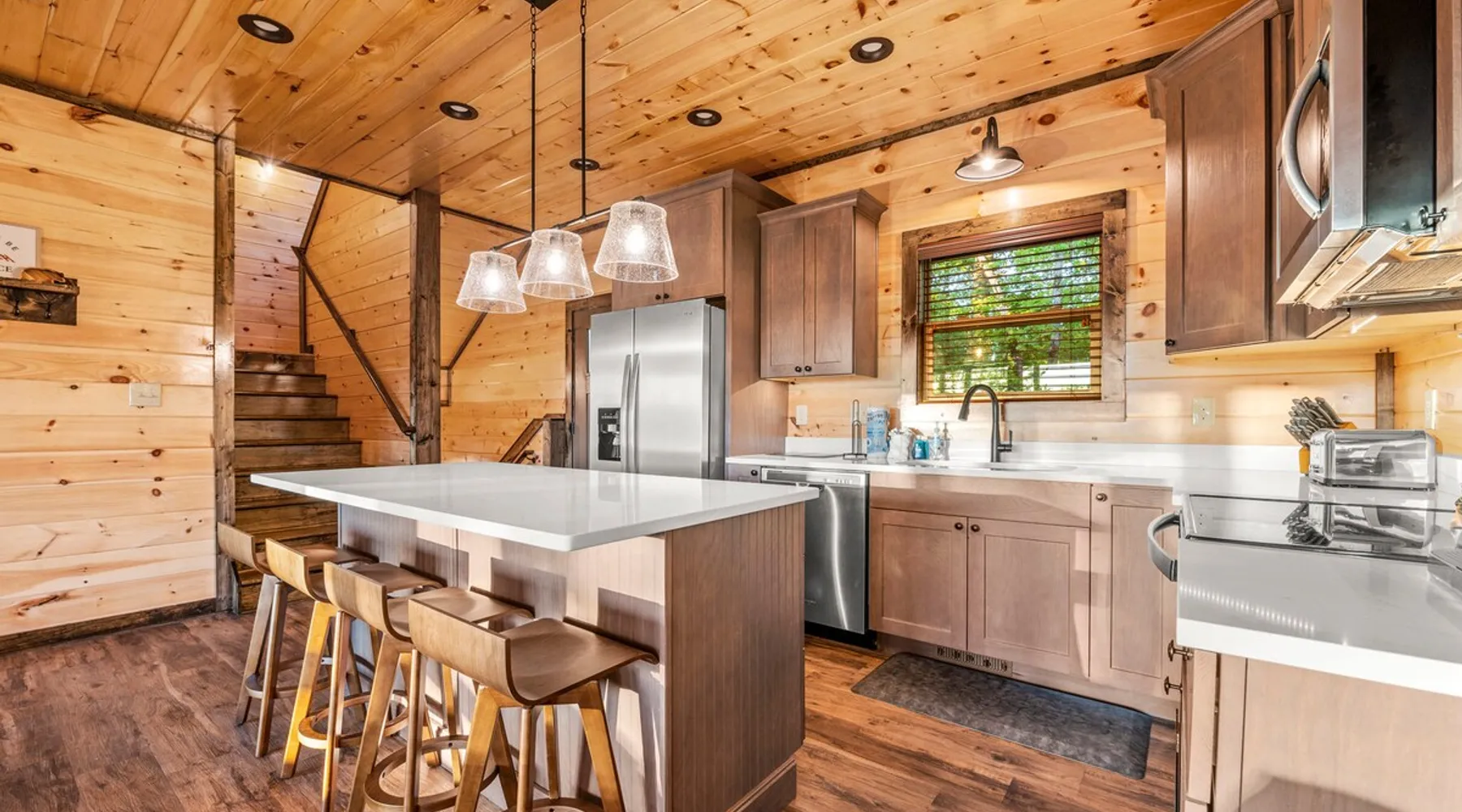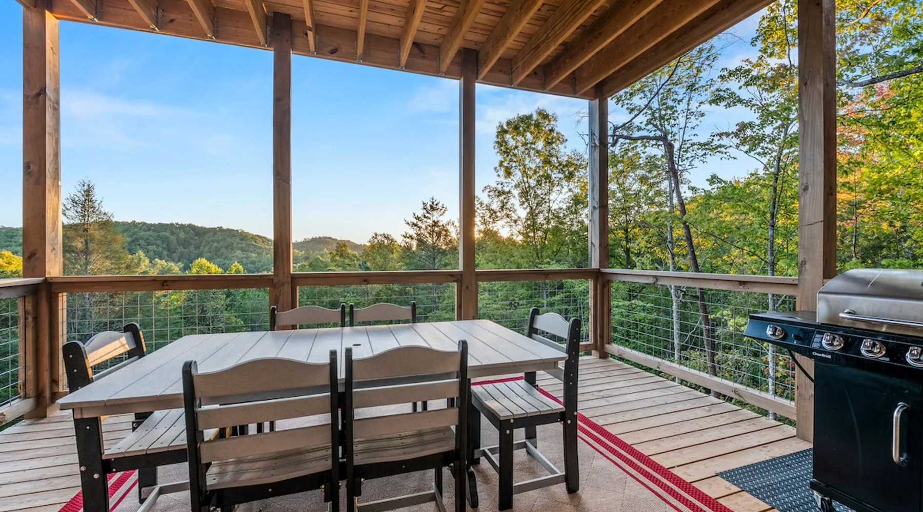This spacious, five-bedroom pool cabin is your perfect Smoky Mountain vacation! Featuring 4 king bedrooms plus a bunk room, an amazing loft, a theatre room to watch the big game, views for miles on our three decks, and an indoor heated pool with a view of the Smokies. Minutes to Pigeon Forge and Dollywood, this cabin boosts Wi-Fi, Satellite TV, a game room, outdoor hot tub, and an outdoor fireplace to enjoy those beautiful TN sunsets. Easy access roads means anyone can reach this cabin! The space Features • 5 Bed/5.5 Bathroom Cabin - Sleeps 16 • Indoor Heated Pool • Foosball/2x Arcades/Game Room • Outdoor Hot Tub - Seats 4 • Satellite TV and High Speed Cellular Wi-Fi • Parking for up to 5 vehicles • 10 Minutes from Pigeon Forge/15 from Dollywood This spacious, five-bedroom pool cabin is your perfect Smoky Mountain vacation! Featuring 4 king bedrooms plus a bunk room, an amazing loft, a theatre room to watch the big game, views for miles on our three decks, and an indoor heated pool with a view of the Smokies. Minutes to Pigeon Forge and Dollywood, this cabin boosts Wi-Fi, Satellite TV, arcade cabinet, hot tub, and an outdoor fireplace to enjoy those beautiful TN sunsets. Easy access roads means anyone can reach this cabin! Host your next vacation or holiday gathering at Overlook Swim Lodge, a gorgeous three-story Tennessee cabin, complete with an indoor heated pool, game room, theatre, and a private outdoor hot tub. Take a short drive over to Pigeon Forge, the home of Dollywood and so many other fun-filled attractions, shops, and excellent restaurants! Overlook Swim Lodge is a custom designed cabin that is positively aglow with rich, knotty pine walls, 3 different level decks, and two beautiful fireplaces with all the desirable modern conveniences of home. Overlook Swim Lodge has amble parking to fit 5 vehicles. The open living area has a plush leather sofa (with pull-out queen), twin matching chairs, and a stone-face electric fireplace. The open concept kitchen has cabinets and drawers stocked with essential cookware and dinnerware, and a full array of appliances including a dishwasher and Keurig. Augment those home-cooked meals with the gas grill located outside on the well-appointed deck. Close by, there's a dining table with seating for twelve and a breakfast bar with seating for four. The main floor also includes two bedrooms which both offer a cozy king-size bed and a large en suite bathroom. Upstairs there are three additional bedrooms, two kings and a bunk room all with their own en suite bathrooms. The bunk room is great for children or young adults with four twin mattress and its own attached bathroom with double vanities and shower. With five bedrooms, a furnished loft with a pull-out sofa (queen), and an additional sleeper sofa on the main level, this home sleeps up to 16 guests very comfortably. While upstairs you can enjoy the full use of our game room featuring a large TV and sitting area, foosball, 2x 2-player premium arcade system with over 18,000 titles, and rustic pub table. Step outside onto the deck for gorgeous views of the smokies while sitting next to an electric outdoor fireplace. Custom built for our cabin you can enjoy that glass of wine/whiskey while the fireplace keeps you warm on those cool fall and spring nights. Thanks to the complimentary cellular Wi-Fi, you can easily stream your favorite shows and share photos and videos of your vacation with friends and family back home. Check on the local news and weather or keep up with all your favorite shows on multiple TVs with satellite service. Heading downstairs you will find the huge theatre room with seating for eight. Featuring satellite TV, Blue Ray/DVD player and an 85-inch HD TV, this room is perfect for the latest blockbuster or watching the game with family and friends. Just off the theatre you will find our indoor heated pool. Relax and have a good time while you view those smoky mountains right from the pool! As you head towards the deck you will see our full washer/dryer that is available for your use as well as a half bathroom. Outside on the deck you will find a five-seater hot tub just waiting for you to relax with those jets after a long day of adventure. No visit to the area would be complete without a trip to nearby Dollywood or Pigeon Forge. The cabin is just 10 minutes from Pigeon Forge and 20 minutes from Gatlinburg. Conveniently close to a main road with no windy or steep mountains to climb. No matter the season, make your reservation today and get ready to make a splash and enjoy the beauty of the Great Smoky Mountain National Park at this brand-new pool cabin! Guest access You will have the entire cabin to yourself! Other things to note Indoor Heated Pool: Our pool is kept at a moderate 82 degrees year round. We have a separate locked door between the pool room and the cabin to make sure those without access are not in the pool room unsupervised. Weather Related: The weather in Tennessee can be unpredictable. We appreciate if all guest be aware of any weather impacts to their stay. We are not responsible for maintaining the conditions of roads, decks, and driveways in the event of snow, ice, rain, etc.