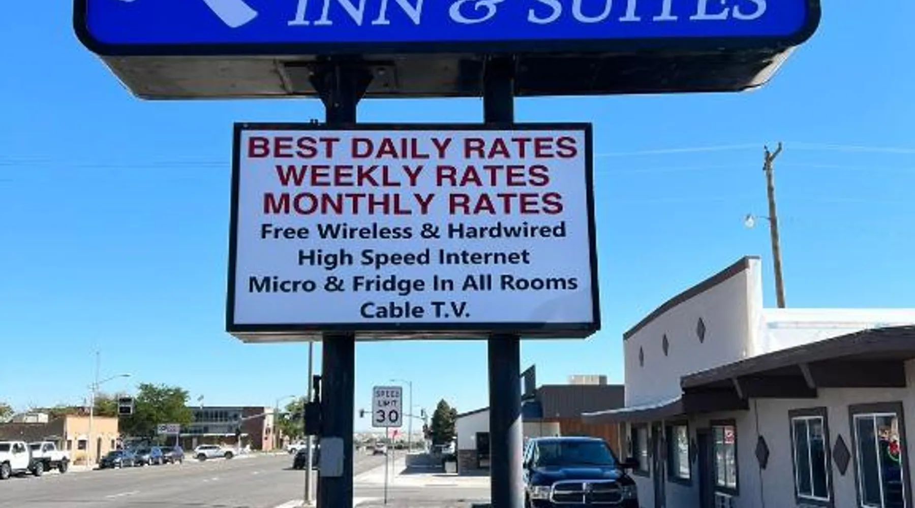The Rodeway Inn & Suites hotel is conveniently located, offering easy access to many local attractions and landmarks. This Riverton, WY hotel is close to the University of Wyoming, the Riverton Museum, the Wind River Heritage Center and the Riverton Regional Airport. Outdoor recreation is abundant in the area, with nearby scenic destinations like Owl Creek and the Wind River Mountains. Enjoy activities such as hiking, mountain biking, boating, fishing, skiing and much more. Several shopping centers, entertainment options and restaurants can be found in the vicinity, including several within walking distance. This Riverton, WY hotel offers many amenities, including: Free continental breakfast, Free high-speed Internet access, Free local calls. Pets are welcome for additional fee. Guests traveling on business will welcome additional conveniences like the on-site business center, the public computer with Internet service, and access to copy and fax services. In addition to standard amenities, all spacious guest rooms and suites come equipped with microwaves, coffee makers, refrigerators, desks and hair dryers. Some rooms include irons and ironing boards. Nonsmoking rooms can be requested. Laundry facilities are available on the premises for added guest convenience. Ample parking is provided and can accommodate most trucks, RVs, busses and cars. The air-conditioned suite has 2 bedrooms and 1 bathroom with a bath. The suite features a coffee machine, a carpeted floor, heating, as well as a flat-screen TV with cable channels. The unit has 4 beds.