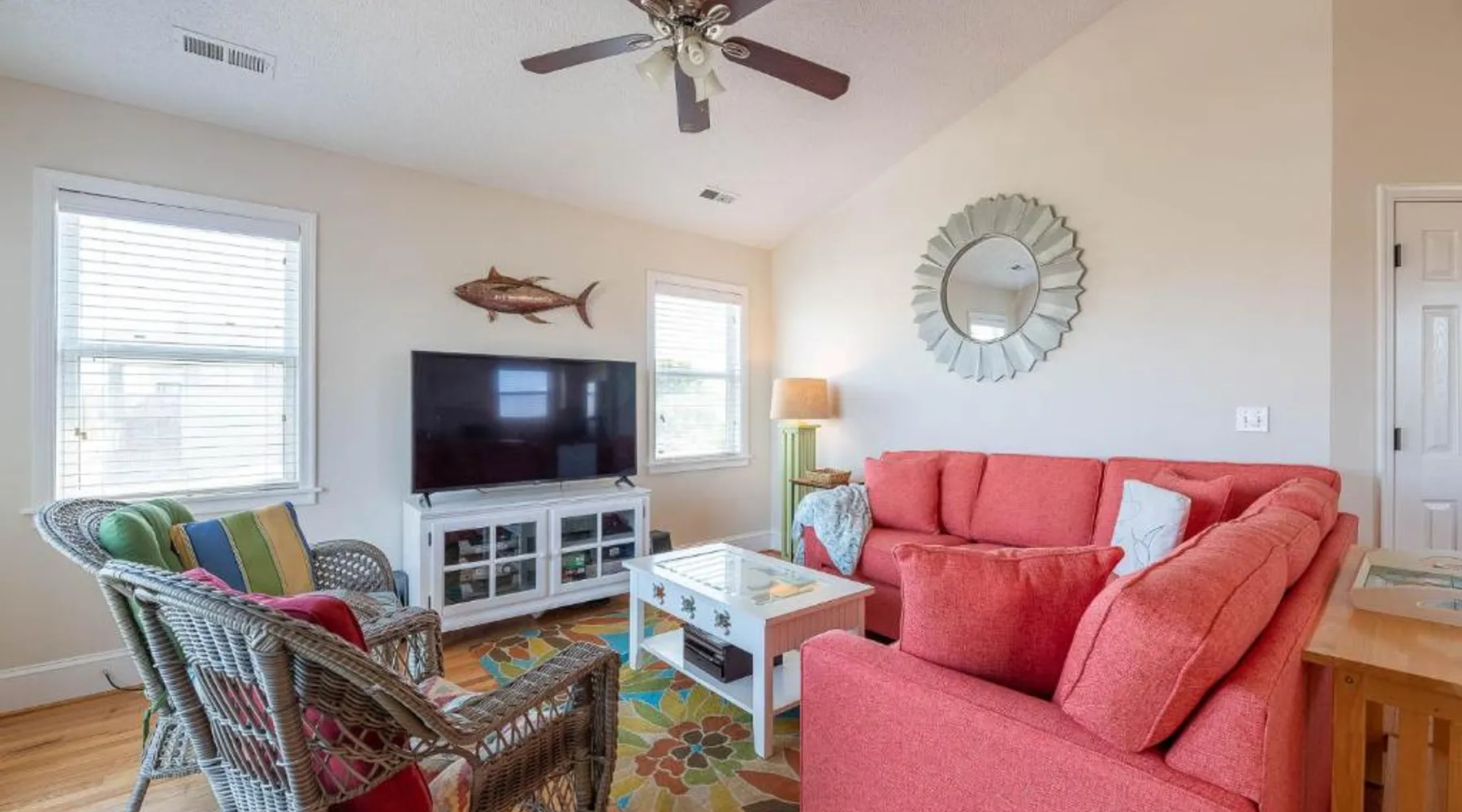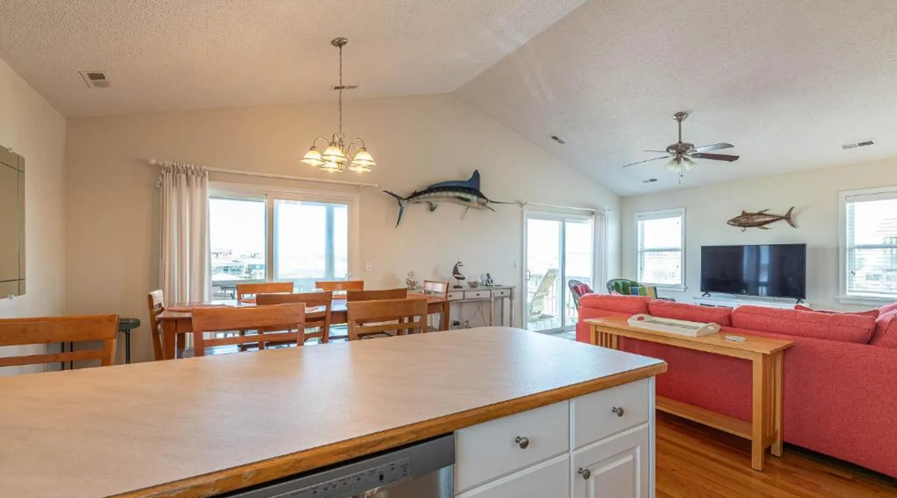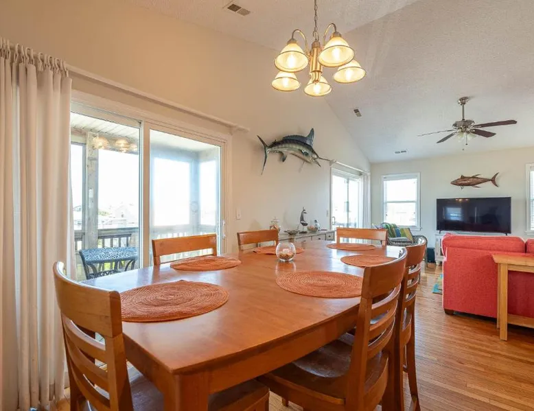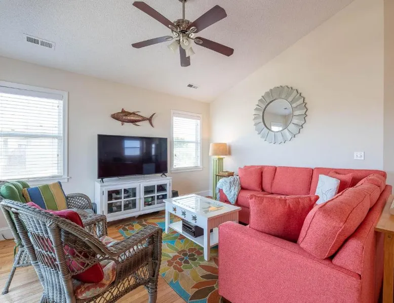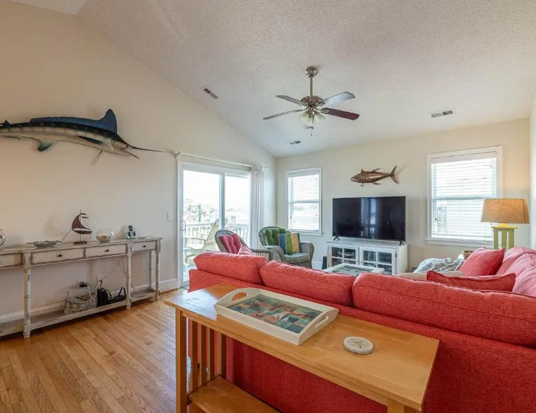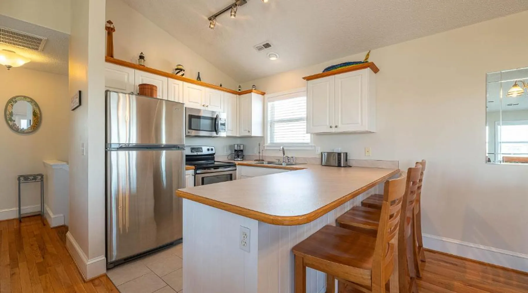Comfortable Accommodations: A Shore Thing in Kill Devil Hills offers a holiday home with four bedrooms and three bathrooms. The property features sea views, air-conditioning, and a fully equipped kitchen. Leisure Facilities: Guests can enjoy a hot tub, waterpark, and children's playground. Free on-site parking is available, along with a washing machine and barbecue facilities. Local Attractions: Kill Devil Hills Beach is a 6-minute walk away, while Kitty Hawk Beach lies less than 0.6 mi from the property. Other nearby attractions include the Wright Brothers National Memorial and Jockey's Ridge State Park. The air-conditioned holiday home has 4 bedrooms, 3 bathrooms with a shower and a kitchen. Guests will find a stovetop, a refrigerator, a dishwasher and kitchenware in the kitchen. The holiday home also features a barbecue. The holiday home offers a washing machine, a tea and coffee maker, a seating area, a TV with cable channels, as well as sea views. The unit has 7 beds.