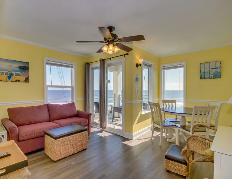 This is a beautifully remodeled, oceanfront, corner end condo in the Windy Hill section of North Myrtle Beach. This unit can accommodate a maximum of 4 people with 1 king, & 1 full and has a fully equipped kitchen for cooking. This condo was newly renovated in January 2015 and has 2 bedrooms & 2 bathrooms. This unit is direct oceanfront with a great beach view allowing you to relax on your balcony and overlooking the oceanfront pool area and enjoy the afternoon sun. A Place at the Beach Windy Hill is located in the Windy Hill section of North Myrtle Beach is located just a couple of minutes from Barefoot Landing. Sit back and relax while watching folks on the beach or head down to the beach and enjoy a nice walk or frolicking in the Atlantic Ocean. When it is time for dinner this condo has all that you will need to make a meal or head out to Barefoot Landing, located about 1 ½ miles away for a good meal at the many restaurants that are available for your indulgence. Then take a relaxing stroll through the many shops that are available at Barefoot Landing in North Myrtle Beach. A Place at the Beach at Windy Hill has a hot tub and BBQ grills & picnic area with tables for your enjoyment while you visit. FREE WIRELESS INTERNET ACCESS Free Fun Included Every Day! To enhance your vacation experience, North Beach Vacations has partnered with Xplorie, which means your stay includes over $250.00 in complimentary activities, per day. Just for booking with us, you’ll receive free tickets, every day of your stay to top activities like golfing, water parks, dinner shows, and more!!! ***ONLY VALID FOR SHORT TERM STAYS 27 NIGHTS OR LESS*** Amenities *Private Oceanfront Balcony *Fully Equipped Kitchen *Flat Screen TV's In All Rooms w/DVD Players *Coin-Operated Laundry facilities on the 1st, 3rd, and 5th floors *Oceanfront Pool *Hot Tub *Outdoor Grill & Picnic Area NO MOTORCYCLES, BOATS, RV'S, GOLF CARTS OR TRAILERS ALLOWED ONSITE! WE DO OFFER FREE PARKING AT OUR LOCAL RENTAL OFFICE IF YOU PLAN TO BRING A MOTORCYCLES, BOAT, RV, GOLF CART, TRAILER AND/OR EXCEED THE NUMBER OF VEHICLES PERMITTED PER UNIT. PARK AT YOUR OWN RISK. NO SMOKING IN UNIT OR ON BALCONY! NO PETS! 25 YEAR AGE REQUIRMENT! FOR ALL NON-FAMILY GROUPS, EVERYONE MUST MEET THIS AGE REQUIRMENT AT THE TIME OF CHECK-IN!