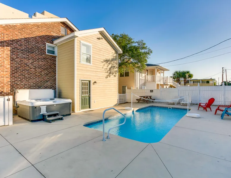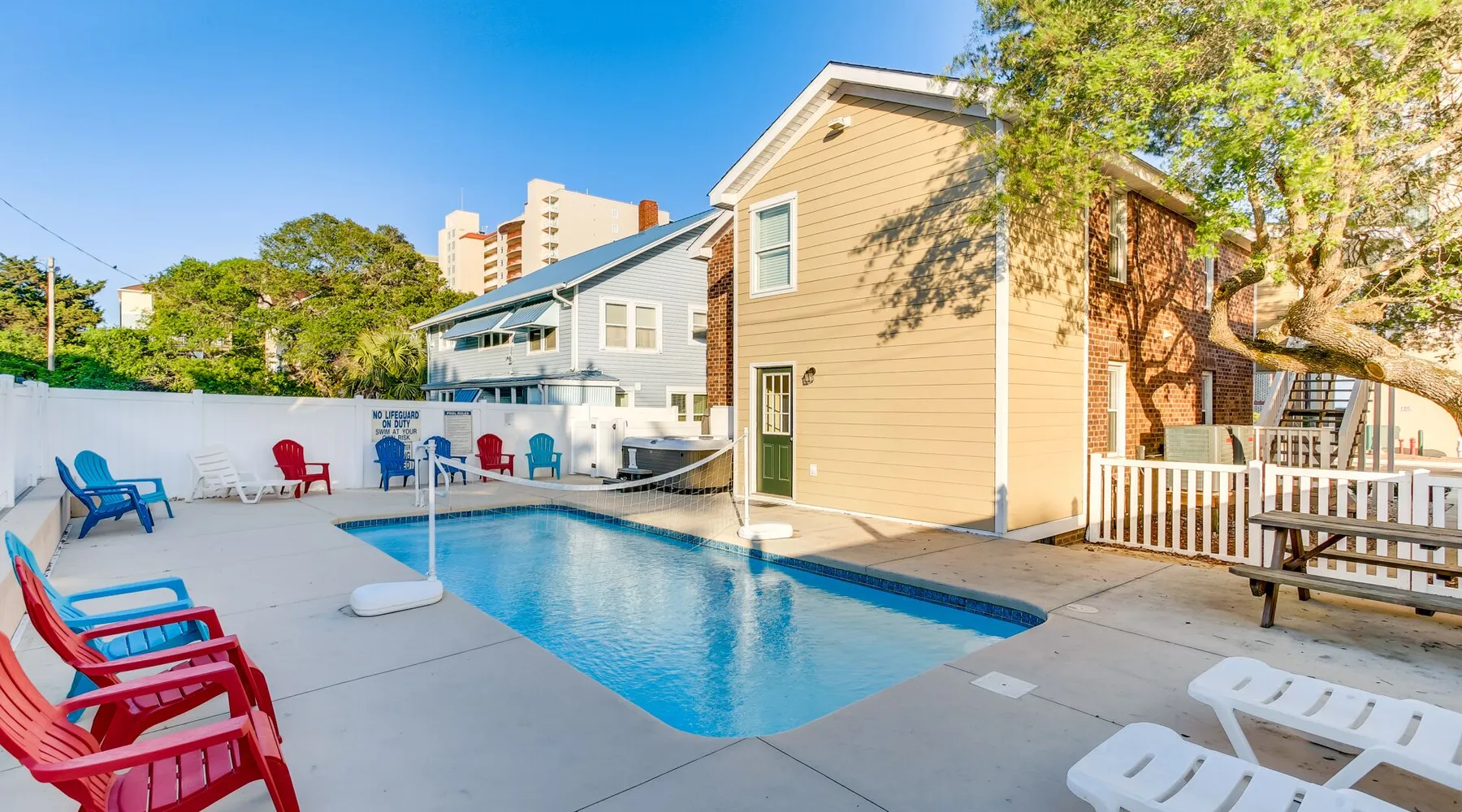 This 6 bedroom, 4 bath private beach house is located directly across the street from the ocean. This house has its own private salt water pool (heated as needed) & private hot tub and sleeps 15 max. with 4Q, 1F, 3T, & 1 sleeper sofa. *PETS, MOTORCYCLES, BOATS WELCOME!! This is a non-smoking property! Pet Friendly (dogs only) with a $200.00 Non-Refundable Pet Fee. We do not have any breed or weight restrictions nor do we have any restrictions on how many dogs you can bring This beach house sleeps 15 and it has something for every member of your vacation group. Take a swim in the PRIVATE outdoor salt water pool (heated as needed) or relax in the PRIVATE hot tub. This house was just re-furbished in January 2017 and has Flat Screen TV’s, DVD Players, free Wi-Fi access, washer & dryer in the unit, and all the comforts of home. A fully equipped kitchen, including refrigerator, stove, microwave, dishwasher and everything you need to make a meal and an outside BBQ area that will satisfy everyone's hunger after a long day at the beach or pool. If you don’t feel like cooking, that’s not a problem. This house is within walking distance of Plantation Pancake House, Molly Darcy’s Irish Bar & Grill, and Mr. G’s Grill & Ice Cream Shop. Want to get in a round of mini-golf? Take a short walk to Professor Hacker’s Lost Treasure Golf, take a train ride to the top of the mountain and golf your way down through the gold mines & tar pits. Free Fun Included Every Day! To enhance your vacation experience, North Beach Vacations has partnered with Xplorie, which means your stay includes over $250.00 in complimentary activities, per day. Just for booking with us, you’ll receive free tickets, every day of your stay to top activities like golfing, water parks, dinner shows, and more!!! ***ONLY VALID FOR SHORT TERM STAYS 27 NIGHTS OR LESS*** MOTORCYCLES, TRAILERS BOATS, RV'S, AND GOLF CARTS ARE ALLOWED TO BE PARKED ONSITE! HOWEVER, PARKING IS LIMITED. WE DO OFFER FREE PARKING AT OUR LOCAL RENTAL OFFICE. PARK AT YOUR OWN RISK. NO SMOKING! PETS ARE WELCOME (DOGS ONLY) WITH $200 NON-REFUNDABLE PET FEE! 25 YEAR AGE REQUIREMENT! FOR ALL NON-FAMILY GROUPS, EVERYONE MUST MEET THIS AGE REQUIREMENT AT THE TIME OF CHECK-IN!