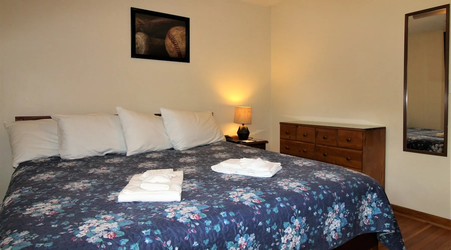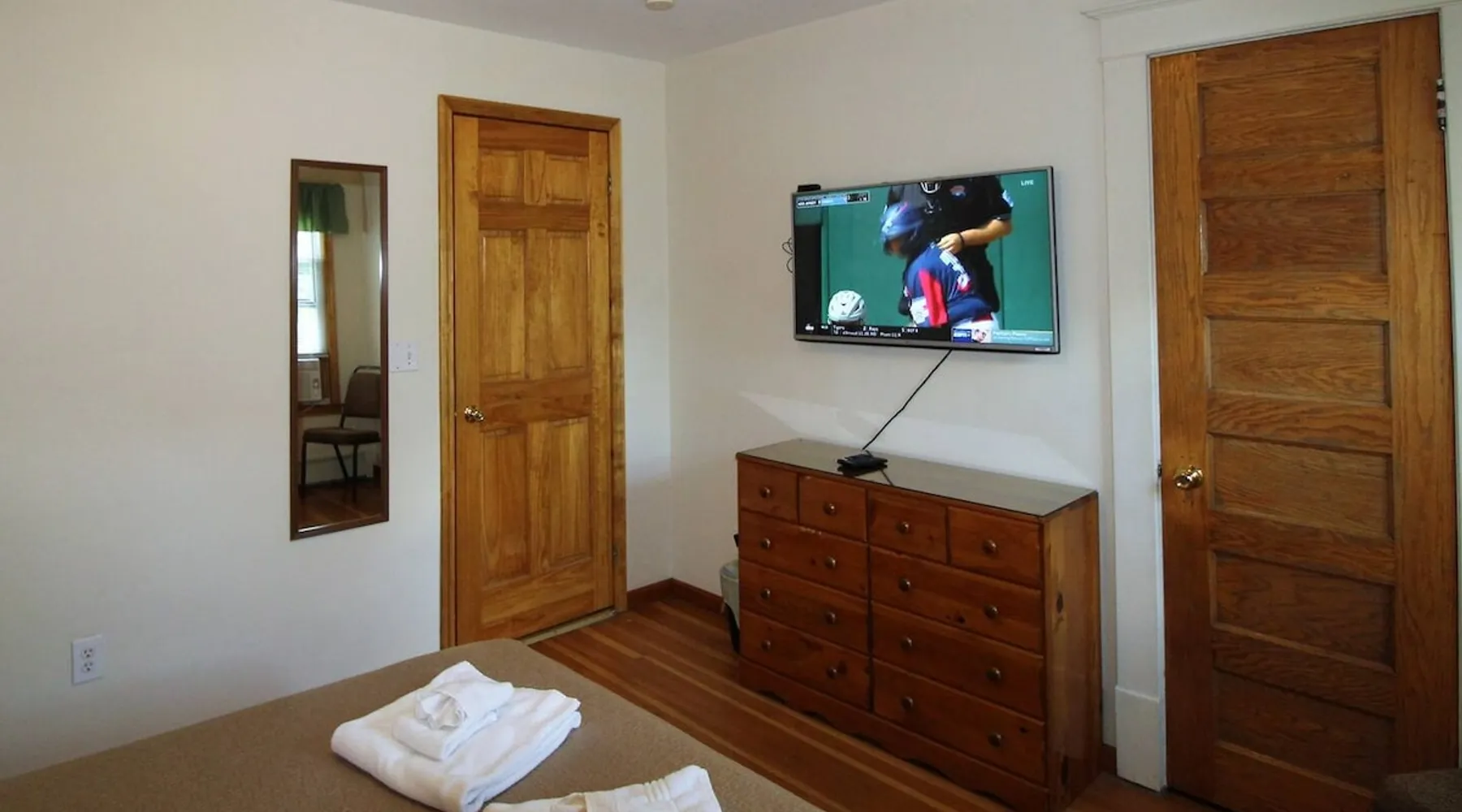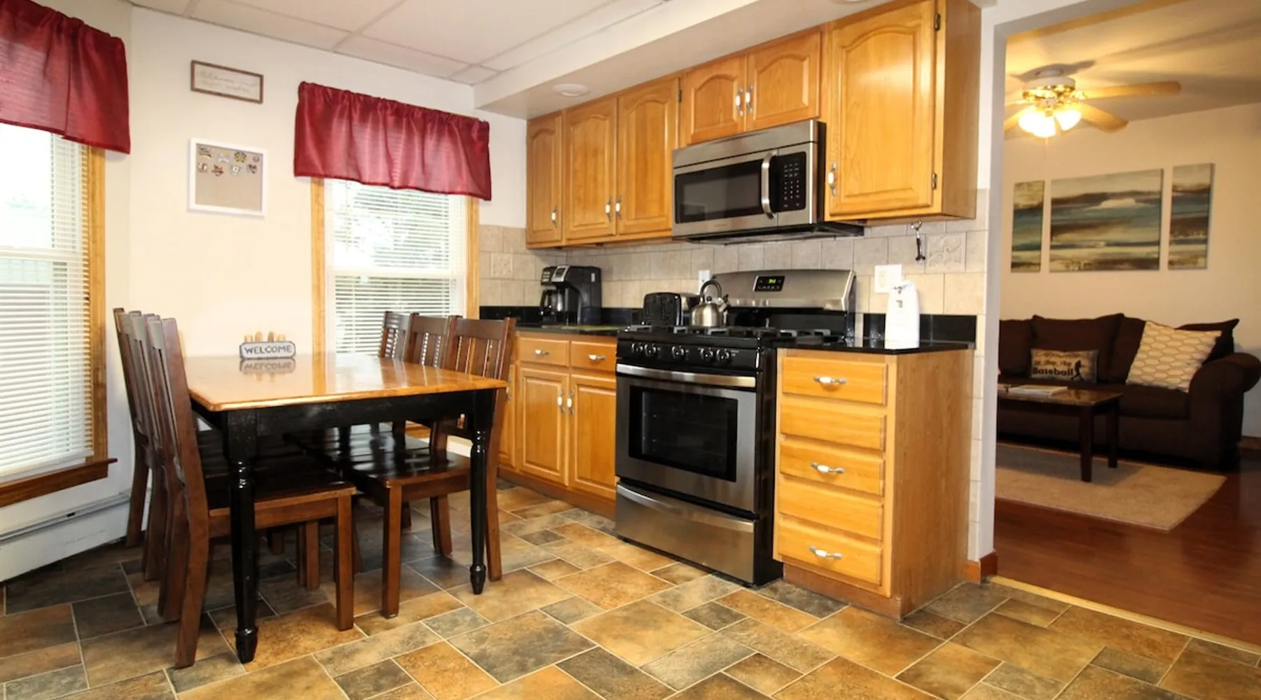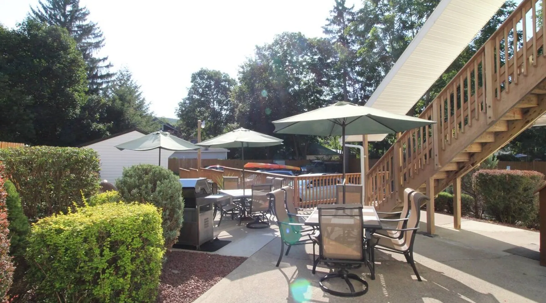 Elm Street Triple Play & Double Play Apts are located in a spacious home that offers 5 different private apartments. Triple Play #2R is a 2nd floor apartment featuring 3 bedrooms and 1 bathroom, just 3.2 miles to Cooperstown All-Star Village. The inviting wrap around covered porch is the perfect place to unwind after a long day at the ballpark. Guests especially enjoy relaxing in the extensive patio area in the rear, which is complete with gas grills and plenty of outdoor dining area. The space Centrally located, the Triple Play #2R Apartment is: • 3.2 miles to Cooperstown All Star Village • 1.7 miles to Cooperstown Dreams Park • 21.7 miles to National Baseball Hall of Fame, Cooperstown Guest access The eat-in kitchen features a dishwasher, refrigerator with automatic ice maker, and an updated tiled backsplash. There are 4 flat screen TV's with cable in this apartment - a 55" Smart Roku TV in the living room with DVD player, and a 43" or larger flat screen Roku TV in every bedroom. There is an on-site, shared laundry facility, and a shared game room with a foosball table, ping pong table and large flat screen TV. There is ample off-street parking, as well as high speed wireless internet (Wi-Fi) for all the apartments. PLEASE NOTE: The pool listed is a community pool that is approximately .5 miles from the location. There may be a fee for access. Other things to note There are 4 other apartments available in this building: Double Play #1: 2 bedrooms/1 bathroom, first floor Double Play #2: 3 bedrooms/1 bathroom, second floor Triple Play #1: 1 bedroom/1 bathroom, first floor Triple Play #2L: 1 bedroom/1 bathroom, second floor For large groups, you can rent all five apartments (if available) to have 12 bedrooms and 5 bathrooms that will sleep 24. This is a wonderful opportunity for different families to be able to stay all together at one location yet have the privacy they need! Please contact us if you are interested in renting all the units for a larger group accommodation. Visit our Profile to view all our available properties.