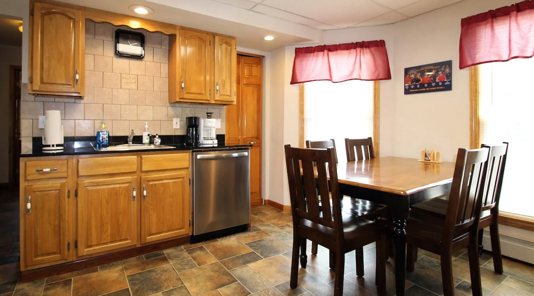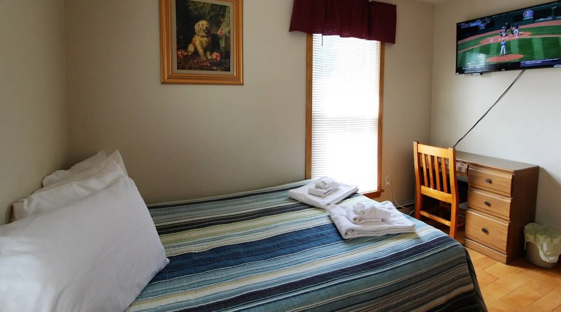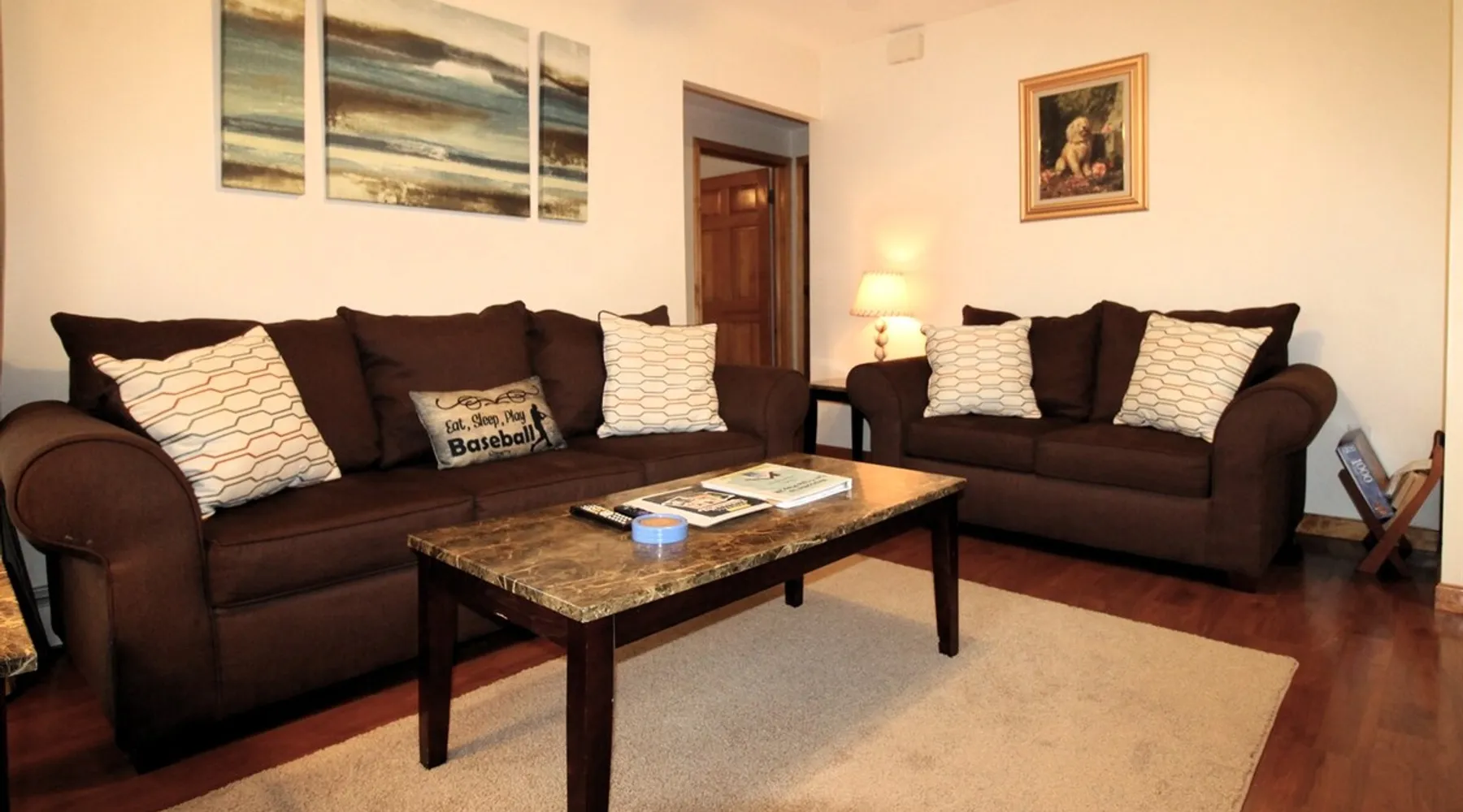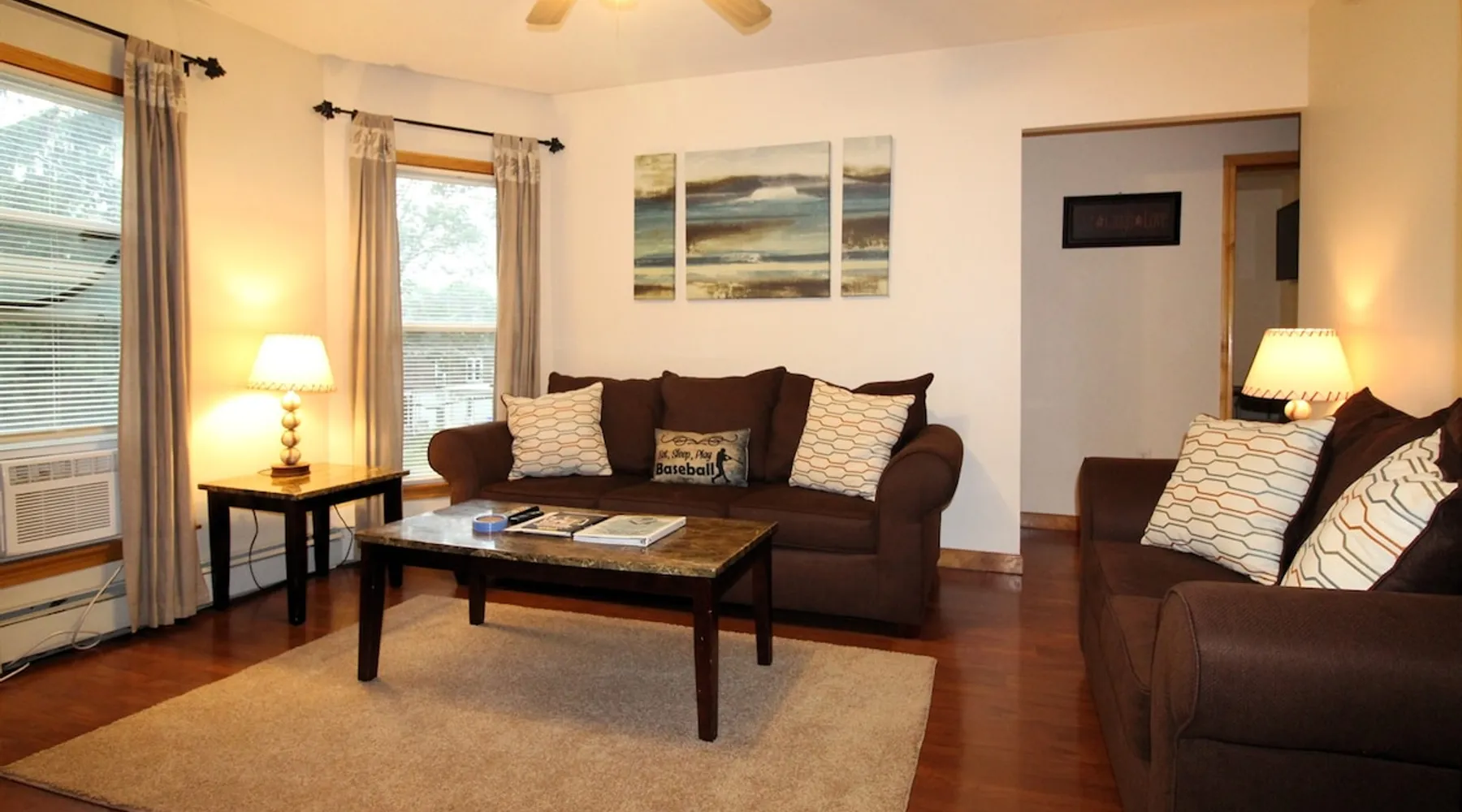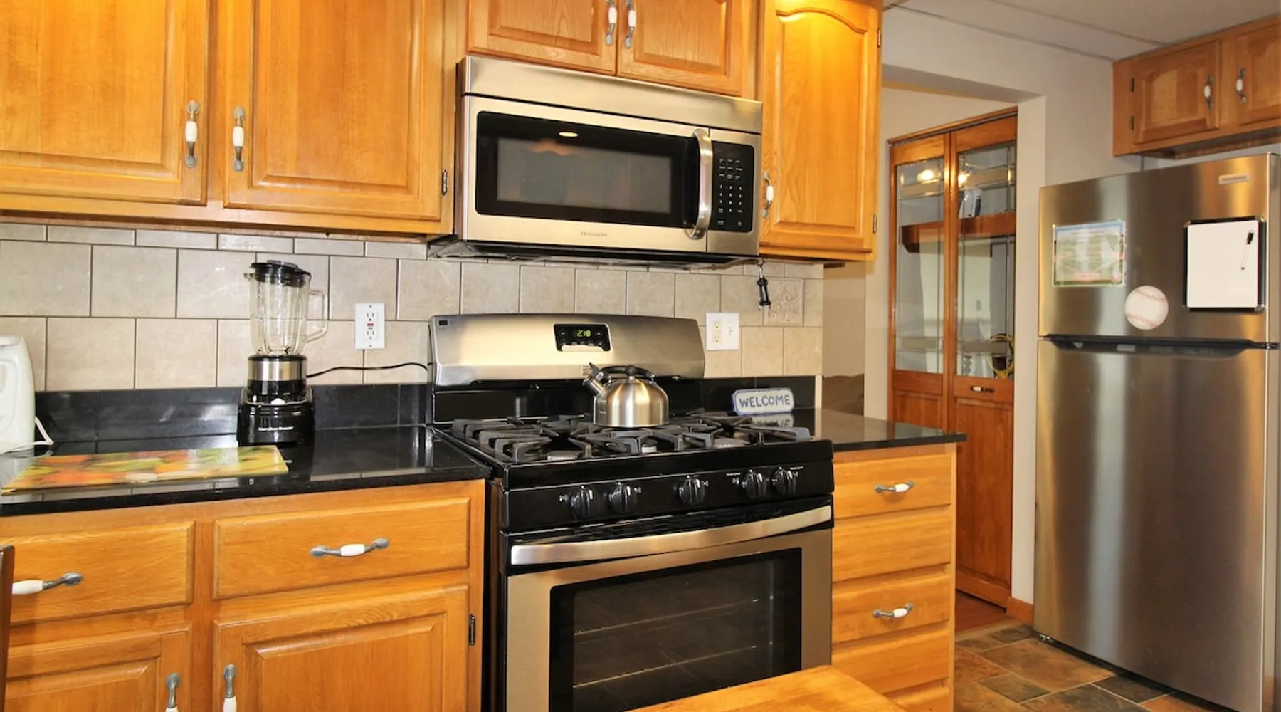 Elm Street Triple Play & Double Play Apts are located in a spacious home that offers 5 different private apartments. Triple Play #2R is a 2nd floor apartment featuring 3 bedrooms and 1 bathroom, just 3.2 miles to Cooperstown All-Star Village. The inviting wrap around covered porch is the perfect place to unwind after a long day at the ballpark. Guests especially enjoy relaxing in the extensive patio area in the rear, which is complete with gas grills and plenty of outdoor dining area. The space Centrally located, the Triple Play #2R Apartment is: • 3.2 miles to Cooperstown All Star Village • 1.7 miles to Cooperstown Dreams Park • 21.7 miles to National Baseball Hall of Fame, Cooperstown Guest access The eat-in kitchen features a dishwasher, refrigerator with automatic ice maker, and an updated tiled backsplash. There are 4 flat screen TV's with cable in this apartment - a 55" Smart Roku TV in the living room with DVD player, and a 43" or larger flat screen Roku TV in every bedroom. There is an on-site, shared laundry facility, and a shared game room with a foosball table, ping pong table and large flat screen TV. There is ample off-street parking, as well as high speed wireless internet (Wi-Fi) for all the apartments. PLEASE NOTE: The pool listed is a community pool that is approximately .5 miles from the location. There may be a fee for access. Other things to note There are 4 other apartments available in this building: Double Play #1: 2 bedrooms/1 bathroom, first floor Double Play #2: 3 bedrooms/1 bathroom, second floor Triple Play #1: 1 bedroom/1 bathroom, first floor Triple Play #2L: 1 bedroom/1 bathroom, second floor For large groups, you can rent all five apartments (if available) to have 12 bedrooms and 5 bathrooms that will sleep 24. This is a wonderful opportunity for different families to be able to stay all together at one location yet have the privacy they need! Please contact us if you are interested in renting all the units for a larger group accommodation. Visit our Profile to view all our available properties.