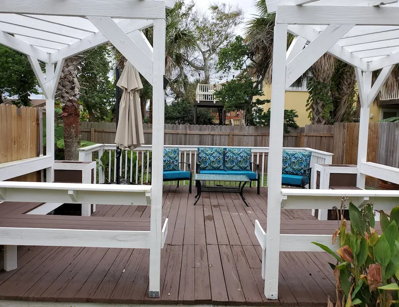 Welcome to Pablo Beach Vacation Rentals! This unit is a beautifully renovated beach condo 1 1/2 blocks from the water. Upstairs unit. Tile floors throughout. Updated kitchen with all the amenities. Private yard. Beautiful, spacious front porch. Great restaurants, coffee shop (local Breezy and also Starbucks), surf shops within walking distance. All other shopping very close! 2 full bedrooms with queen size beds. Pets welcome. Guest access You'll have access to the entire apartment, private yard, and front porch during your stay. Entry to the condo is via keypad with a secure, unique code.