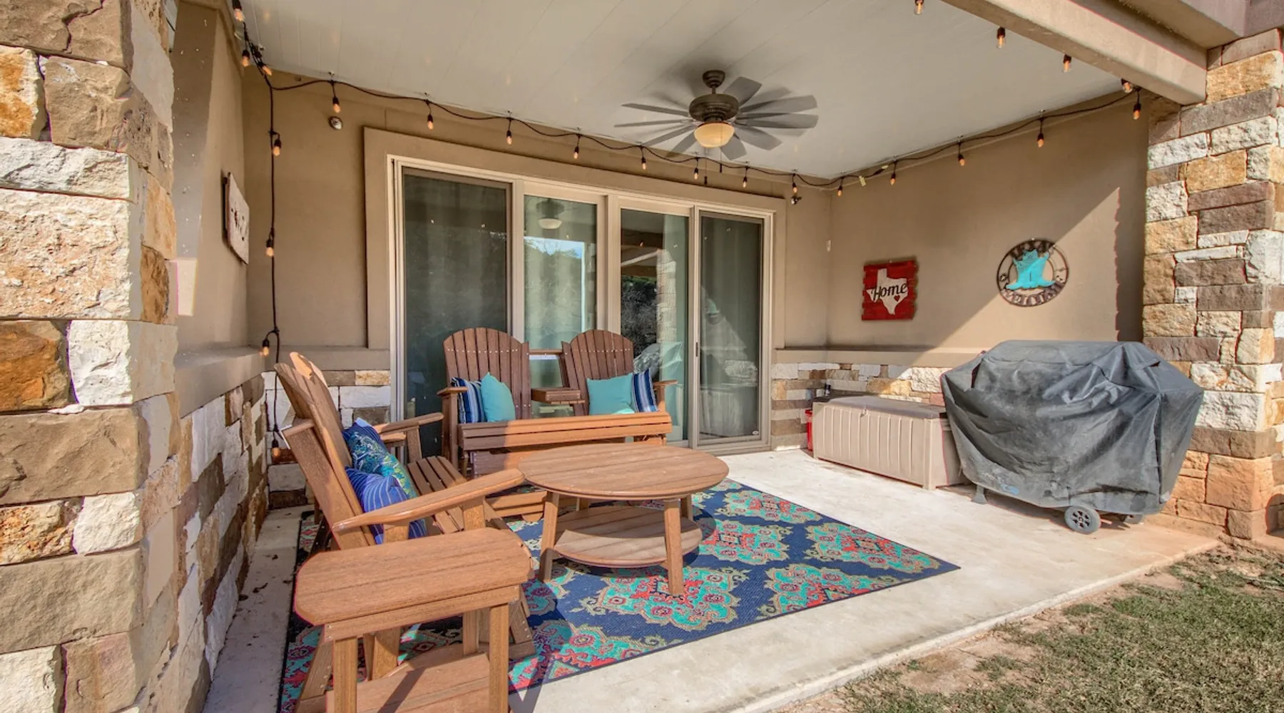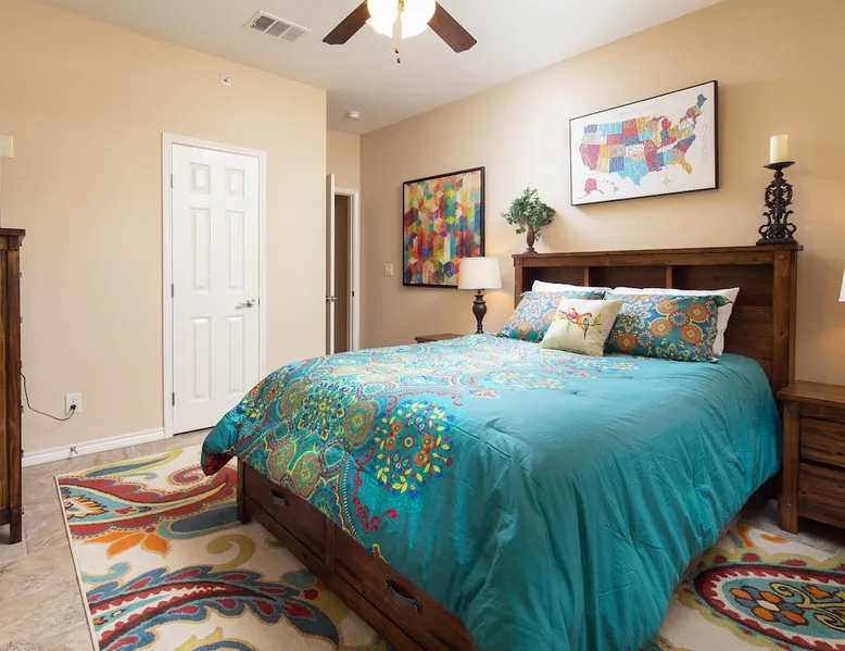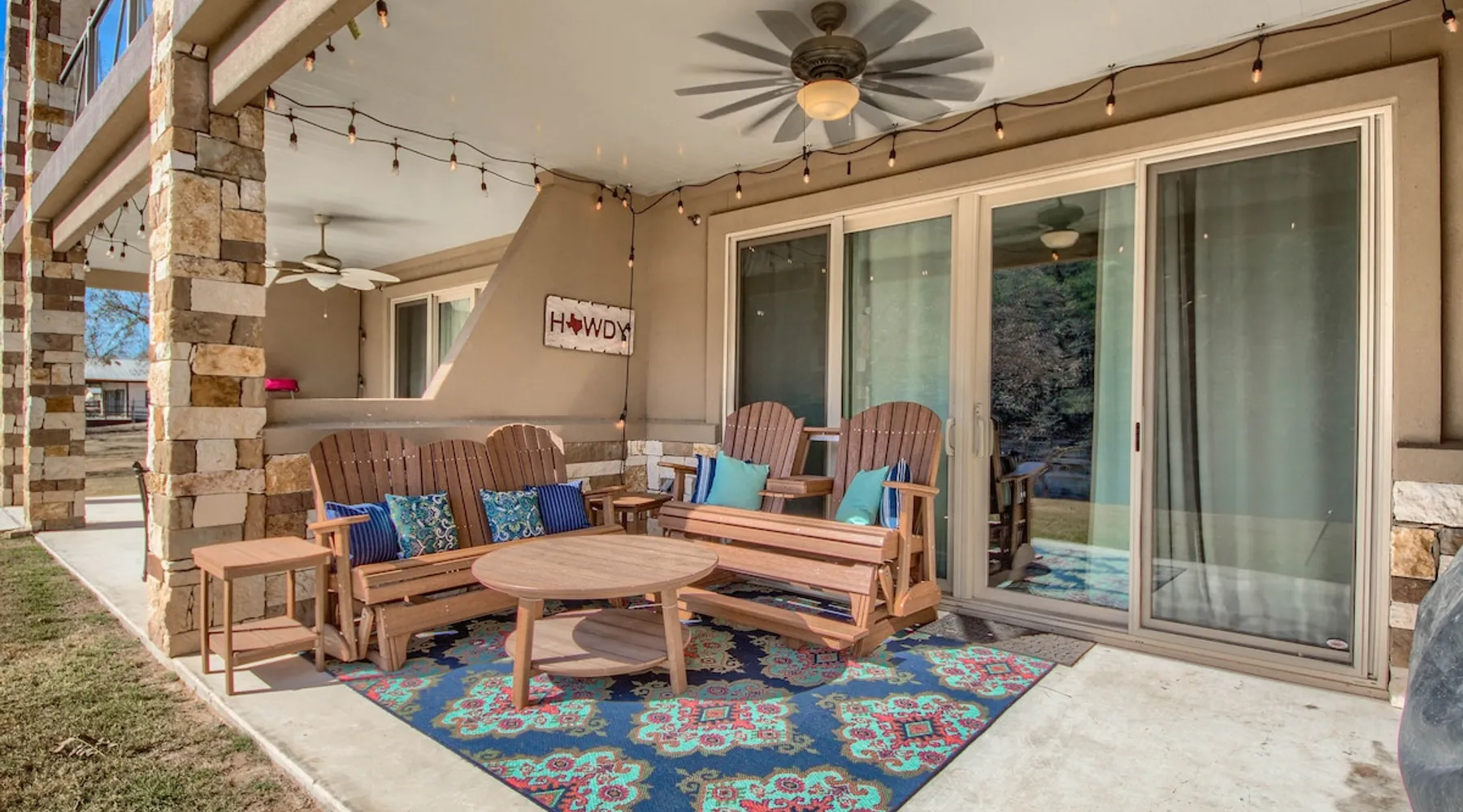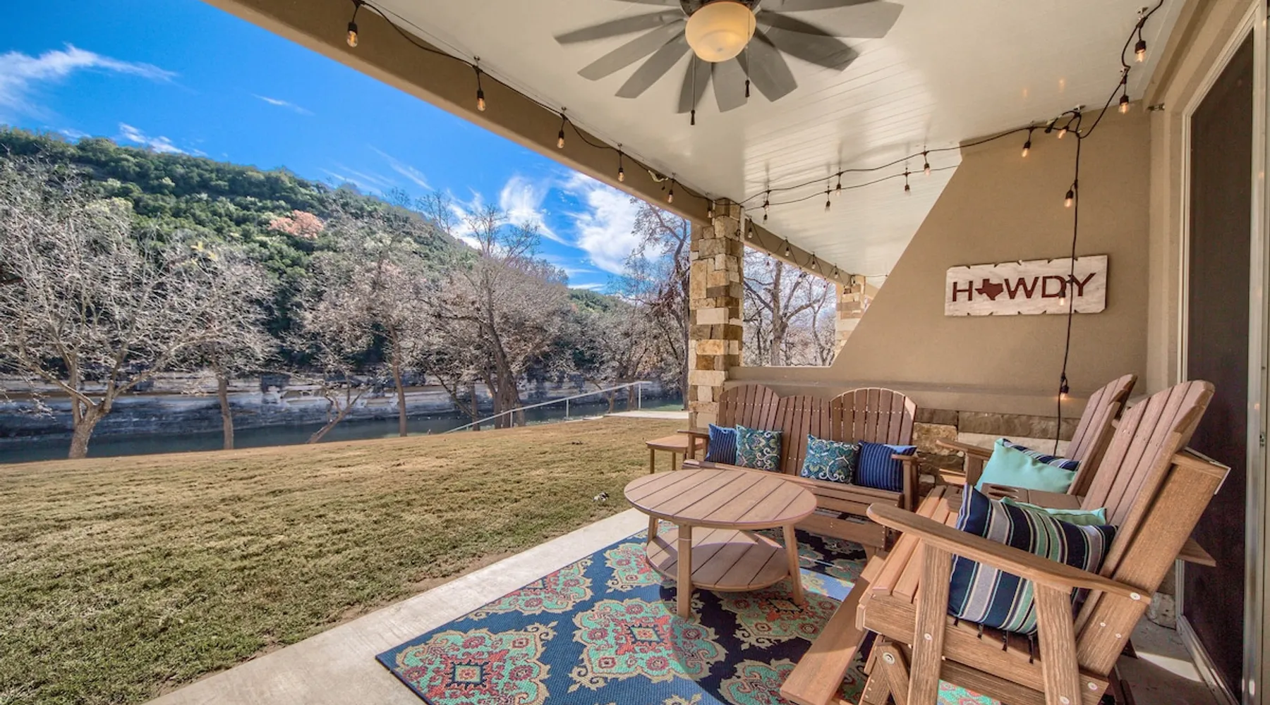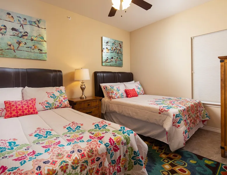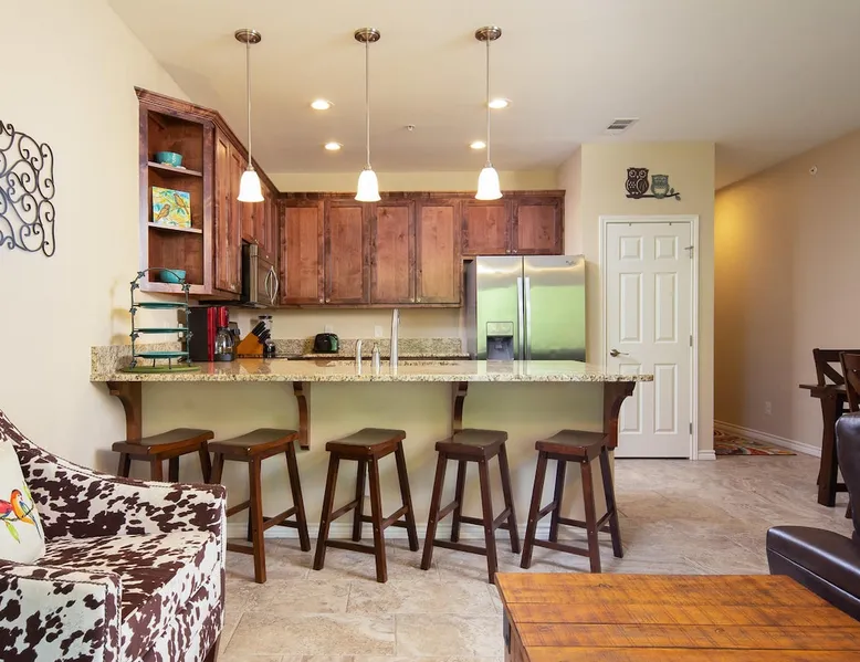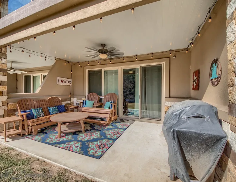 2/2 condo. Sleeps 6. Master: Queen. 2nd bedroom: 2 Full's. No pets. MUST BE 25 TO RENT. The space This is a family friendly complex. Quiet hours are STRICTLY enforced between 10 PM- 9 AM. New mattresses! Enjoy our brand new 2 bedroom, 2 bath condo at Rio Guadalupe Condominiums located on a scenic stretch of the Guadalupe River with breathtaking views and direct river access! Our first floor condo offers a large private patio with comfortable furniture and a private grill. Enjoy a cup of coffee in the morning or a glass of wine in the evening while enjoying the river and our beautiful canyon views. You’ll want to spend your afternoons tubing, rafting, kayaking, canoeing, fishing, swimming or simply relaxing in a chair in the water watching tubers go by. Rio Guadalupe Resort will shuttle you wherever you would like to go. Rio Guadalupe Resort is located right next if you want to rent tubes with shuttle service. You can also take a dip in our brand new pool. There is something to do for everyone. Our condo is not just a rental, it is our home away from home. It comes fully furnished with flat screen TVs in the master bedroom and in the living room, WiFi, a fully equipped kitchen including toaster, blender, coffee maker, and more. The master bedroom has a queen sized bed with premium sheets and bedding and a private bathroom. The second bedroom has two full beds. Guest bathroom is conveniently located near the living room and second bedroom. High quality linens are provided for all beds and bathrooms. The condo sleeps six comfortably. This condo is on the first floor with great views of the Guadalupe River. Host must be 25 years of age or older to make a reservation and must be staying at the property. This condo comes with 2 parking passes and 6 wristbands. If you have more than 2 vehicles there is parking less than 1 mile away. No trailers, campers or RV's allowed. No portable grills or open flames. No smoking inside the condo or on the patio. No pets allowed. Family friendly condo with no tolerance for profanity or vulgar music. This condo has a maximum occupancy of 6 guests. This maximum occupancy is not to be exceeded at any time. No daytime guests allowed. **WRISTBANDS & PARKING PASSES REQUIRED*** These condos are individually owned and the owners graciously allow their "second homes" to be rented out and enjoyed! The HOA of the complex had laid out some policies to ensure everyone staying at the complex can have a wonderful time. Because of the fabulous location, we can have trouble with trespassers. The security guards on premise are there to ensure only renters are using the grounds and that guests are parking in the correct parking spaces. WORD permit #L1364 WINTER MONTHLY RENTALS - if you are interested in renting monthly in the winter months, please contact New Braunfels Escapes for pricing details. This property is $1700 per month. ***Although every effort has been made by New Braunfels Escapes to ensure the accuracy of the information in this site, it is not guaranteed. It is subject to errors, omissions, change of price, change of house contents and/or features or withdrawal without notice. Starter pack of amenities is provided until you are able to get to the store. No perishables (including salt and pepper) are provided.***
