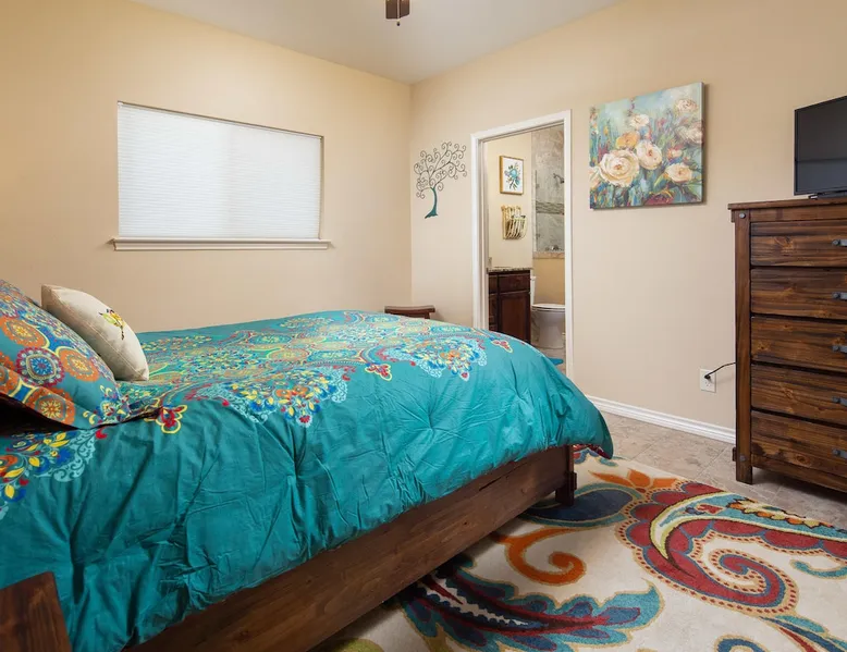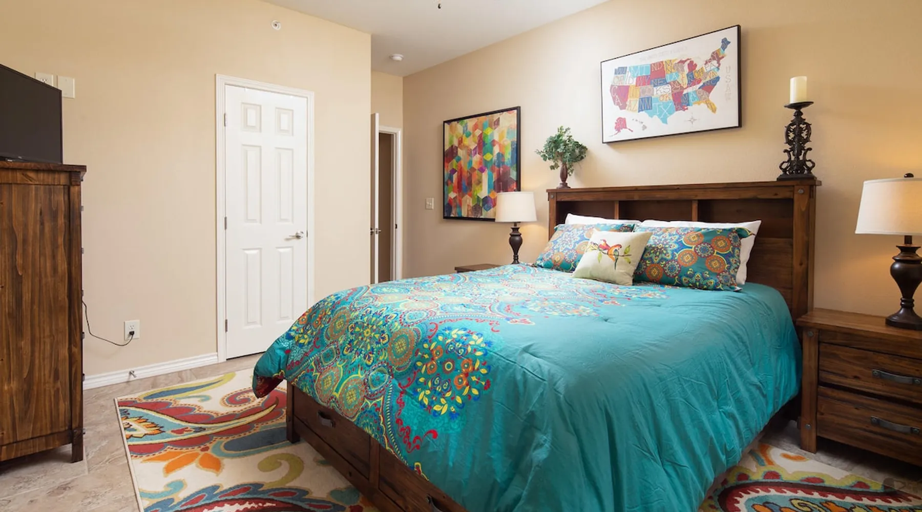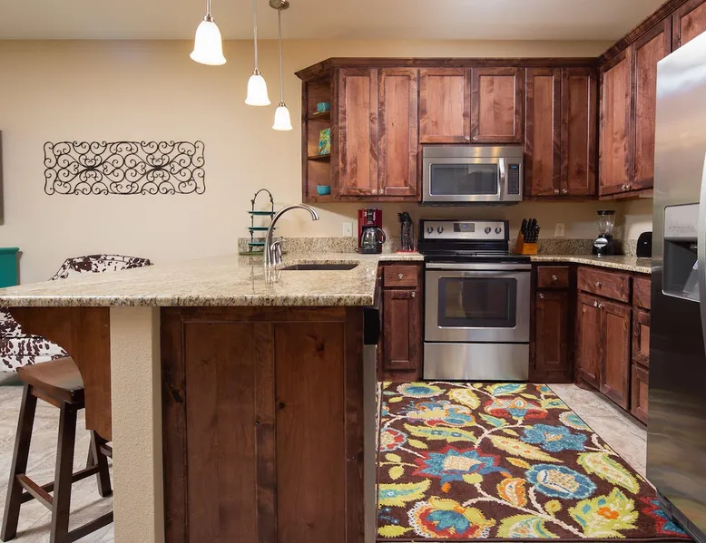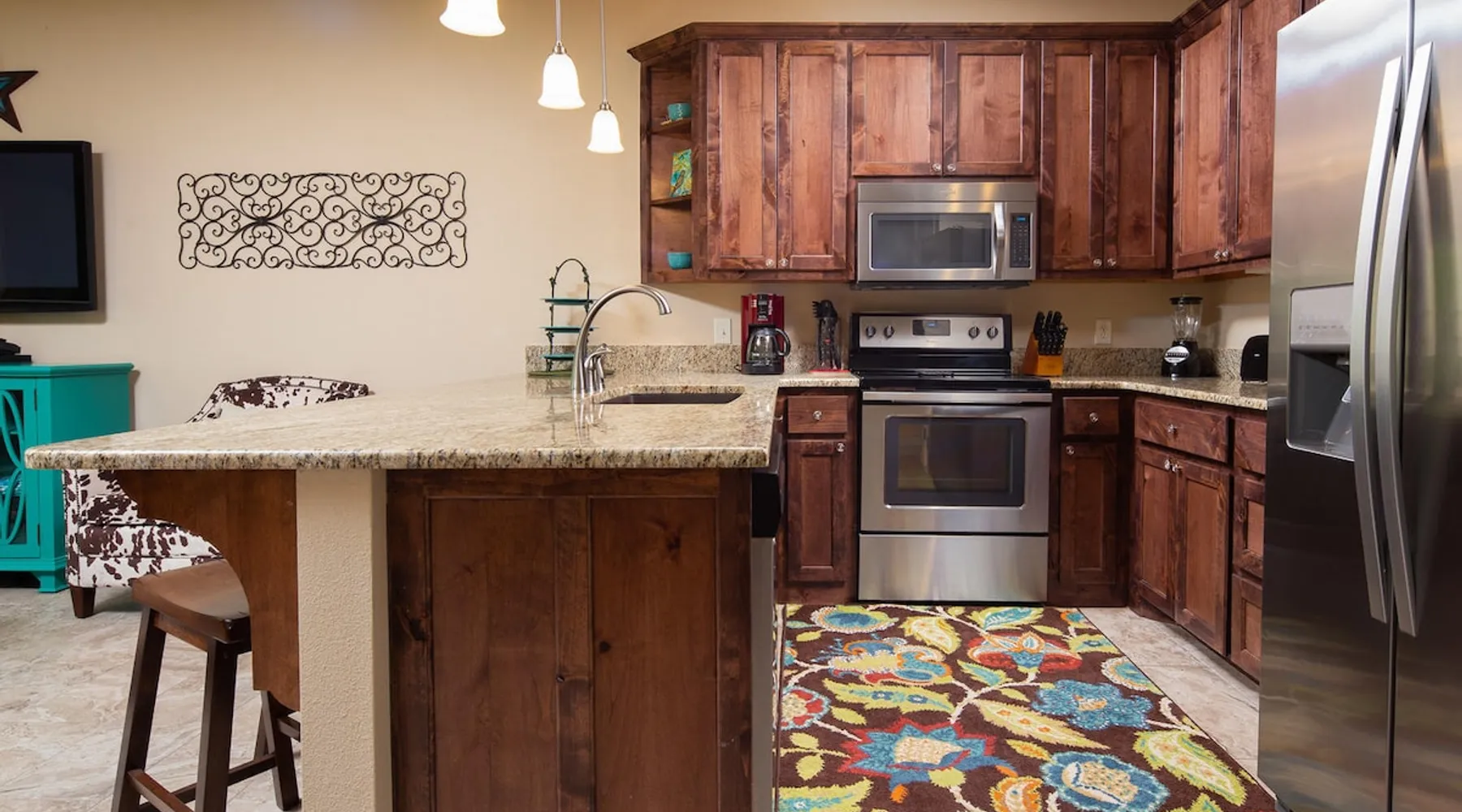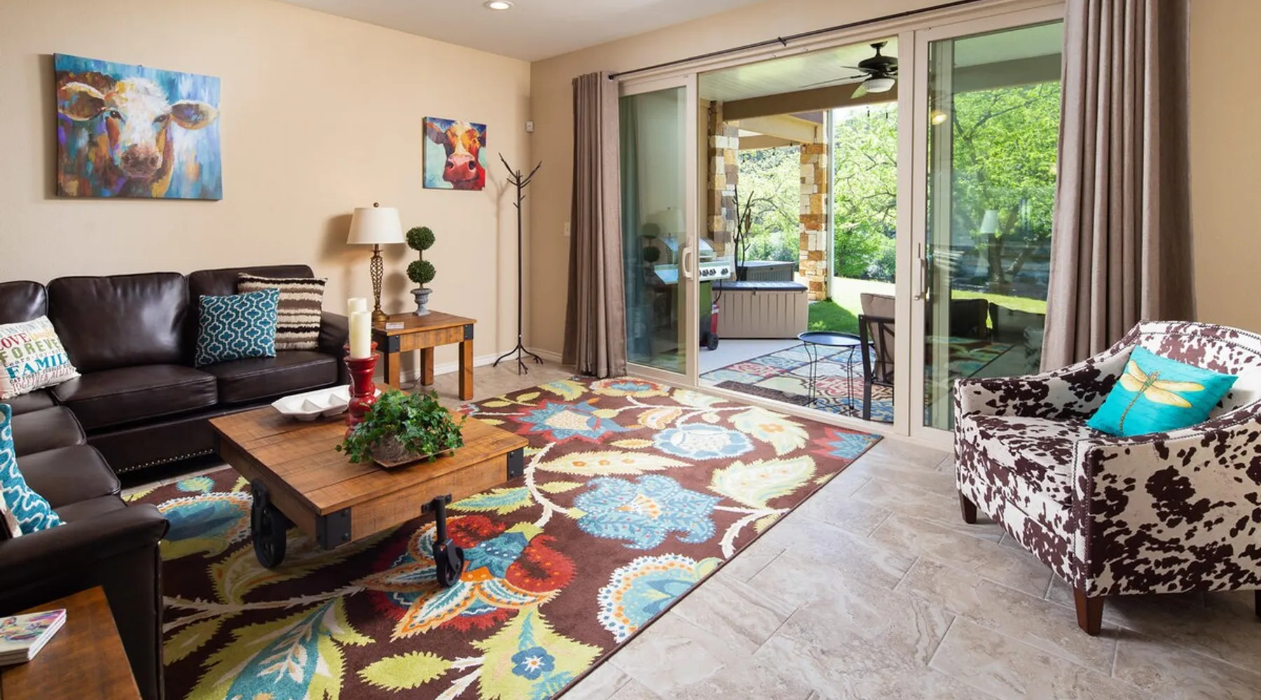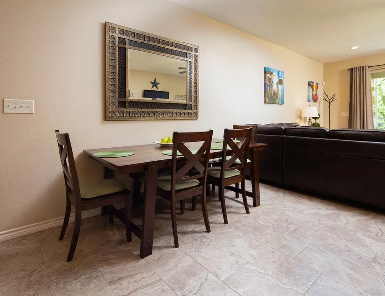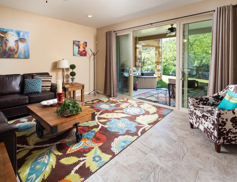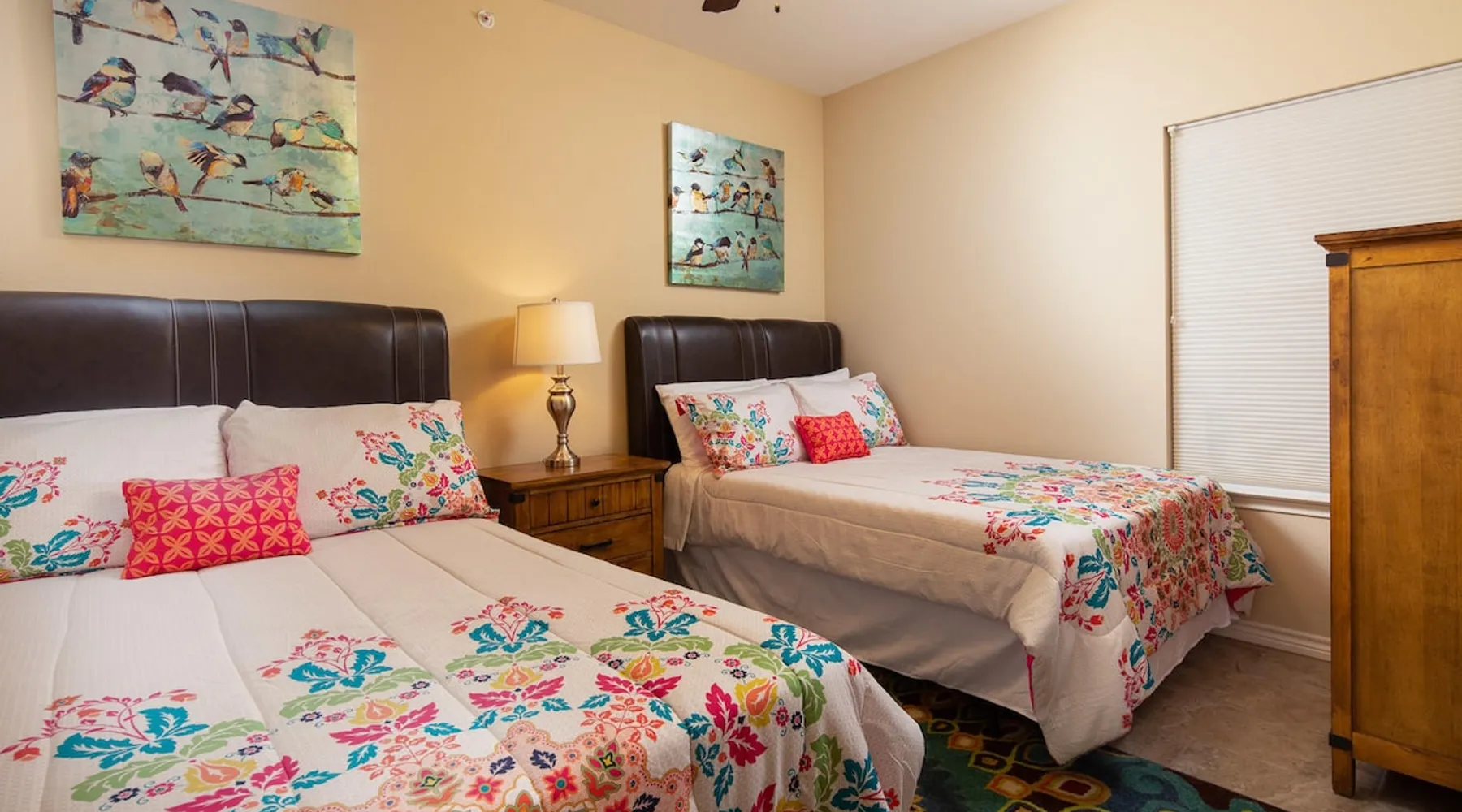 2/2 condo. Sleeps 6. Master: Queen. 2nd bedroom: 2 Full's. No pets. MUST BE 25 TO RENT. The space This is a family friendly complex. Quiet hours are STRICTLY enforced between 10 PM- 9 AM. New mattresses! Enjoy our brand new 2 bedroom, 2 bath condo at Rio Guadalupe Condominiums located on a scenic stretch of the Guadalupe River with breathtaking views and direct river access! Our first floor condo offers a large private patio with comfortable furniture and a private grill. Enjoy a cup of coffee in the morning or a glass of wine in the evening while enjoying the river and our beautiful canyon views. You’ll want to spend your afternoons tubing, rafting, kayaking, canoeing, fishing, swimming or simply relaxing in a chair in the water watching tubers go by. Rio Guadalupe Resort will shuttle you wherever you would like to go. Rio Guadalupe Resort is located right next if you want to rent tubes with shuttle service. You can also take a dip in our brand new pool. There is something to do for everyone. Our condo is not just a rental, it is our home away from home. It comes fully furnished with flat screen TVs in the master bedroom and in the living room, WiFi, a fully equipped kitchen including toaster, blender, coffee maker, and more. The master bedroom has a queen sized bed with premium sheets and bedding and a private bathroom. The second bedroom has two full beds. Guest bathroom is conveniently located near the living room and second bedroom. High quality linens are provided for all beds and bathrooms. The condo sleeps six comfortably. This condo is on the first floor with great views of the Guadalupe River. Host must be 25 years of age or older to make a reservation and must be staying at the property. This condo comes with 2 parking passes and 6 wristbands. If you have more than 2 vehicles there is parking less than 1 mile away. No trailers, campers or RV's allowed. No portable grills or open flames. No smoking inside the condo or on the patio. No pets allowed. Family friendly condo with no tolerance for profanity or vulgar music. This condo has a maximum occupancy of 6 guests. This maximum occupancy is not to be exceeded at any time. No daytime guests allowed. **WRISTBANDS & PARKING PASSES REQUIRED*** These condos are individually owned and the owners graciously allow their "second homes" to be rented out and enjoyed! The HOA of the complex had laid out some policies to ensure everyone staying at the complex can have a wonderful time. Because of the fabulous location, we can have trouble with trespassers. The security guards on premise are there to ensure only renters are using the grounds and that guests are parking in the correct parking spaces. WORD permit #L1364 WINTER MONTHLY RENTALS - if you are interested in renting monthly in the winter months, please contact New Braunfels Escapes for pricing details. This property is $1700 per month. ***Although every effort has been made by New Braunfels Escapes to ensure the accuracy of the information in this site, it is not guaranteed. It is subject to errors, omissions, change of price, change of house contents and/or features or withdrawal without notice. Starter pack of amenities is provided until you are able to get to the store. No perishables (including salt and pepper) are provided.***
