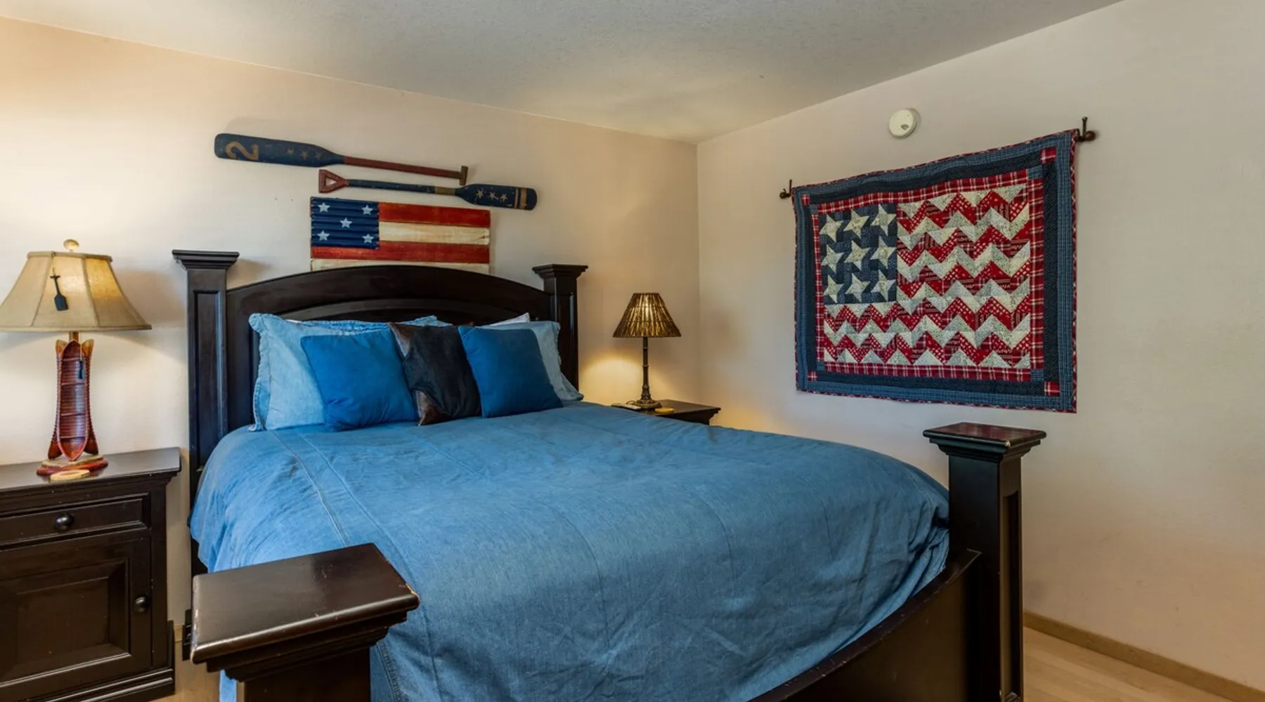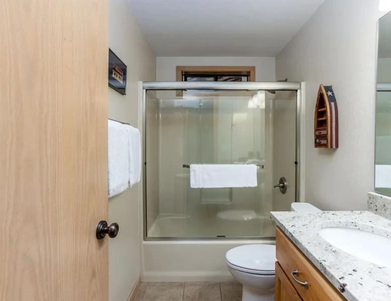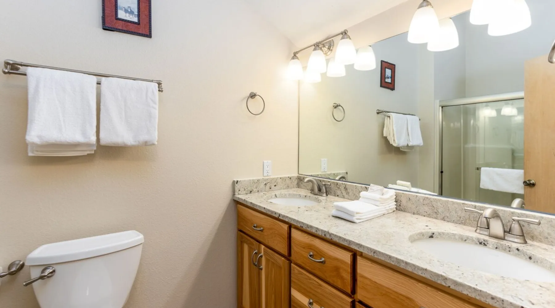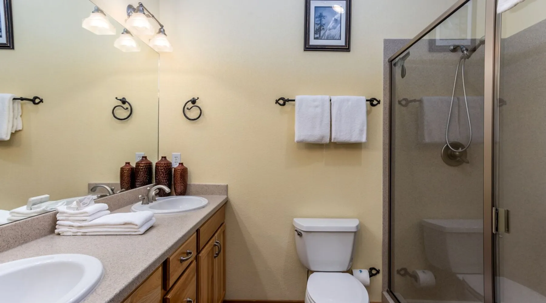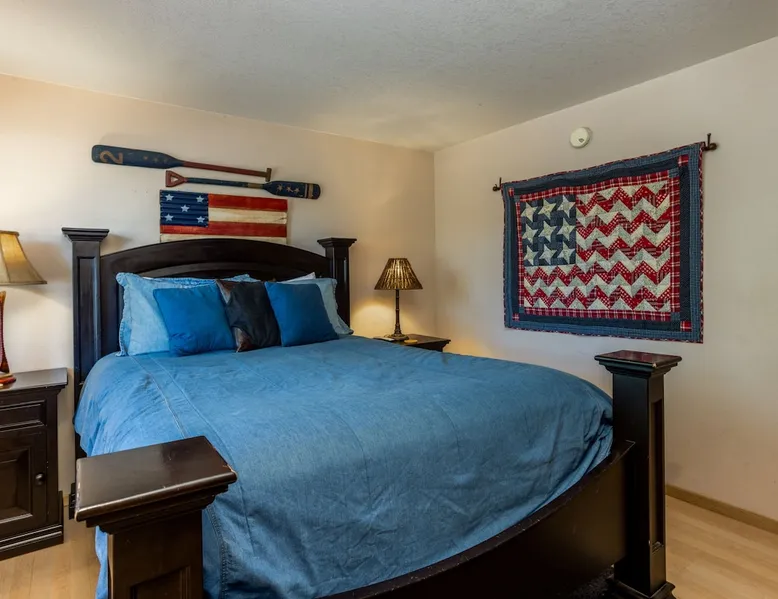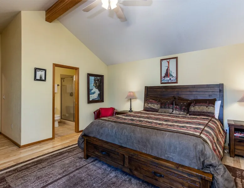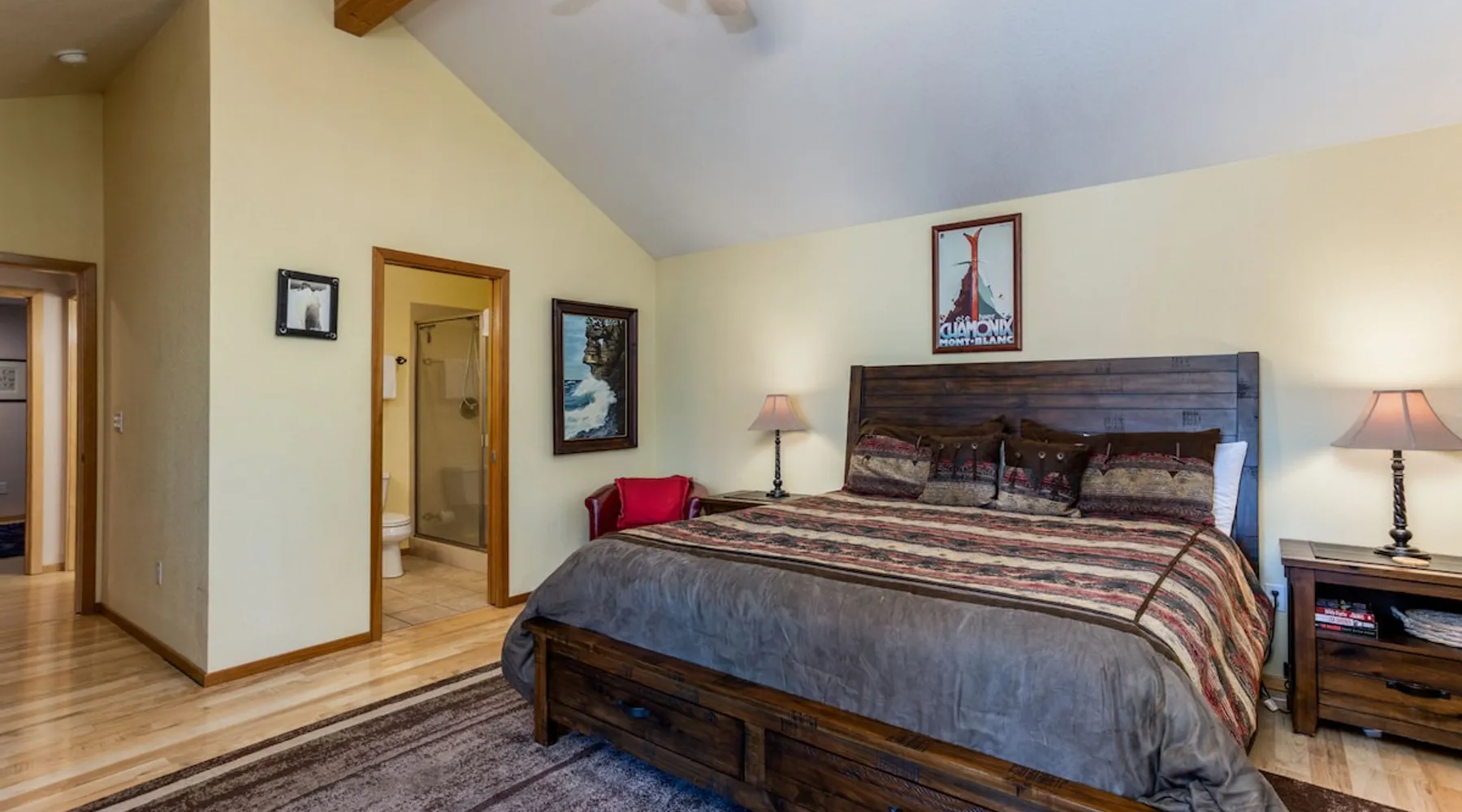 Near Woodlands golf course and scenic Deschutes river. Open floor plan of beautiful lodge style colors, ping pong, hot tub. Two ensuite bedrooms, well equipped kitchen. The space This single level home has an open floor plan with vaulted ceilings for a spacious feel. Wood and stone paired with Americana accents give this home the feel of a ski lodge with all the amenities. Warm up by the wood burning fireplace in the winter, or enjoy grilling on the back deck in the summer. A well-stocked kitchen and dining for 8 make group meals a breeze. This home has three bedrooms, all nicely spaced for privacy. Bedroom one is a queen bedroom adjacent to the full hall bathroom. Down the hall is a spacious king ensuite bedroom with private bathroom and double doors giving access to the back deck and hot tub. Bedroom three is a queen ensuite with private bath and deck access as well. In addition, there is a sofa sleeper in the living room. All bedrooms feature their own TV, including 2 Smart TVs, 2 Flat Screens, and 3 DVD players. In the garage you’ll find Ping Pong and 4 adult bikes. This home is a quick trek from Woodlands Golf Course, Fort Rock Park, and the Deschutes River. This home, along with most Sunriver homes, is not air conditioned. With our cool mountain evenings and ice cold rivers and lakes to keep you cool, this is a great house for a slow paced, ice cream and iced beer kinda summer. This home welcomes dogs, 2 max, no other pets are allowed. Fees apply Family Reunion in Sunriver? Great! Book this home along with our 3 Topflite or 12 Topflite homes and have room for the whole family. Guest access Home access information will be sent 7 - 10 days prior to arrival. All homes are set up for self check-in, no need to stop by the office, just go straight to the home. Other things to note This single level home has an open floor plan with vaulted ceilings for a spacious feel. Wood and stone paired with Americana accents give this home the feel of a ski lodge with all the amenities. Warm up by the wood burning fireplace in the winter, or enjoy grilling on the back deck in the summer. A well-stocked kitchen and dining for 8 make group meals a breeze. This home has three bedrooms, all nicely spaced for privacy. Bedroom one is a queen bedroom adjacent to the full hall bathroom. Down the hall is a spacious king ensuite bedroom with private bathroom and double doors giving access to the back deck and hot tub. Bedroom three is a queen ensuite with private bath and deck access as well. In addition, there is a sofa sleeper in the living room. All bedrooms feature their own TV, including 2 Smart TVs, 2 Flat Screens, and 3 DVD players. In the garage you’ll find Ping Pong and 4 adult bikes. This home is a quick trek from Woodlands Golf Course, Fort Rock Park, and the Deschutes River. This home, along with most Sunriver homes, is not air conditioned. With our cool mountain evenings and ice cold rivers and lakes to keep you cool, this is a great house for a slow paced, ice cream and iced beer kinda summer. This home welcomes dogs, 2 max, no other pets are allowed. Fees apply Family Reunion in Sunriver? Great! Book this home along with our 3 Topflite or 12 Topflite homes and have room for the whole family.