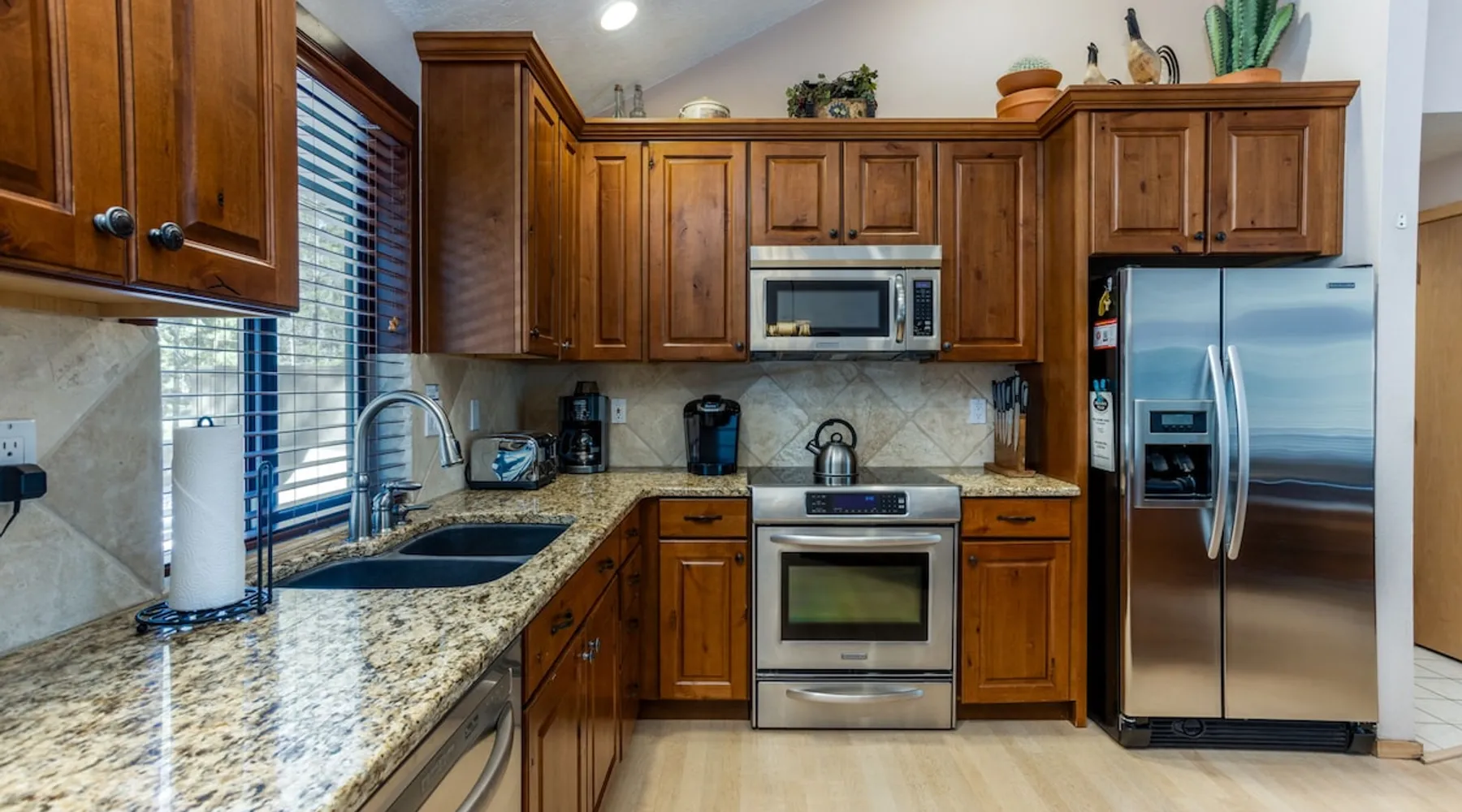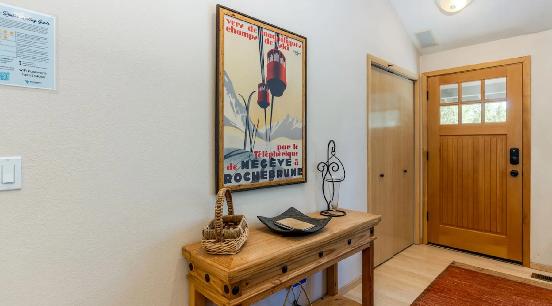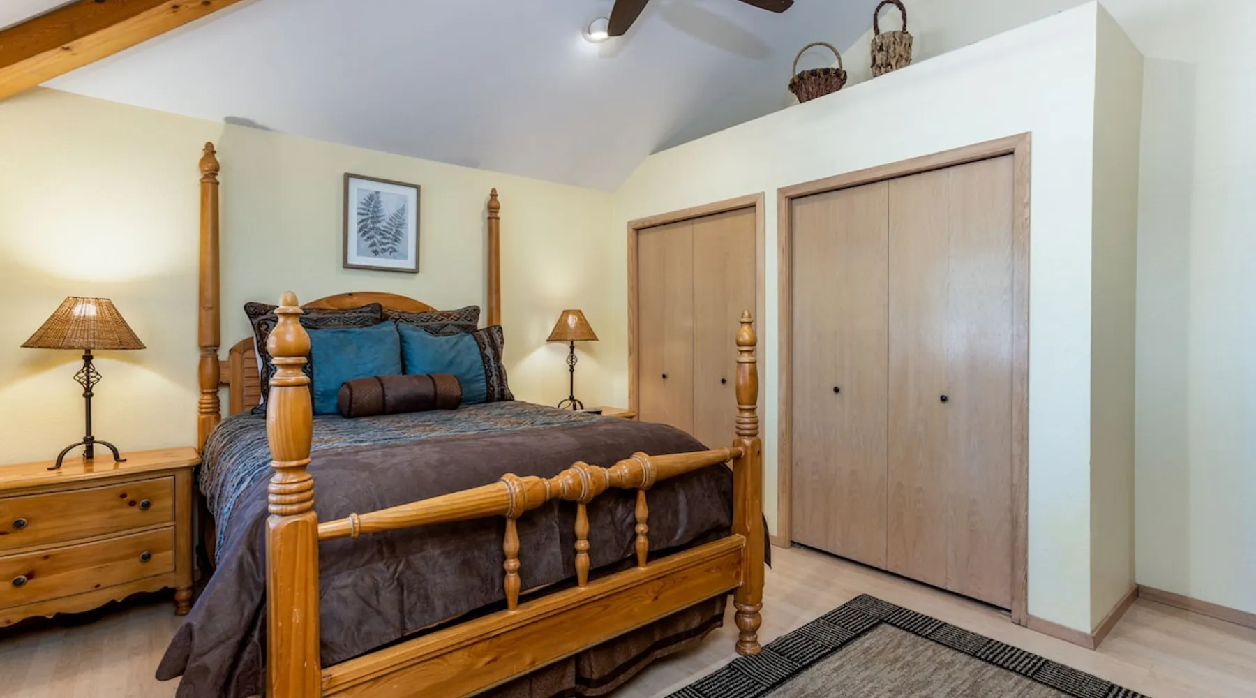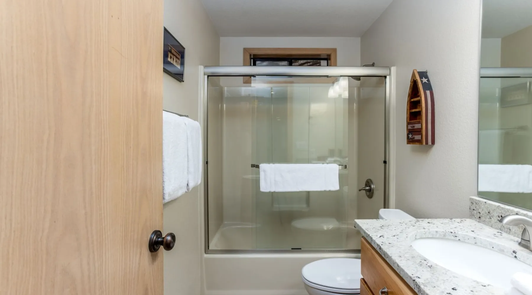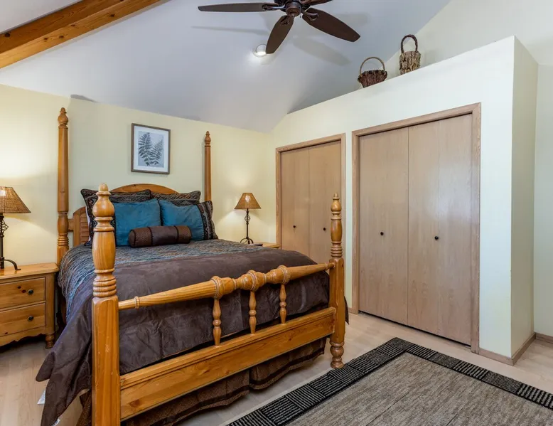 Near Woodlands golf course and scenic Deschutes river. Open floor plan of beautiful lodge style colors, ping pong, hot tub. Two ensuite bedrooms, well equipped kitchen. The space This single level home has an open floor plan with vaulted ceilings for a spacious feel. Wood and stone paired with Americana accents give this home the feel of a ski lodge with all the amenities. Warm up by the wood burning fireplace in the winter, or enjoy grilling on the back deck in the summer. A well-stocked kitchen and dining for 8 make group meals a breeze. This home has three bedrooms, all nicely spaced for privacy. Bedroom one is a queen bedroom adjacent to the full hall bathroom. Down the hall is a spacious king ensuite bedroom with private bathroom and double doors giving access to the back deck and hot tub. Bedroom three is a queen ensuite with private bath and deck access as well. In addition, there is a sofa sleeper in the living room. All bedrooms feature their own TV, including 2 Smart TVs, 2 Flat Screens, and 3 DVD players. In the garage you’ll find Ping Pong and 4 adult bikes. This home is a quick trek from Woodlands Golf Course, Fort Rock Park, and the Deschutes River. This home, along with most Sunriver homes, is not air conditioned. With our cool mountain evenings and ice cold rivers and lakes to keep you cool, this is a great house for a slow paced, ice cream and iced beer kinda summer. This home welcomes dogs, 2 max, no other pets are allowed. Fees apply Family Reunion in Sunriver? Great! Book this home along with our 3 Topflite or 12 Topflite homes and have room for the whole family. Guest access Home access information will be sent 7 - 10 days prior to arrival. All homes are set up for self check-in, no need to stop by the office, just go straight to the home. Other things to note This single level home has an open floor plan with vaulted ceilings for a spacious feel. Wood and stone paired with Americana accents give this home the feel of a ski lodge with all the amenities. Warm up by the wood burning fireplace in the winter, or enjoy grilling on the back deck in the summer. A well-stocked kitchen and dining for 8 make group meals a breeze. This home has three bedrooms, all nicely spaced for privacy. Bedroom one is a queen bedroom adjacent to the full hall bathroom. Down the hall is a spacious king ensuite bedroom with private bathroom and double doors giving access to the back deck and hot tub. Bedroom three is a queen ensuite with private bath and deck access as well. In addition, there is a sofa sleeper in the living room. All bedrooms feature their own TV, including 2 Smart TVs, 2 Flat Screens, and 3 DVD players. In the garage you’ll find Ping Pong and 4 adult bikes. This home is a quick trek from Woodlands Golf Course, Fort Rock Park, and the Deschutes River. This home, along with most Sunriver homes, is not air conditioned. With our cool mountain evenings and ice cold rivers and lakes to keep you cool, this is a great house for a slow paced, ice cream and iced beer kinda summer. This home welcomes dogs, 2 max, no other pets are allowed. Fees apply Family Reunion in Sunriver? Great! Book this home along with our 3 Topflite or 12 Topflite homes and have room for the whole family.