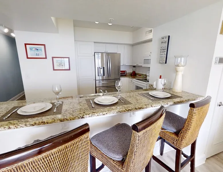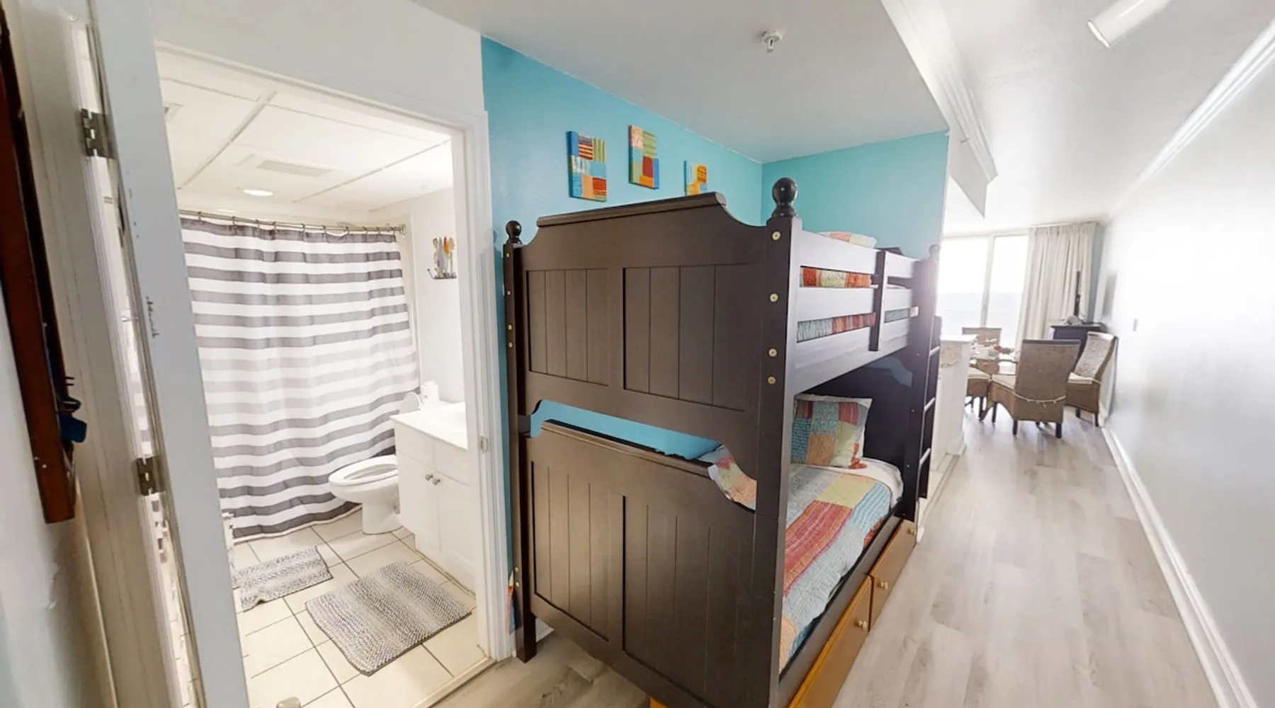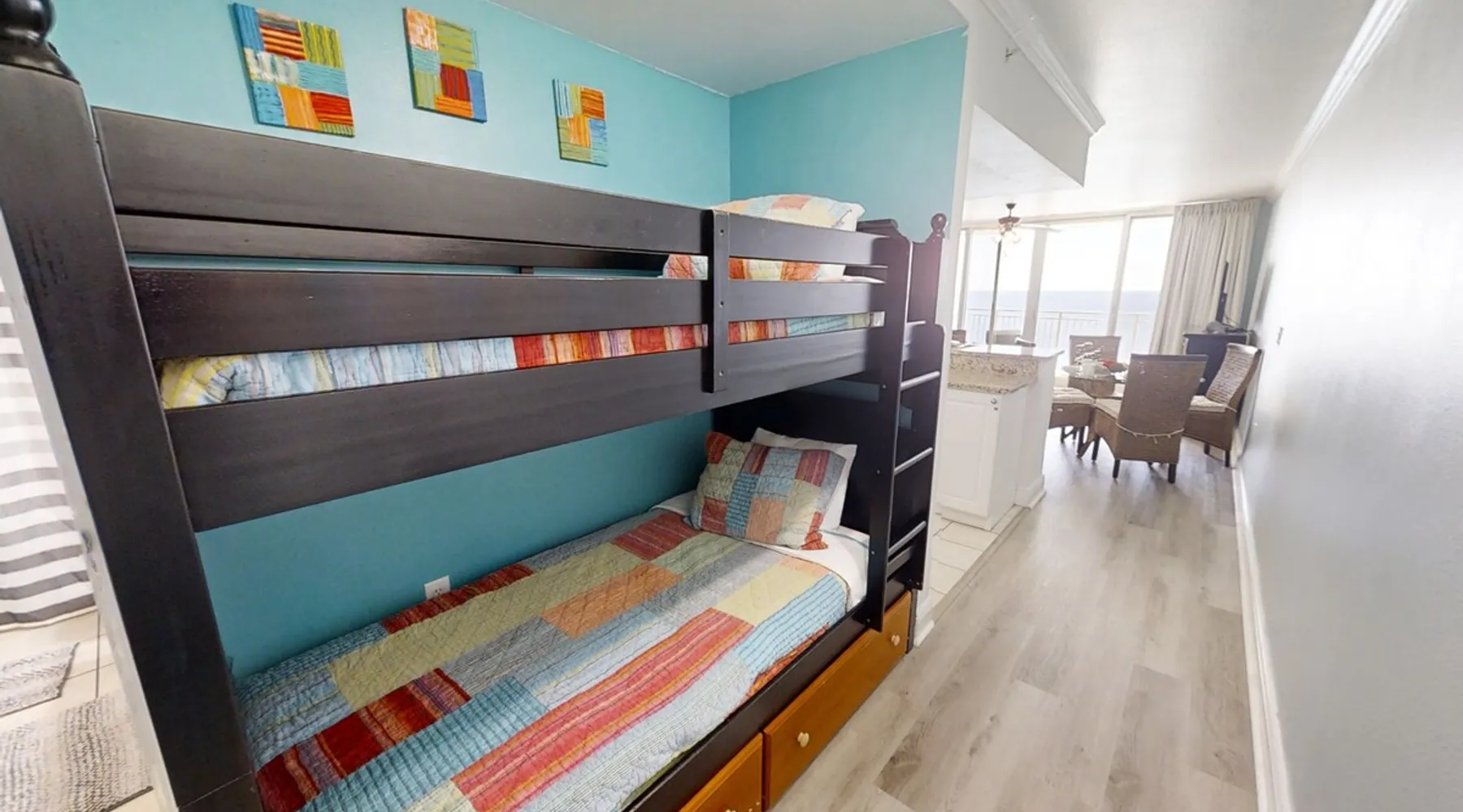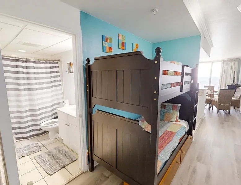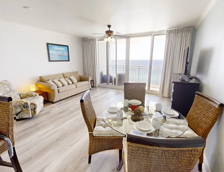 Your stay includes $479 in daily complimentary activities! Just by booking with us, you'll receive free tickets, every day of your stay to activities like golfing, water parks, dolphin cruises and more. We are very close to Pier Park The space Emerald Beach 1535 25+ to rent * 15th floor unit * Sleeps 5 Snowbirds Welcome In unit Washer & Dryer Free High Speed WiFi No Pets & No Smoking Snow Birds need to call to add March to your stay Your stay includes $479 in daily complimentary activities! Just by booking with us, you'll receive free tickets, every day of your stay to these activities around the beach: 1 Free Round of Golf at Bay Point, every day! 1 Free Round of Golf at Windswept Dunes, every day! 1 Free adult admission to Shipwreck Water Park, every day! 1 Free adult admission on a Sunset & Dolphin watching Sailing Cruise, every day! 1 Free adult pass to Skywheel PCB & Mini Golf at Pier Park, every day! 1 Free adult admission to Wonderworks, every day! 1 Free pass to Just Jump Trampoline Park, every day! 1 Free $25 Wongo Card at Swampy Jack's Wongo Adventure, every day! 1 Free $20 Power Card at Dave & Buster's, once per stay! One free adult admission at each of the above activities, per unit, per paid night, stay, with reservations made in advance. Reservation required. Noncumulative and nontransferable. Unused admissions expire daily. Snowbird Reservations (28 nights or longer) don't receive access to these daily complimentary activities. This cute 1 bedroom 1 bathroom unit sleeps 5 guests comfortably and is perfect for a beach getaway. The master bedroom has a comfy king bed, a closet, and easy access to the bathroom. Down the hallway is a tucked away bunkbed perfect for the little ones. In the living room you have a sofa which also turns into a pull out bed, a lounge chair, a flat screen TV, a dining table, and access to your private balcony overlooking the sandy beach. The kitchen has all white appliances and will fill all your needs for cooking up a good meal. The balcony has seating to accommodate 4 guests and is a great place to watch the sunrise or sunset. Emerald beach has some very unique amenities which include the Bar/Restaurant that is located in the cross over from our huge parking facility. We also have an elevated Gulf-front deck with two tropical pools overlooking the Gulf of Mexico, relaxing spas, a children's water play area, a poolside hot tub, a fitness center, a shuffleboard court, and a giant chessboard and a game room. Emerald Beach resort is the ultimate beach getaway. Our guests will enjoy views of the Gulf from their own private and furnished balcony, Our kitchen has all the cooking needs necessary to cook up your family favorites, but with all of our fantastic eateries let mom have a vacation too! Just 4 minutes away from the resort is Pier Park which is an outdoor plaza full of amazing restaurants and all different types of stores for shopping. Parking Notes: Limit of two parking passes per unit. Please keep in mind the parking Garage max vehicle height is 6' 8" (and 6'4" on parking level 4) and there is no guaranteed onsite parking for over-sized vehicles. No Scooters, Golf Carts, Rent-able Mini Vehicles, Boats or Trailers allowed on property." Guest access Check in is at 4:00PM and check out is 10:00AM. You can request an early check in 1:00pm or late check out 12:00pm based on a limited availability do this early to guarantee this service. Cost is $50.00 All amenities are free for guest use. Registration Details 3032