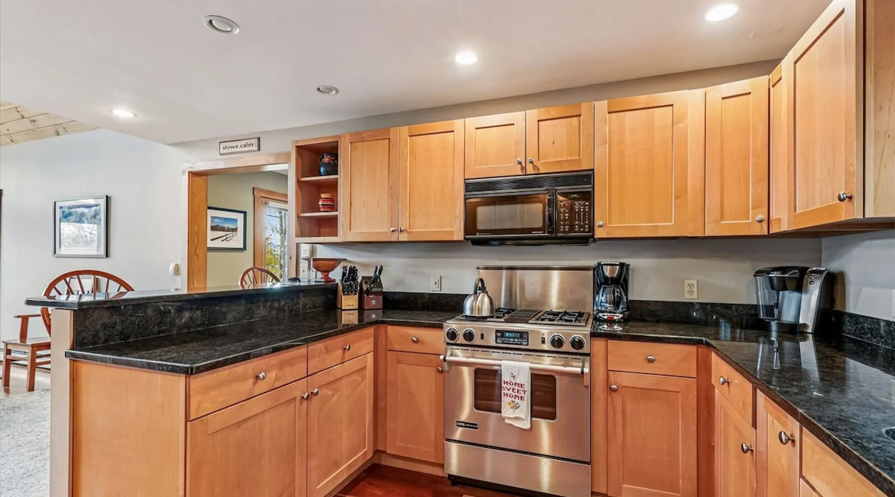Please review House Rules and Additional Rules prior to booking this home. Prime location off the Mountain Road, half way between the ski resort and the village. Meals & Rooms Tax ID #: MRT-10028273-001 The space Prior to finalizing your booking, please review the House Rules that can be found under “Things to know” at the bottom of the listing. Prime location off the Mountain Road, half way between The Lodge at Spruce Peak and the Village. Close to such local favorites Piecasso, Idletyme, Ten Acres Bistro and the Stowe Country Club. Easy access to the varied outdoor activities Stowe has to offer including downhill and cross country skiing, hiking, golf, mountain biking and road biking. Modern 4 bedroom, 4 bathroom home set on a hillside with expansive mountain views of the Worcester Range and Pinnacle. Three floor home with open, spacious floor plan with cherry floors throughout common living areas. Large great room with 20 foot ceilings with Hearthstone woodstove. Great room and dining area open to a large deck facing mountain views. Contemporary interior furnishings throughout including a locally-crafted natural cherry dining room set that seats 8. Modern kitchen with breakfast bar. Primary bedroom with king bed on the upper level. En suite, recently-remodeled primary bathroom featuring Carrera marble double vanity and tub with glass tile surround. Second bedroom on the upper level perfect for children featuring two twin beds with adjacent bathroom. On the main level, there is a third bedroom with queen bed and adjacent recently remodeled bathroom. Walk out lower level features a fourth bedroom with queen bed, mountain views and nearby bathroom. Also on the lower level is an entertainment room with flat screen LED LCD TV, satellite television and Wii game console with many games provided for your entertainment. You will not want to leave! Meals & Rooms Tax ID #: MRT-10028273-001 Other things to note Only Stowe Vermont combines a classic 200-year-old village with Mt. Mansfield, Vermont's highest peak. This unique juxtaposition imbues Stowe with a character reminiscent of great European mountain resorts. Stowe has consistently rated tops by travelers worldwide. Outdoor Sports & Year-round Activities in Stowe Vermont. At 4,395 feet, Stowe's Mt. Mansfield is literally the high point of Vermont. This spectacular mountain forms the centerpiece of a region that is legitimately world famous for its outdoor activities and adventures. Summer Activities: While Stowe is well-known as the winter sports capital of the East, summer is a very popular time to visit! Summer in Stowe is a time to enjoy all that Vermont has to offer, from fabulous Green Mountain views along the world-famous Recreation Path to great shopping and dining. Fall Activities: Fall in Stowe brings the explosions of autumn color for which Vermont is internationally famed. The brilliance of Stowe's fall foliage adds an extra dimension of enjoyment to every outdoor pursuit, from serene strolls on the world-famous Recreation Path to nerve-jangling rock climbs on the faces of Smugglers’ Notch and everything in between. Winter Activities: In winter, skiers and snowboarders come from around the world to experience Mt. Mansfield's storied terrain. Stowe also offers sleigh and dog sledding, snowmobiling, snowshoeing, and ice skating. Stowe is especially famous as one of North America's premier cross country skiing destinations, with hundreds of kilometers of groomed and back country trails.