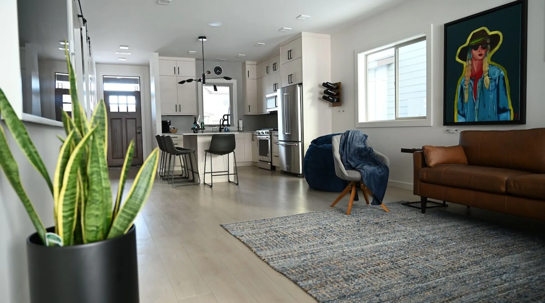 Bozeman Bungalow This property is on the market for sale so we get a number of requests for showings. We're limiting new rentals to 30 day+. If you'd like to have a shorter stay, try out our Cottage property. Gorgeous one bed one bath space just minutes from MSU. This new build was just completed end of December 2020 with top of the line modern finishes including a built in speaker system, attached 1 car garage, and brand new appliances. The living room is decked out with a 65" Samsung "The Frame" TV featuring local photography. Throughout the property you'll enjoy original and canvas prints from local Bozeman artists that you can even take home with you after your stay. Control the entire space with your voice. "Alexa, lower all the bungalow shades". Check out the pictures and reach out with any questions to help make your booking decision. Languages English