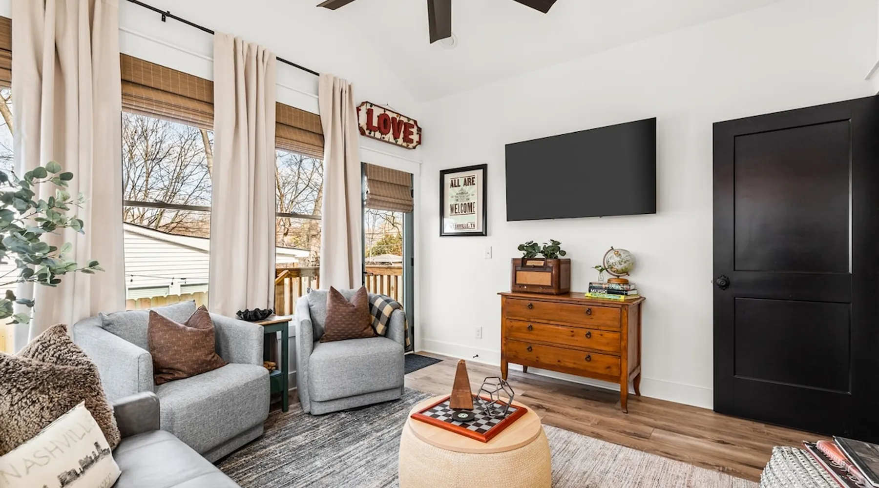 Stay in the heart of East Nashville at The Country Cottage- a family- and dog-friendly home in East Nashville, just 2.5 miles from Downtown Nashville. Walk to local restaurants, music, and shops, or unwind in this restored historic home with two living spaces, two king beds, stylish décor, and thoughtful touches. Perfect for couples, friends, girls’ trips, or families exploring Music City! 💲SAVE ON WEEKLY STAYS (auto applied)💲 👇 Full description below👇 The space Welcome to The Country Cottage, a family- and dog-friendly Nashville retreat with historic charm and modern comfort. Located in East Nashville, one of the city’s most vibrant neighborhoods, the home is just 2.5 miles from Downtown Nashville and walkable to top-rated restaurants, bars, music venues, and shops. Perfect for couples, friends, girls’ trips, or families, this single-level home blends vintage Southern character with thoughtful amenities and stylish details. 🎁 Decorated for Christmas annually (early December–early January)! AUTHENTIC NASHVILLE STYLE • Fully restored historic home with luxe finishes and original charm • Unique, approachable décor that captures Nashville’s creative vibe • Two living areas (main + bonus room)- great for groups and families * Double vanities + extra “get ready” spaces for convenience • Fully fenced FRONT yard, perfect for dogs and kids • Single-level home COMFORTABLE BEDROOMS • 2 King bedrooms + Twin/Twin daybed with trundle in primary room • Bonus living room with Queen sofa bed • DreamCloud Hybrid mattresses and blackout curtains • Smart TVs in every bedroom and living areas (4 total) • Quality hospitality bedding WELL-STOCKED AMENITIES • Coffee, tea, and essentials provided • Free parking + high-speed Fiber WiFi • Smart home features (Echo devices, keyless entry) • Fully equipped kitchen for meals at home • Laundry area with washer & dryer • Professionally cleaned & maintained PRIME EAST NASHVILLE LOCATION • 5–15 min walk to restaurants, bars, music, & shops • 5–10 min walk to grocery stores & pharmacies • 5–15 min drive to Downtown, Broadway, Nissan Stadium, Ryman Auditorium, Bridgestone & Ascend Amphitheater • 15–20 min drive to Grand Ole Opry & Gaylord Opryland IDEAL FOR COUPLES, FRIENDS & GIRLS’ TRIPS • Spacious layout with multiple areas to gather • Multiple “get ready” areas making it easy for groups • Family amenities are stored out of sight to ensure the home maintains an adult-friendly vibe when not in use FAMILY & DOG-FRIENDLY • Pack ’n Play, high chair, baby monitor, toys, books & games • Bathtub in one bathroom • Dog-friendly ($30/dog/night, no cats) HOSTED BY SUPERHOSTS We’re Megan & Richard, former locals turned frequent visitors to Nashville who love helping guests discover the best of Nashville. Through our small family business, Southbound Stays, we share our favorite places, insider tips, and all the comforts that make you feel at home. ❗️We encourage you to check out the "Other Things to Note" section of our listing prior to booking your stay at The Country Cottage to make sure it's the right space for you.** Guest access The entire space is included in this home. However, there is a detached apartment in the backyard with a full-time occupant. It's rare you will bump into one another as you have a privacy fence in between and separate parking areas however the back stairs of the front home do face the back apartment. Other things to note ❗️There are many reasons to love our home, however there are some important considerations we'd like you to be aware of prior to booking your stay at The Country Cottage to make sure it's the right space for you: 1. Rental Agreement: Must sign agreement & provide ID within 48 hours of booking (or immediately if arrival is within 48 hours). Failure to sign will result in cancelation with applicable cancelation penalties. 2. Occupancy: Max 8 persons at the home at any given time, including non-overnight guests. This count includes adults, children and infants. 3. Minimum Age: Booking guest must be age 21+ (or active military) & occupant of the Property. 4. Accessibility: Access via small flights of stairs at all entrances to home. 5. Location: On bustling street, you may hear some street noise in the front living and front bedroom area. 6. Fencing: Front yard fenced but spaces where smaller dogs or children could potentially escape. 7. Saturday check-ins/checkouts: not available 8. TVs: streaming services only; no local cable. 9. Pet Policy: DOGS ONLY. NO CATS or any other pets/ reptiles. Well-behaved, potty-trained dogs welcome with non-refundable fee of $30/ night/ dog (if not selected at time of booking, will be requested post booking). Must register in advance. See rental agreement for additional notes re: pet policies, including service animals. 10. Vehicles: No trailers, RVs, boats or non-standard vehicles in parking spot or street per Nashville regulations. 11. Nature and Pests: Expect bugs in the South. While we take precautions to prevent critters from entering the home, occasional encounters are inevitable. 12. Home Age: Nearly 100-years old and though renovated in 2023 there are some charming creaks and imperfections unseen in photos. 13. Smart Home/Security: Exterior camera at entry door in front & entry door at back of home(NO interior cameras). Echo devices in living rooms and bedrooms (can be unplugged). 14. Guest Home: A separate home is located at back of property. Back patio of the back home is adjacent to this home which is at front of property. Homes/ yards divided by privacy fence. Each home has its own parking & own fenced area.