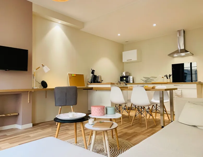 Located in a pedestrian street of the central plateau, a few meters from Clermont Ferrand Cathedral and close to all amenities, the location of this apartment on the first floor of a small building will be the perfect advantage of your stay in our capital "bougnat"! The space LIVING ROOM, KITCHEN: A fully equipped American kitchen, ceramic domino vitro, fridge, microwave, mini oven, toast, Senseo coffee maker, kettle (tea and coffee available). A large central island that can accommodate 4 people to comfortably taste our best specialties. In the living room a sofa bed (140x200), a flat screen, coffee table. For the most music lovers, a Bluetooth speaker is at your disposal but we have also thought about guests traveling for work! For them, an office area is available (desk lamp, ethernet socket, USB socket) and of course high-speed internet with wifi. BATHROOM: A bathroom with a large Italian shower, vanity and mirror, towel radiator, I put at your disposal a hair dryer. A 5kg washing machine is at your disposal. Toilet: The toilet is separate, you will find in this space a 5 Kg washing machine that will be at your disposal as well as storage space. BEDROOM One bedroom with double bed 140x200, thick memory mattress with 4 season duvet and all the bed linen needed for your stay, a dresser and a wardrobe. I provide an iron and of course an iron. Guest access You will have access to the entire house. Registration Details 2C11991506518