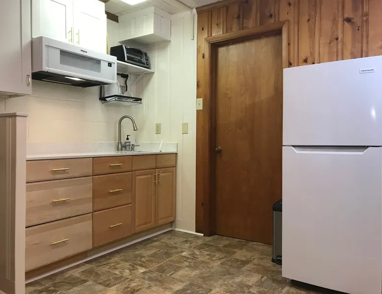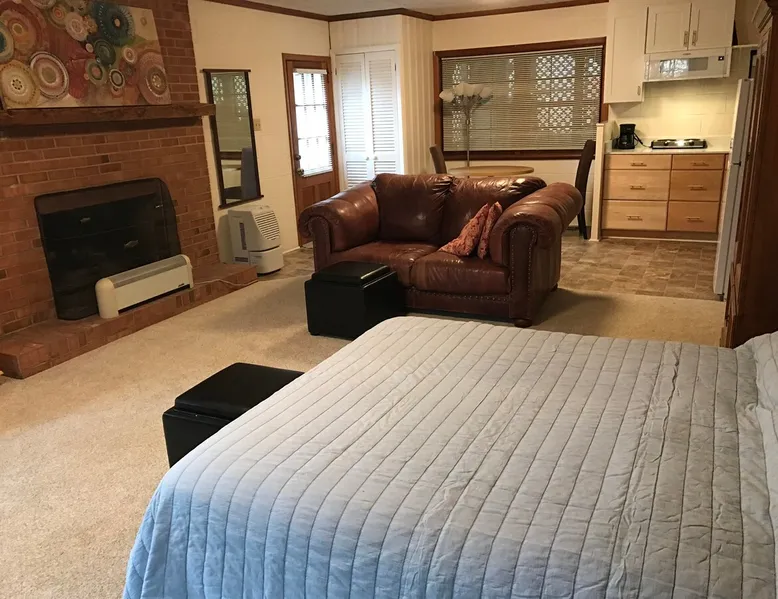 This studio apartment has lots of light, is built for comfort, and has great support for the traveling professional. Get stuff done at a desk with a large screen monitor, fast WiFi, and super fast ethernet. Relax by the fireplace. Walk to the Bolin Creek trail or to nearby Franklin street. Enjoy our welcome kit of drinks and ready meals from Trader Joes. In a quiet neighborhood near the center of town, you can easily get to Franklin street, UNC, Carrboro, or I-40. The space The well-lit apartment is in the walkout basement of our home in a safe, wooded family neighborhood. Guests have their own entrance, bathroom, kitchen, washer/dryer, gas log fireplace, desk w/computer monitor, and lots of closet and drawer space. * Queen-sized bed with comfortable mattress. * Kitchen includes refrigerator, microwave, hot plate, toaster oven, coffee maker, plates/bowls/flatware, food prep tools, and lots of storage space. * Work area including a desk with large screen computer monitor for traveling professionals who want to hook up their laptop. * You will have solid internet connectivity via our fiber package — wifi speed of around 100 megabits for each device. * The living area has a comfortable leather loveseat and ottoman in front of a gas log fireplace. Also has a 40” TV with Apple TV box capable of streaming from any of your accounts, such as Netflix or Amazon Prime. * Lots of storage including dresser, wardrobe, drawers underneath bed, and closet. * LGBT friendly Guest access Guests have private access to the entire apartment.