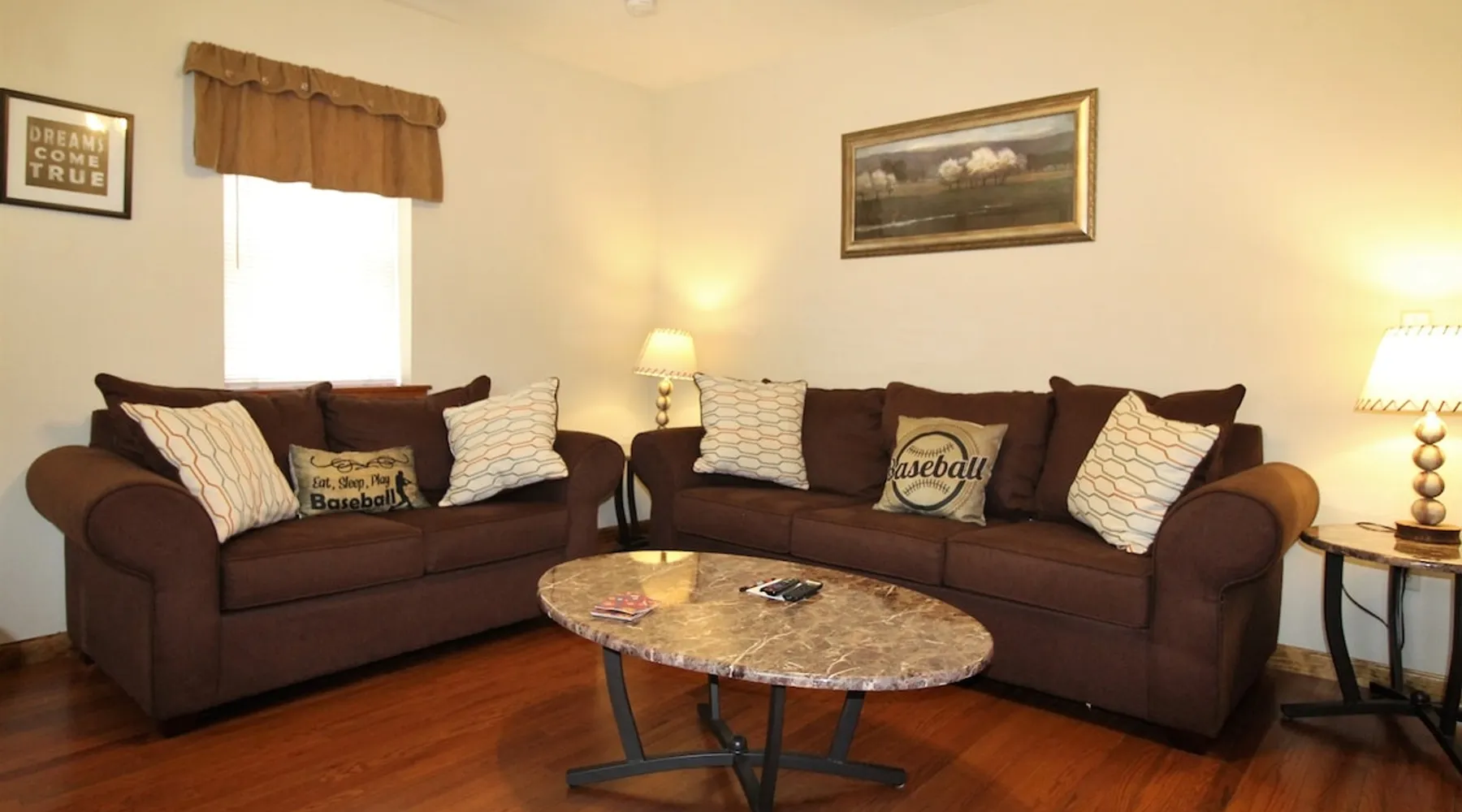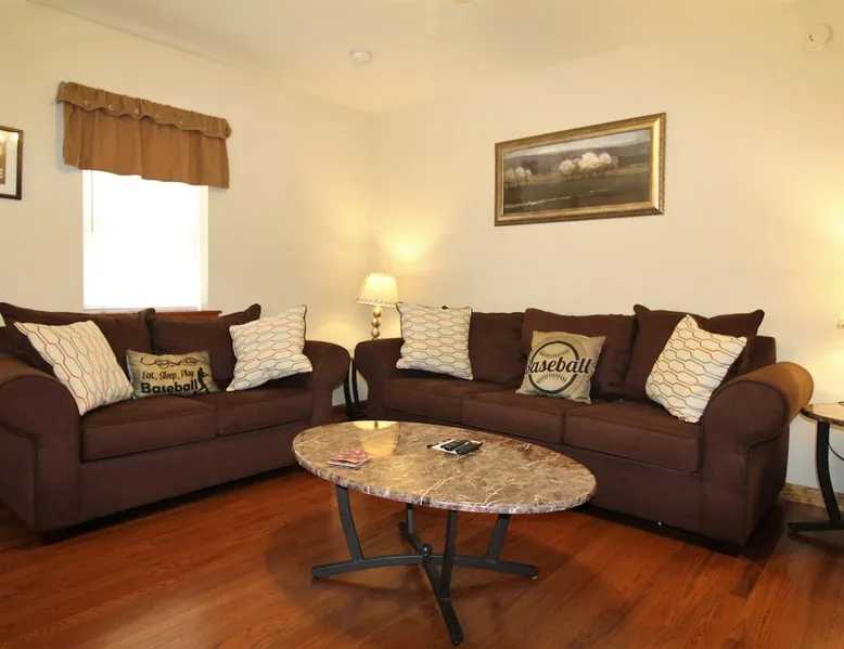 Located in an Oneonta residential setting, is the Championship House. This house is divided into 3 separate units, each completely self-contained. These units are an excellent choice for families traveling together who want the convenience of the same location, while still enjoying their own private accommodations. The Championship House is very convenient to both All Star Village and the Cooperstown Baseball World baseball tournaments. This listing is for the Championship #1 unit only. The space Centrally located, Championship #1 is: • 3.5 miles to All Star Village • 3 miles to Cooperstown Baseball World • 19 miles to Cooperstown Dreams Park • 24.7 miles to Cooperstown Guest access This is a 2-bedroom, spacious first floor apartment. It features two queen size beds, a large (55" or larger) flat screen smart Roku TV in the living room, with 43" (or larger) flat screen smart Roku TV's in each bedroom. Free high speed wireless internet is available for your use. The updated kitchen has a granite countertop and tile floor. It has a gas range, microwave, refrigerator with automatic ice maker, and dishwasher. Both baths are fully tiled, with a tub/shower combo in one bath and stall shower in the other. A gas grill is available for your convenience. There is a shared laundry room in the building. Other things to note There are 2 other units available in this building - Championship #2 and Championship #3 - they each have 2 bedrooms and 1 bathroom. For larger groups, you can rent all three to have 6 bedrooms and 4 bathrooms that will sleep 12. Please contact us if you are interested in renting the entire home for a larger group accommodation.