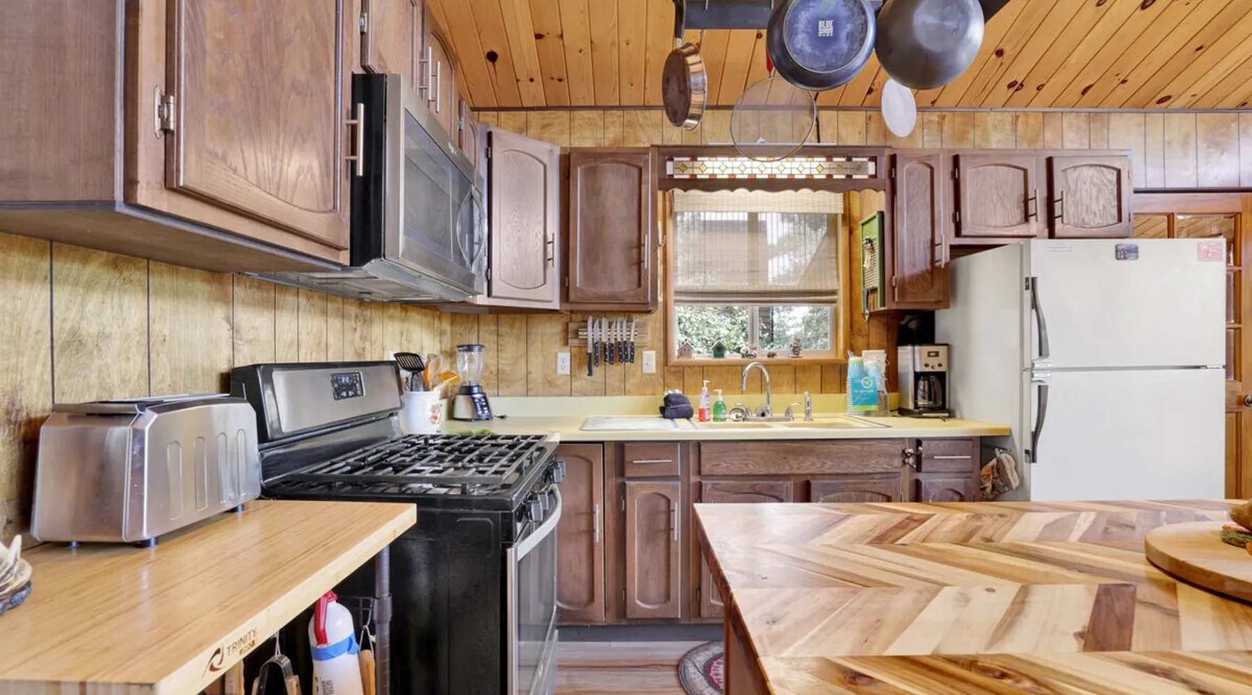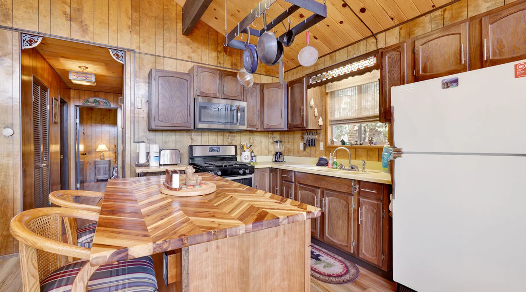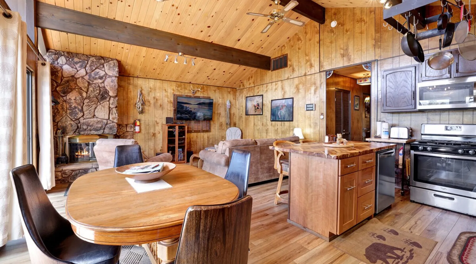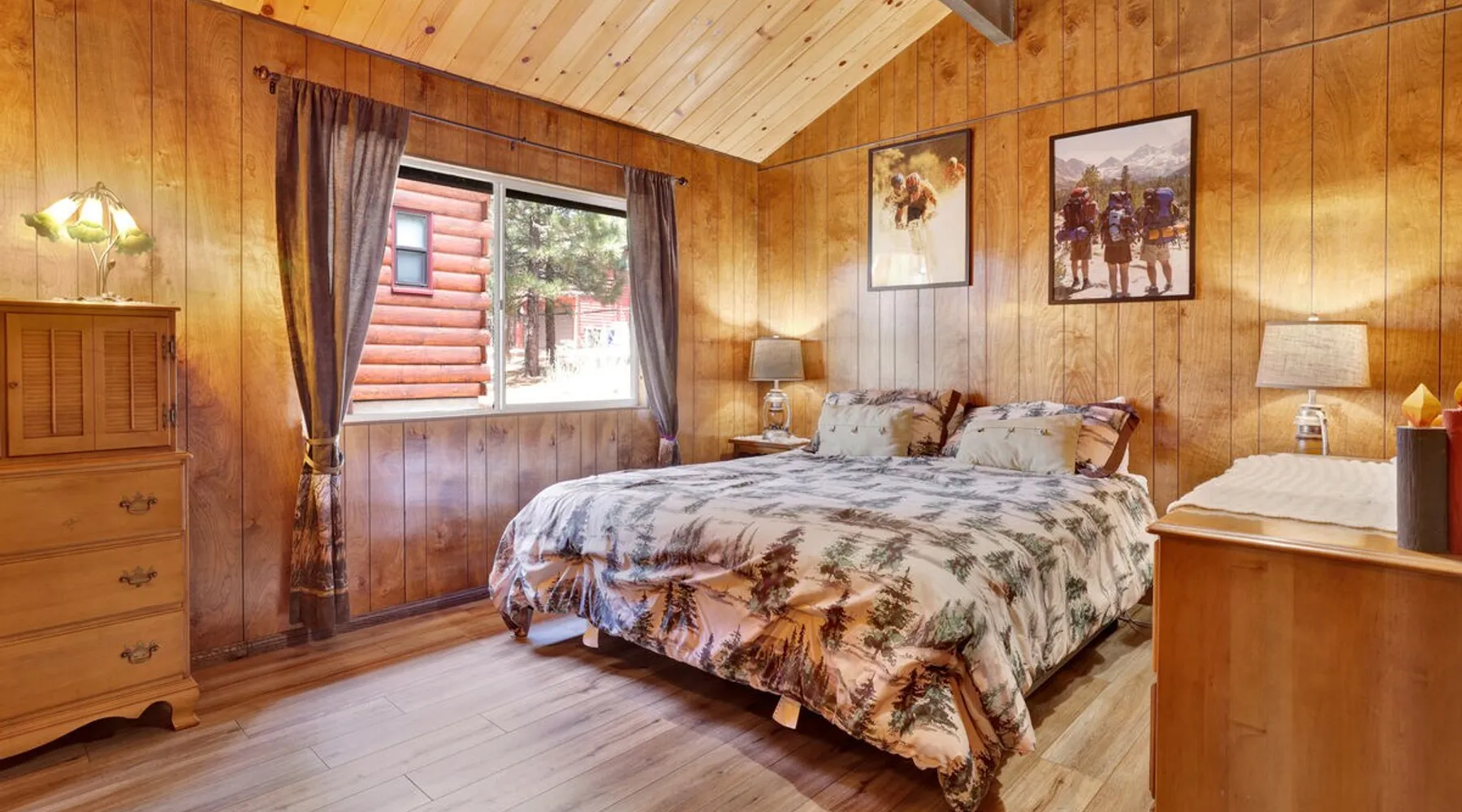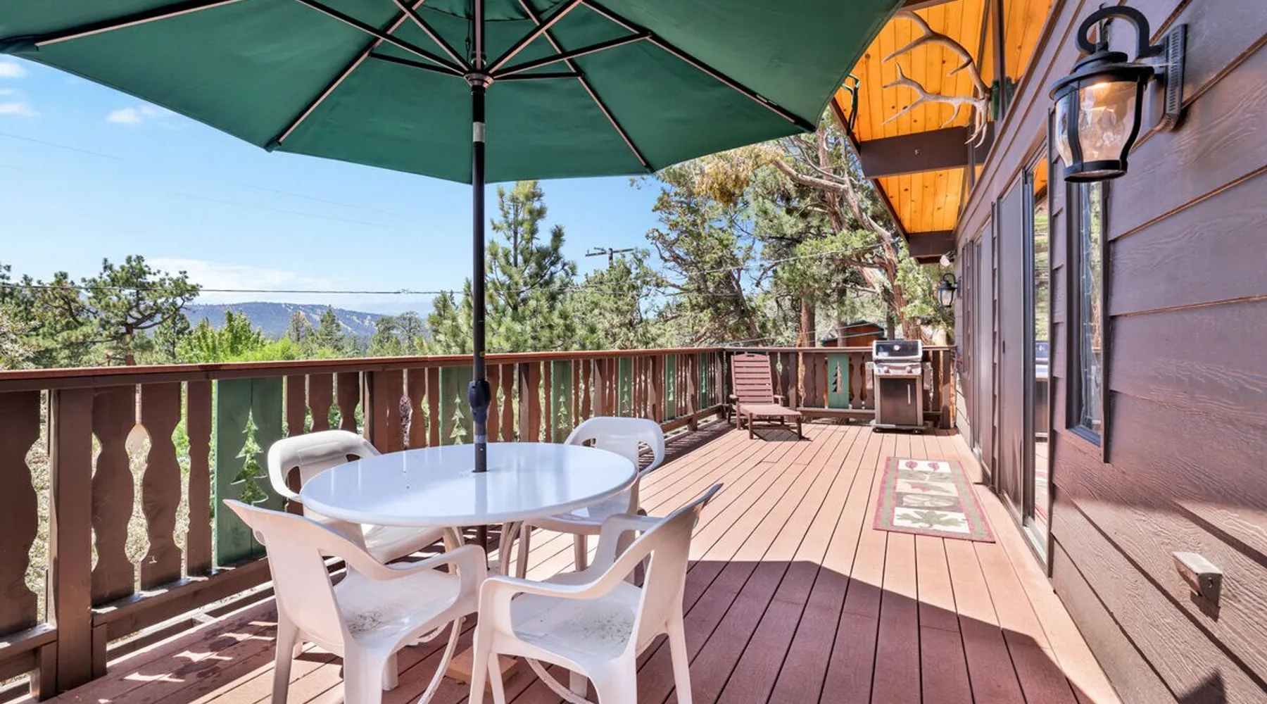Above It All Big Bear – Cozy Cabin with Views & Adventure Nearby Enjoy breathtaking mountain views and direct access to adventure at this cozy Bear City cabin! Just minutes from Holcomb Valley OHV trails, hiking, climbing, and Big Bear fun. Relax on the deck, fire up the BBQ, or unwind by the wood-burning fireplace. With two comfy bedrooms, a full kitchen, and fast Wi-Fi, this peaceful retreat is perfect for couples, families, or small groups looking to explore and recharge. The space Message us About Free Oktoberfest Tickets for Our Guests! Enjoy the alpine environment and surrounding mountains from the deck while enjoying your morning coffee or the Propane BBQ with outdoor patio furnishings available. You will love the modern furnishings and mountain décor in your cozy and warm open concept living room which offers comfy couches sat around a toasty wood burning fireplace, you will love snuggling up in front of the toasty fire and warming your toes together as you pop on a movie on the mounted flat screen Streaming TV with complimentary hi speed WIFI internet supplied for your enjoyment. A cute dining table for four with deck access and views plus an efficient kitchen including cookware, appliances and even a dishwasher for your convenience are also provided for you to whip up your home-cooked meals for your group. Being a single level chalet (once you climb the stairs to the front door) both of your bedrooms and your full common bath are easily accessible, made up for your arrival with warm linens and blankets plus fresh towels for your group. You will love the mountain and valley views from the front deck, outdoor furnishings are available so you can sip your morning coffee and take in your natural surroundings. Above It All is a fabulous mountain cabin and the perfect destination for your next mountain vacation, located on the north shore, not far from hiking trails, jeep trails, and Oktoberfest, you will be able to find an activity for any season in under a ten-minute drive. Sleeping Arrangements: Bedroom 1: King Bed Bedroom 2: Queen Bed Living Room: Full Sleeper Sofa Bathroom Arrangements: Hallway Full Bath -Sleeps 6 -3 Car Driveway Parking -2 Pets Welcome w/ Additional Fees -952 Square Feet Registration details CESTRP-2021-00132
