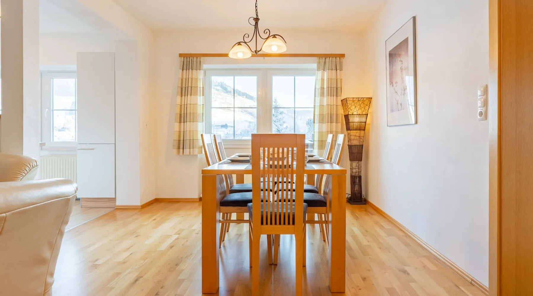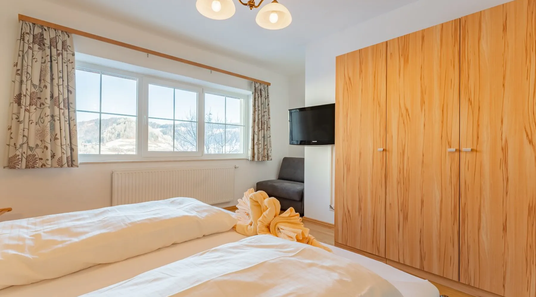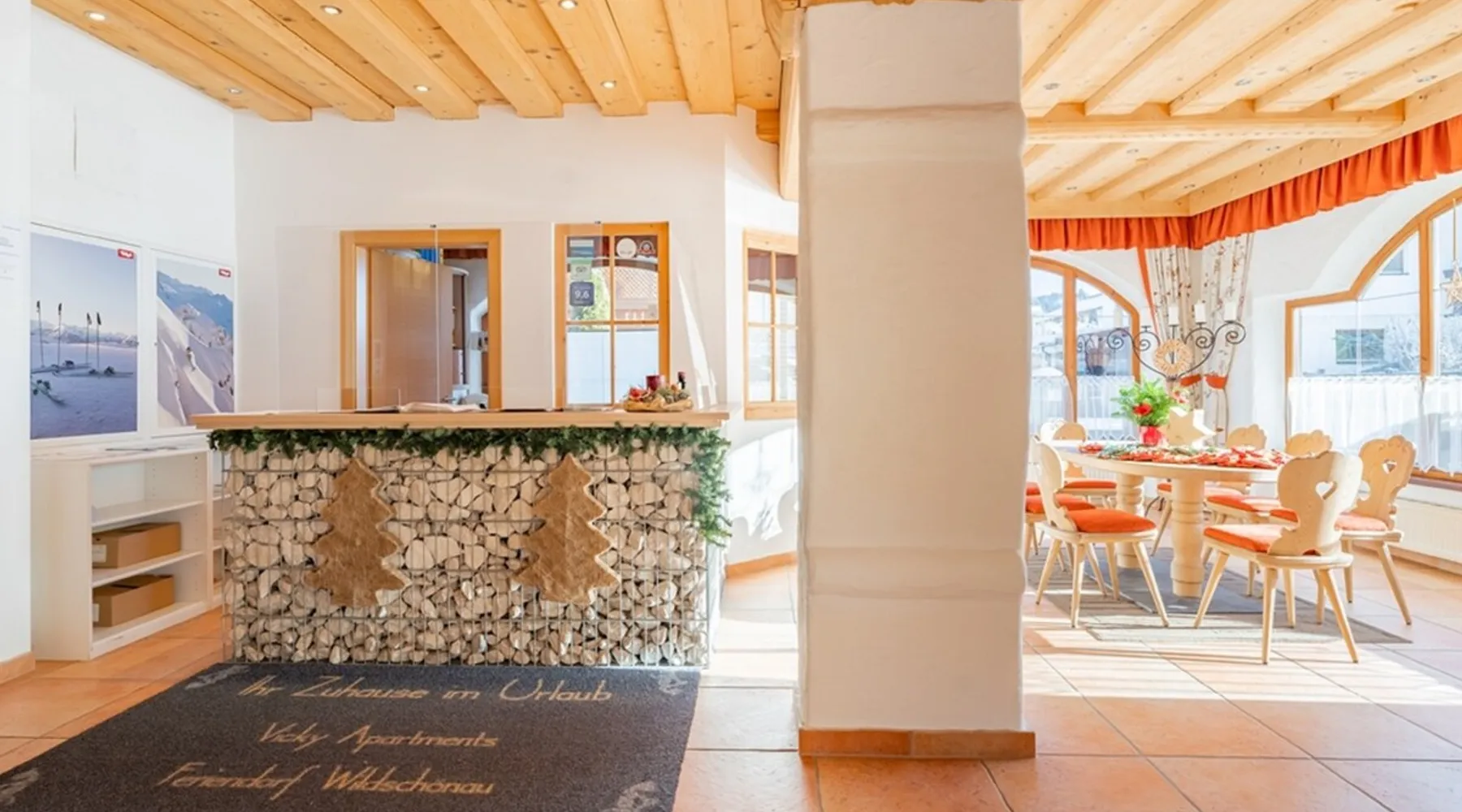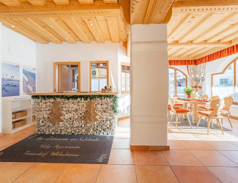 In this luxury apartment, including Wildschönau Card, you will wake up every morning with great views from the balcony or terrace. Niederau is at an altitude of 828 metres, in the middle of the nature reserve. Located on the ground, first, second or third floor, the accommodation offers access to a ski storage room and a recreation room on the ground floor, with billiards and table football. With a modern kitchen, a private sauna and a spacious living room, you won't be short of anything he ... The space hall, Living room(TV, DVD player), open kitchen(electric kettle, cooker(ceramic), coffee machine(filter), oven, microwave, dishwasher, fridge-freezer), 2x bedroom(double bed), Bedroom with bathroom(double bed, TV, bathtub with shower, washbasin, toilet), bathroom(shower, washbasin, toilet), ski storage(shared with other guests)(ski boot heaters), infrared sauna, washing machine, balcony or terrace, heating(central), 2x parking, table football(shared with other guests), billiards(shared with other guests), lift, 1x children's bed (excl. bed linen), 1x high chair Other things to note The interior of the accommodation can differ slightly from the pictures. However, the level of comfort is as described. After booking you will receive a link to fill out your travel party information due to local legislation