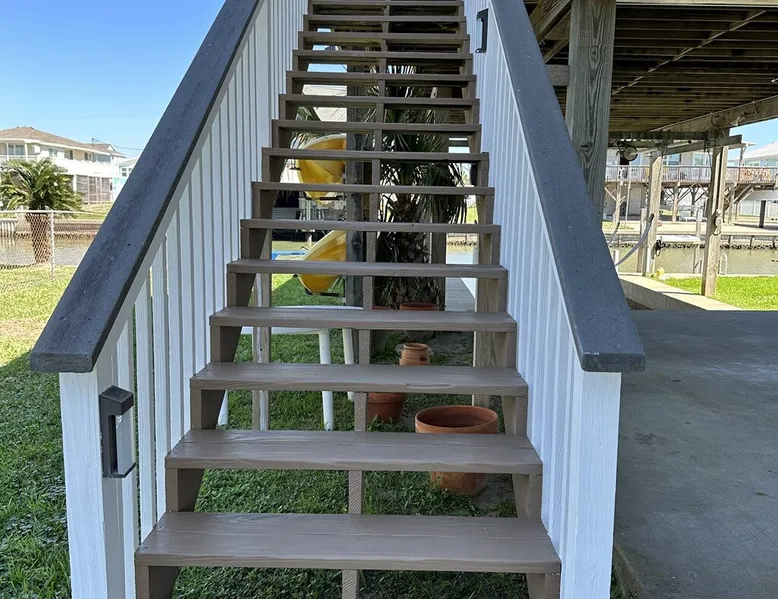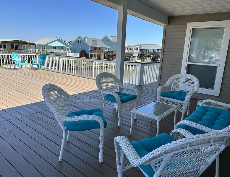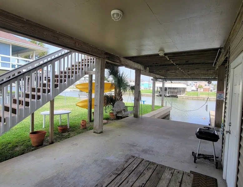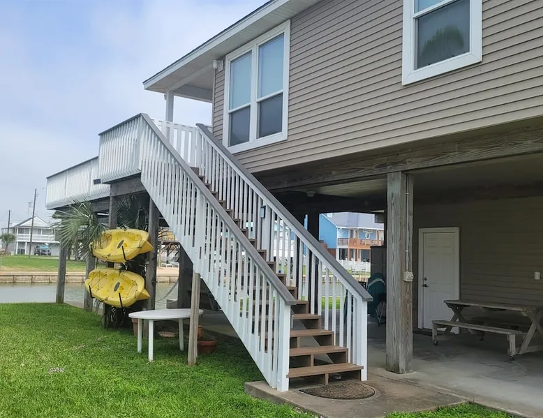 Bay Breeze is a family and dog friendly fisherman's paradise! With a private dock right on the canal and minutes from the beach, there is outdoor fun for everyone! Spend your days cruising the bay, strolling along the sand, visiting attractions in nearby Galveston then head back home to grill up your catch of the day! There are two ocean kayaks available for your use as well. Please read the other details to note below prior to booking. The space Conveniently located right on the canal, this wonderful home has something for everyone! There is a spacious deck for entertaining and relaxing in the sun with a private dock if you would like to bring your boat or use the two ocean kayaks that are available for your use. There is lighting in the canal, drop a line in for fishing day or night! Plus, a cleaning station is located on dock. With a large fenced in yard, it is perfect for kids or your furry friends to run around. There is a charcoal grill, charcoal is NOT provided. There is a private outdoor shower and a picnic table perfectly situated in the shade on the ground floor for comfort. Upstairs on the main floor is the expansive deck with wonderful canal and bay views. A perfect place to wake up and watch the sun rise in the morning with a cup of coffee or wind down with a glass of wine in the evening and watch the sunset! Also perfect for sunbathing, or dining alfresco in the evening breeze. For your safety Smoking, fire pits, grills, or propane torches are prohibited from use on the upper deck. This home greets you to an inviting open living, kitchen and dining area. There is ample seating for everyone to relax! It can seat seven comfortably around the flat screen television with DVD player in the living area. Dining table comfortably seats six, plus there are four chairs surrounding the bar area in the kitchen. There is ample room for cooking large family meals in the fully stocked kitchen. We also include an assortment of board games in the home for entertainment. There are three bedrooms and two baths down a private hall. Master has a king bed and a private shower/bath combo. Secondary bedroom has a twin over full bunk and a twin bed. Third bedroom has a twin over full bunk with a twin trundle. Shared bath has a large shower stall. Guest access Full access to property other than garage or attic. Other things to note By booking, guest agrees to have a $500 security deposit hold on their credit card prior to check in. Booking guest acknowledges that access to property will be denied until deposit is paid. It is your responsibility to make sure ALL guests in the group honor all House Rules, as the deposit release is based on that. Please note that there is a non-refundable dog deposit of $75 per dog. Limit is two dogs up to 25 lbs each unless previously discussed before booking. Please notify us of any dogs that will be on premise during your stay so we can manually add it to your bill. If pets are found on premises without advanced notification you will forfeit your security deposit. Please clean up after your pets. Failure to return boat ramp key and or Pier key will result in current replacement costs plus an additional $25 processing fee. No Smoking or Vaping inside the house or on the upper deck. Be safe. Clean and dispose properly any ash material left in the BBQ pit prior to your departure. Cool ashes may be placed in the trash cans. If you decide to use the pool please, let us know in advance. A pool pass is required and that is a separate fee. Copy of driver's license required. NO FIREWORKS allowed. There are security camera's on the property. Tampering with any security camera or smoke alarms is cause for immediate eviction with no refund. Registration Details STR-2021-2841