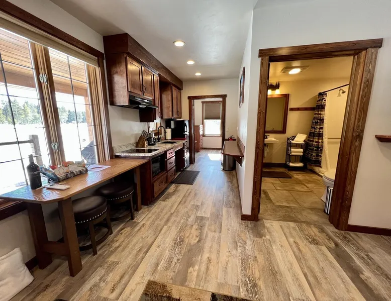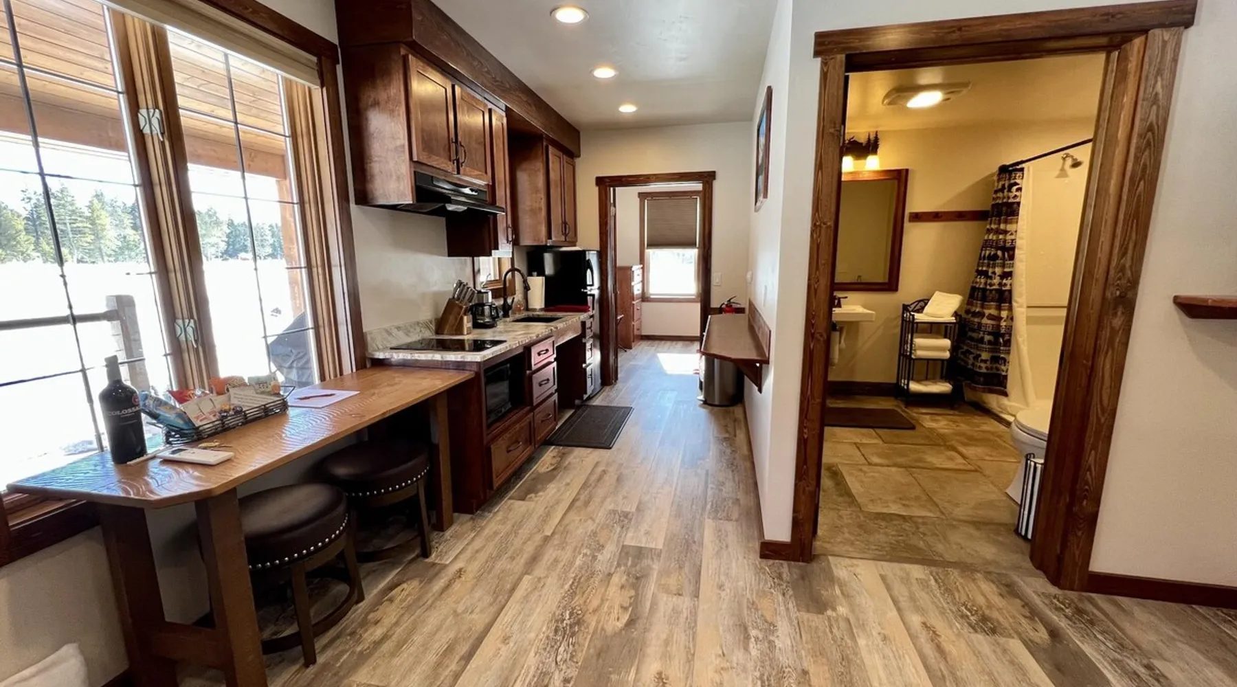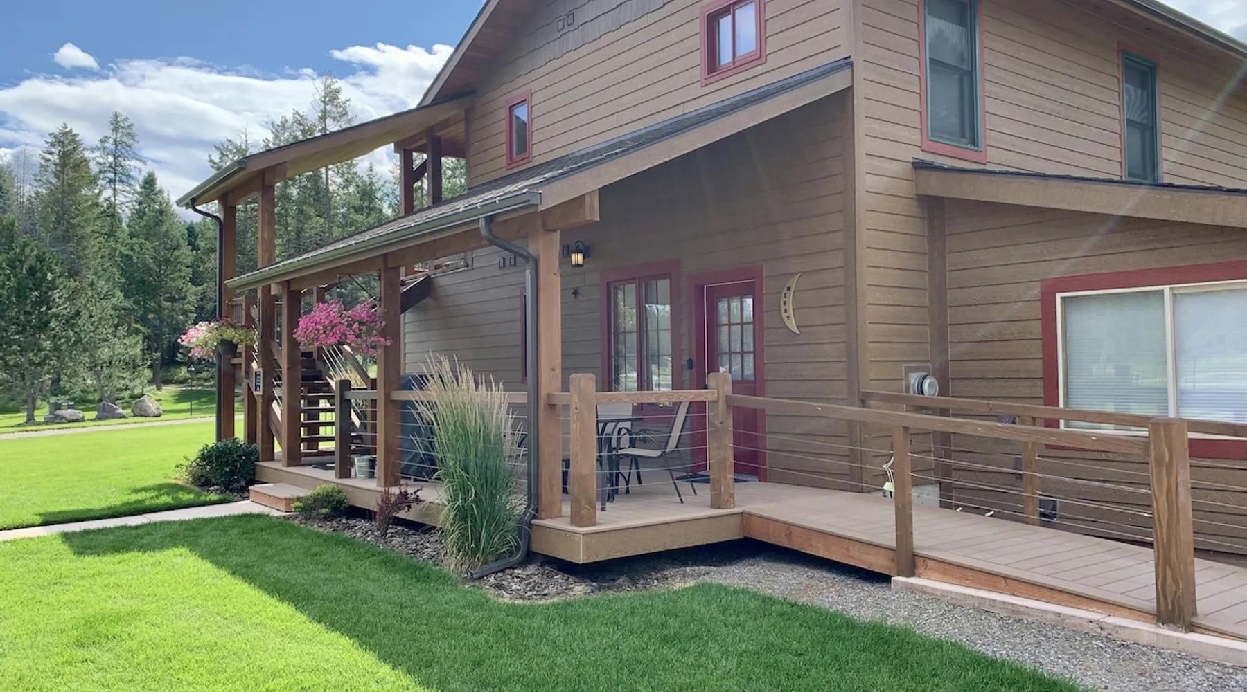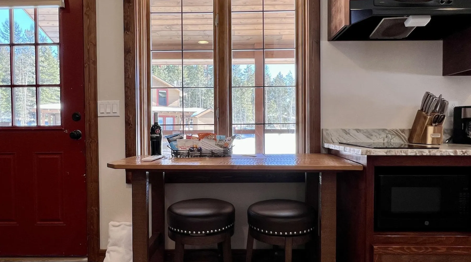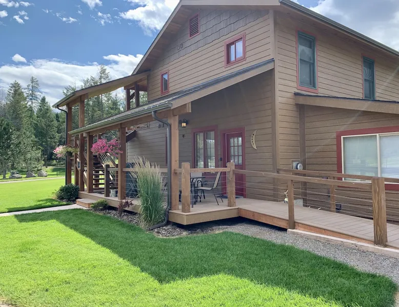 Our Merry Moon suite is a beautiful 1 bedroom, 1 bathroom, handicap accessible on the main level. The space This cabin is part of the beautiful Haymoon Resort in Whitefish, Montana. With 2 ponds and 15 acres of incredibly landscaped lawn, pasture, garden, and wooded areas, the property is absolutely gorgeous. There are several lodging options on the resort, however each one is private enough that you don't feel like you are sharing the space with other people. They are all close enough though, that if you have a large group that wants to spread out, you are all on the same property! All of our cabins are clean, cozy, and well stocked. You will feel at home the moment you walk in. The property is large with lots of room to play outside in both summer and winter! In Summer we have cornhole, volleyball, horse shoes, and lots of lawn space. One of the biggest comments that we get (and we completely agree!) is that our property is in the perfect location. We are less than 10 minutes from the Glacier Park International Airport (FCA) in Kalispell, and centered between Whitefish, Kalispell, and Columbia Falls. We are about a 30 minute drive from the Glacier National Park West Entrance. The biggest question we get in Winter is "how far away are you from the ski hill?" We are only about a 20 minute drive from the parking for the lifts at Whitefish Mountain Resort. It is super convenient to stop in Whitefish for breakfast, dinner, the grocery store, or for rentals on your way up and down the mountain. Lots of people think being on the Mountain is the best place to be, however it can get busy and loud up there and it is sometimes less convenient because you still have to come down the mountain into Whitefish if you want to head to the grocery store or head out to a restaurant for a meal. We are season pass holders ourselves and pop up to the mountain from here for a quick run all the time. Another convenient option is the SNOW bus which will pick you up and take you up the mountain! The closest pickup is Whitefish Mountain Mall (by the Mcdonalds) which is less than a 10 minute drive. Every group seems to have a person or two that wants to ski every single day, but the rest of the group wants to do something else. Maybe they like Snowmobiling, Dog Sledding, cross country skiing, sledding, ice skating, ice climbing, head up to Glacier National Park for a bit, shopping, or just relax at the cabin by the fire. The Flathead Valley has something for everyone! Our Merry Moon is a 1 bedroom, 1 bathroom, handicap accessible suite on the main level. Exquisitely designed, this suite has 1 bedroom, with a queen sized bed, and a queen sized sleeper sofa in the living room, making it able to accommodate 4 people. With kitchen, refrigerator, stovetop, microwave, and gas BBQ, you are able to cook full meals if you would rather not go out. The unit overlooks a large pond and pasture area and has a deck if you would like to sit outside and enjoy the atmosphere. The property itself is 15 acres with 2 ponds, lots of lawn space, trees, and pasture. There are multiple housing options on the property ranging from 5 bedroom cabins to this 1 bedroom handicap accessible suite if you would like to rent several units together. Please don't hesitate to reach out with questions! This beautiful suite is conveniently located to attractions in the valley. This beautiful property is located 10 minutes from Glacier International Airport, 5-10 minutes from local dining establishments, 10 minutes from Costco, grocery stores and other big box stores for your convenience, 10 minutes from downtown Whitefish and 10-15 minutes from Kalispell. The entrance to Glacier National Park is only a 35 minute drive. There are many golf courses in a 10 mile radius from the property. To name a few: - Whitefish Lake Golf Club - Iron Horse Golf Club - Meadow Lake Golf Course - Northern Pines Golf Club - Village Greens Golf Course - Buffalo Hill Golf Club We are also only located just minutes from the Majestic Arena and 15 minutes from Rebecca Farm. As you can see, there is so much to do within a 10 minute drive from our beautiful location!