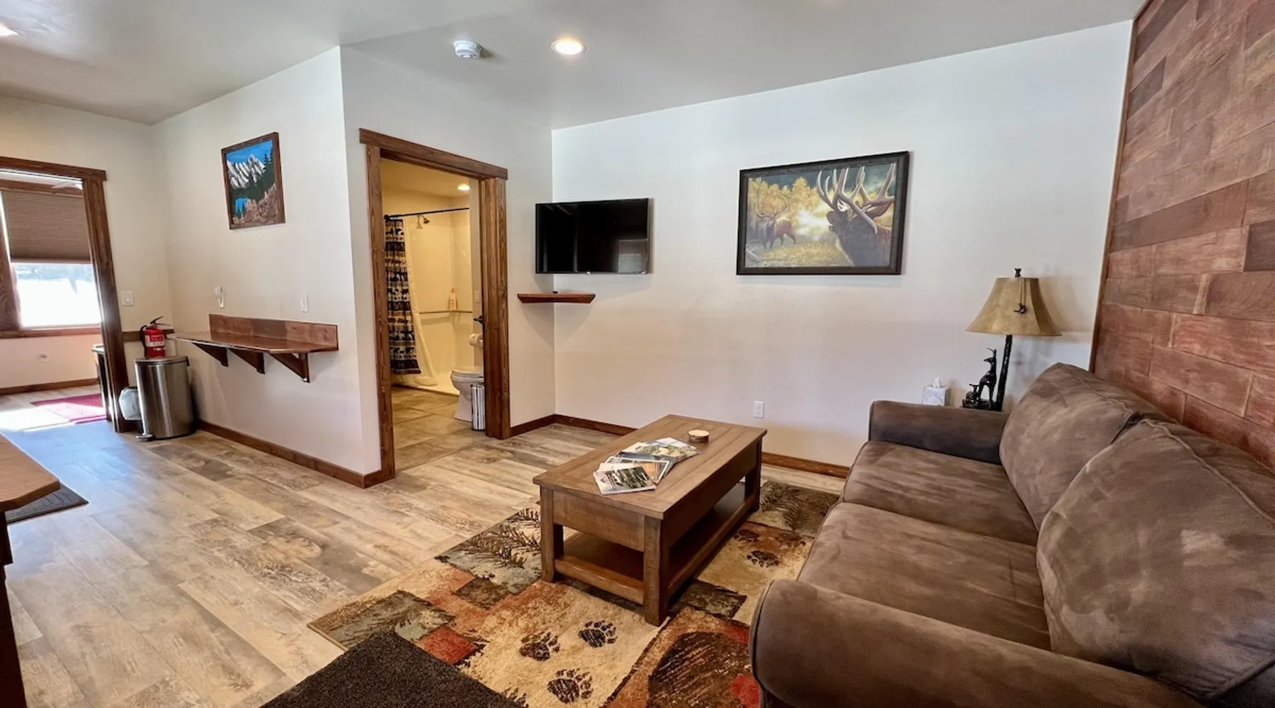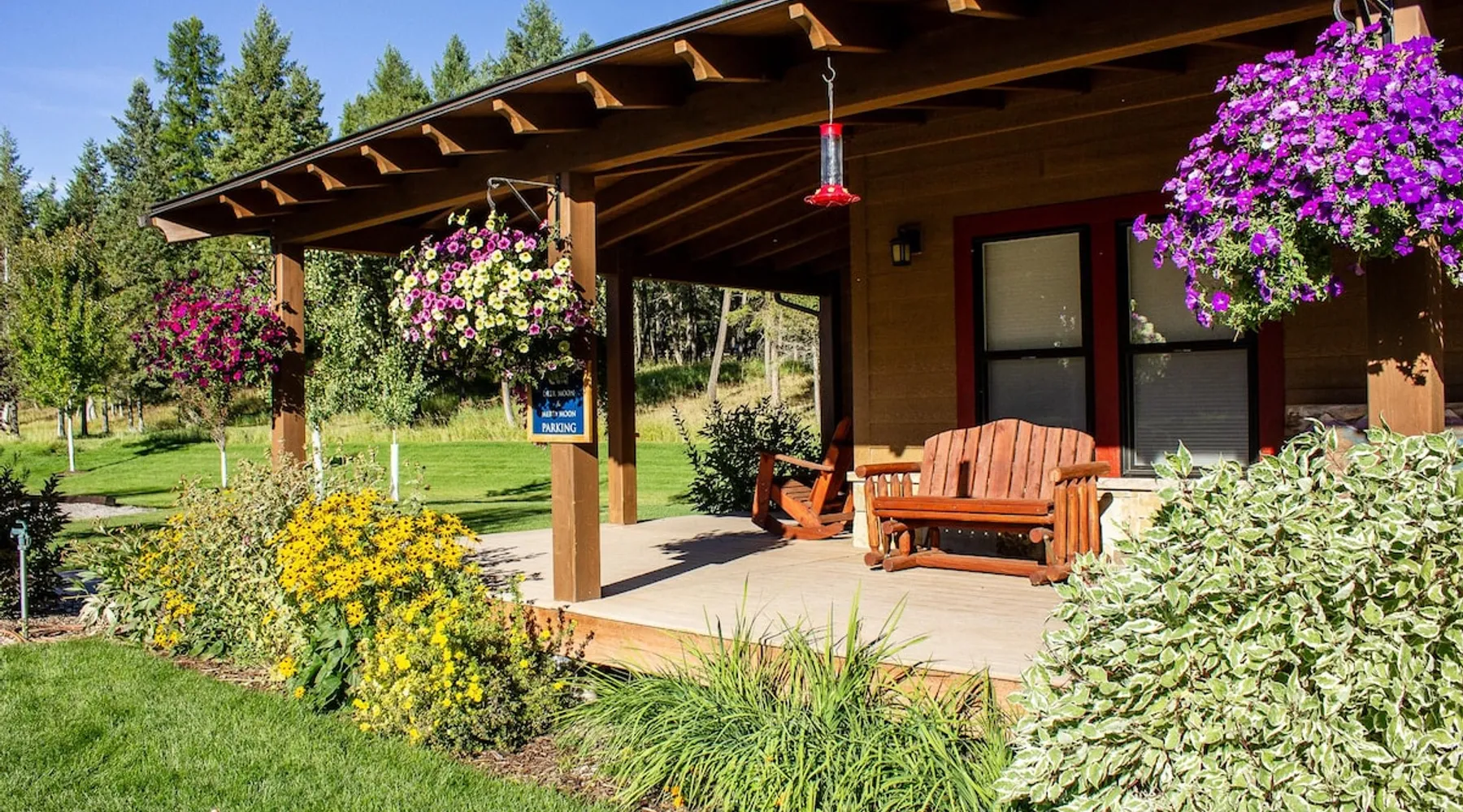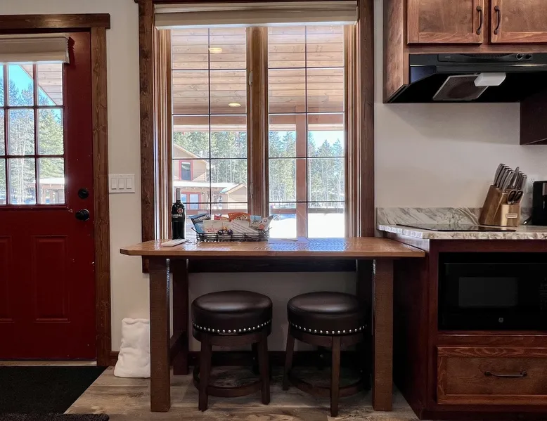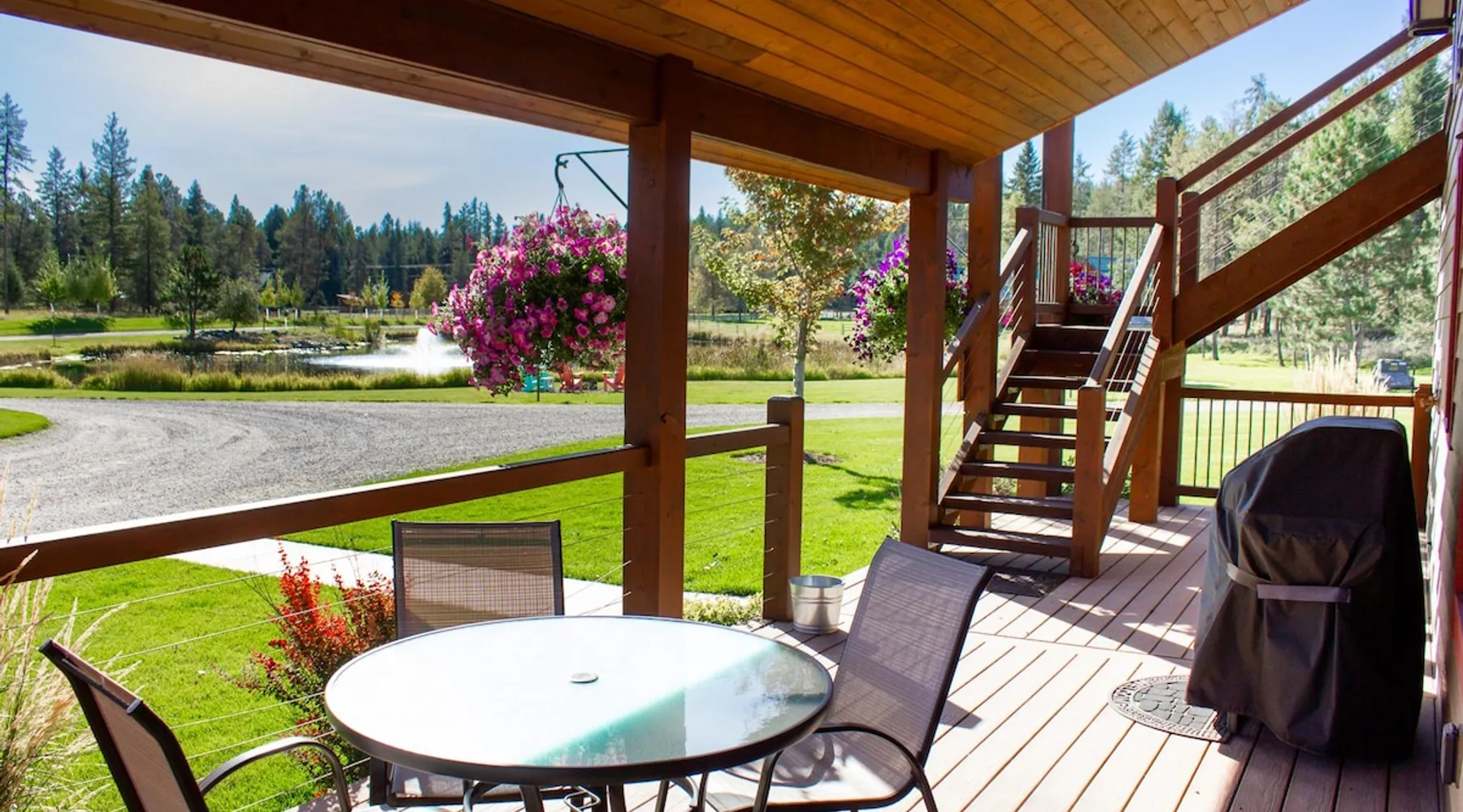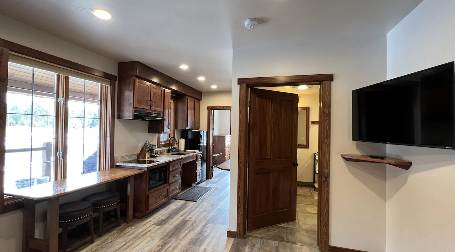 Our Merry Moon suite is a beautiful 1 bedroom, 1 bathroom, handicap accessible on the main level. The space This cabin is part of the beautiful Haymoon Resort in Whitefish, Montana. With 2 ponds and 15 acres of incredibly landscaped lawn, pasture, garden, and wooded areas, the property is absolutely gorgeous. There are several lodging options on the resort, however each one is private enough that you don't feel like you are sharing the space with other people. They are all close enough though, that if you have a large group that wants to spread out, you are all on the same property! All of our cabins are clean, cozy, and well stocked. You will feel at home the moment you walk in. The property is large with lots of room to play outside in both summer and winter! In Summer we have cornhole, volleyball, horse shoes, and lots of lawn space. One of the biggest comments that we get (and we completely agree!) is that our property is in the perfect location. We are less than 10 minutes from the Glacier Park International Airport (FCA) in Kalispell, and centered between Whitefish, Kalispell, and Columbia Falls. We are about a 30 minute drive from the Glacier National Park West Entrance. The biggest question we get in Winter is "how far away are you from the ski hill?" We are only about a 20 minute drive from the parking for the lifts at Whitefish Mountain Resort. It is super convenient to stop in Whitefish for breakfast, dinner, the grocery store, or for rentals on your way up and down the mountain. Lots of people think being on the Mountain is the best place to be, however it can get busy and loud up there and it is sometimes less convenient because you still have to come down the mountain into Whitefish if you want to head to the grocery store or head out to a restaurant for a meal. We are season pass holders ourselves and pop up to the mountain from here for a quick run all the time. Another convenient option is the SNOW bus which will pick you up and take you up the mountain! The closest pickup is Whitefish Mountain Mall (by the Mcdonalds) which is less than a 10 minute drive. Every group seems to have a person or two that wants to ski every single day, but the rest of the group wants to do something else. Maybe they like Snowmobiling, Dog Sledding, cross country skiing, sledding, ice skating, ice climbing, head up to Glacier National Park for a bit, shopping, or just relax at the cabin by the fire. The Flathead Valley has something for everyone! Our Merry Moon is a 1 bedroom, 1 bathroom, handicap accessible suite on the main level. Exquisitely designed, this suite has 1 bedroom, with a queen sized bed, and a queen sized sleeper sofa in the living room, making it able to accommodate 4 people. With kitchen, refrigerator, stovetop, microwave, and gas BBQ, you are able to cook full meals if you would rather not go out. The unit overlooks a large pond and pasture area and has a deck if you would like to sit outside and enjoy the atmosphere. The property itself is 15 acres with 2 ponds, lots of lawn space, trees, and pasture. There are multiple housing options on the property ranging from 5 bedroom cabins to this 1 bedroom handicap accessible suite if you would like to rent several units together. Please don't hesitate to reach out with questions! This beautiful suite is conveniently located to attractions in the valley. This beautiful property is located 10 minutes from Glacier International Airport, 5-10 minutes from local dining establishments, 10 minutes from Costco, grocery stores and other big box stores for your convenience, 10 minutes from downtown Whitefish and 10-15 minutes from Kalispell. The entrance to Glacier National Park is only a 35 minute drive. There are many golf courses in a 10 mile radius from the property. To name a few: - Whitefish Lake Golf Club - Iron Horse Golf Club - Meadow Lake Golf Course - Northern Pines Golf Club - Village Greens Golf Course - Buffalo Hill Golf Club We are also only located just minutes from the Majestic Arena and 15 minutes from Rebecca Farm. As you can see, there is so much to do within a 10 minute drive from our beautiful location!
