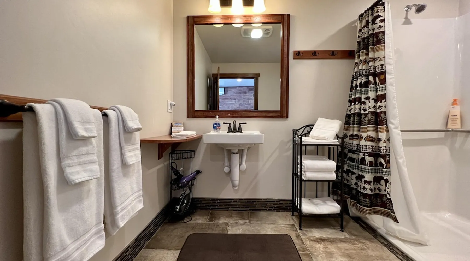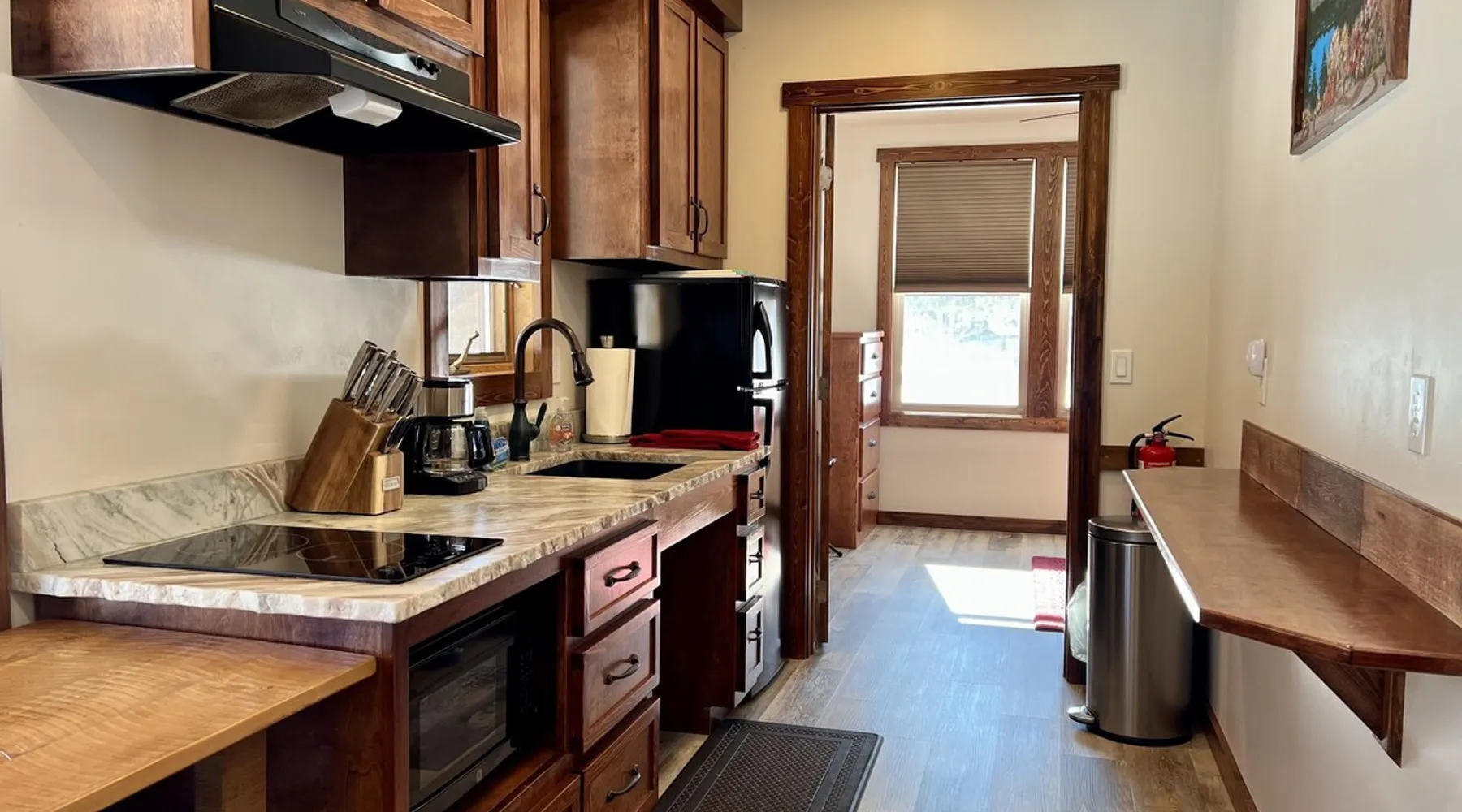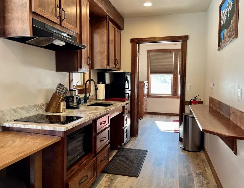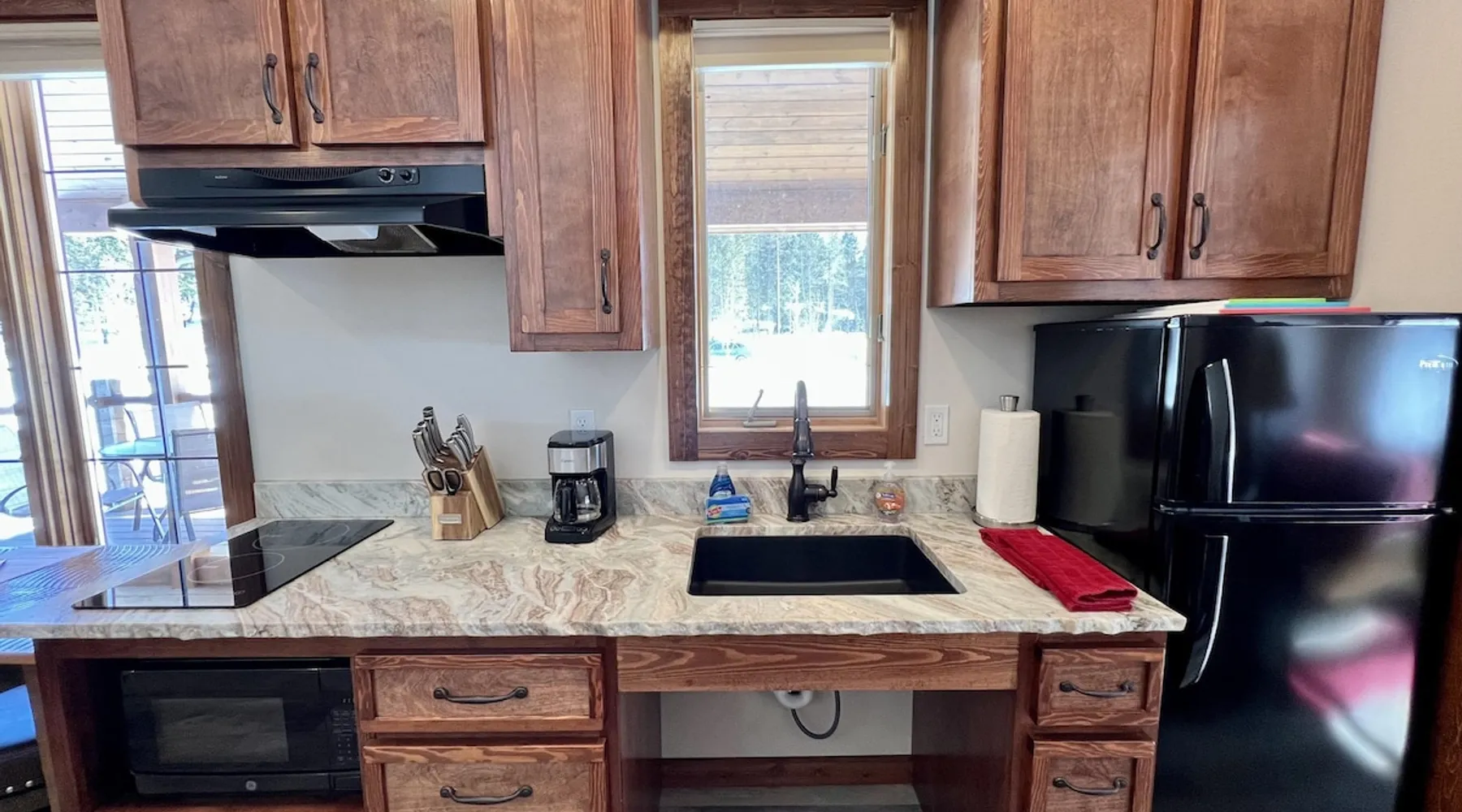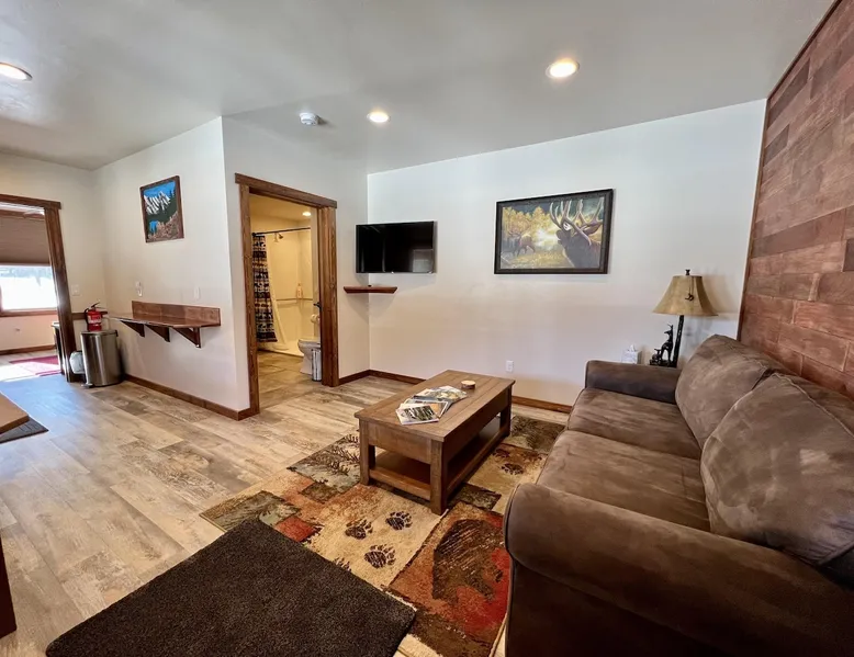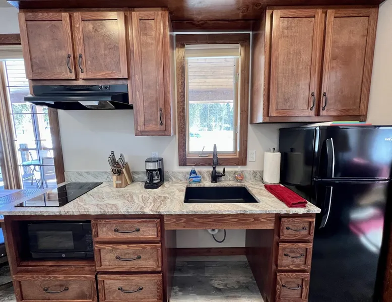 Our Merry Moon suite is a beautiful 1 bedroom, 1 bathroom, handicap accessible on the main level. The space This cabin is part of the beautiful Haymoon Resort in Whitefish, Montana. With 2 ponds and 15 acres of incredibly landscaped lawn, pasture, garden, and wooded areas, the property is absolutely gorgeous. There are several lodging options on the resort, however each one is private enough that you don't feel like you are sharing the space with other people. They are all close enough though, that if you have a large group that wants to spread out, you are all on the same property! All of our cabins are clean, cozy, and well stocked. You will feel at home the moment you walk in. The property is large with lots of room to play outside in both summer and winter! In Summer we have cornhole, volleyball, horse shoes, and lots of lawn space. One of the biggest comments that we get (and we completely agree!) is that our property is in the perfect location. We are less than 10 minutes from the Glacier Park International Airport (FCA) in Kalispell, and centered between Whitefish, Kalispell, and Columbia Falls. We are about a 30 minute drive from the Glacier National Park West Entrance. The biggest question we get in Winter is "how far away are you from the ski hill?" We are only about a 20 minute drive from the parking for the lifts at Whitefish Mountain Resort. It is super convenient to stop in Whitefish for breakfast, dinner, the grocery store, or for rentals on your way up and down the mountain. Lots of people think being on the Mountain is the best place to be, however it can get busy and loud up there and it is sometimes less convenient because you still have to come down the mountain into Whitefish if you want to head to the grocery store or head out to a restaurant for a meal. We are season pass holders ourselves and pop up to the mountain from here for a quick run all the time. Another convenient option is the SNOW bus which will pick you up and take you up the mountain! The closest pickup is Whitefish Mountain Mall (by the Mcdonalds) which is less than a 10 minute drive. Every group seems to have a person or two that wants to ski every single day, but the rest of the group wants to do something else. Maybe they like Snowmobiling, Dog Sledding, cross country skiing, sledding, ice skating, ice climbing, head up to Glacier National Park for a bit, shopping, or just relax at the cabin by the fire. The Flathead Valley has something for everyone! Our Merry Moon is a 1 bedroom, 1 bathroom, handicap accessible suite on the main level. Exquisitely designed, this suite has 1 bedroom, with a queen sized bed, and a queen sized sleeper sofa in the living room, making it able to accommodate 4 people. With kitchen, refrigerator, stovetop, microwave, and gas BBQ, you are able to cook full meals if you would rather not go out. The unit overlooks a large pond and pasture area and has a deck if you would like to sit outside and enjoy the atmosphere. The property itself is 15 acres with 2 ponds, lots of lawn space, trees, and pasture. There are multiple housing options on the property ranging from 5 bedroom cabins to this 1 bedroom handicap accessible suite if you would like to rent several units together. Please don't hesitate to reach out with questions! This beautiful suite is conveniently located to attractions in the valley. This beautiful property is located 10 minutes from Glacier International Airport, 5-10 minutes from local dining establishments, 10 minutes from Costco, grocery stores and other big box stores for your convenience, 10 minutes from downtown Whitefish and 10-15 minutes from Kalispell. The entrance to Glacier National Park is only a 35 minute drive. There are many golf courses in a 10 mile radius from the property. To name a few: - Whitefish Lake Golf Club - Iron Horse Golf Club - Meadow Lake Golf Course - Northern Pines Golf Club - Village Greens Golf Course - Buffalo Hill Golf Club We are also only located just minutes from the Majestic Arena and 15 minutes from Rebecca Farm. As you can see, there is so much to do within a 10 minute drive from our beautiful location!