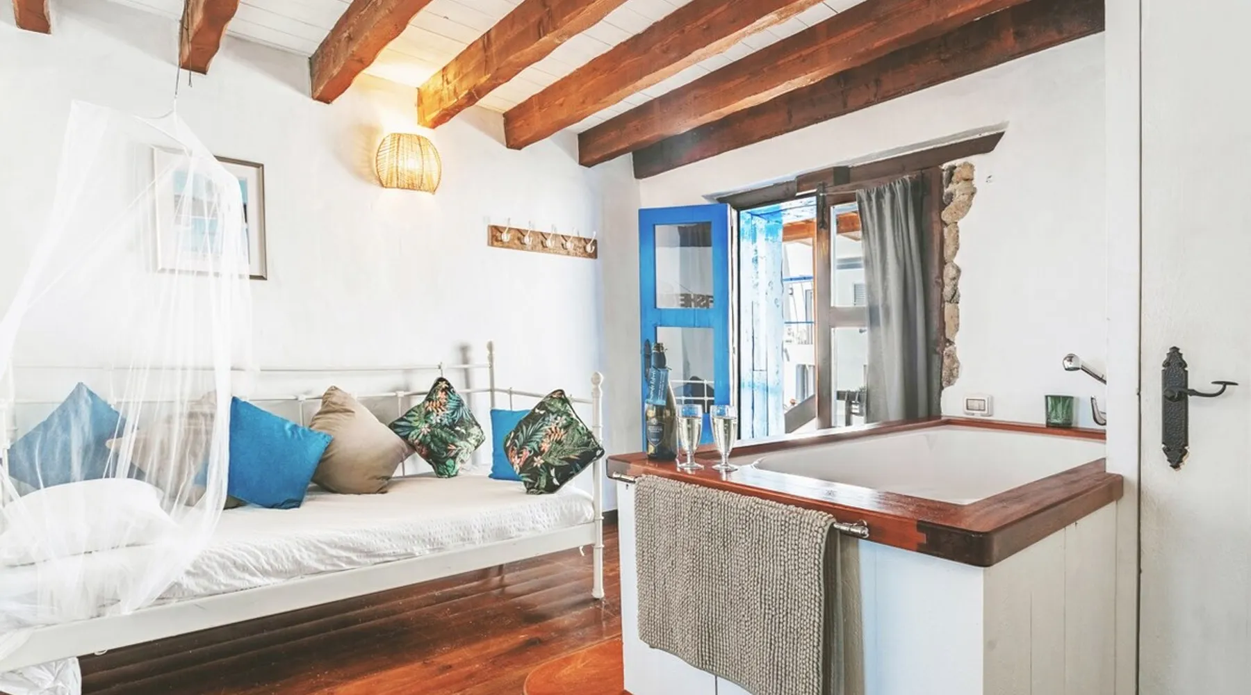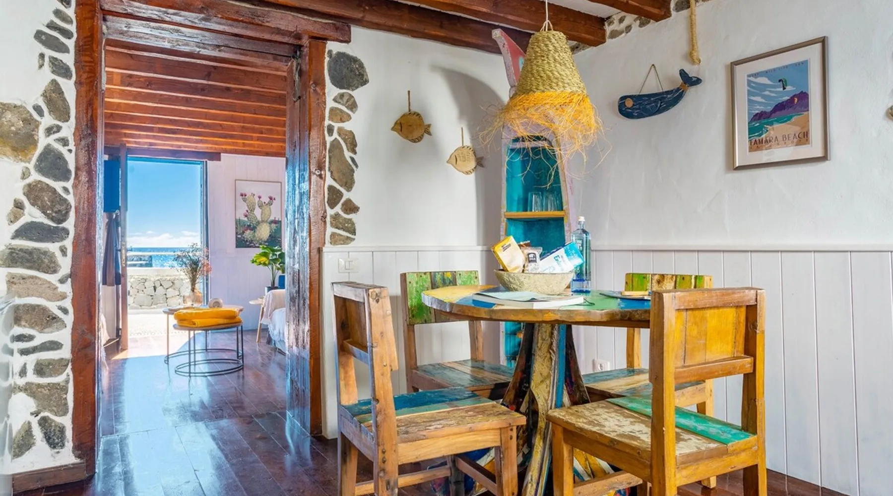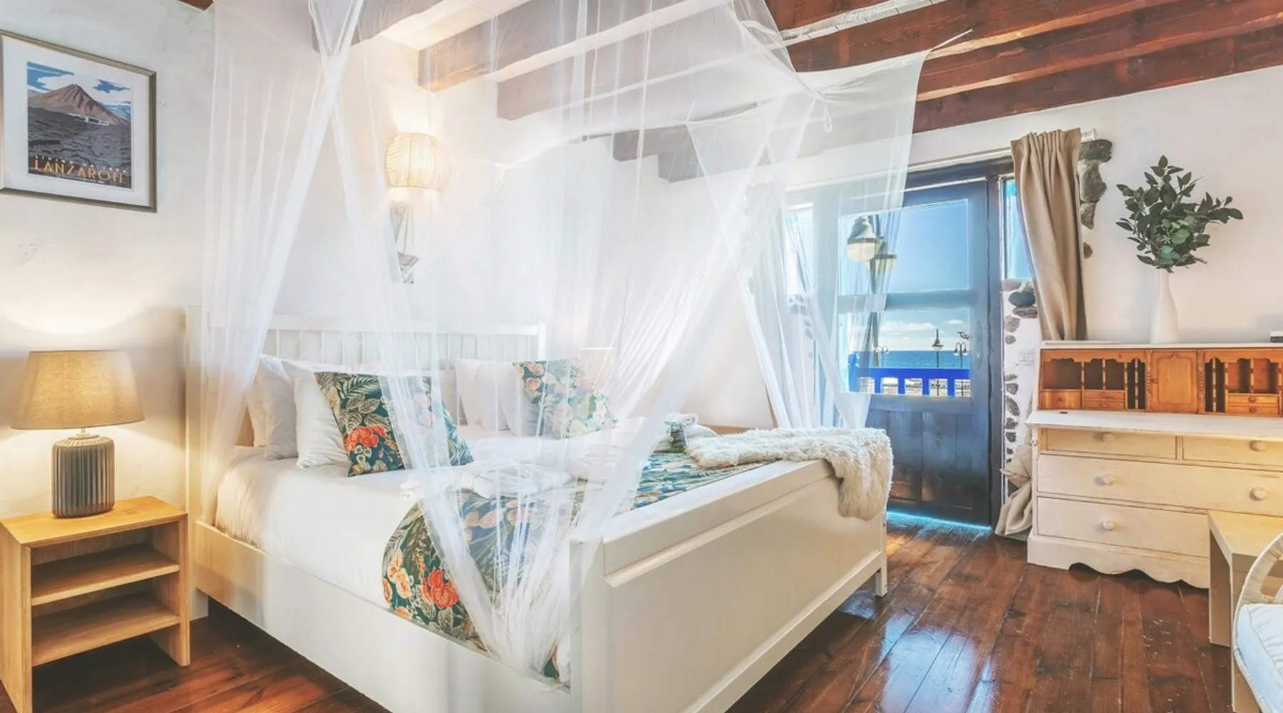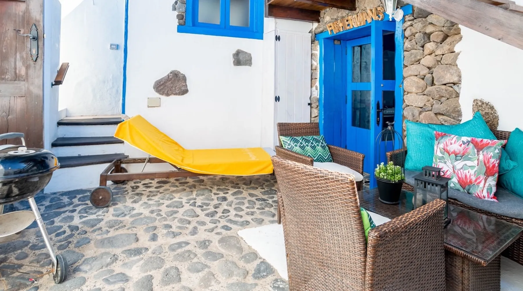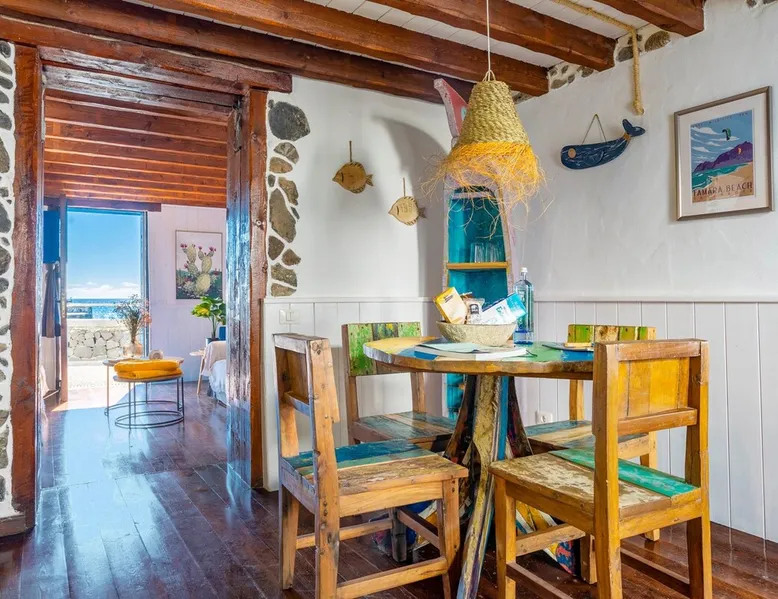 Quaint & beautiful 1 bedroom Cottage on the seafront, next to a protected cove beach. Discover the traditional fishing village of Arrieta; with a number of fantastic seafront fish restaurants, pizzeria, supermarket. Arrieta is peaceful & has the region's best family beach “Playa La Garita” which has fine golden sand. Staying in Fisherman's Cottage you are able to enjoy Finca de Arrieta's facilities, such as pool/playground. You have the ocean at your back door!! Can accommodate 2 children too. The space This quaint seafront fisherman’s cottage, situated in the authentic fishing village of Arrieta, in the municipality of Haria, is a perfect location to relax and enjoy the slow pace of this charming traditional fishing village. Our Eco Fisherman’s Cottage was featured as one of the top 20 seaside stays in the travel section of The Guardian, “Classy beach cabins on Europe’s coasts” and voted “best seaside villa in Europe” in The Times. This cottage is said to date back to being one of the first homes in Arrieta, it features a Canarian style balcony and has a fishing theme in keeping with its surroundings. As this holiday cottage is an important part of Arrieta’s history, Lanzarote Retreats has lovingly restored and kept original details such as its traditional Lanzarote style Canarian Courtyard. It is situated next to the slipway where local fishermen still launch their small, colourfully wood painted fishing boats. Adjacent to the cottage you can sit on the seafront and enjoy locally caught fish, or a selection of Tapas from a fantastic seafront restaurant. There are a variety of sea/beachfront restaurants all within walking distance from the cottage along with a well-stocked supermarket and a few small local shops. Who does the Eco Fisherman’s Cottage cater for? If you’re looking for the perfect holiday rental in Lanzarote, look no further than the Eco Fisherman’s Cottage. Due to its quaint rustic ambience and superb location, this property is ideal for couples looking for a romantic getaway break or honeymoon on the seafront We feel the cottage can comfortably accommodate maxuimum 2 adults plus 2 children using the single sofa bed upstairs or we can provide z beds and or cots. If you are travelling with little ones and wondering where to stay in Lanzarote, the Eco Fisherman’s Cottage also offers free access to the nearby Finca De Arrieta village, where there is a communal swimming pool, childrens playground, donkeys and chickens to keep the children fully entertained. What does the Eco Fisherman’s Cottage consist of? The cosy ground-floor living room, with its panoramic sea views, has a double sofa bed, Bluetooth speaker, selection of books and free WIFI. The fitted kitchen is fully equipped with a fridge-freezer, gas oven, hob and toaster, as well as a bespoke dining table and chairs. Outside, the private spacious courtyard is ideal for cooking on the BBQ and al fresco dining under the stars. From here, there is an outdoor shower ideal to rinse off when you return from a swim in the crystal clear waters at the cove beach or harbour, both of which are right by the cottage. Also leading from the courtyard is the convenient separate toilet. From here the courtyard leads to an external wood staircase up to the first-floor master suite. Luxurious, open-plan and with spectacular sea views, this light and airy room features a comfy king-size bed, wooden-surround sunken bath, single sofa bed and en suite WC. Guests staying at the cottage are always welcome to come to the Finca De Arrieta village to use the free facilities there, such as the swimming pools, play park etc. It’s just a 15-minute coastal walk or a few minutes by car. What makes this cottage ‘Eco’? This cottage’s eco credentials give you the chance to live “Off Grid”. There are ten solar panels which make the most of the fantastic Lanzarote weather, storing the power and supplying all electricity for the property. Arrieta’s Eco Fisherman’s Cottage is the perfect example of how simple, stylish and sustainable holidays should be. As this is an “Eco” property, high energy consumption items such as microwave, iron, a hairdryer cannot be used in this cottage. The cottage does have normal electric plug sockets so charging any phones, laptops etc are fine. Please feel free to ask if you have any questions. Arrive in style; Lanzarote Retreats offers VIP private airport transfers, our very own driver will meet you on arrival, relax and sit back, whilst you enjoy a glass of chilled cava whilst en route to your holiday home. Why not let us arrange a Toyota Hybrid courtesy car to be delivered to your holiday home too. Contact us for prices. Guest access This cottage is private to you and when staying in Fisherman's Cottage you will be able to use Finca de Arrieta's facilities, such as solar heated pool, laundry facilites and a playground. Finca De Arrieta is a 20 minute walk or just a few minutes by car. Other things to note Staying at Eco Fishermans Cottage gives you the chance to live off-grid during your stay. The cottage is powered by solar power and runs very efficiently throughout the year due to year-round sunshine. Your electric supply is 24/7 and devises use normal European plugs. While the cottage does not have built-in air conditioning or central heating, fans or electric heaters are available on request to ensure your comfort year-round. Registration Details VV-35-3-0006300