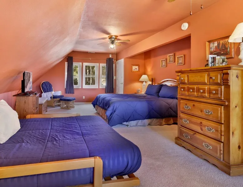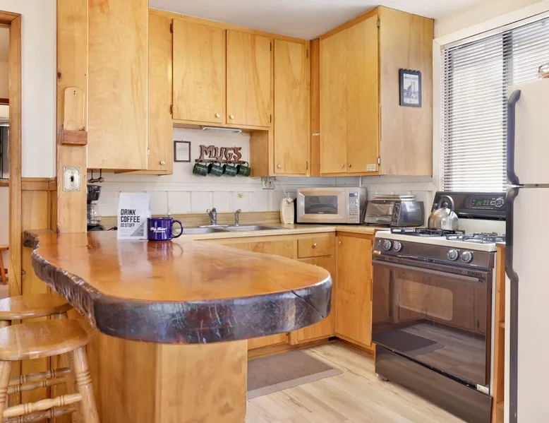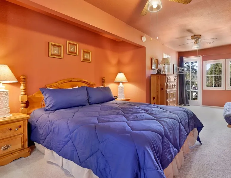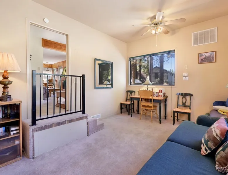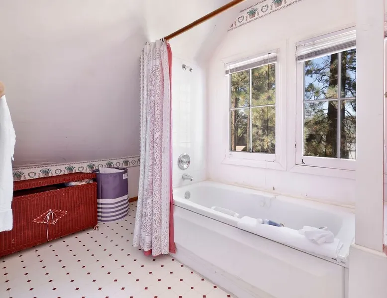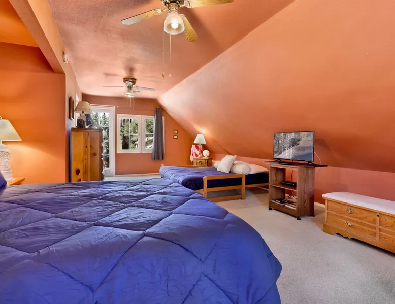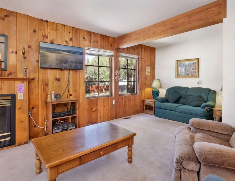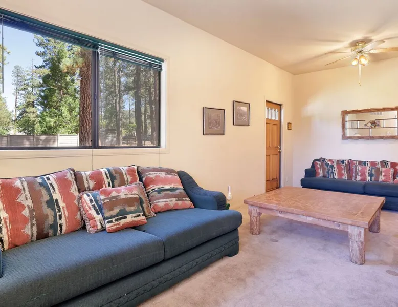 Jus' Restin- Downtown Village Retreat Chalet- Walk to Activities Welcome to Jus' Restin Cabin. True to its name this family retreat sits in the heart of the downtown Village and is the perfect place to unwind and relax in the mountains for a group of friends or family vacation any time of the year. Walk to the marina, park, dining, or shopping within five minutes or hop in the car and you're ten minutes to the grocery store or ski resorts- this is the ultimate Big Bear location! The space Sprawling in two levels of cozy living space this adorable retreat boasts a cozy living room, oversized family room, two spacious bedrooms, plus two oversized bathrooms, one even has a jetted spa tub for the perfect soak after a fun day out on the mountain. The equipped kitchen has all that you need for home cooked meals including cookware, appliances, and a cute dining table and breakfast bar. Venture outside to enjoy the open forested property with a great patio area, picnic table, and propane BBQ- you will love unwinding here in the evenings to grill up your freshly caught dinner from the lake. Boasting the ultimate central location paired with the comforts from home this cottage has everything you need for a memorable vacation under the pines at Big Bear! Come experience your new home away from home today! Sleeping Arrangements: Bedroom 1: Queen Bed- Downstairs Entry Level Bedroom 2: King Bed + Queen Futon, Private Bath- Upstairs 2nd Level Bathroom Arrangements: Hallway 3/4 Bath (Shower Only)- Downstairs Entry Level Private Full Bath w/ Jetted Tub + Shower- Bedroom 2- Upstairs 2nd Level -Sleeps 7 -2 Car Driveway Parking -NO PETS ALLOWED- Fines Imposed for Pets Found on Property -1,496 Square Feet City Permit #: VRR-2024-1472 Registration details 2024-1472