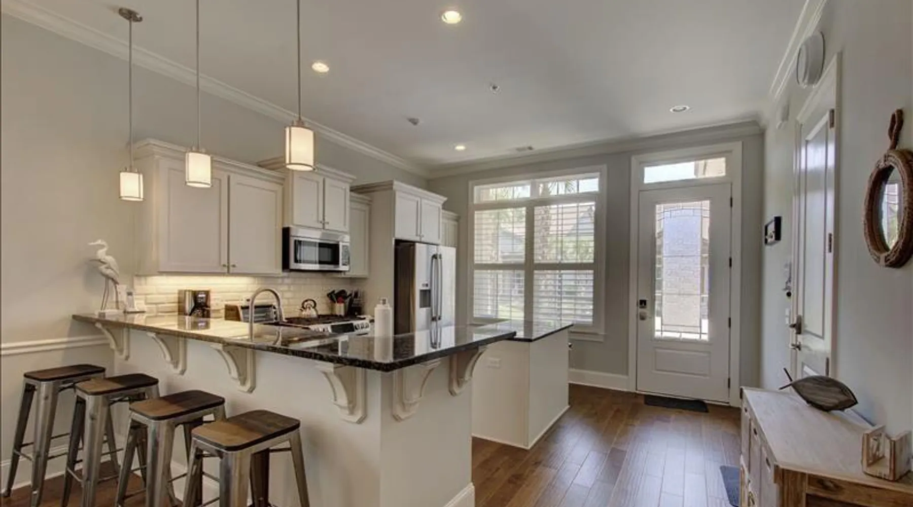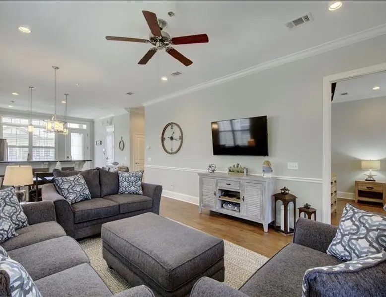 Garden Cottage 15 Friends & Family Fun in the Sun! The space Located garden side in The Cottages at Jekyll Island Community, Jekyll Island's premier oceanfront residential community located north island. This 3 bedroom, 3.5 bath townhome style beach cottage offers a spacious open concept floor plan with a master suite (king) on the main floor. The spacious master bath has a walk-in closet, double vanity, and a large walk-in shower. The kitchen is fully equipped with Bosch appliances and a Mr. Coffee maker. The dining area and extra seating at the raised bar, make entertaining a crowd easy. Comfortable living area with pull-out sofa opens to a screen porch and large fenced patio with outdoor seating and fire table and gas grill. Finishing off the first floor is a stack laundry and powder room. The second-floor landing has a lounge area, and 2 ensuite bedrooms (Queen & Full w/trundle) Each bedroom opens to a large upper balcony with seating. Single car garage with EV outlet, 3 adult bikes, 1 child's bike, beach caddy, 2 beach chairs, beach toys, and a street legal Golf Cart. **Important:** To access the golf cart, complete the cart use agreement sent via email 10 days before arrival. In addition, guests have access to The Cottages at Jekyll Island million dollar oceanfront amenities, which include Clubhouse with Billiard Table, Fitness Room, zero entry pool, beach deck, beach access and a community fire pit. Winter Monthly Rates available upon request. Linens included. Osprey Floorplan with Garage EV outlet 2 parking spaces are available.- No trailers of any kind allowed. Sleeps 8 Bed Configuration King Queen Full with Trundle Pull out Sofa Coffee maker: standard coffee pot NO SMOKING NO PETS If our no pet or no smoking policy is broken, a $1000 fine will be charged AND you will be asked to vacate the property without a refund. THE COTTAGES BEACH ACCESS: The Cottages beach is approximately 2000 linear feet and has a dune area and seawall that runs the length of the Cottages oceanfront property. There are 3 dune crossovers to the sand area landside of the seawall that are always accessible, and that area can be used for recreational purposes. The access to the beach over the seawall is centrally located at the pool & clubhouse. At high tide, the water is at the seawall. The tides change every 6 hours from low to high tide. A tide chart will help you plan your beach time. The nearest beach park with ocean access all day is Oceanview Beach Park, appx 2 miles south just past the Holiday Inn. You may view all Jekyll Beaches by visiting the Jekyll Island website under the Beaches tab. DUE TO STORMS THAT CAN CAUSE DAMAGE TO THE BEACH CROSSOVER TO THE OCEAN, WE DO NOT GUARANTEE BEACH ACCESS ON-SITE MANAGEMENT