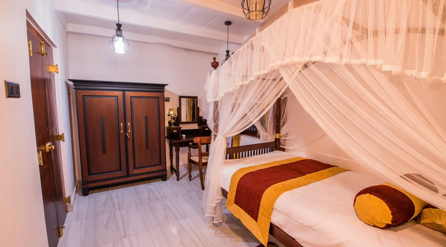 A HISTORIC HOME Welcome to our historic home and villa - Fortress de Jayaweera where heritage meets hospitality. Passed down our family line since 1889, the Villa has been freshly refurbished to celebrate and highlight its iconic, antique features. Designed with cool clay interior walls, the villa blends colonial charm with modern comforts to give you an unforgettable stay. Located 65km south of Colombo in the coastal town of Bentota and within walking distance of the famous Bentota Beach, Fortress de Jayaweera provides the complete holiday experience - an oasis of culture, class and comfort..